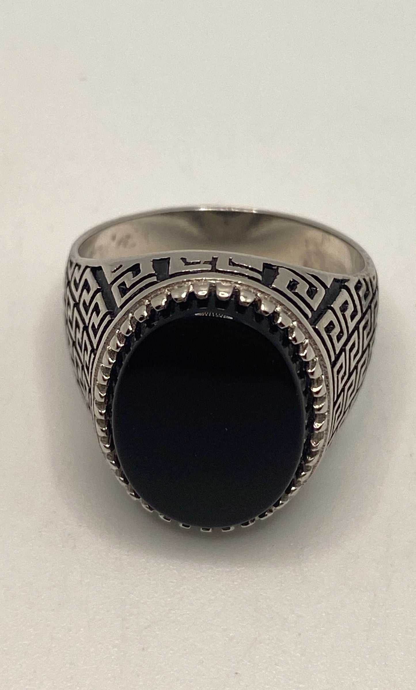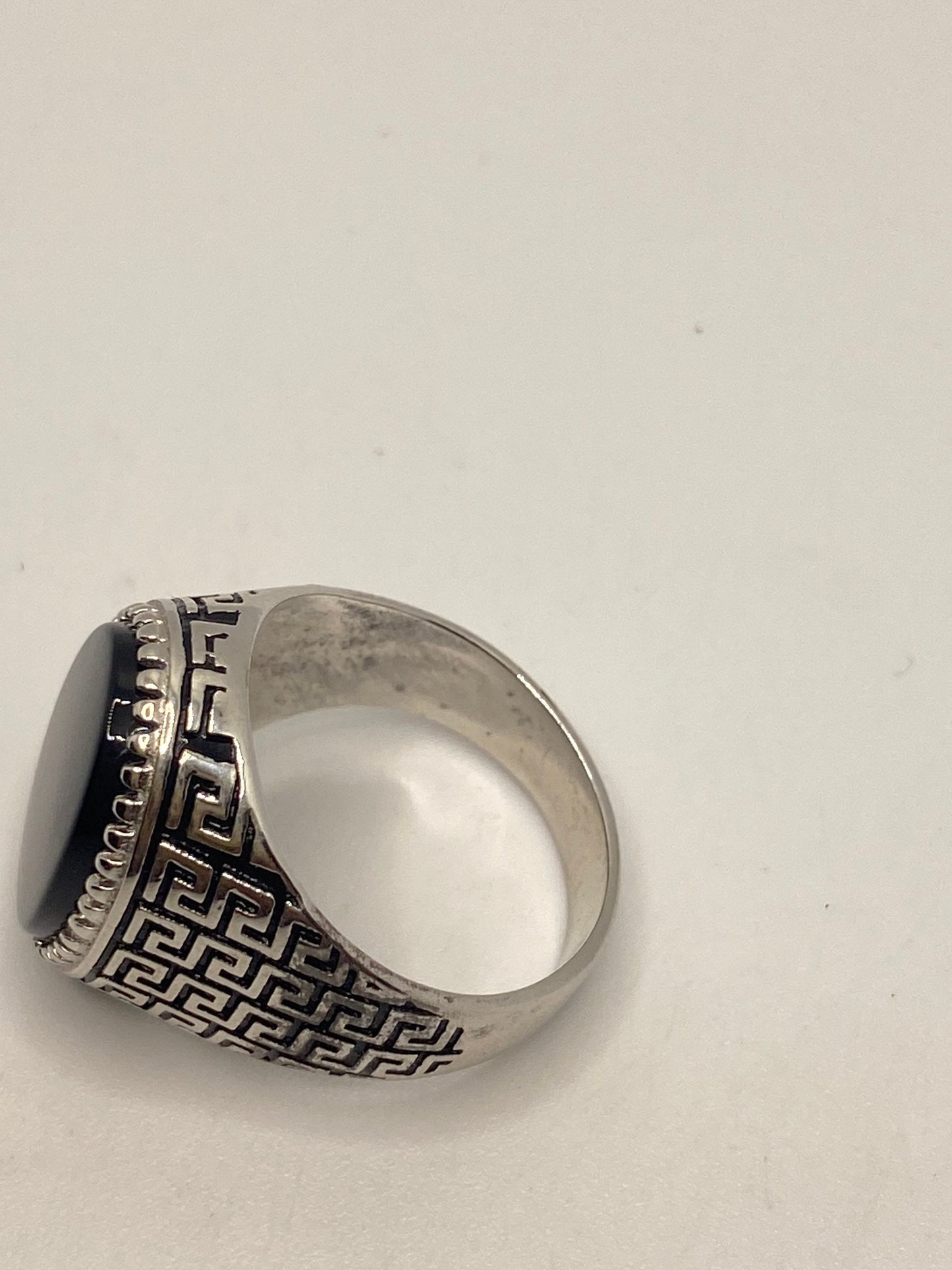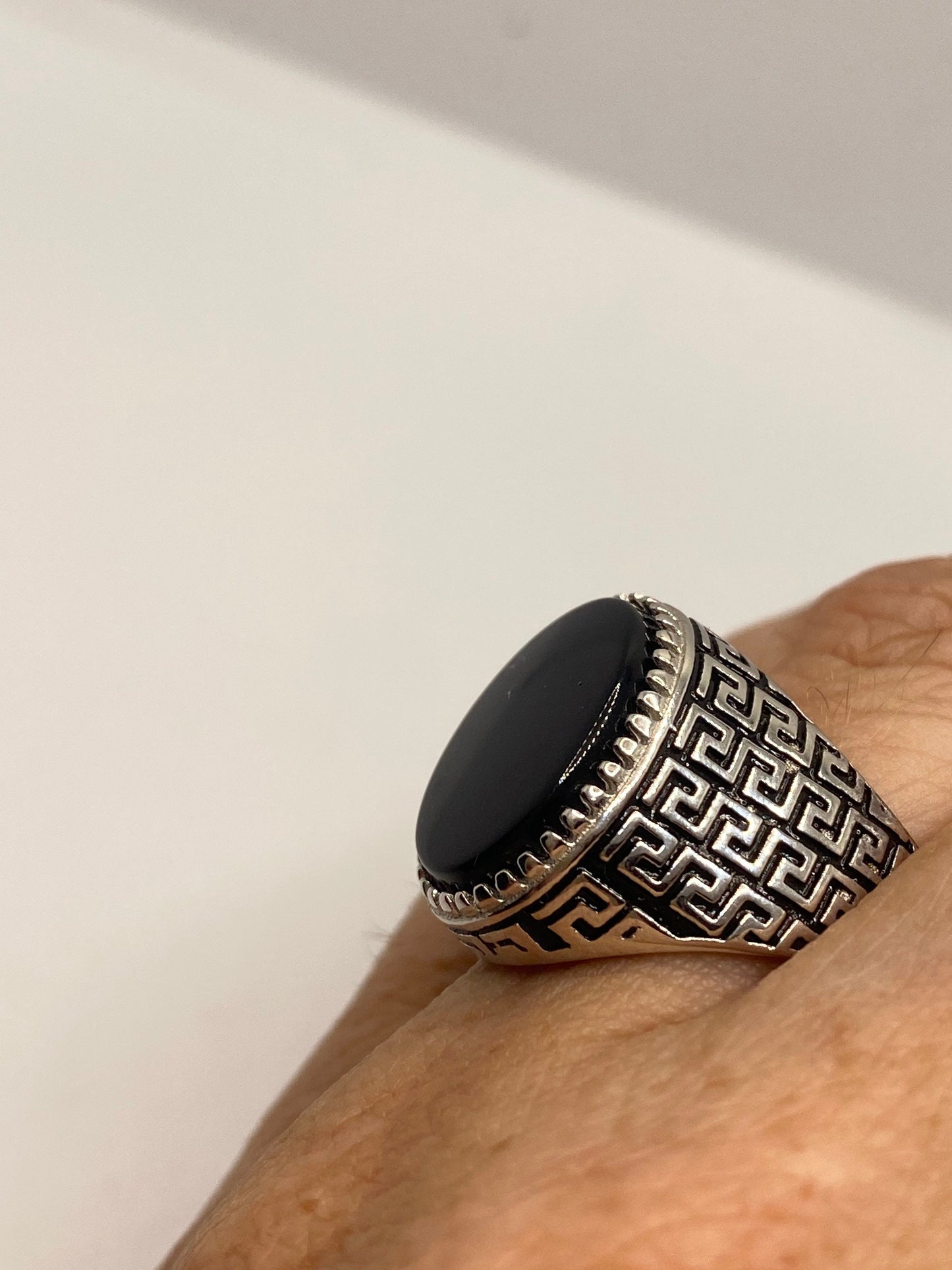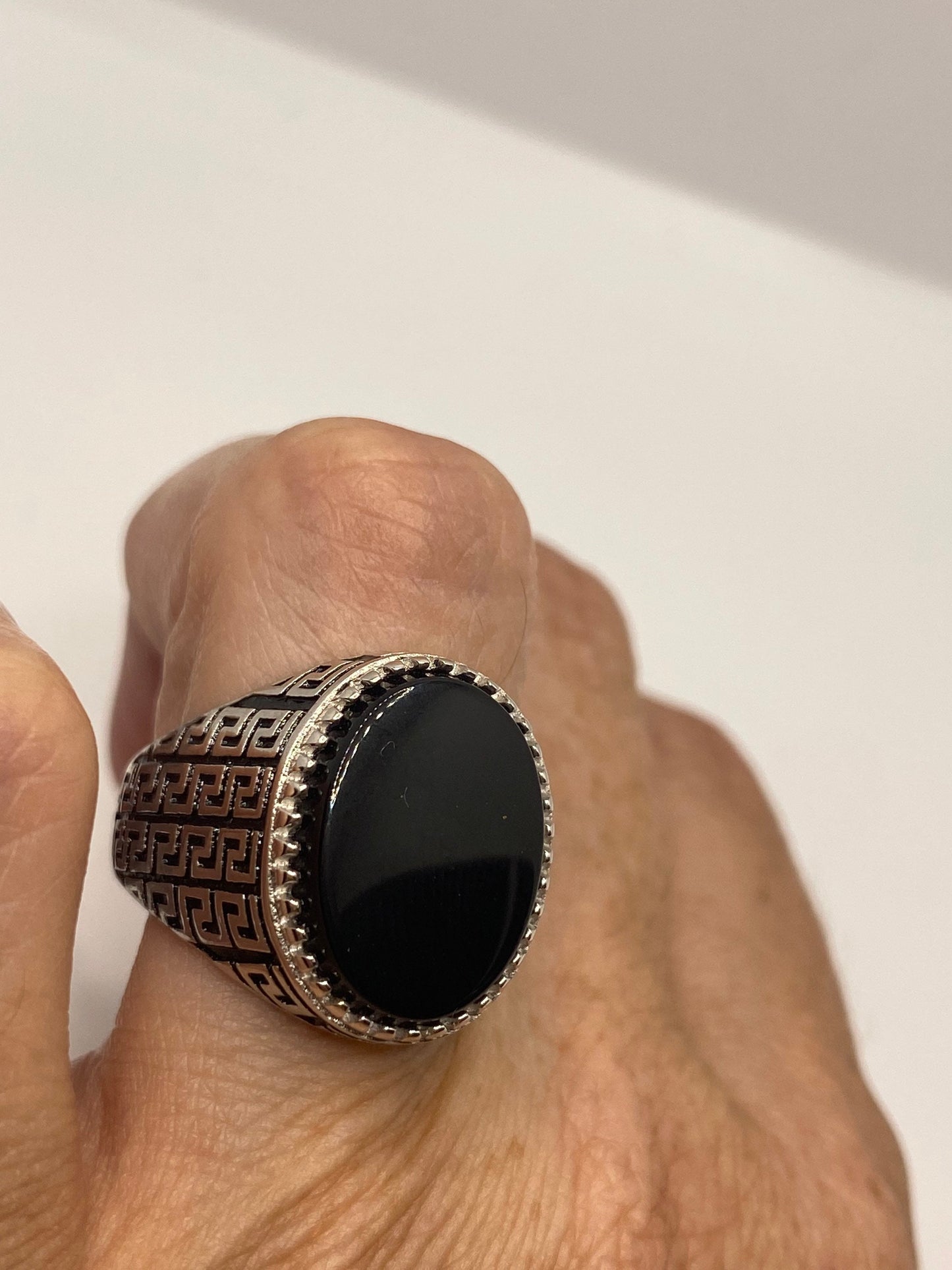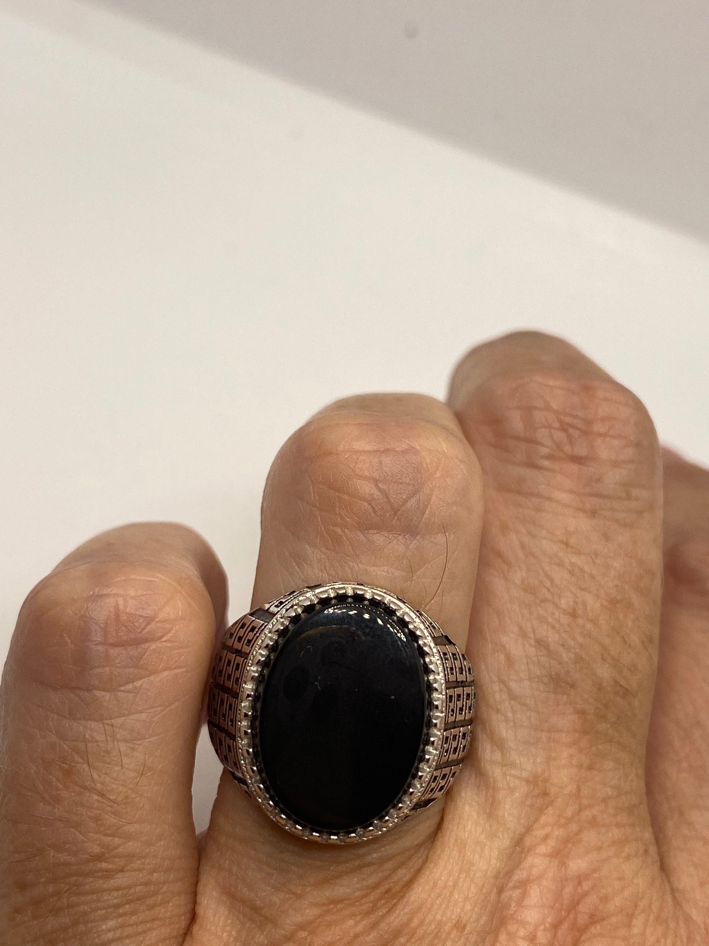 Vintage Black Onyx Mens Ring in 925 Sterling Silver