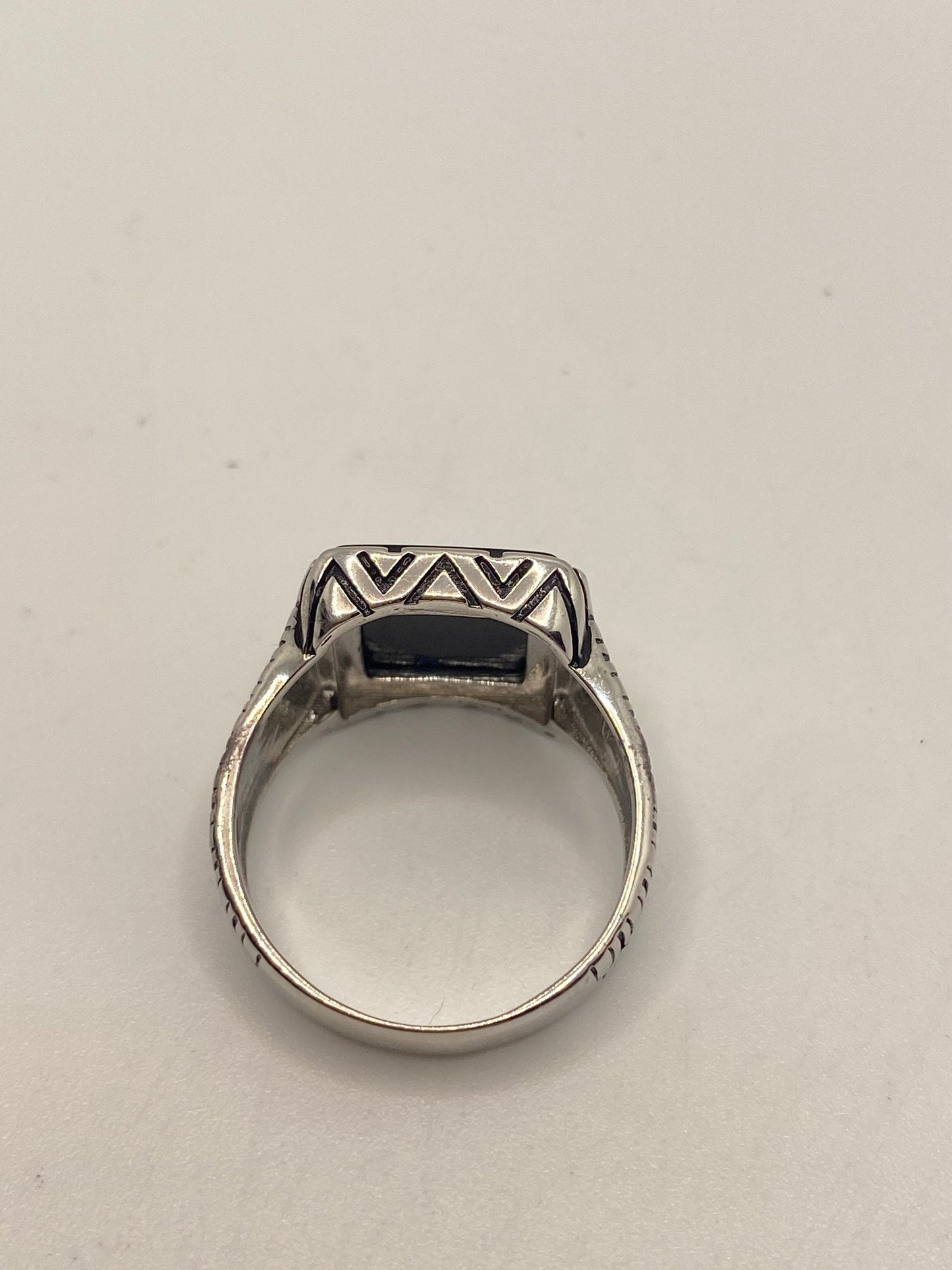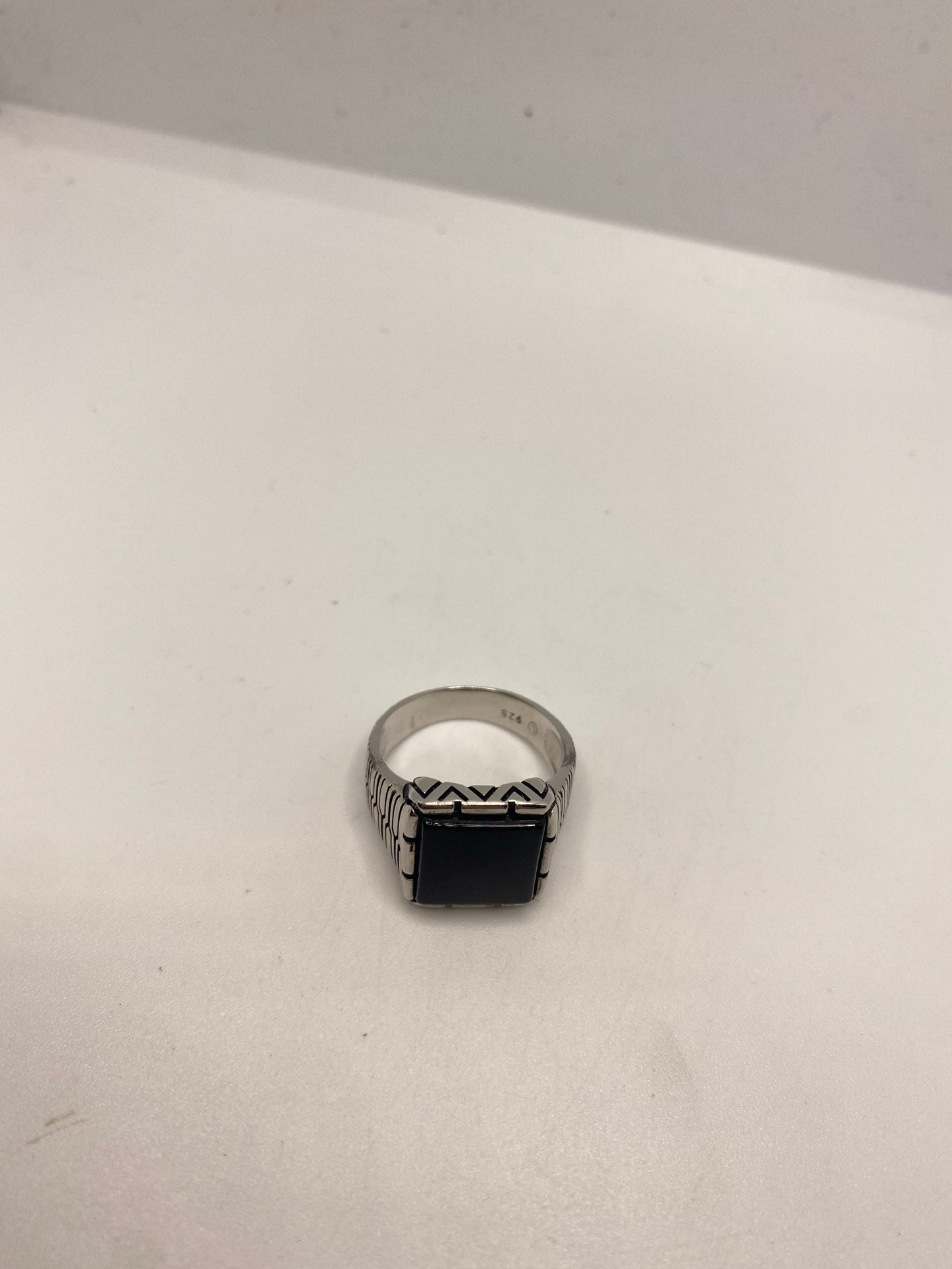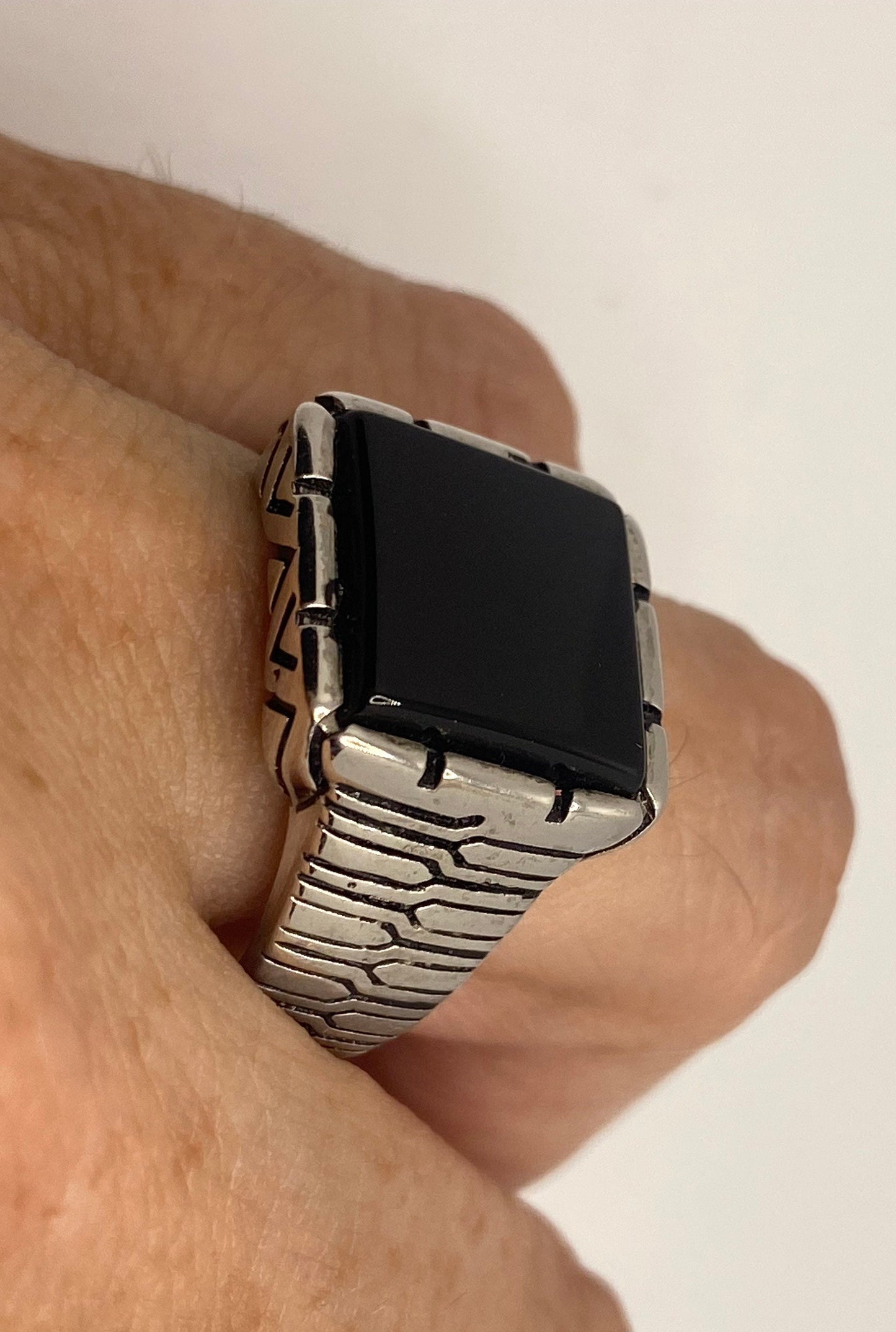 Vintage Black Onyx Mens Ring in 925 Sterling Silver