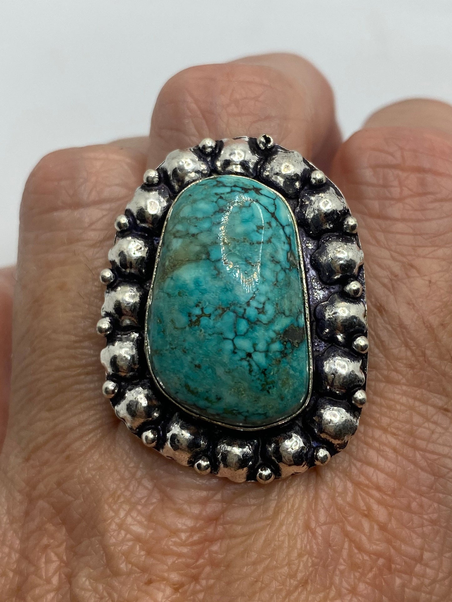 Vintage Blue Genuine Tibetan Turquoise Ring Size 9