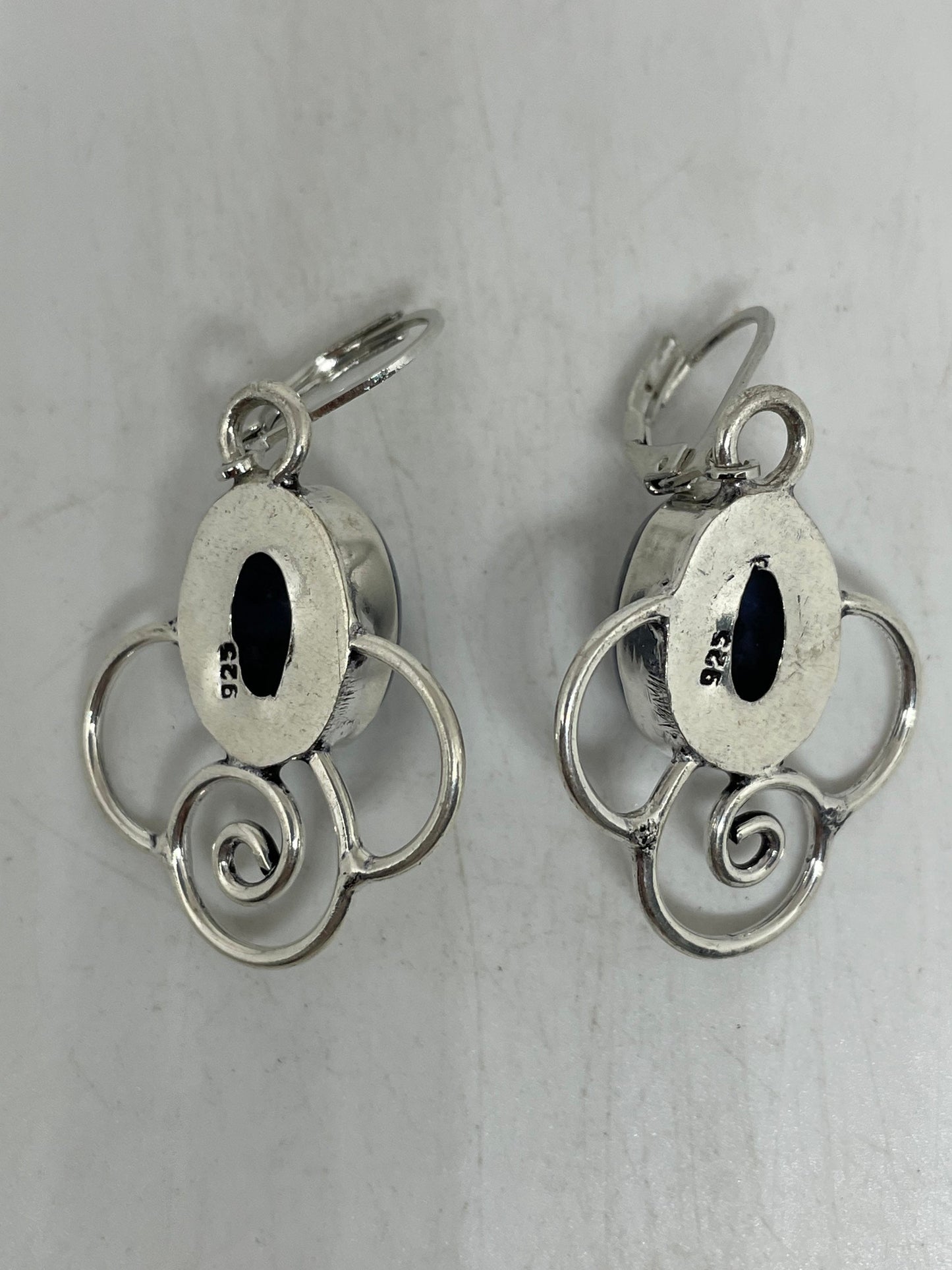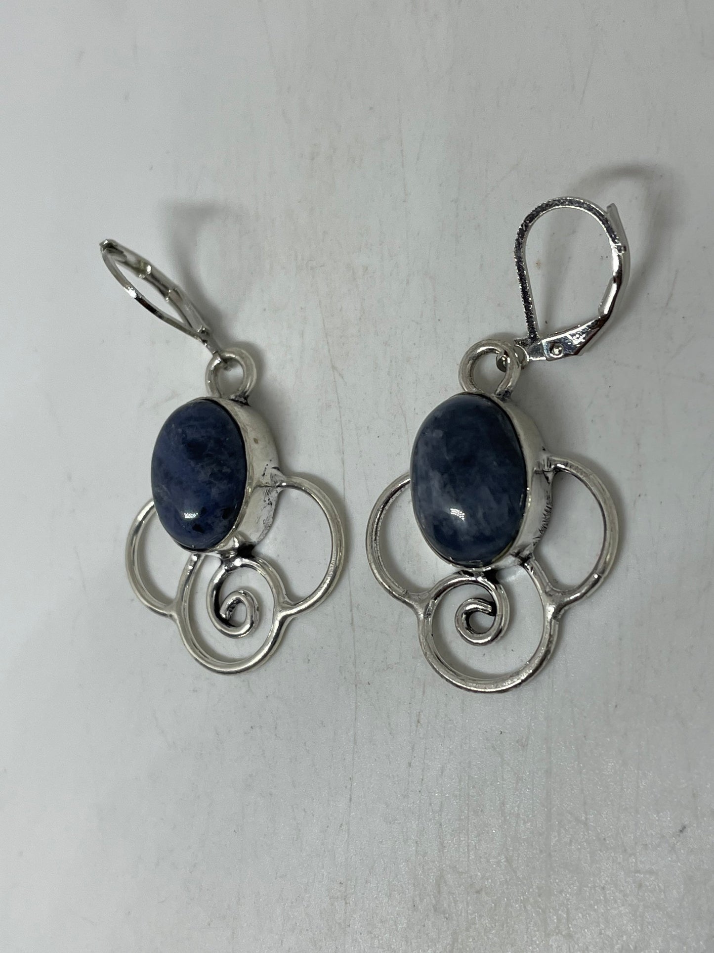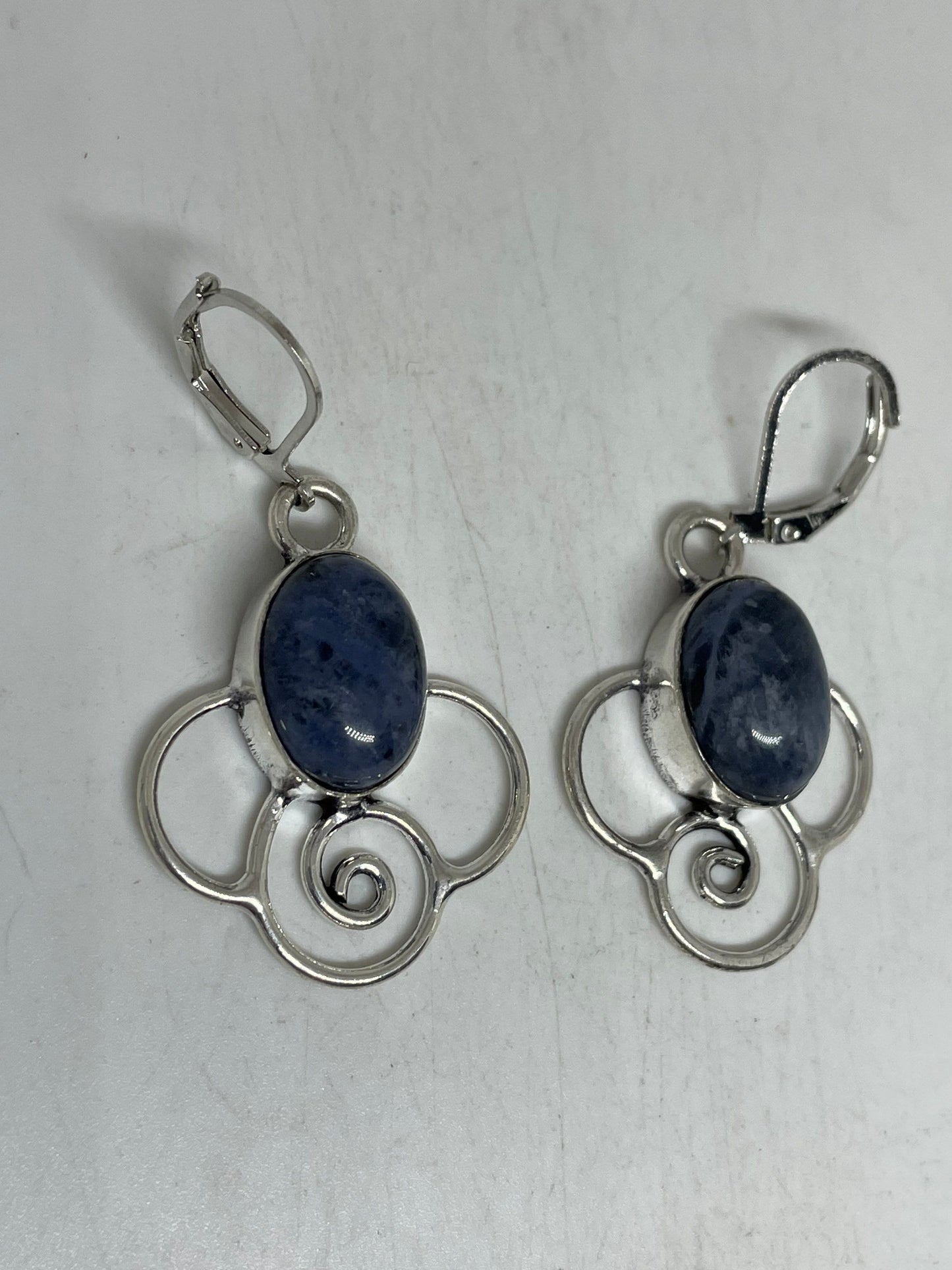 Vintage Blue Lapis Lazuli Earrings Silver Dangle