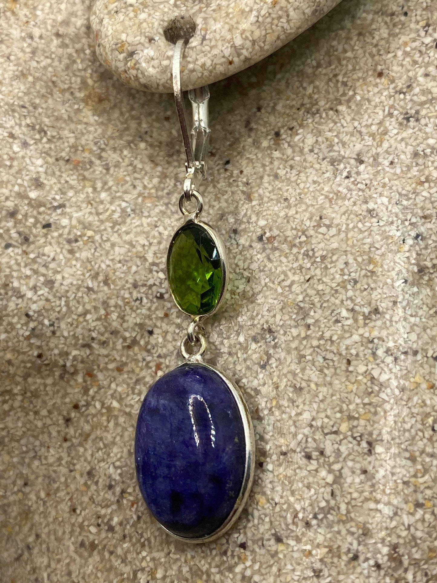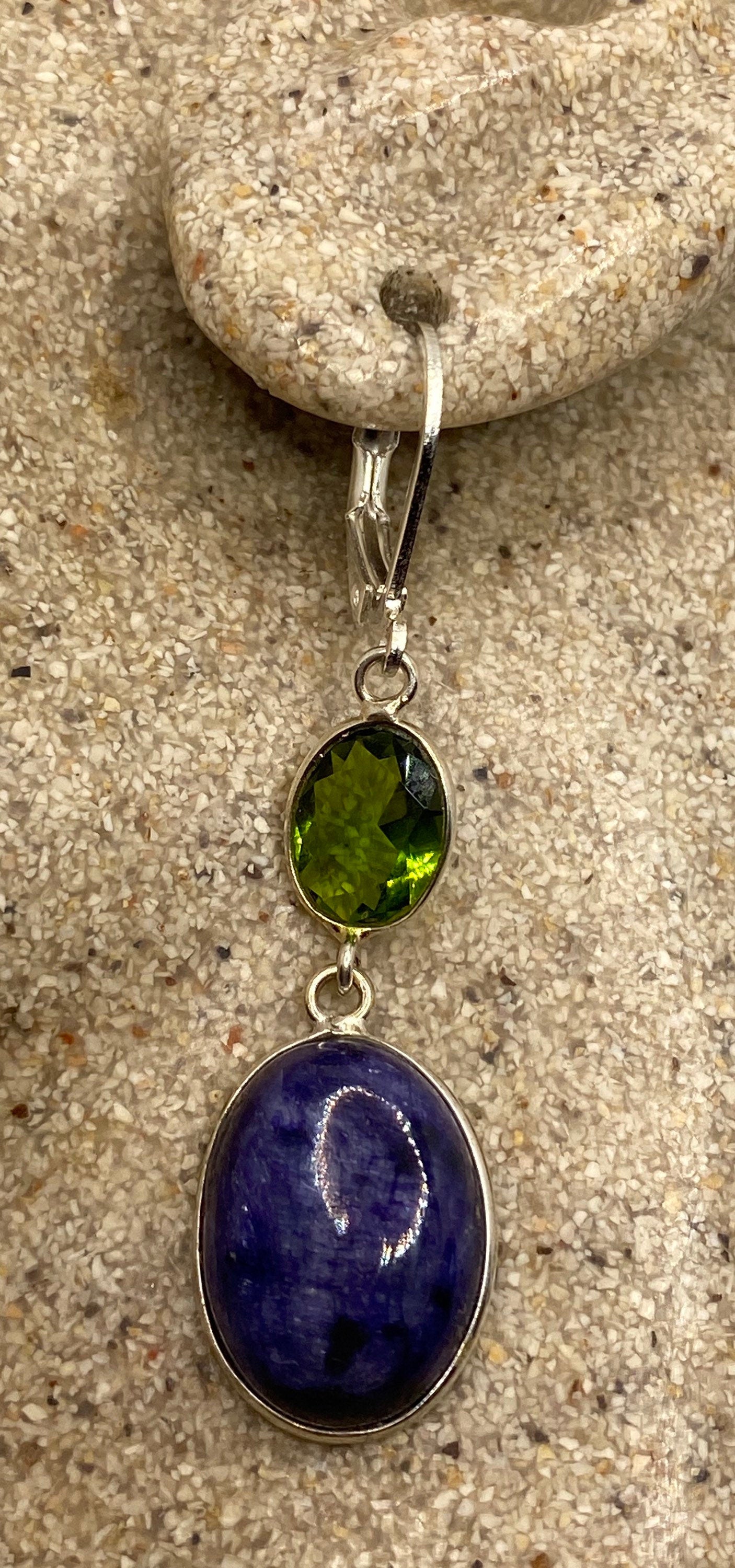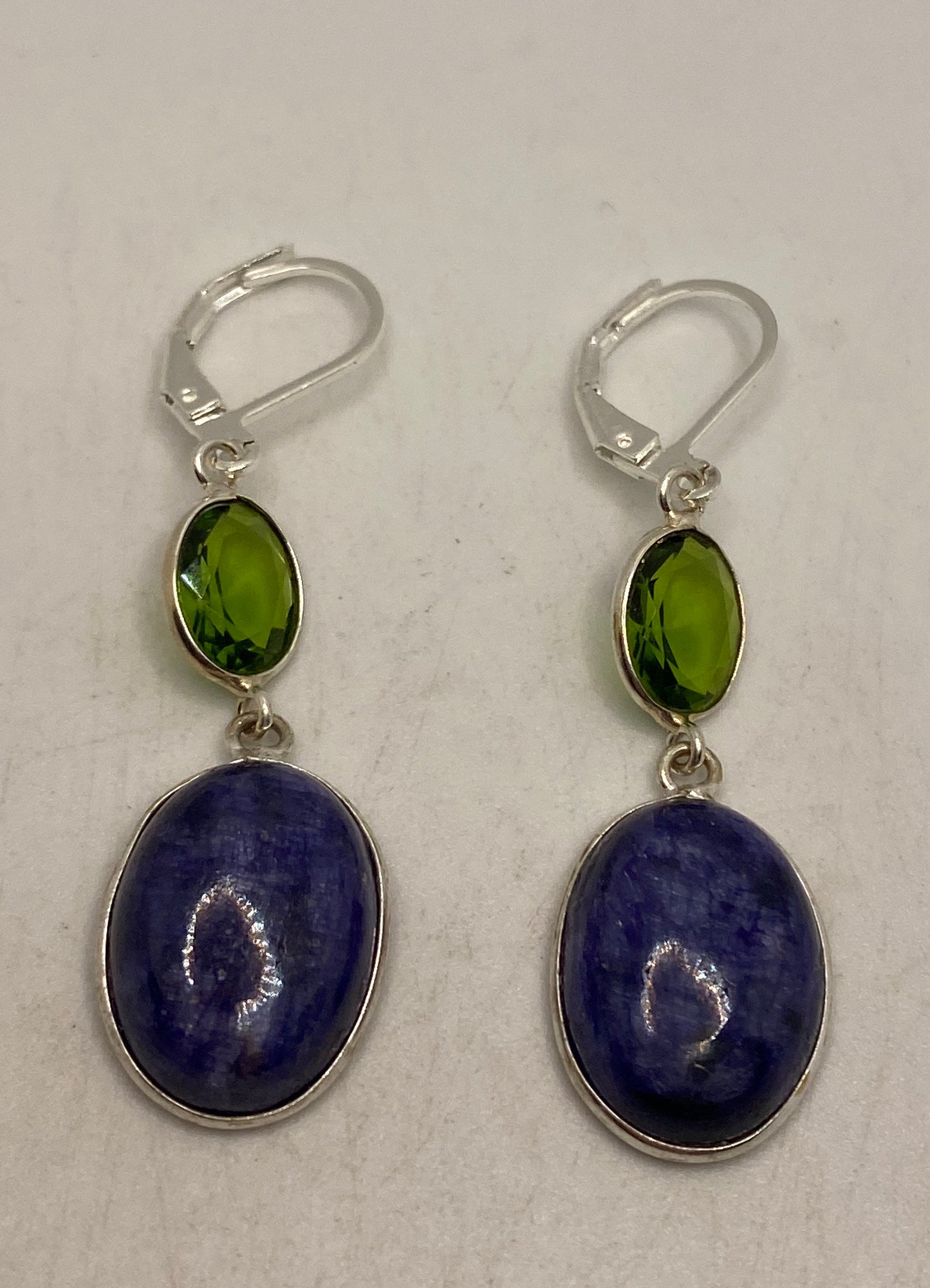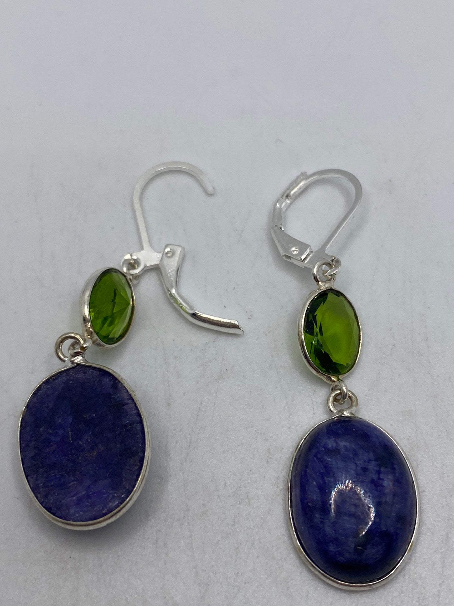 Vintage Blue Raw Sapphire Sterling Silver Lever Back Chandelier Earrings