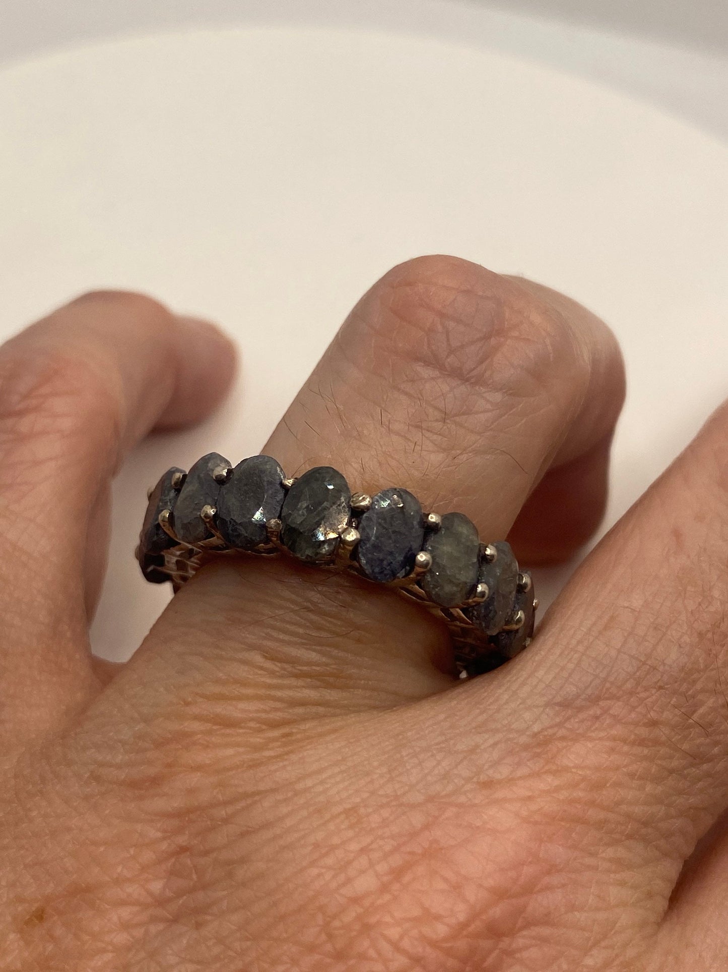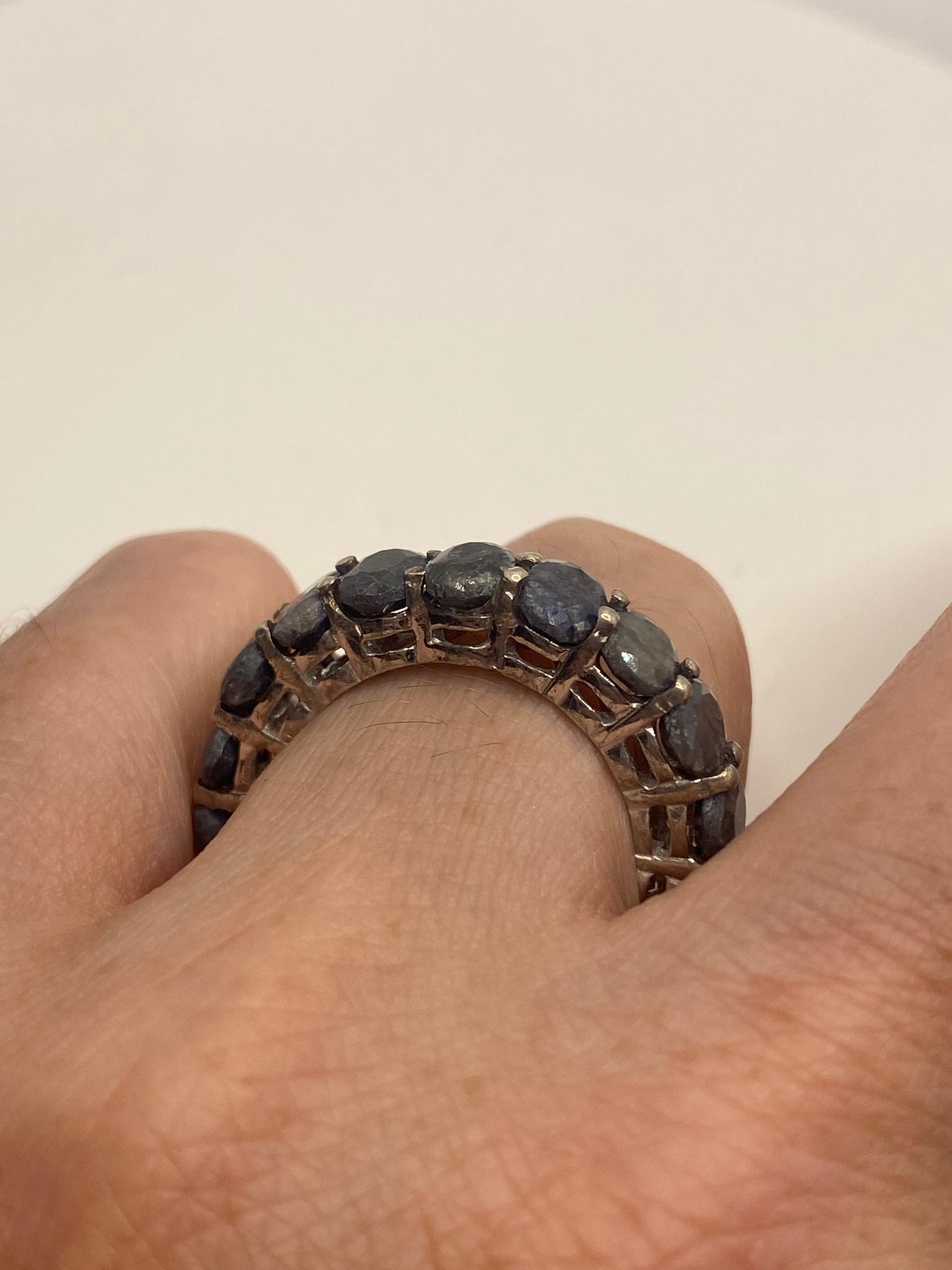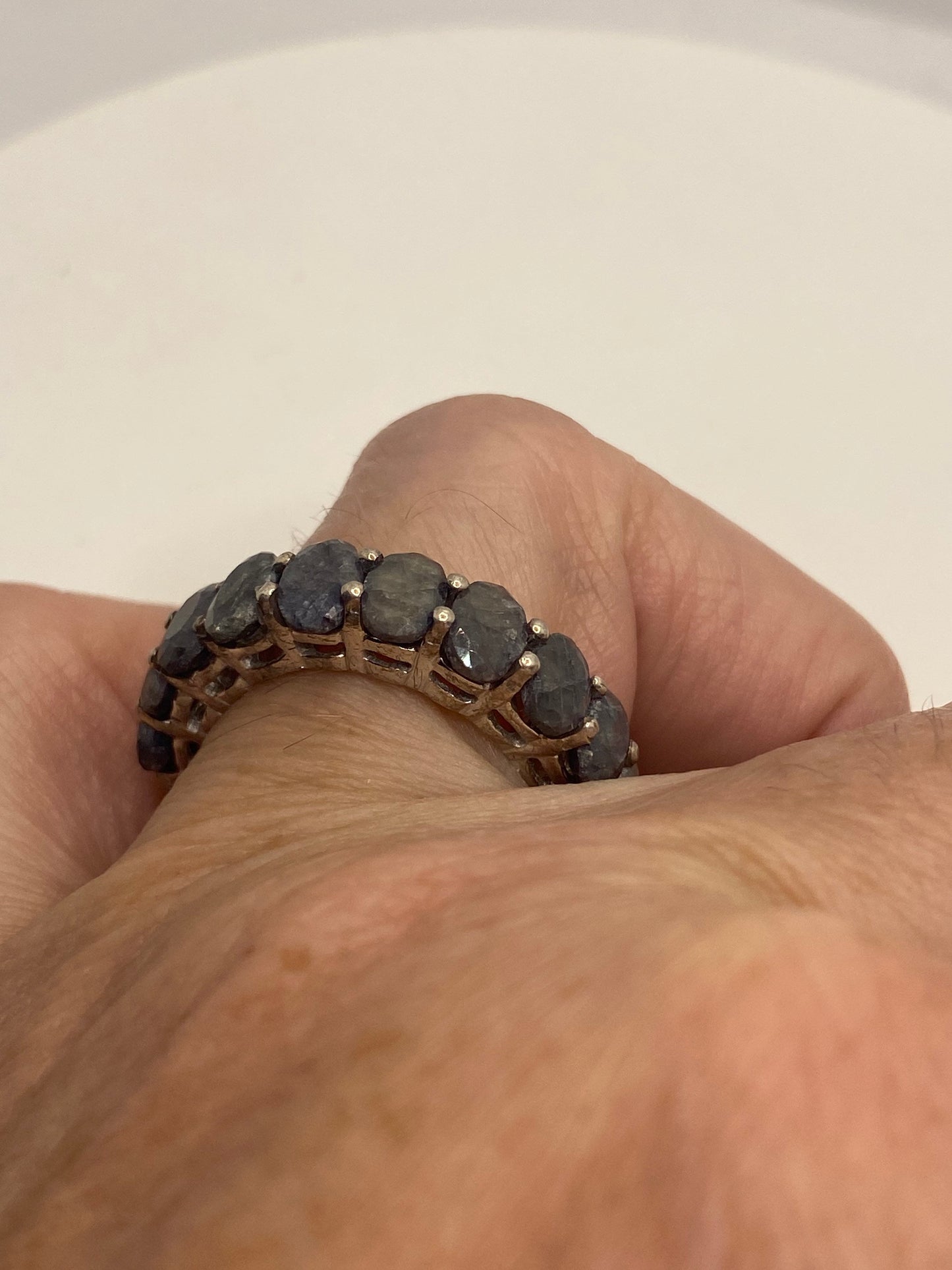 Vintage Blue Sapphire 925 Sterling Silver Ring Size 7