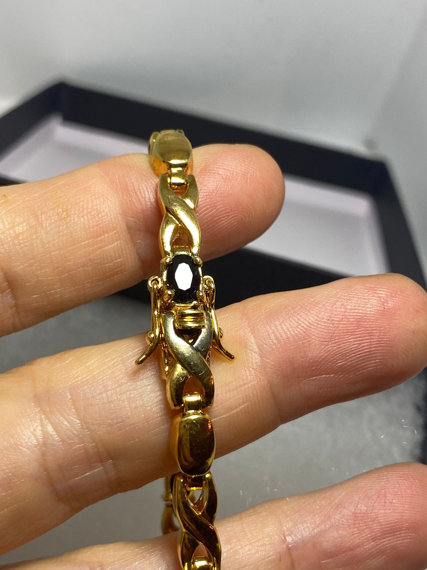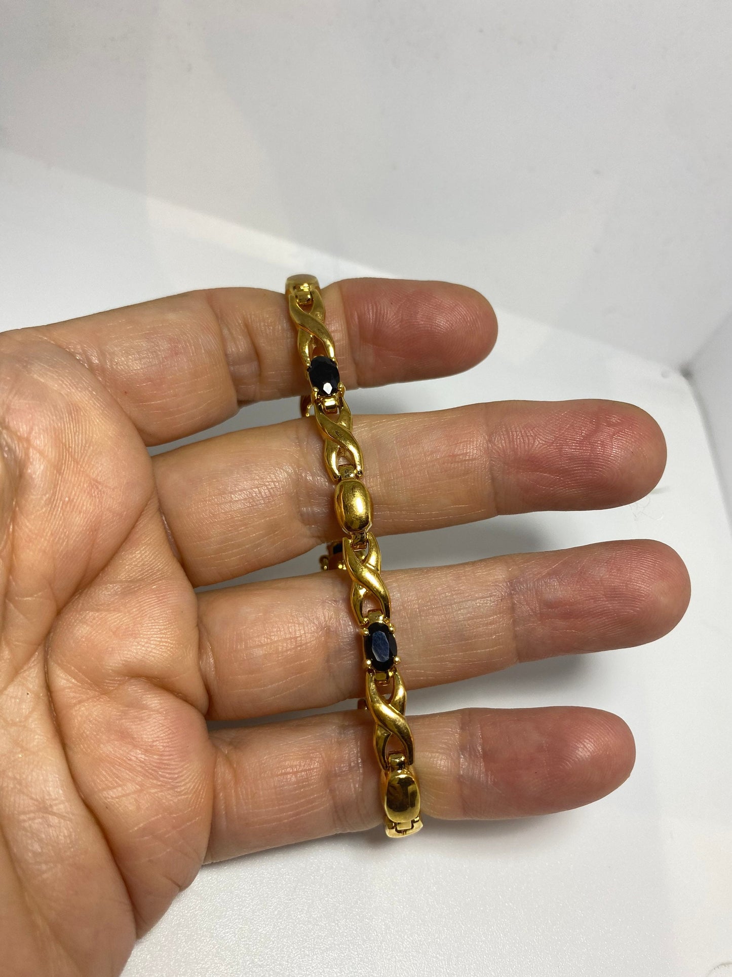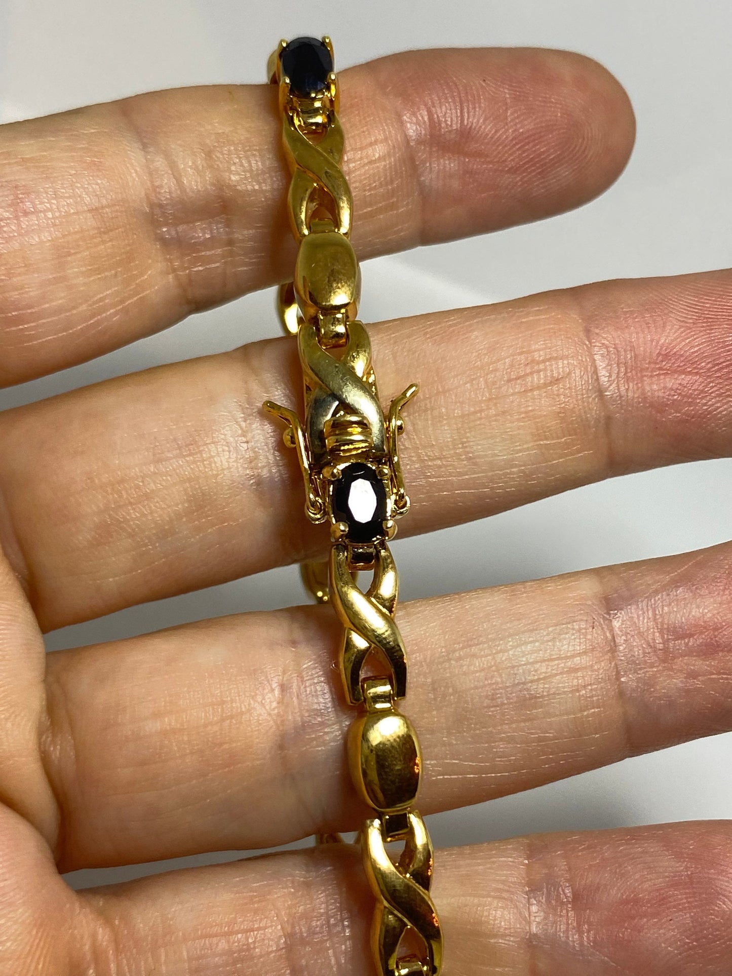 Vintage blue sapphire bracelet gold 925 sterling silver tennis