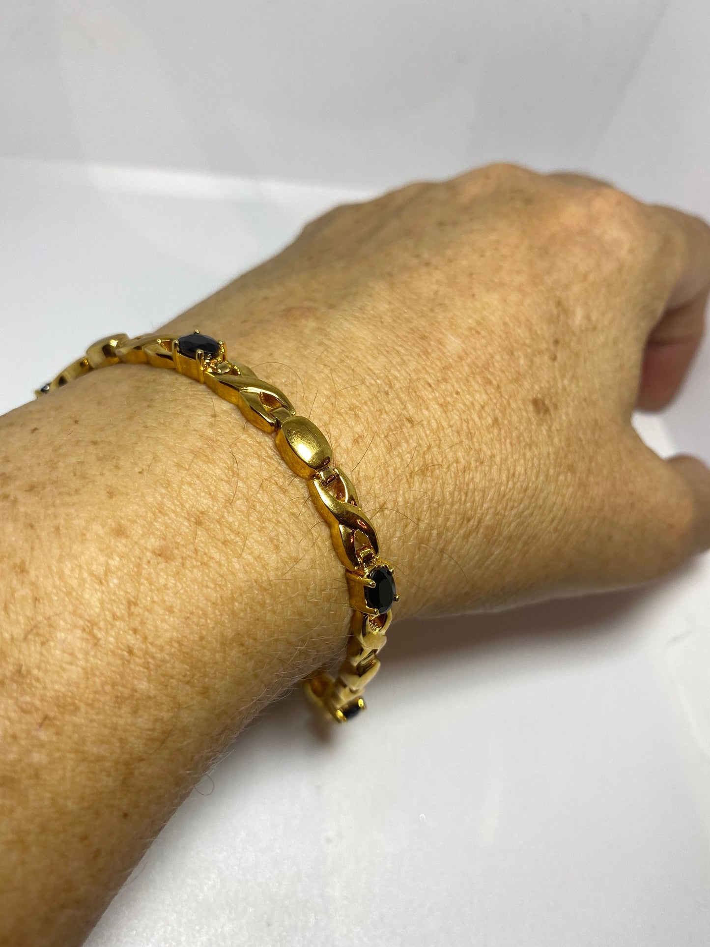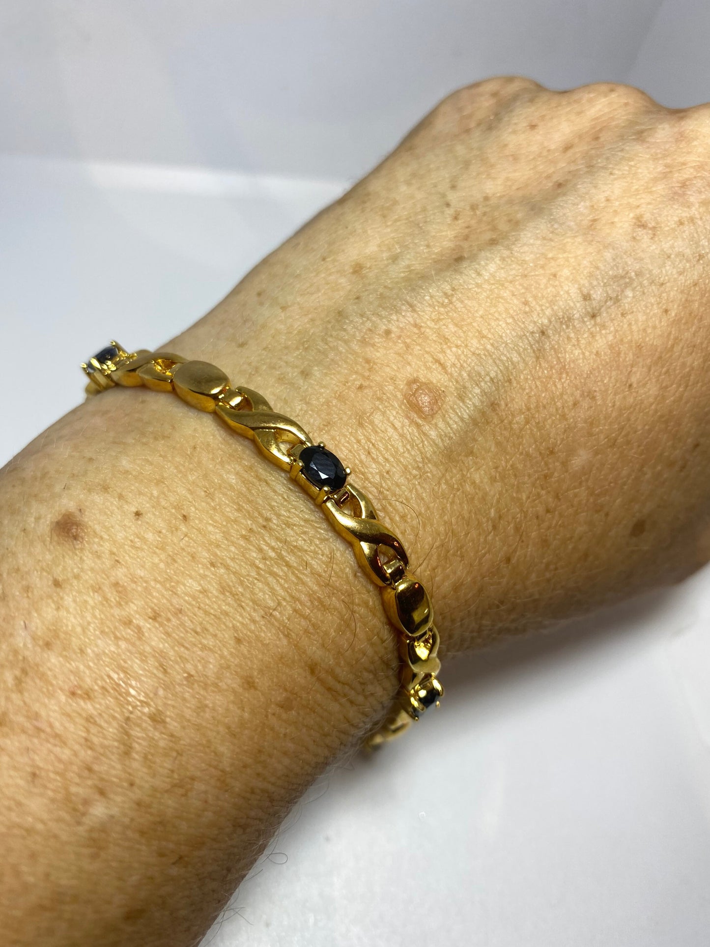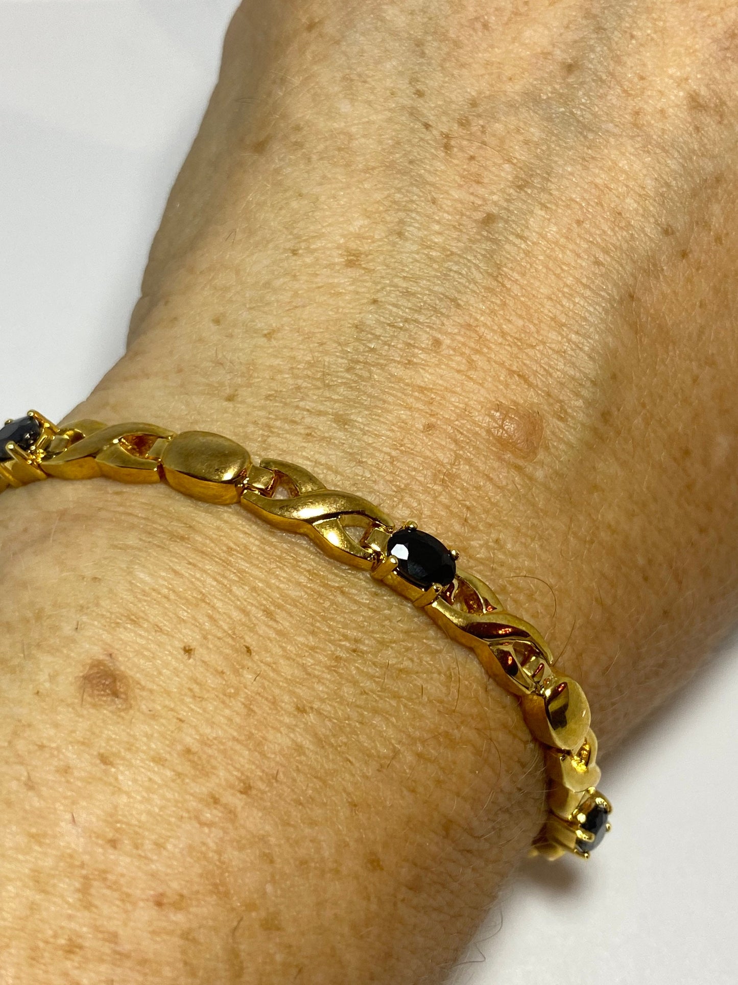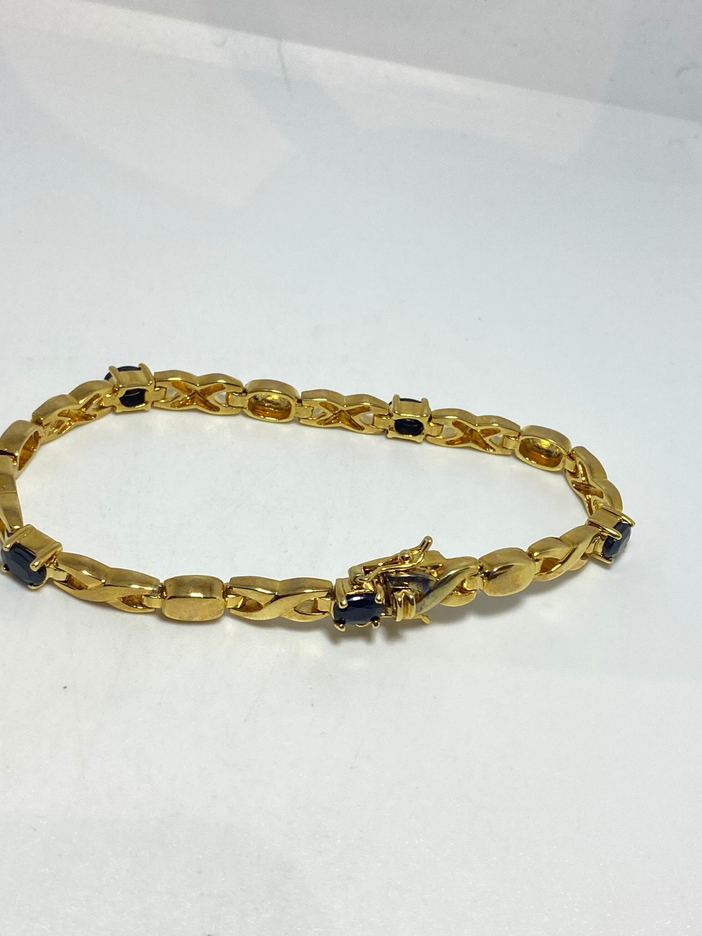 Vintage blue sapphire bracelet gold 925 sterling silver tennis