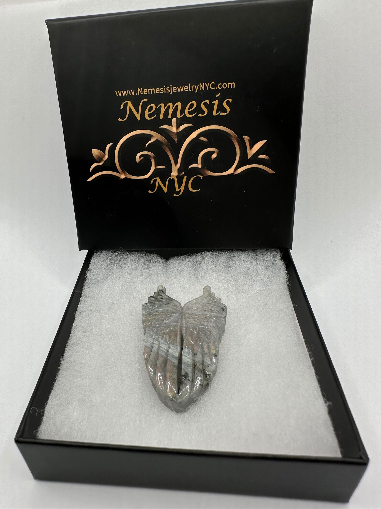 Vintage Carved Angel Wings Genuine Rainbow Labradorite