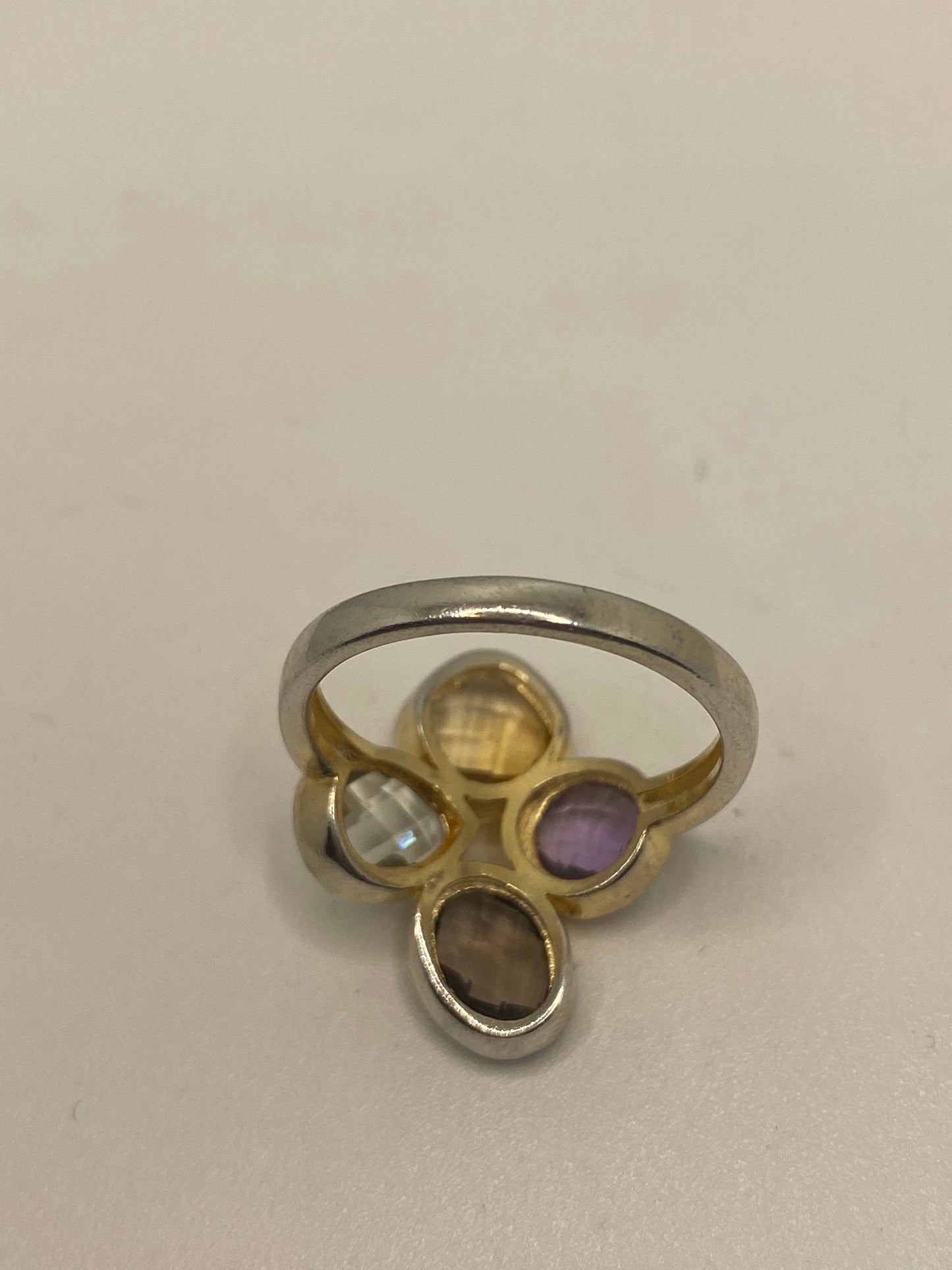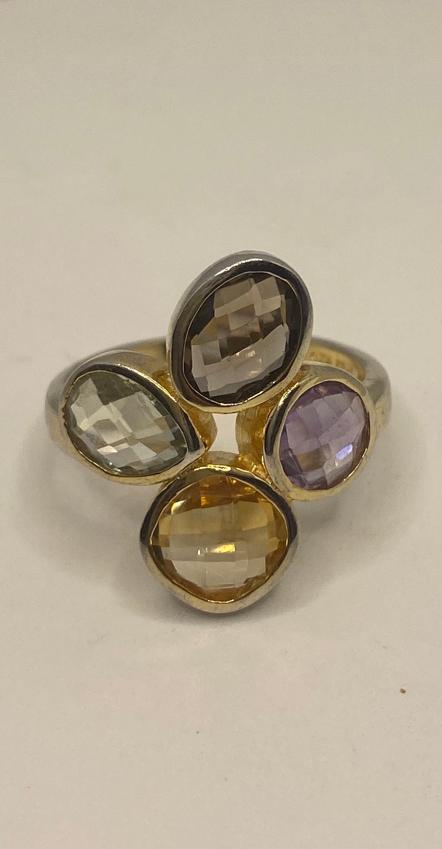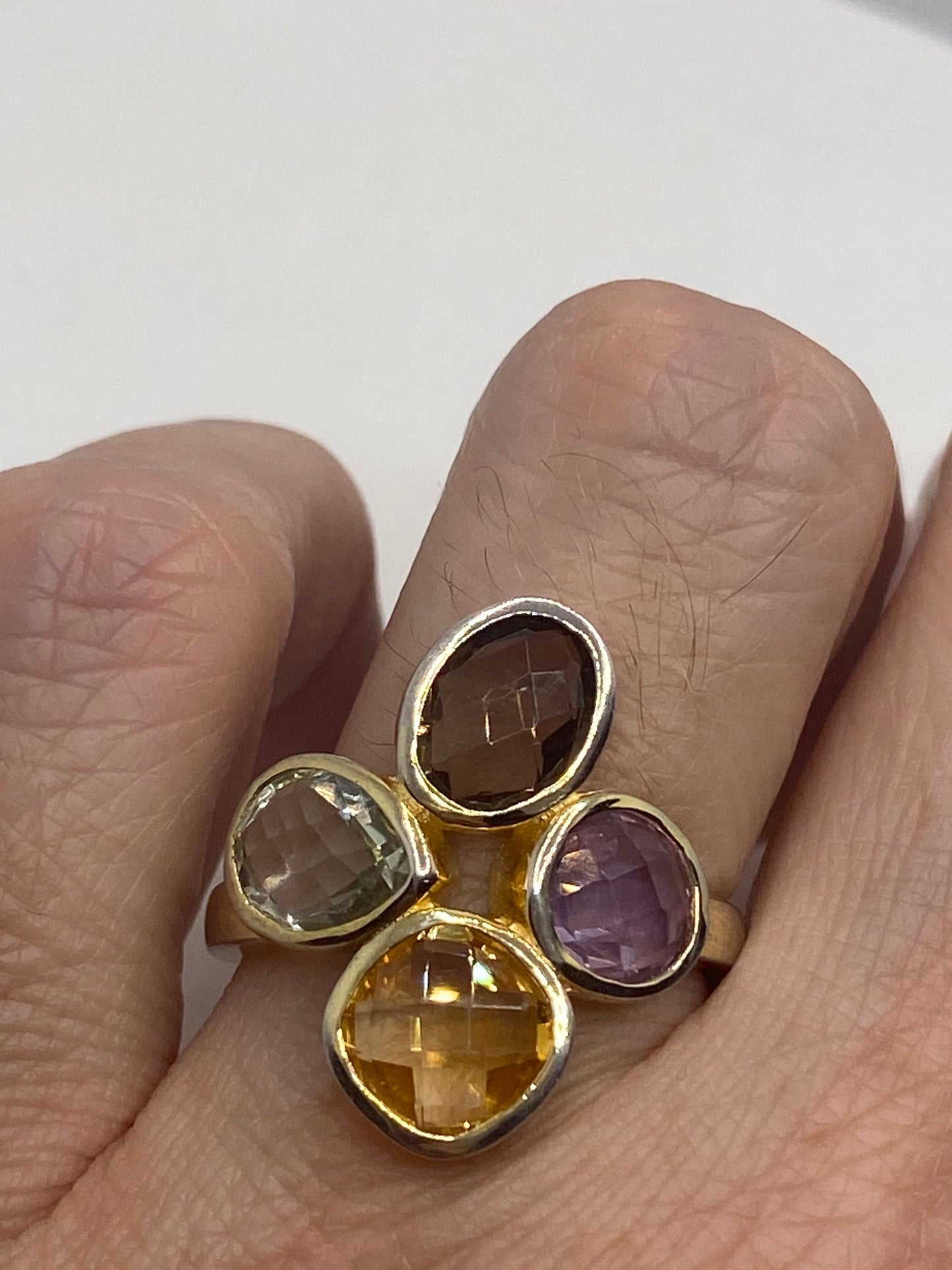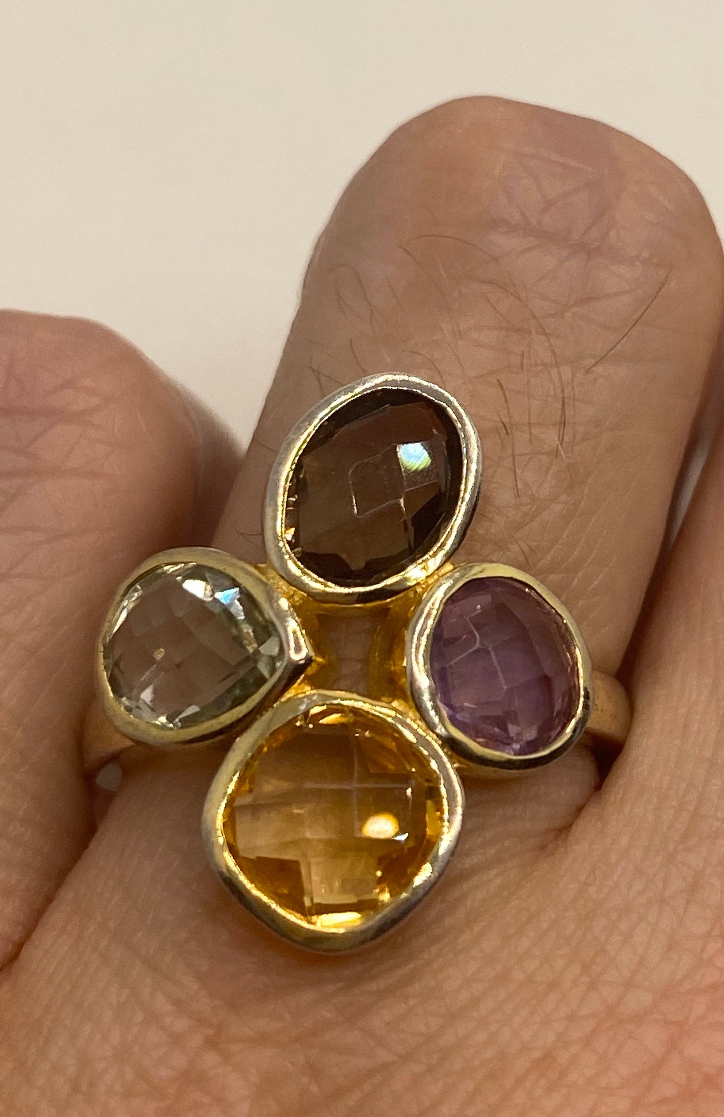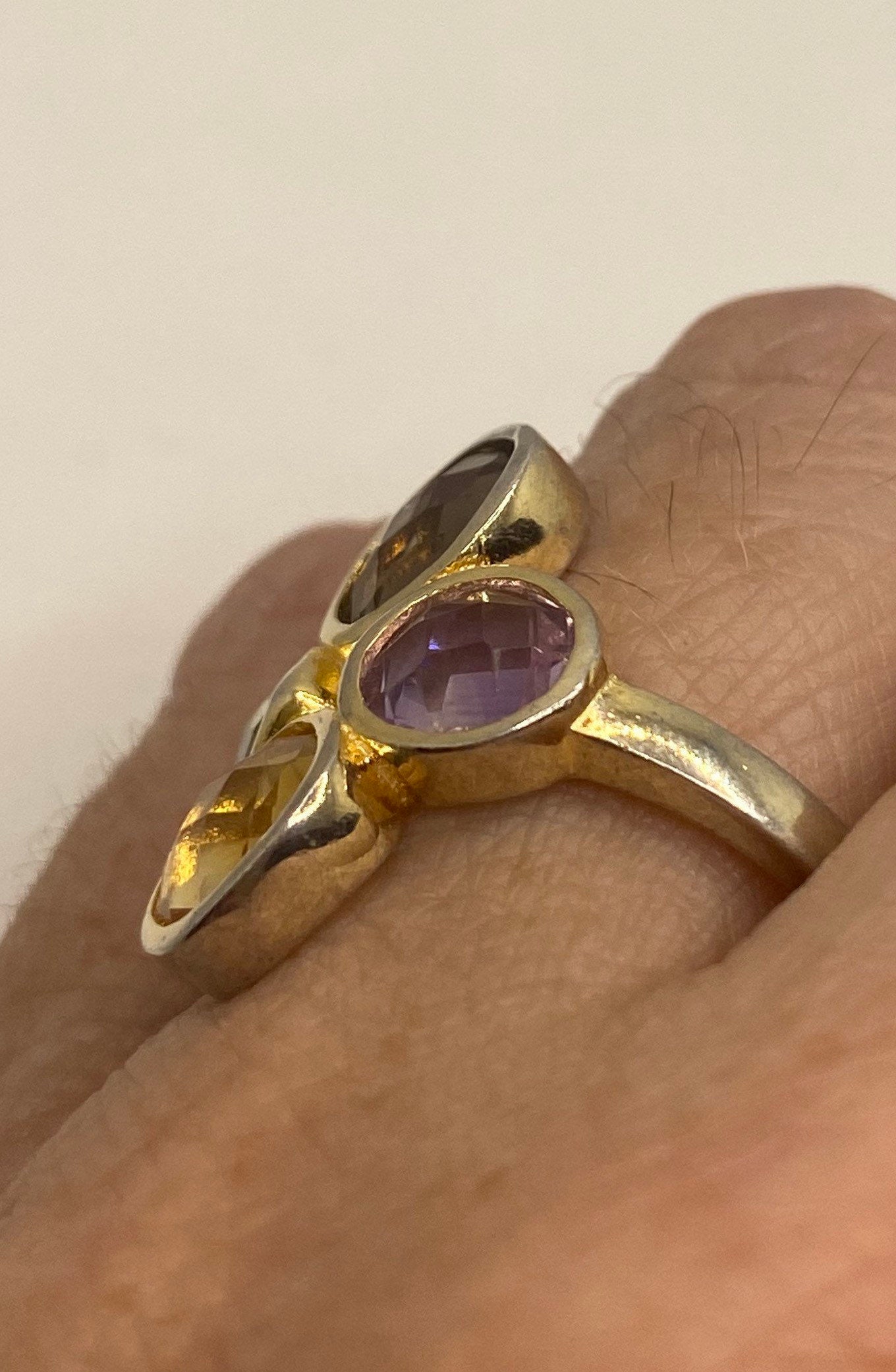 Vintage Citrine Smoky Topaz Green and Purple Amethyst 925 Sterling Silver Ring