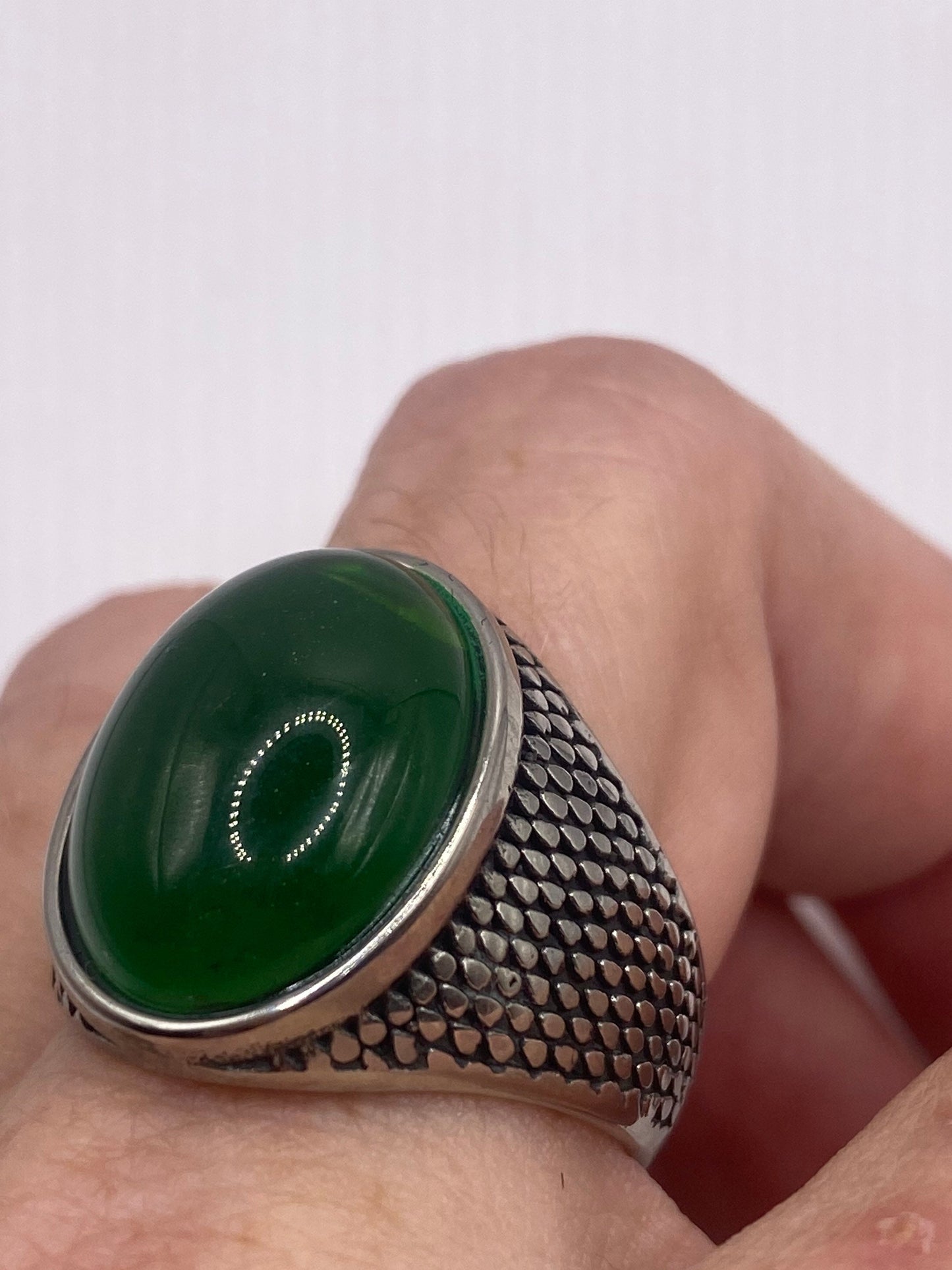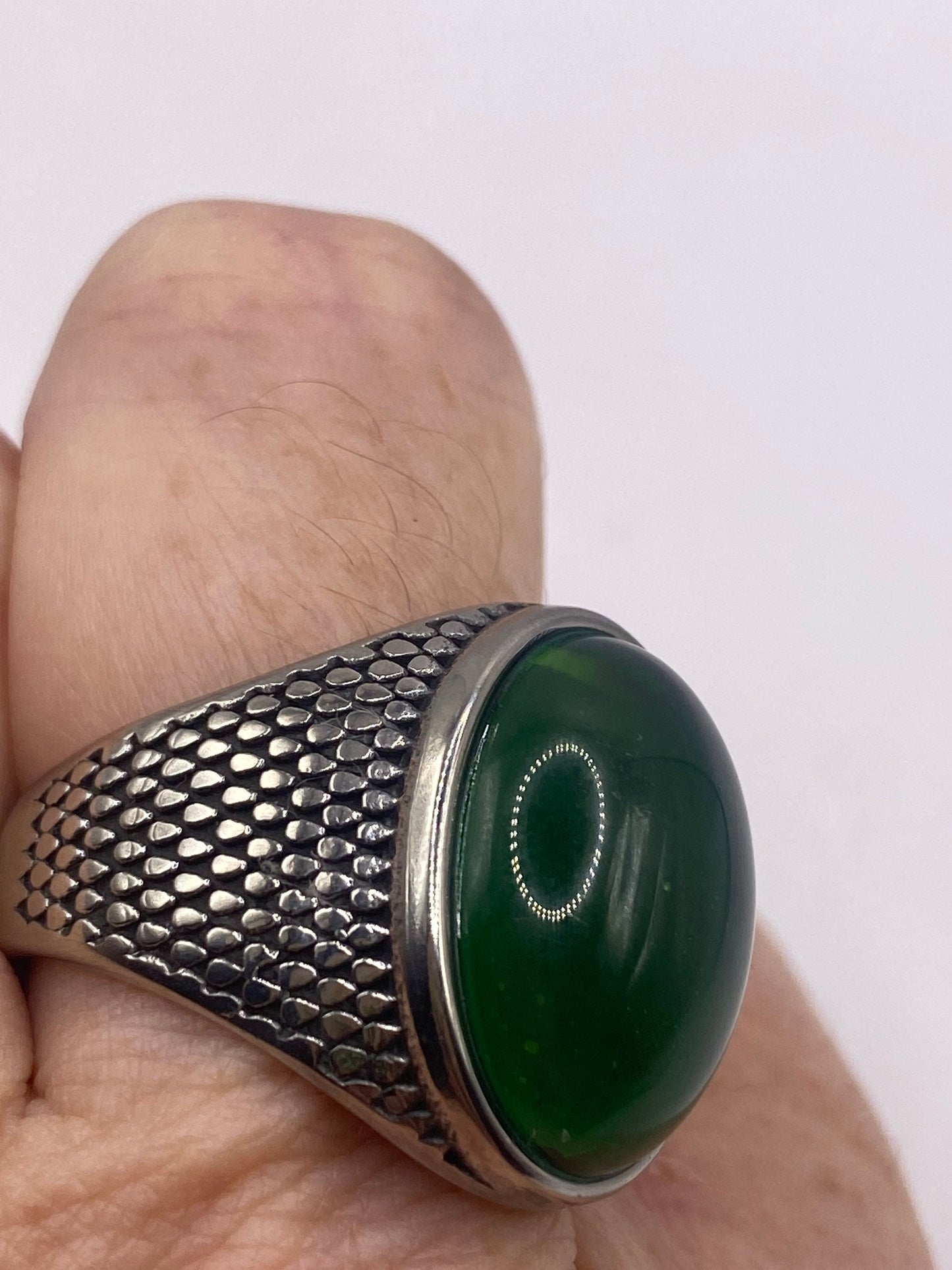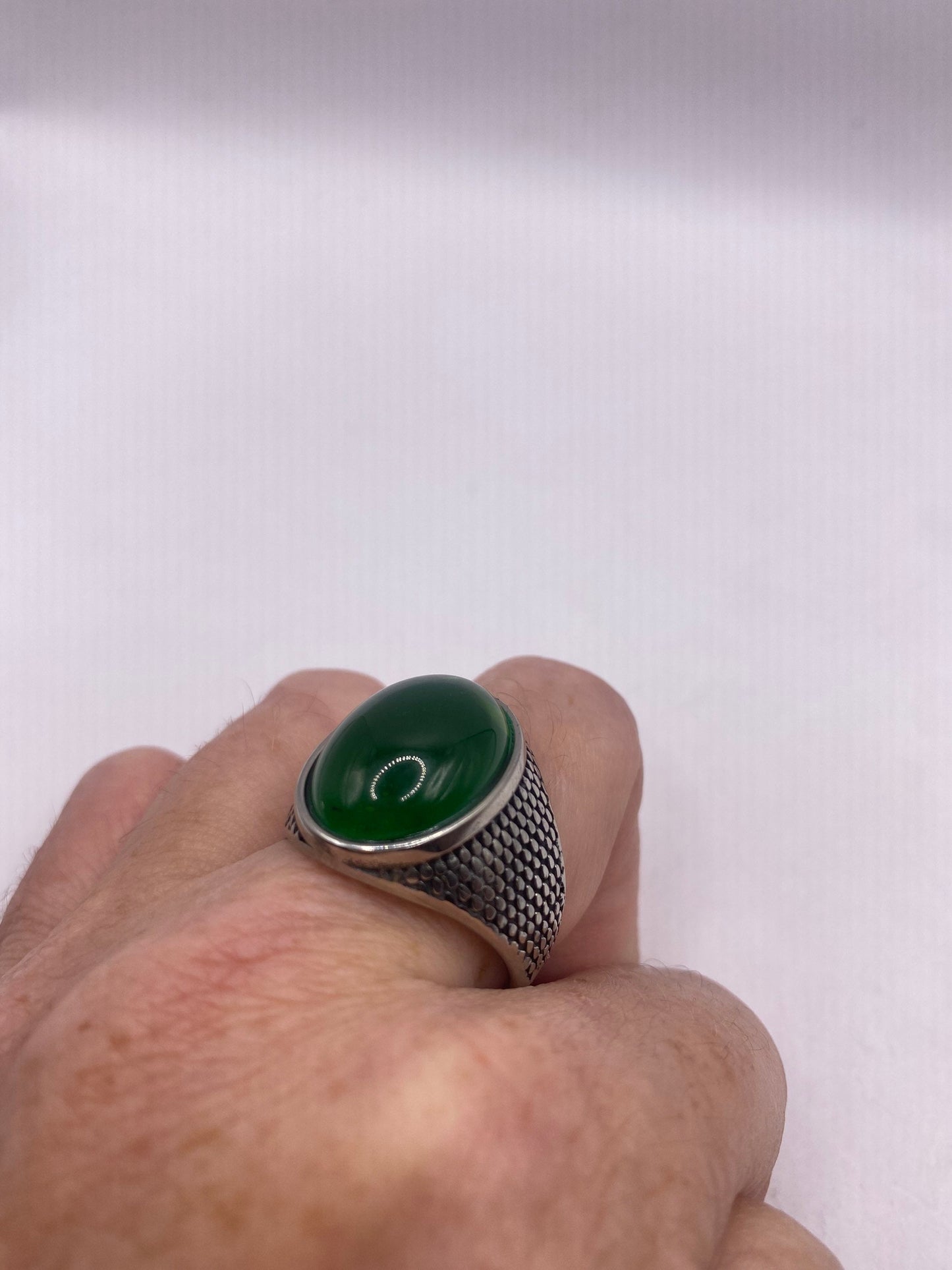 Vintage Deco Green Chrysopraise Mens Ring