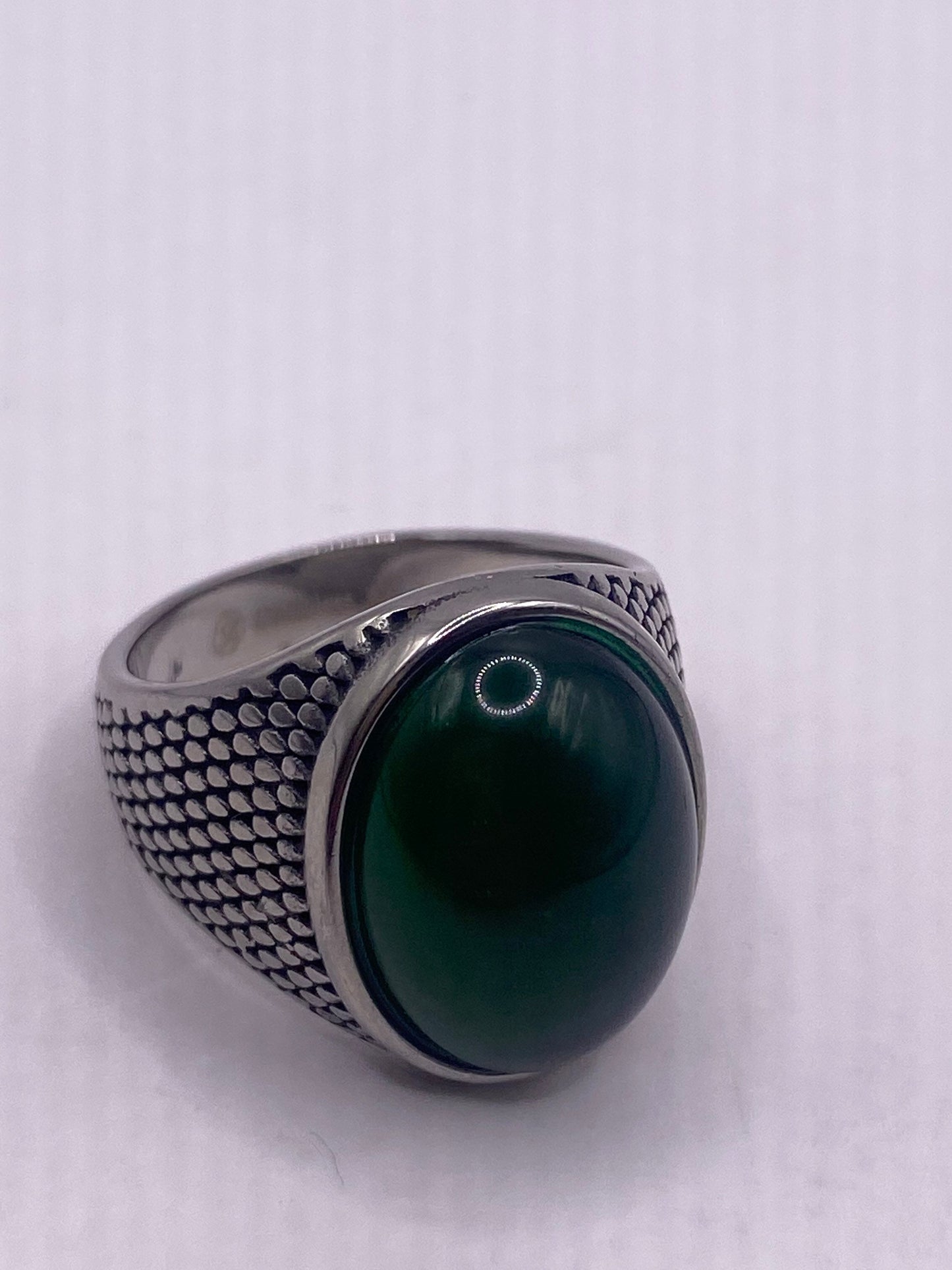 Vintage gemstone inlay stainless steel men's ring.