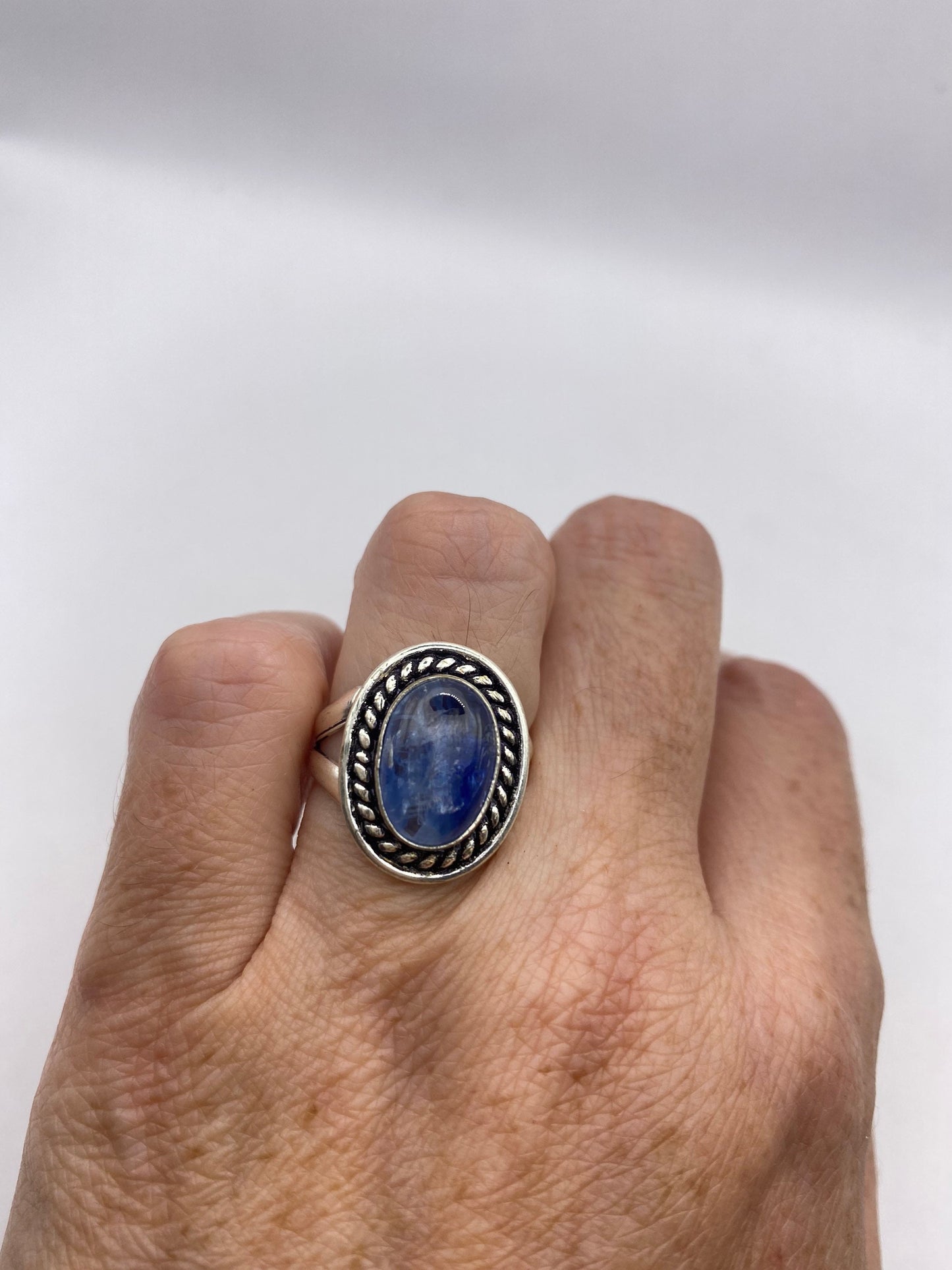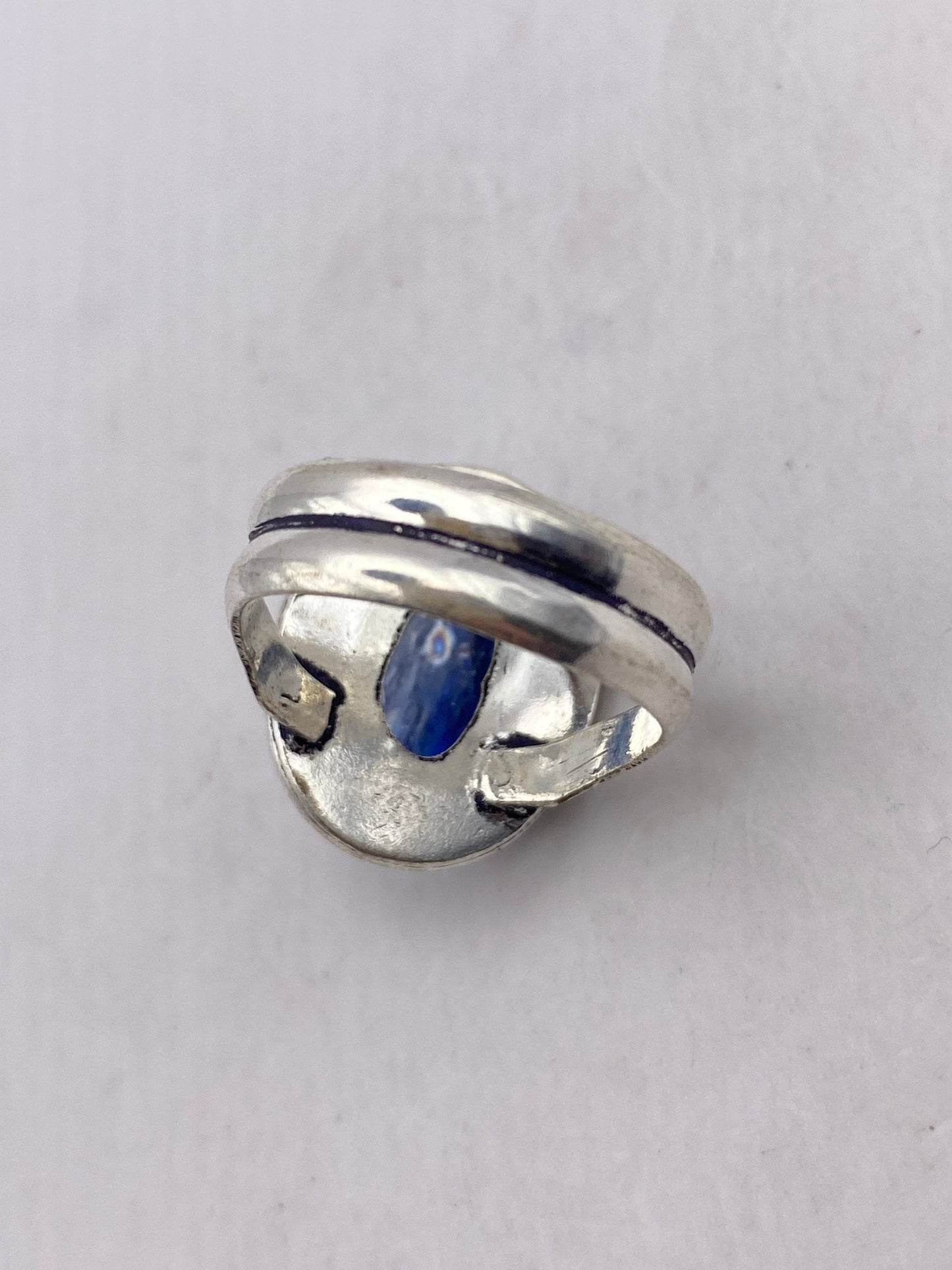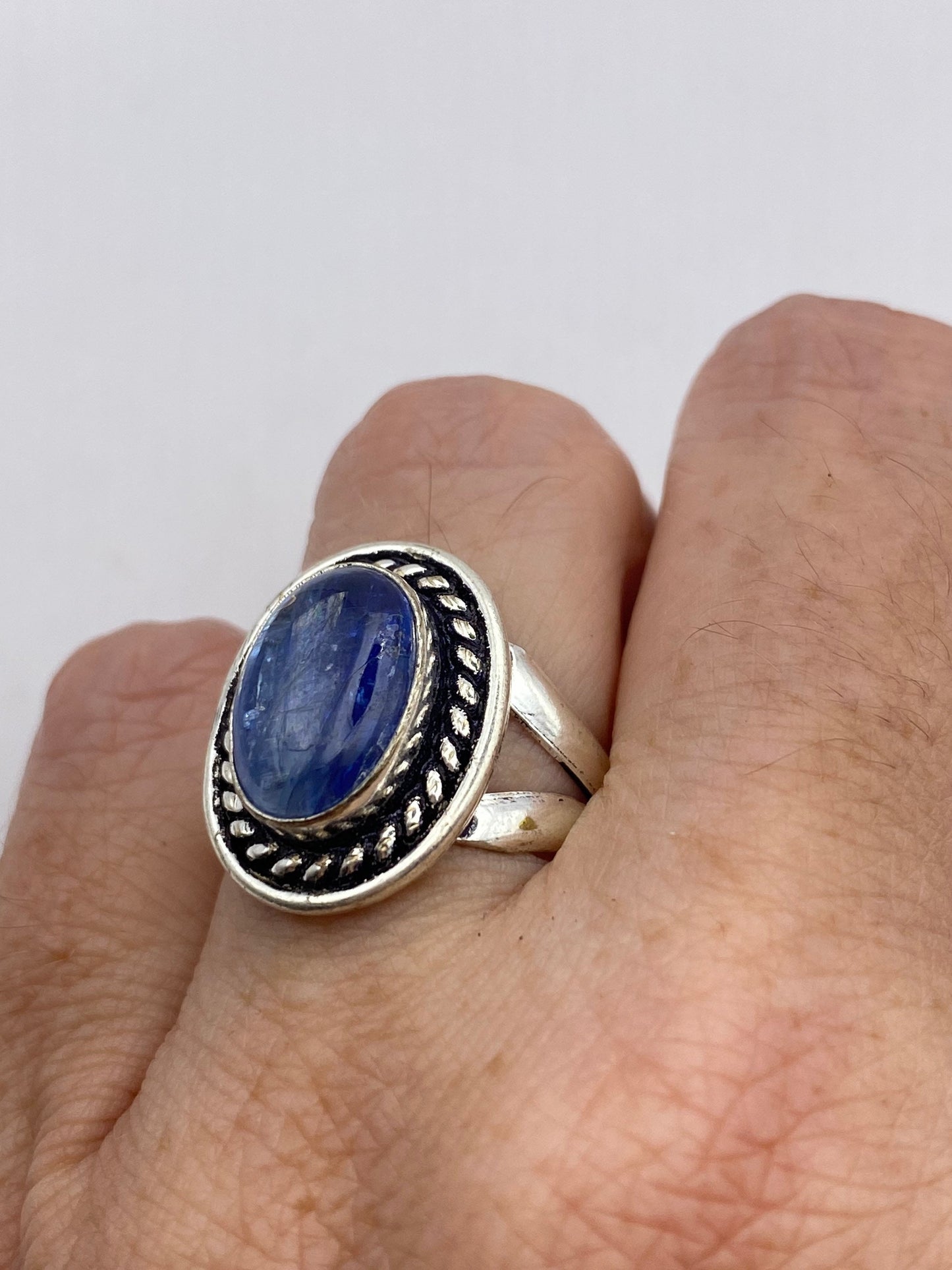 Vintage Deep Blue Sapphire White Bronze Silver Cocktail Ring