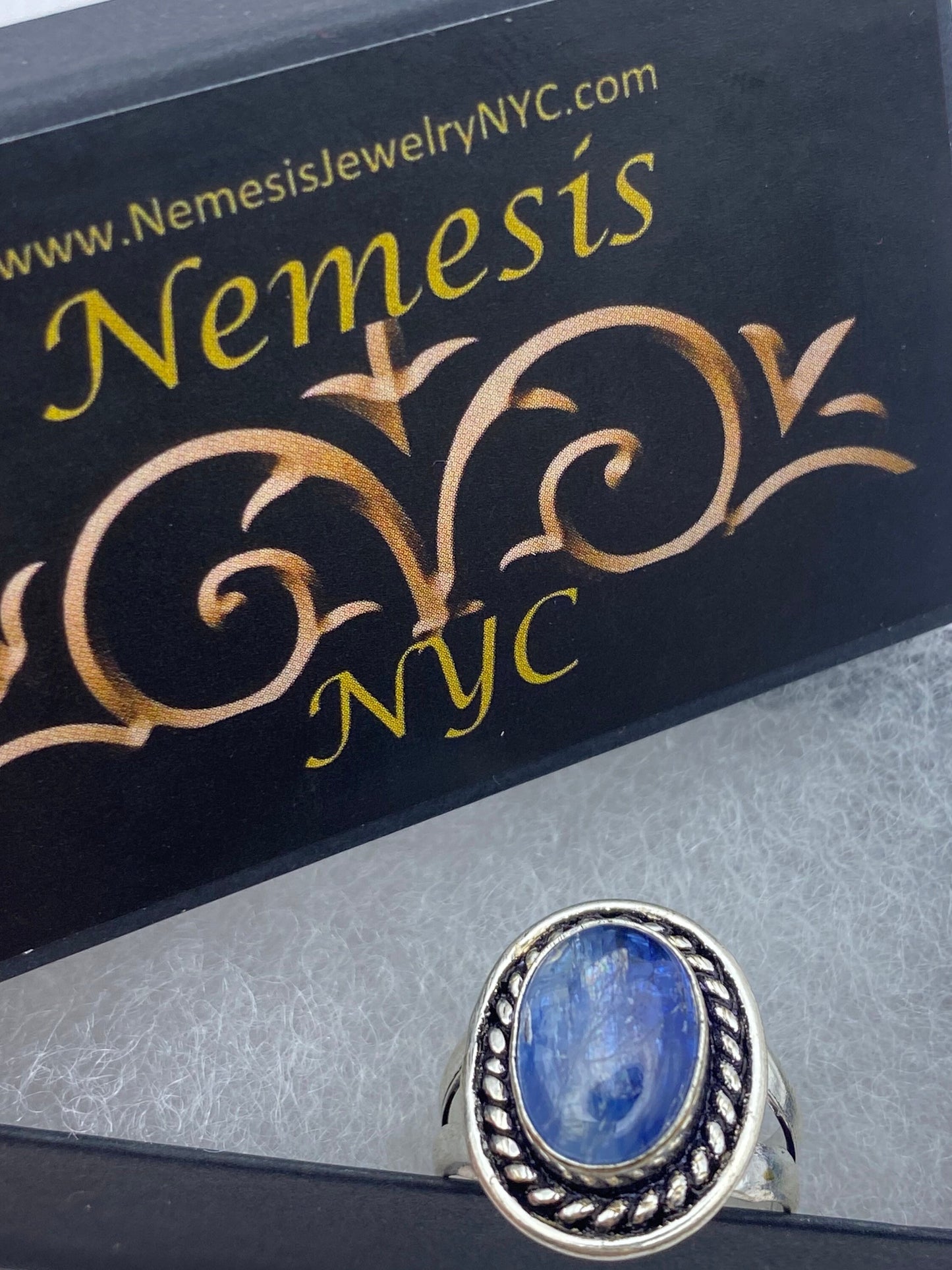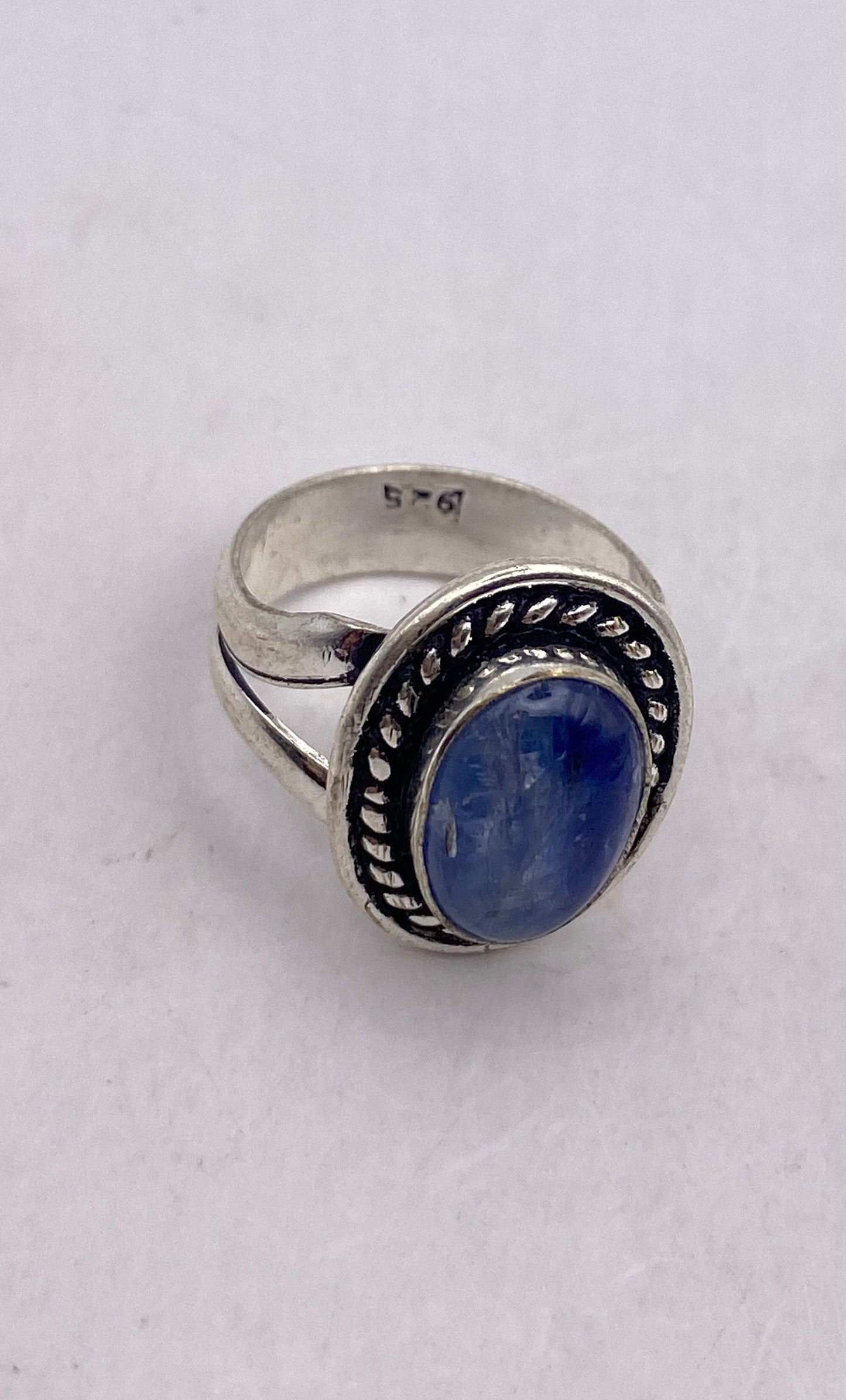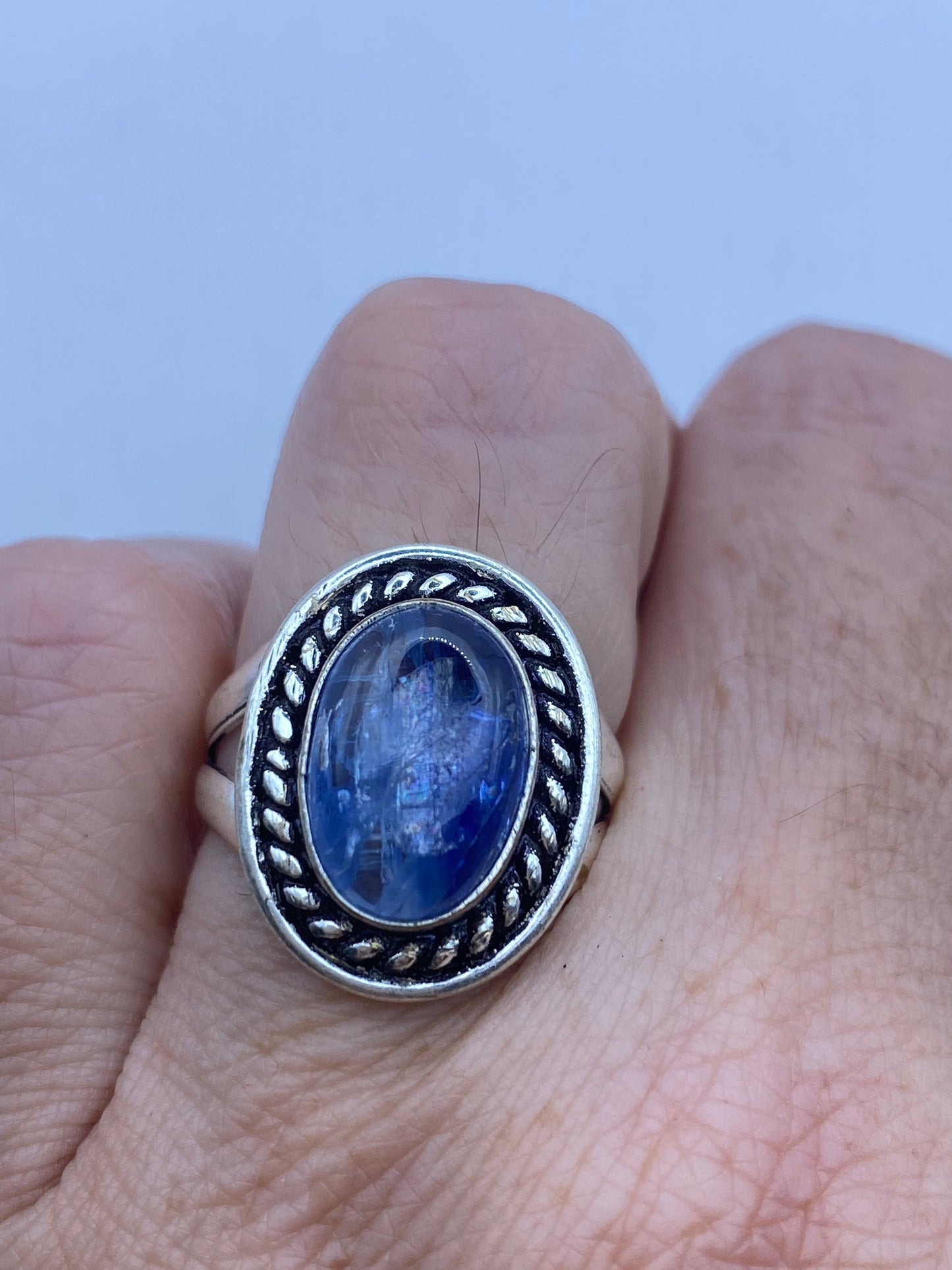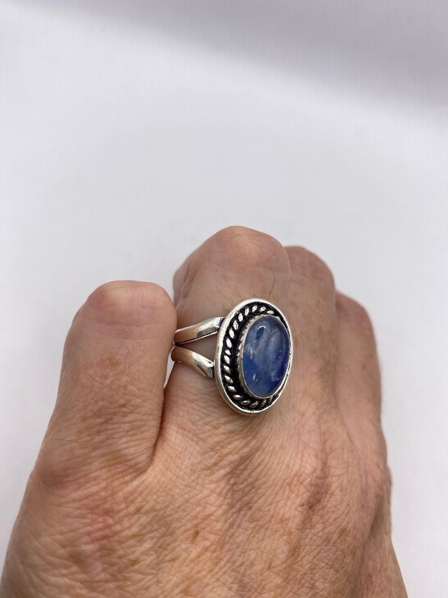 Vintage Deep Blue Sapphire White Bronze Silver Cocktail Ring