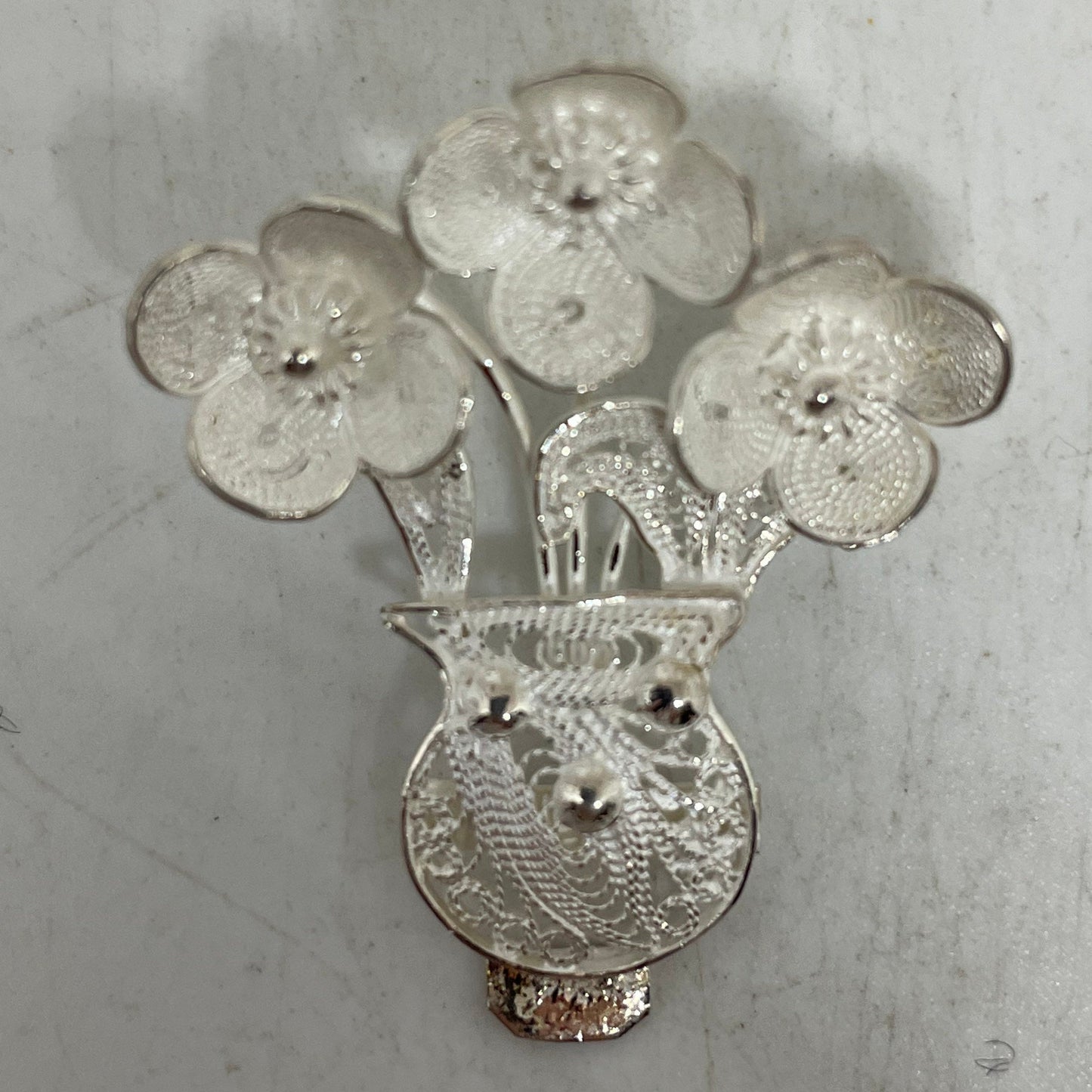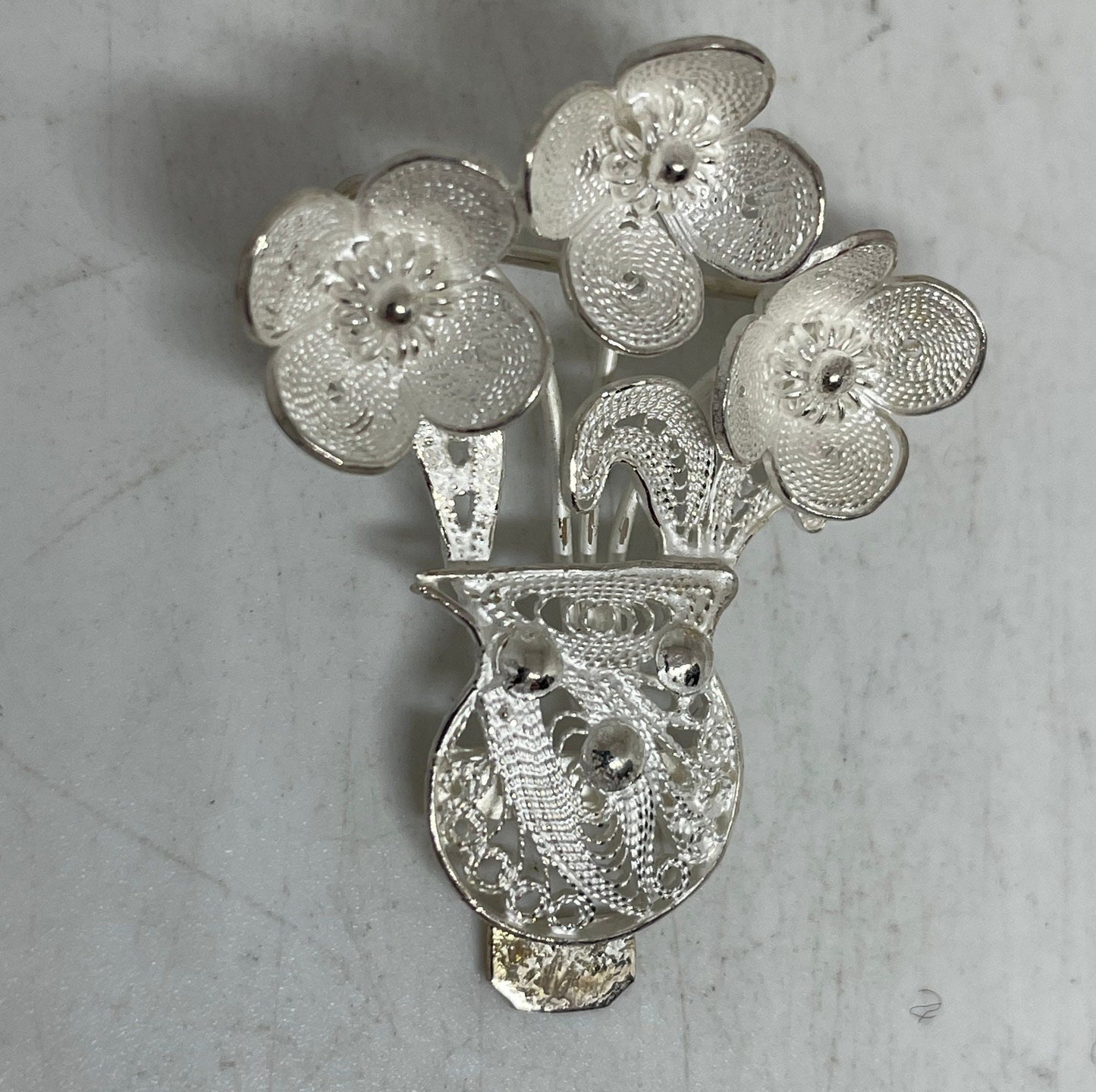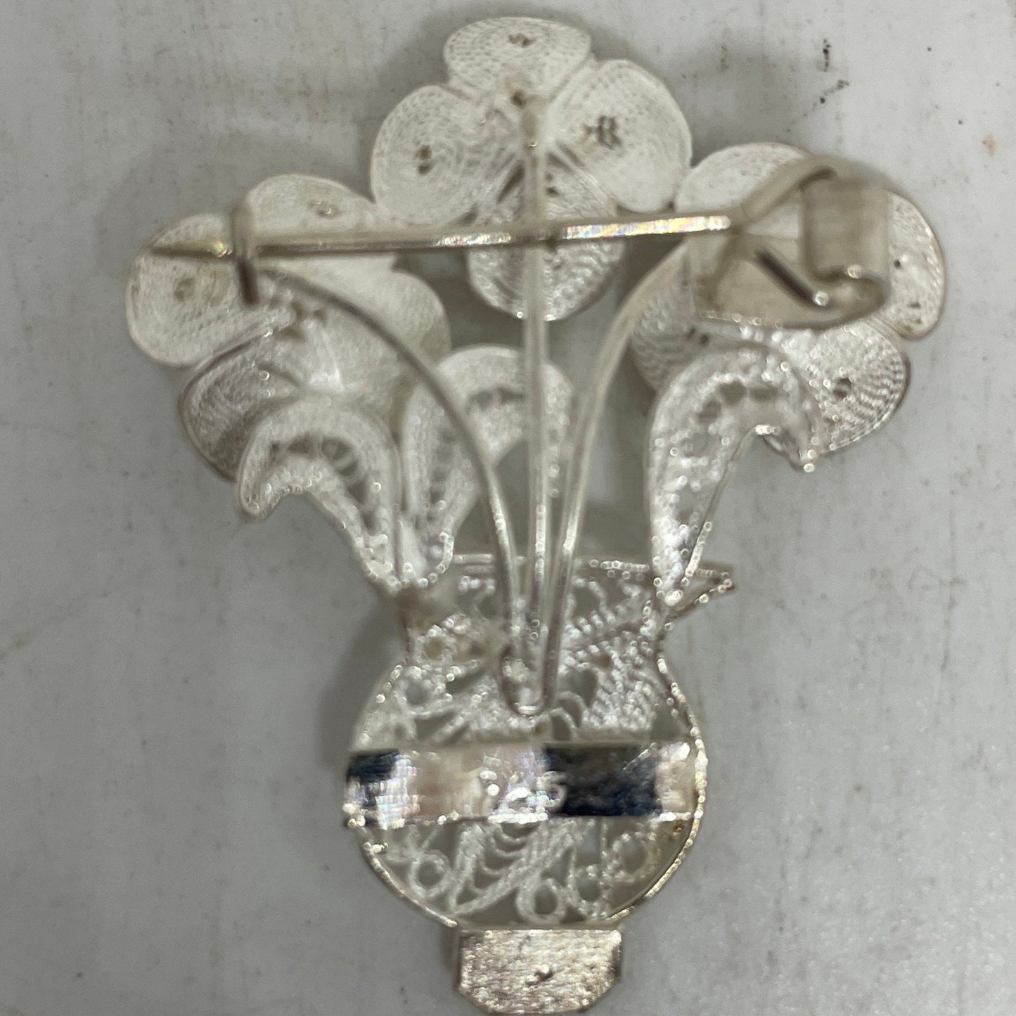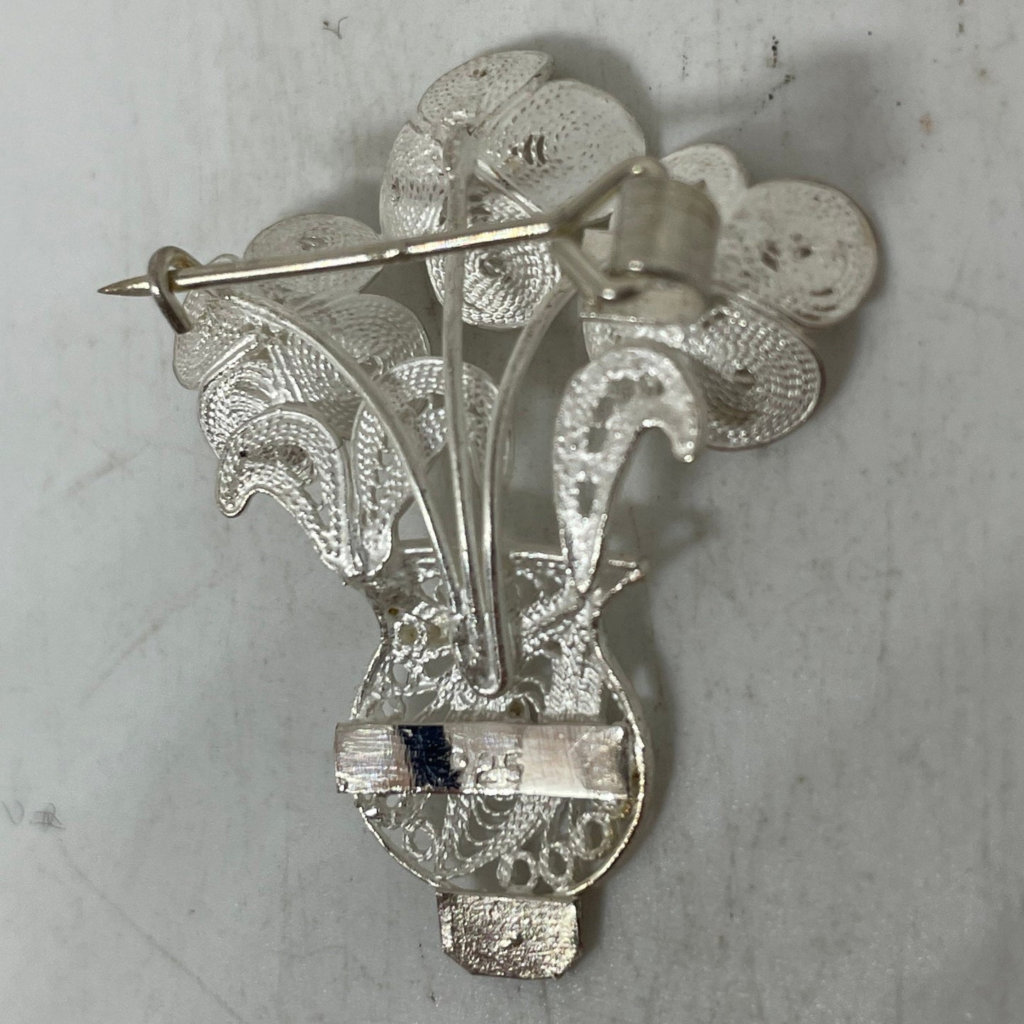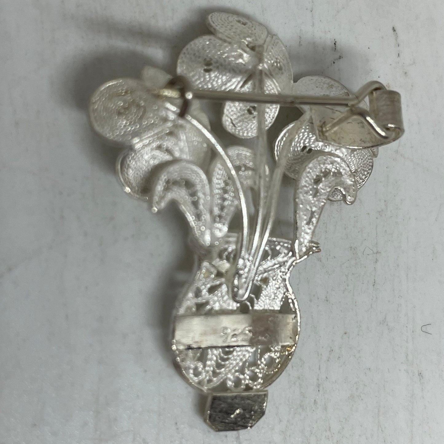Vintage Filigree Pin 925 Sterling Silver Brooch
