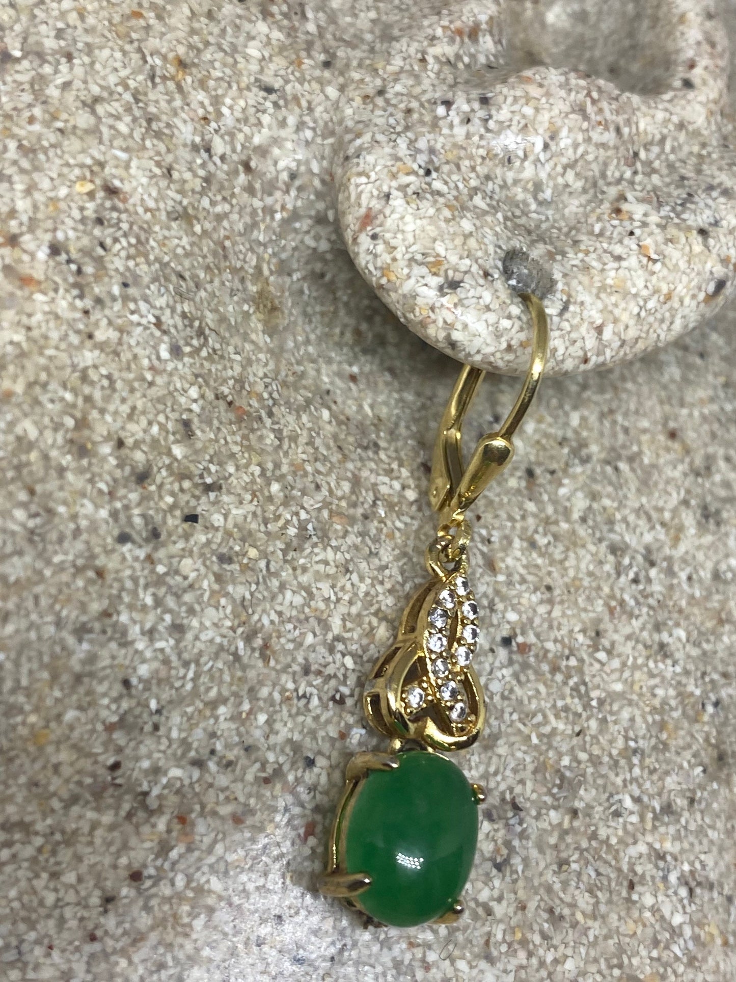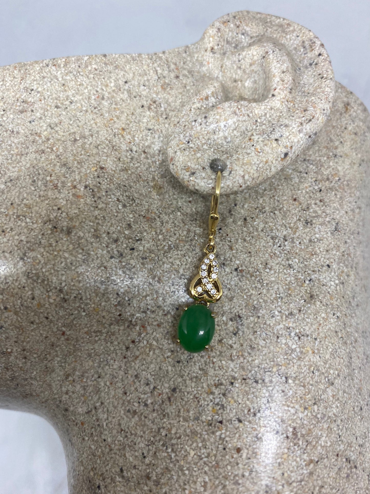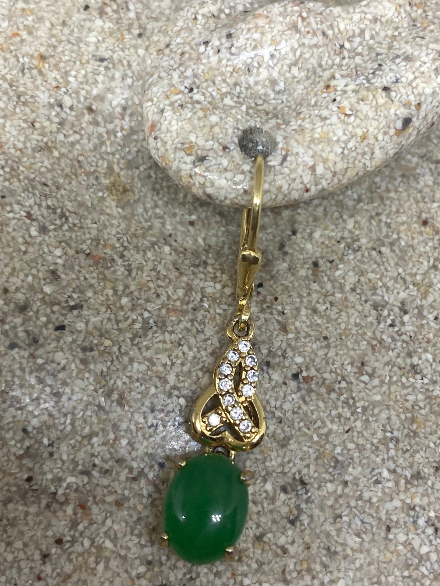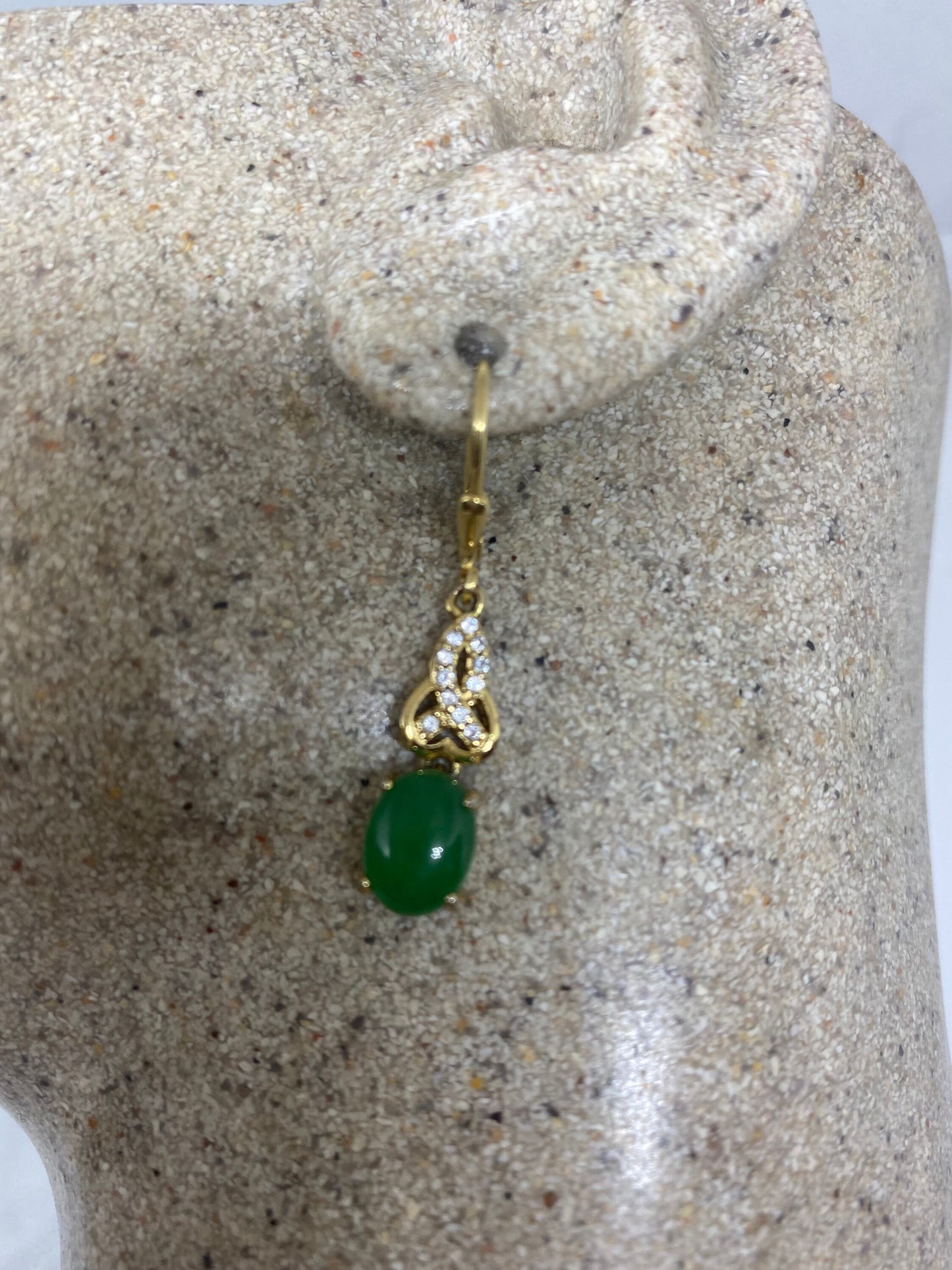 Vintage Fun Green Jade Gemstone Golden Bronze Gold filled Lever Back Earrings