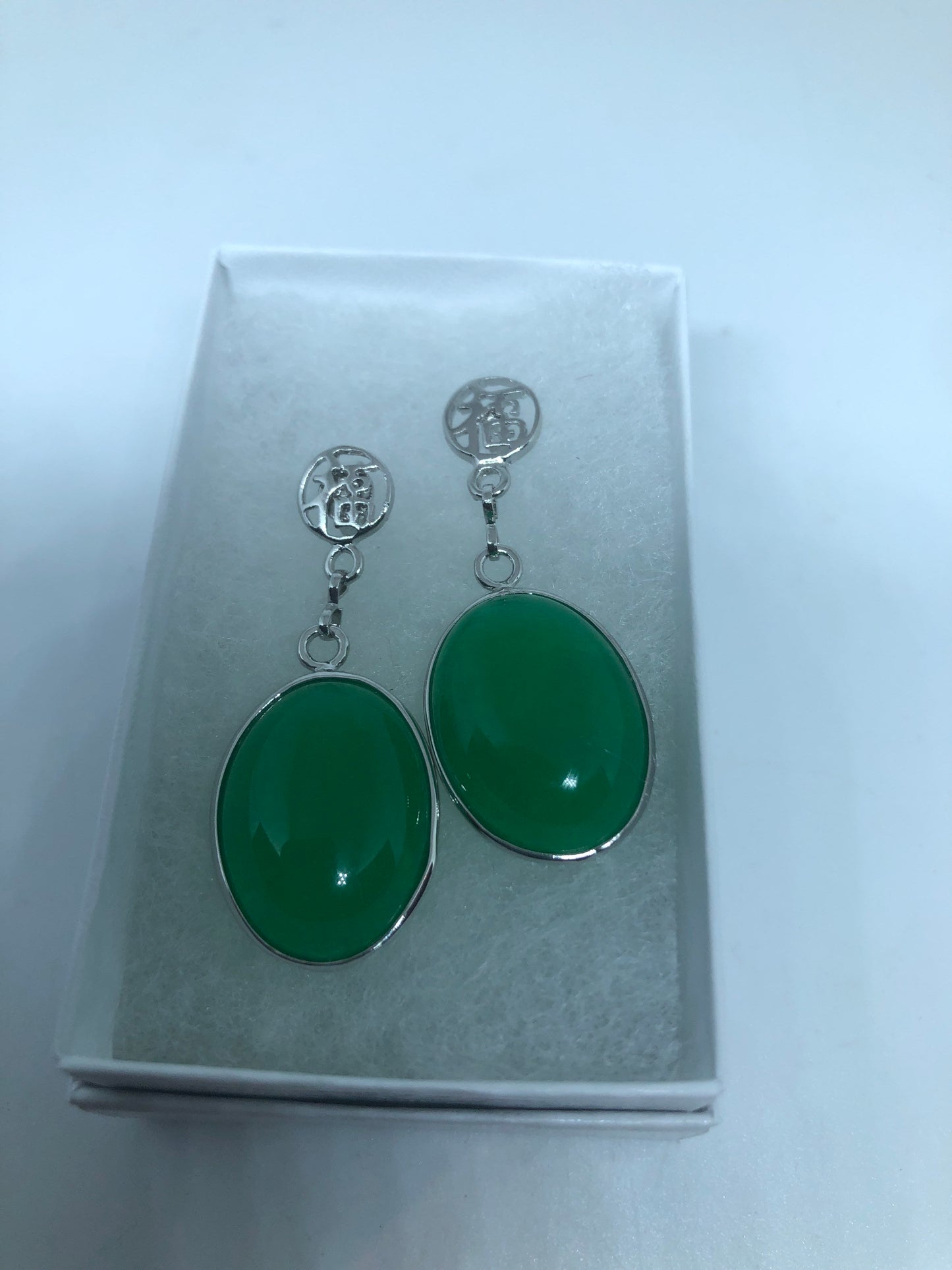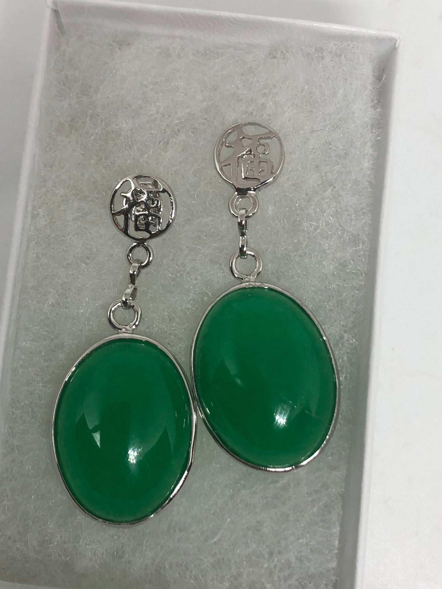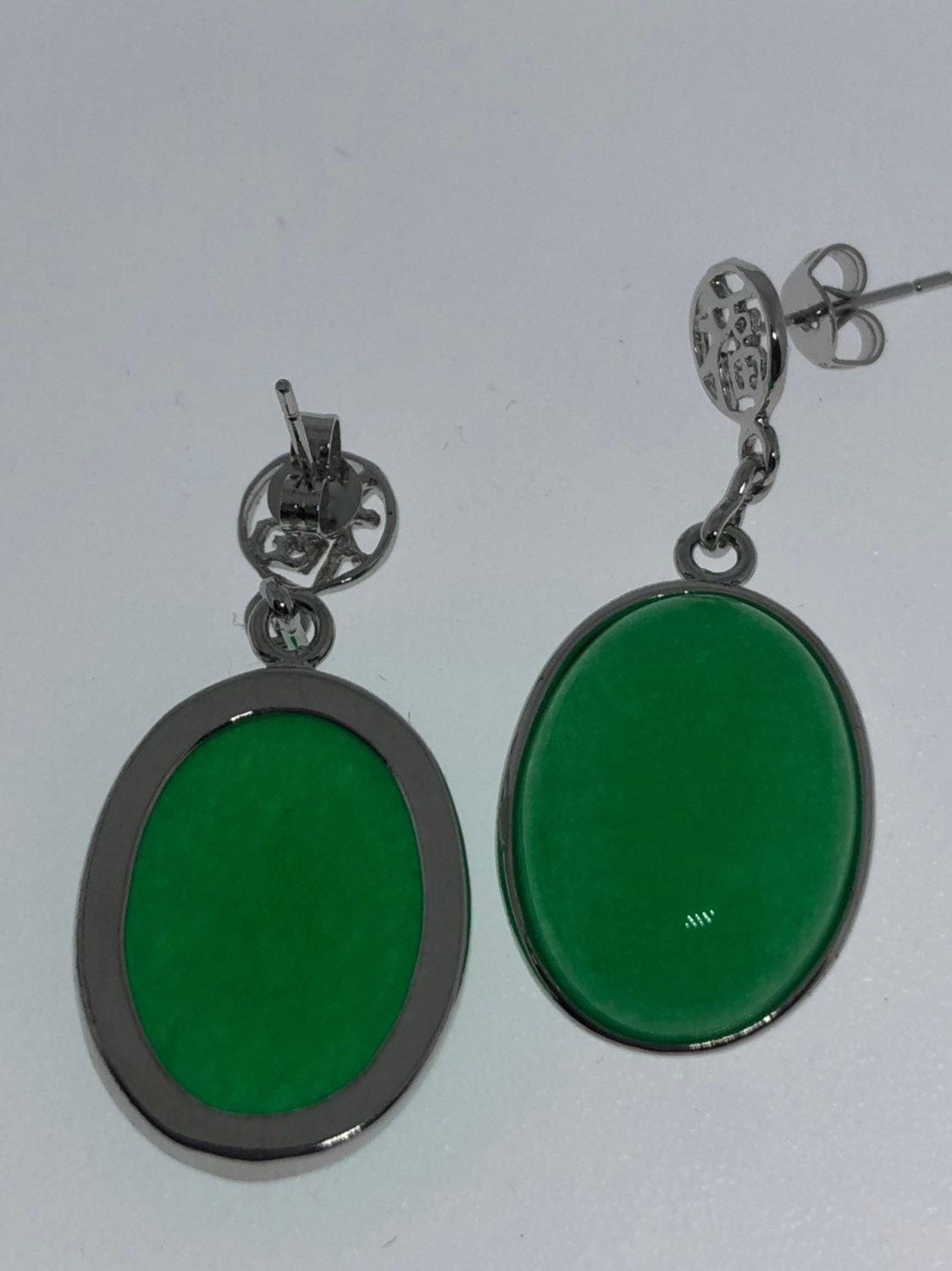 Delicate and detailed nephrite Jade and stone and white bronze silver earrings