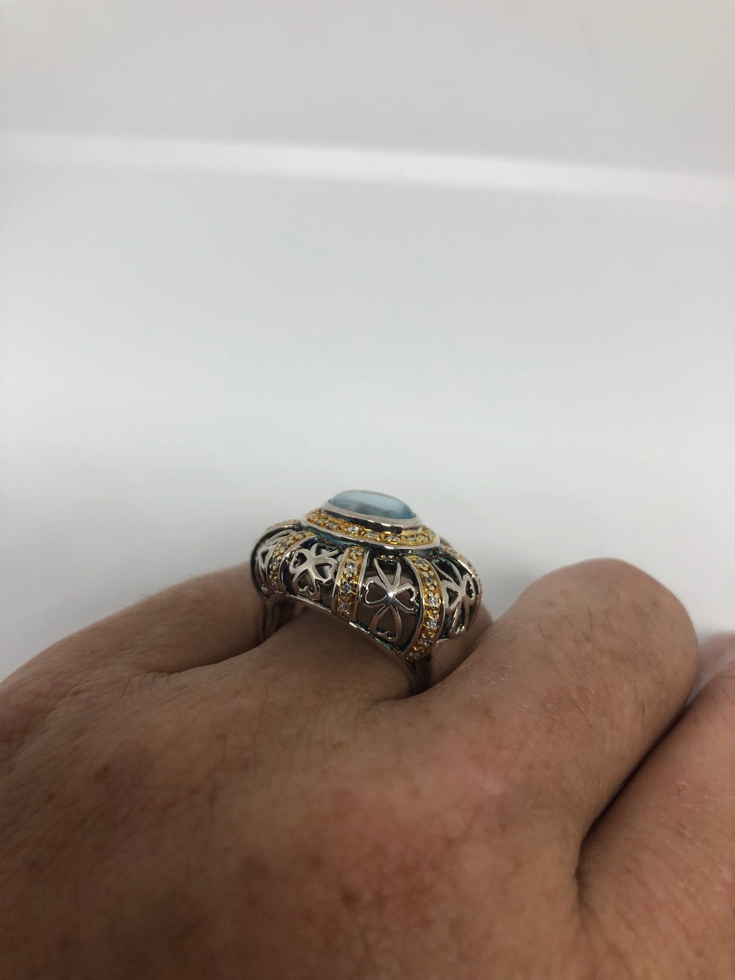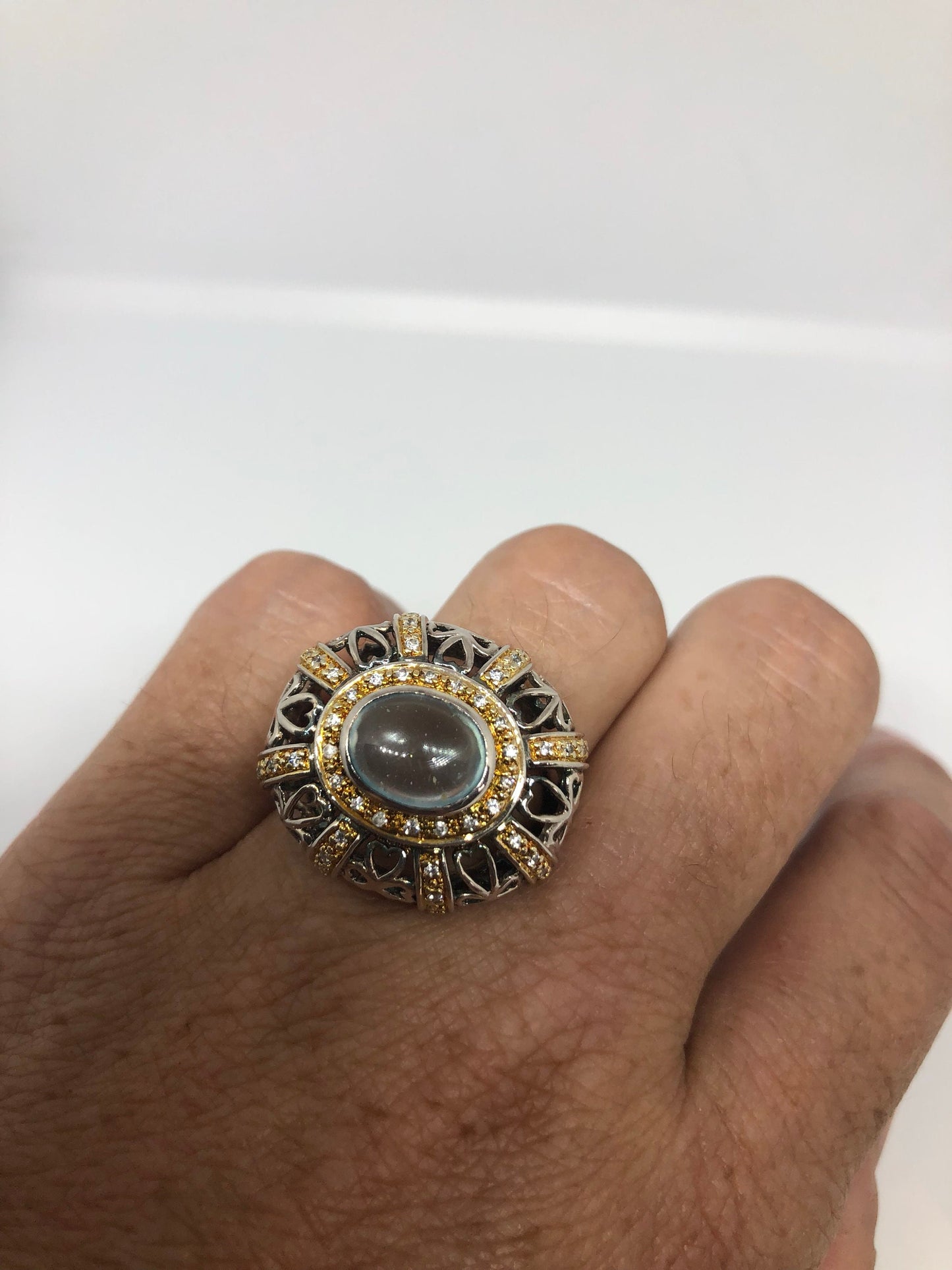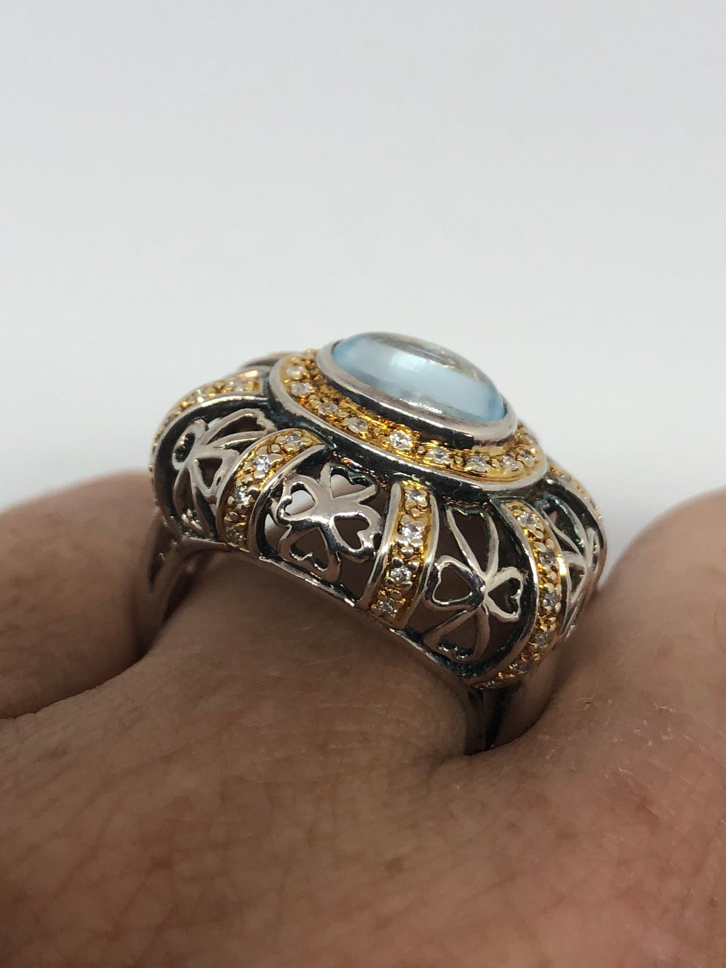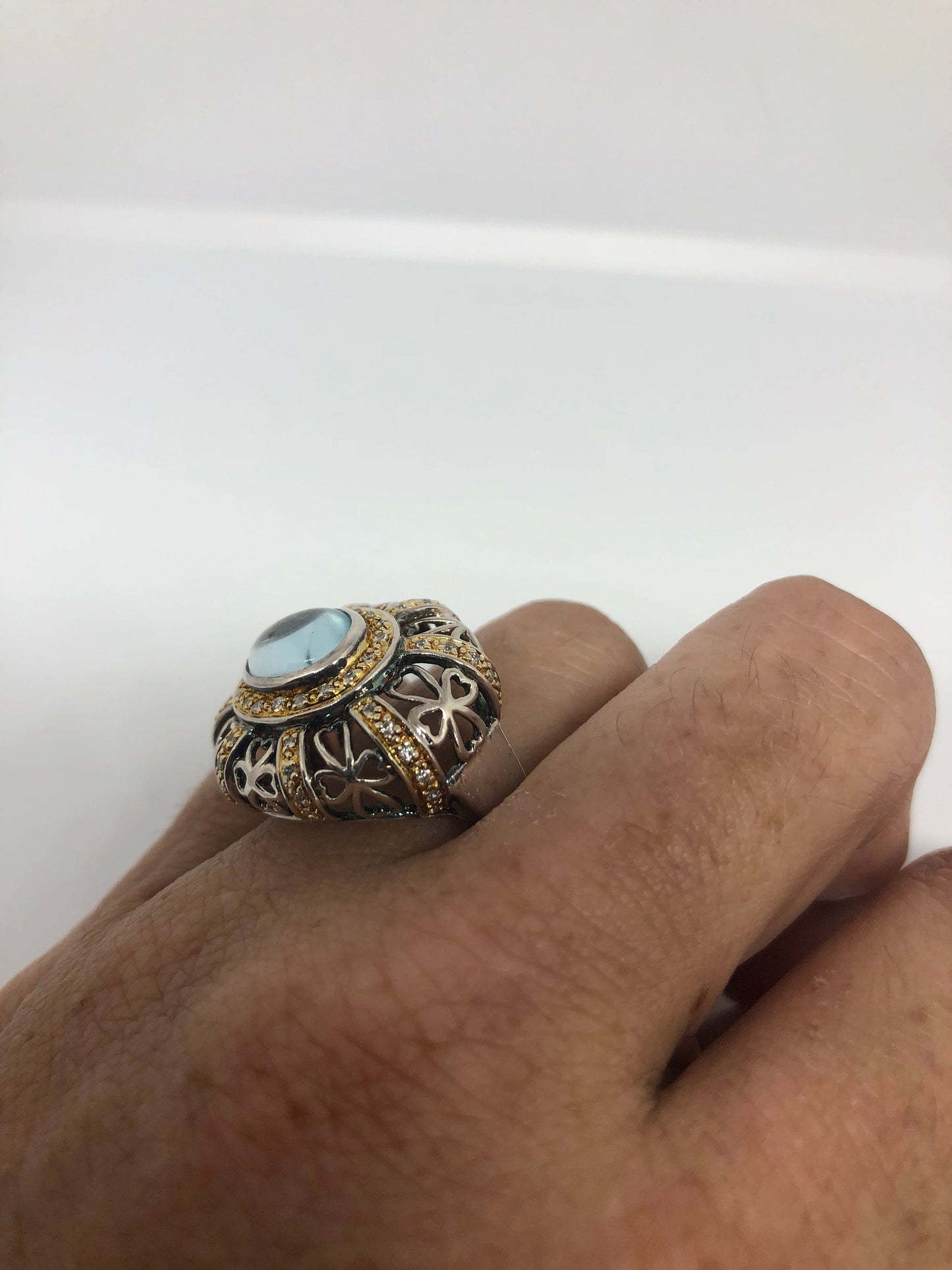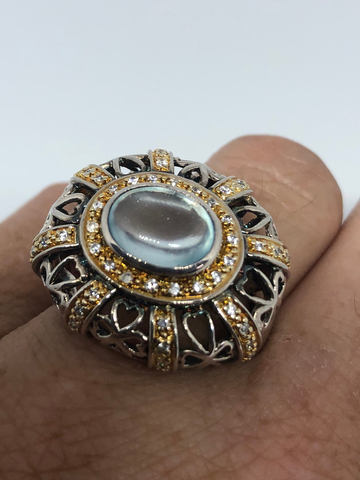 Vintage Genuine Aquamarine White Sapphire 925 Sterling Silver Ring