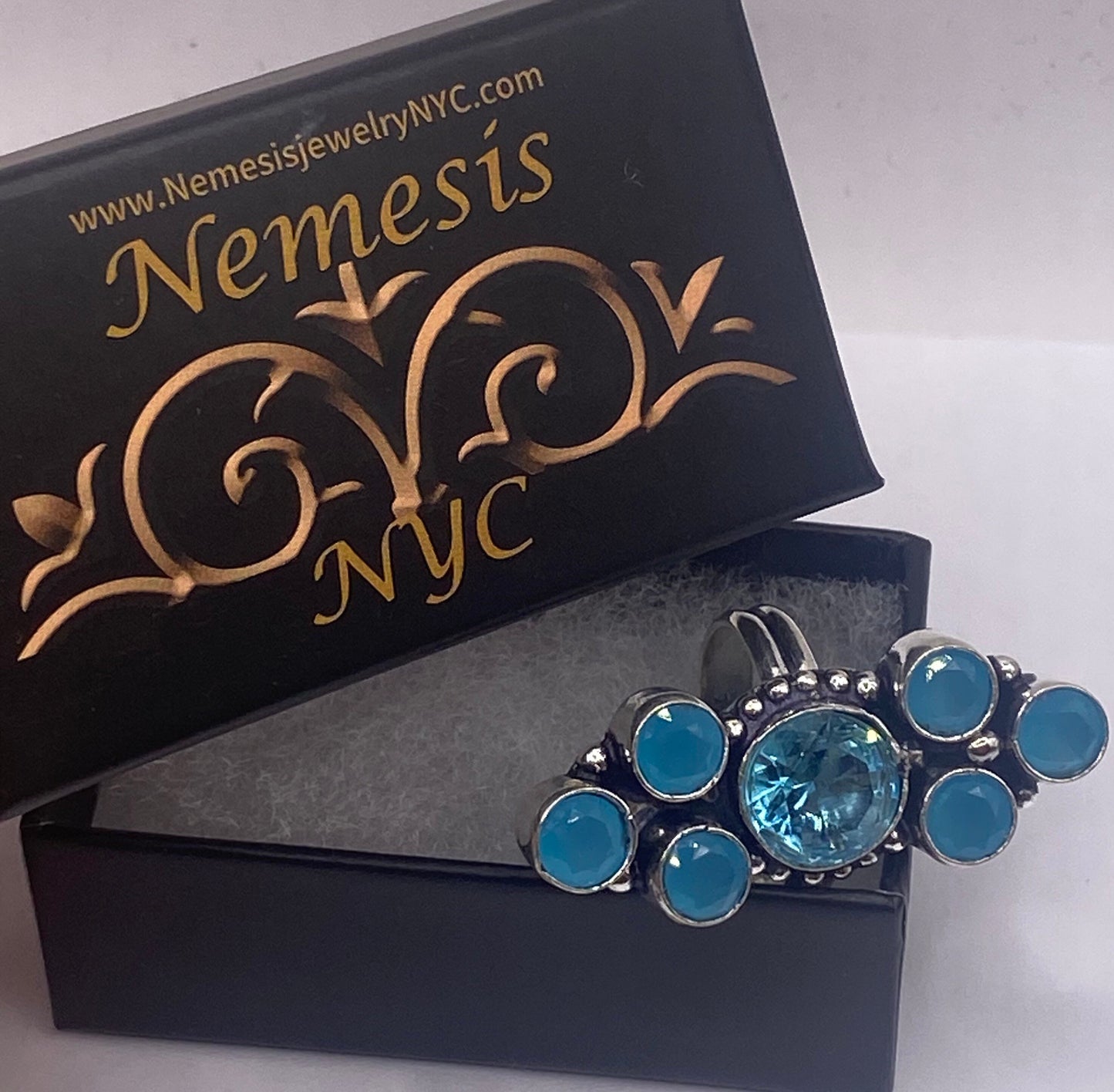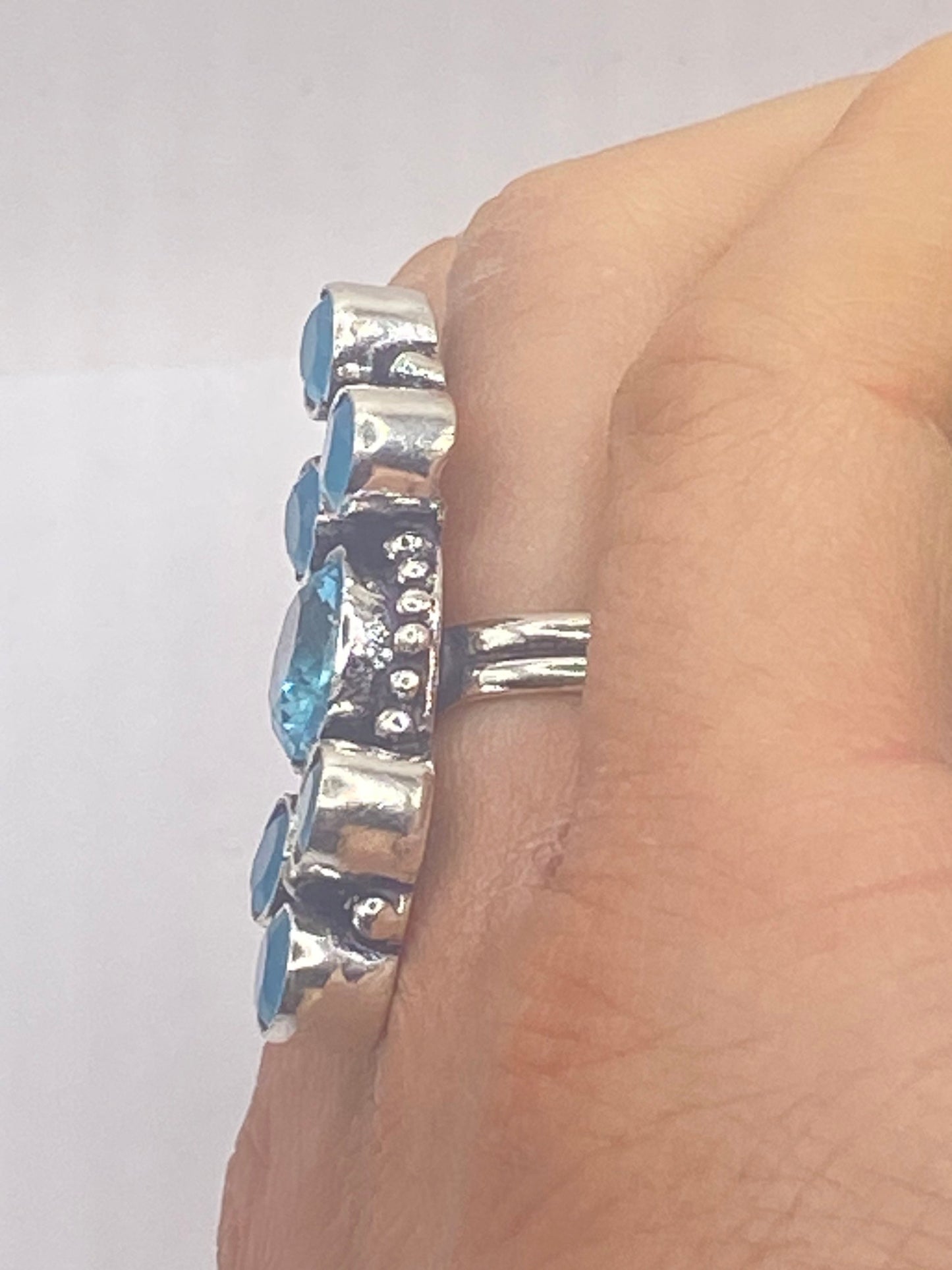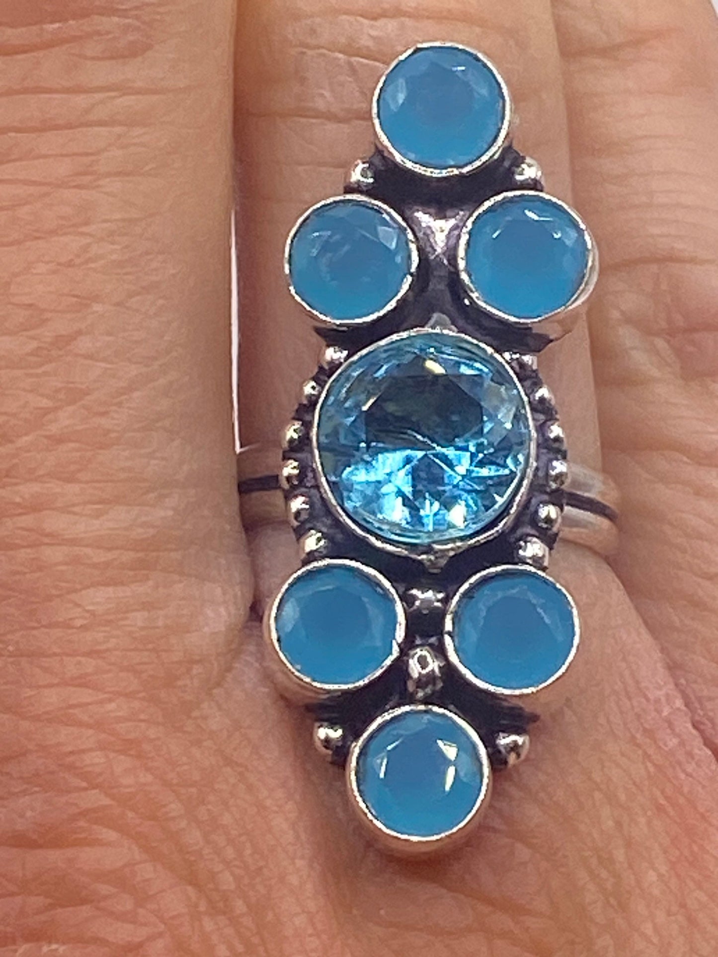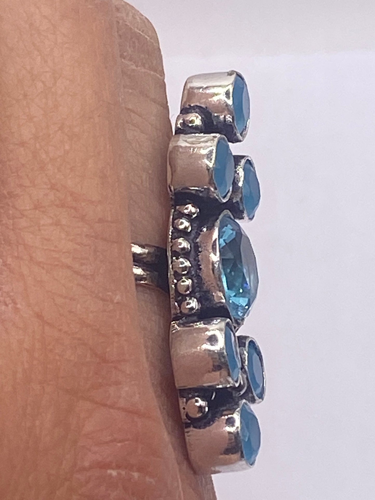 Large genuine aqua blue topaz chalcedony Vintage ring