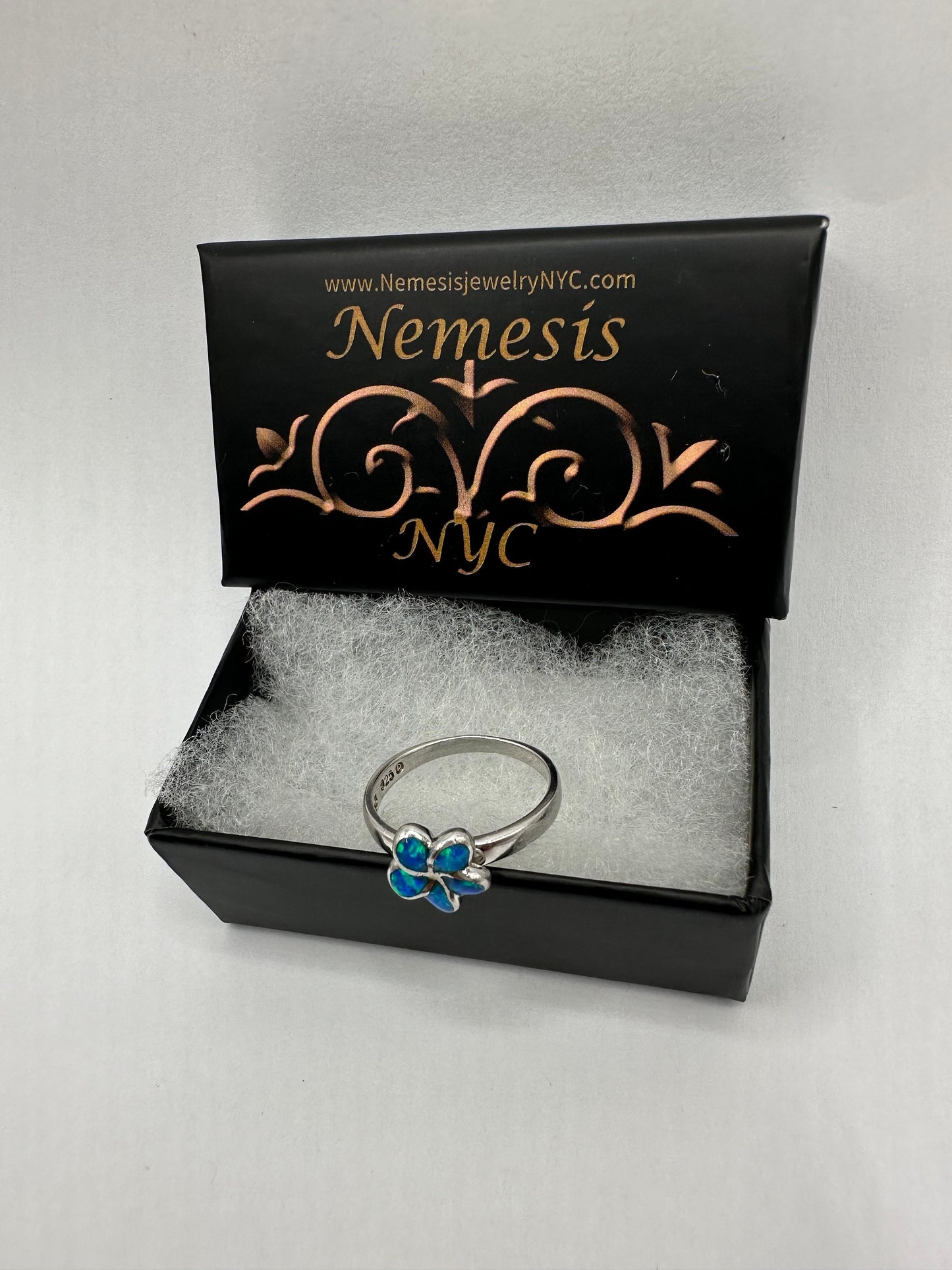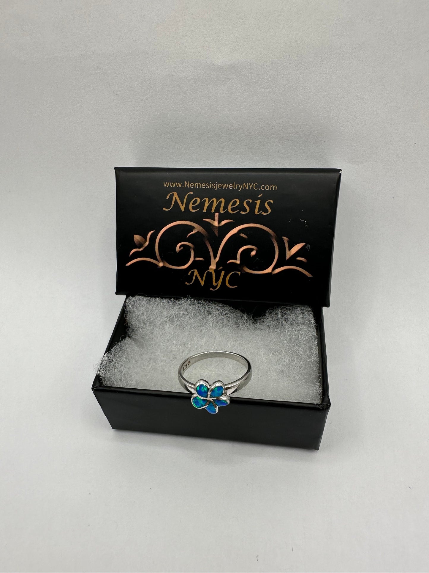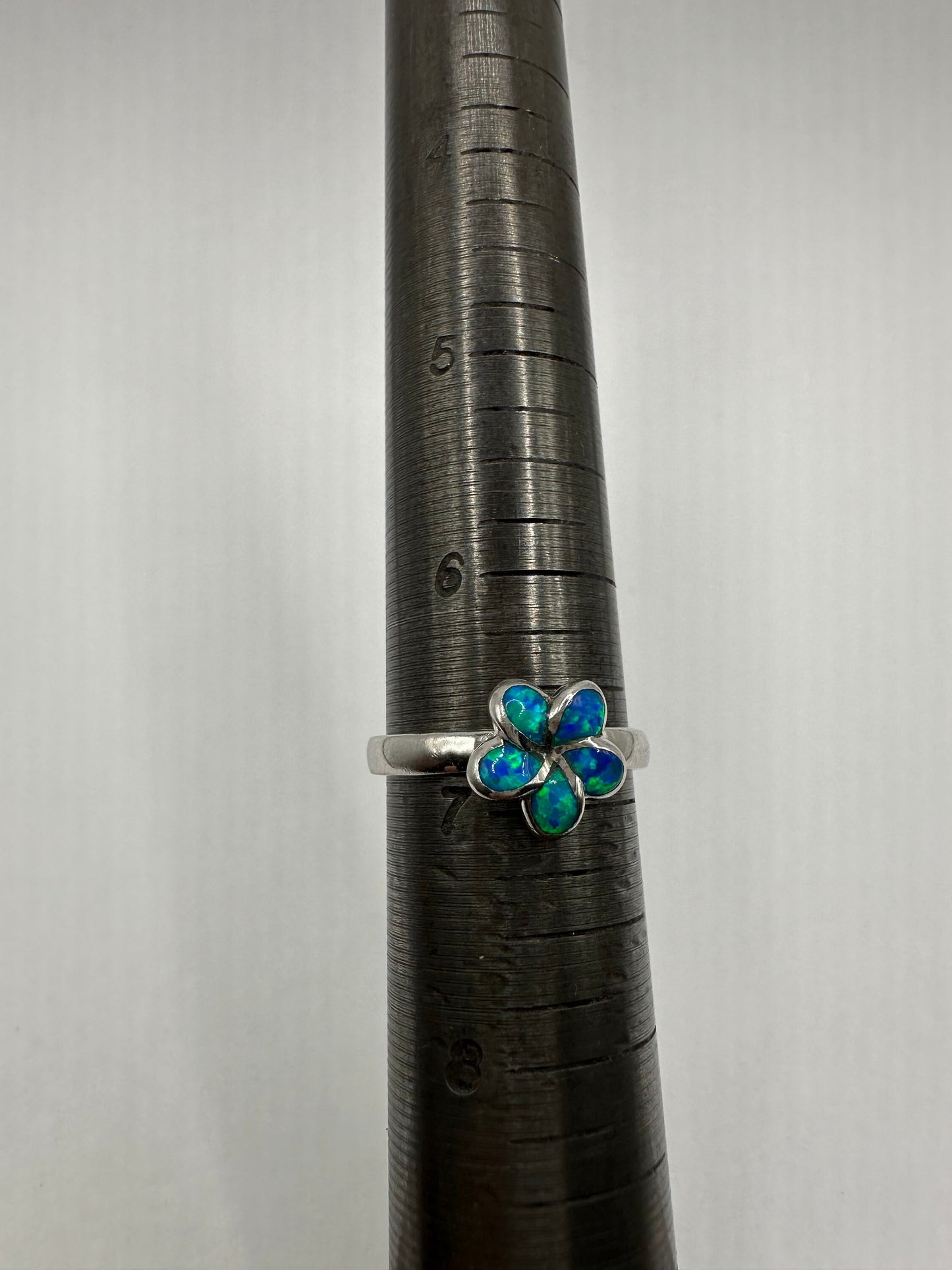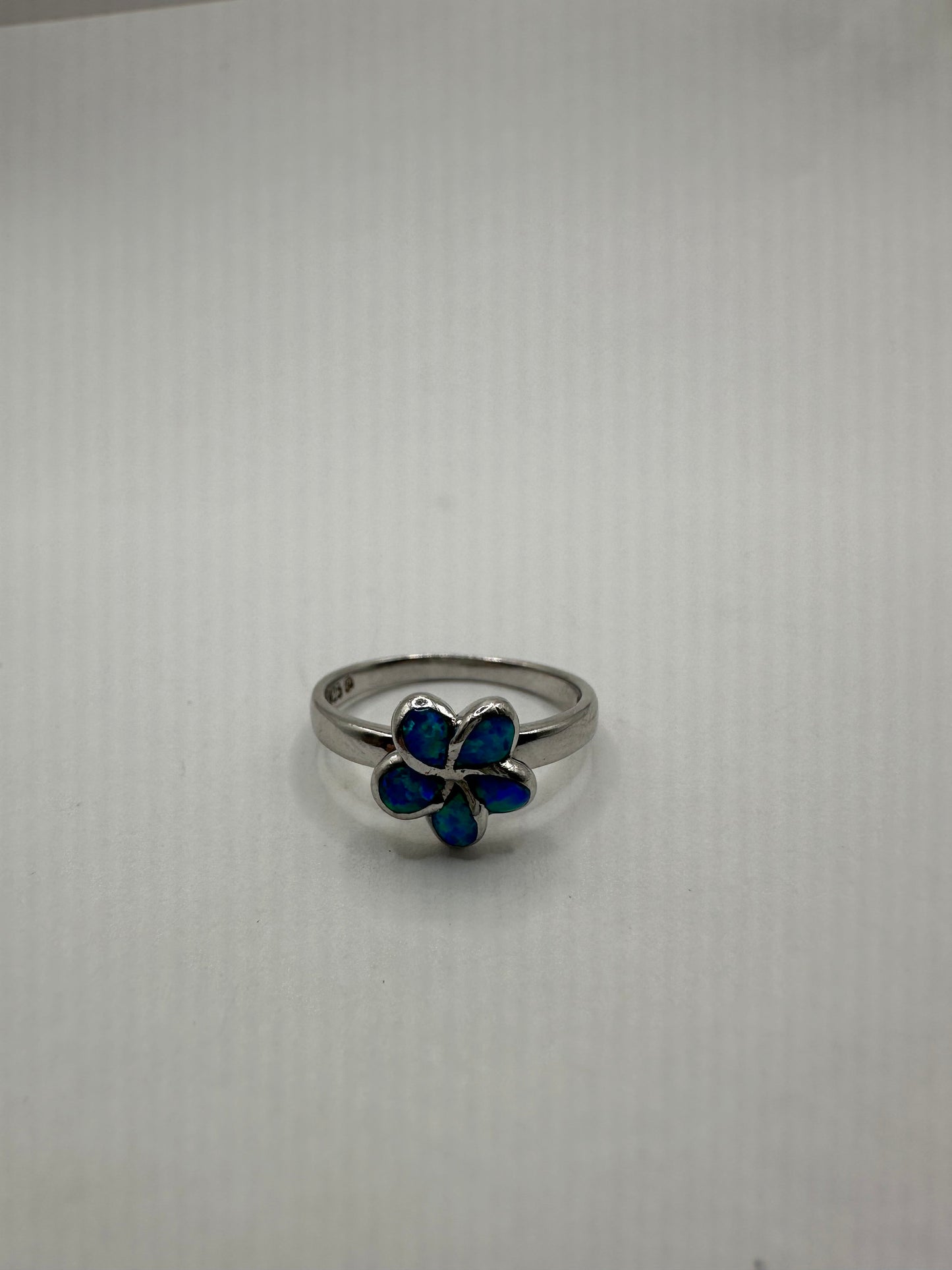 Vintage Genuine Blue Fire Opal Golden 925 Sterling Silver flower Ring
