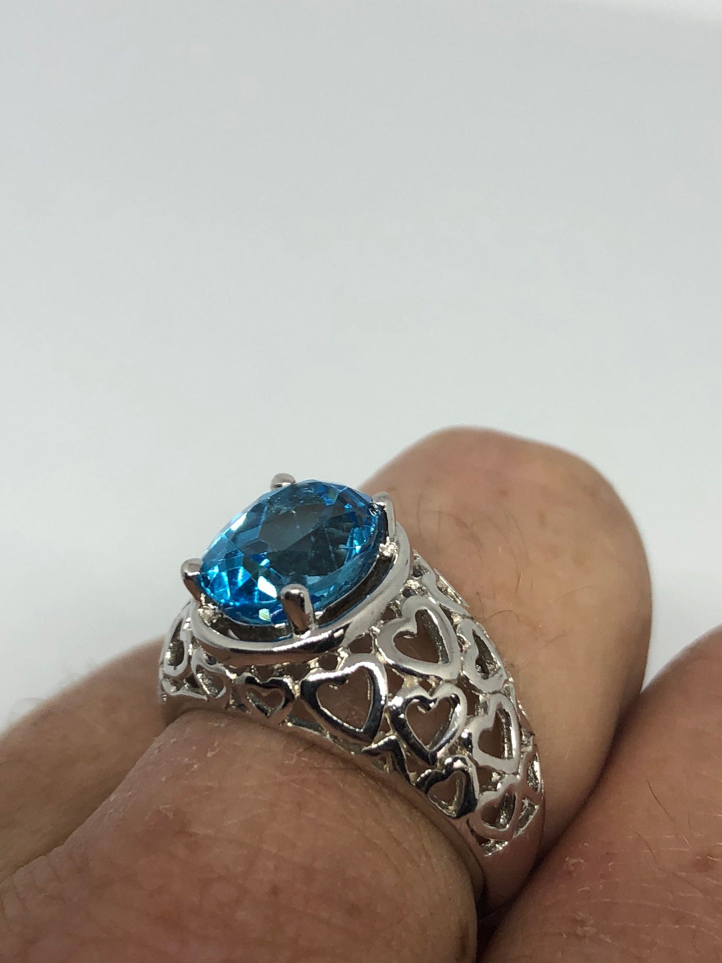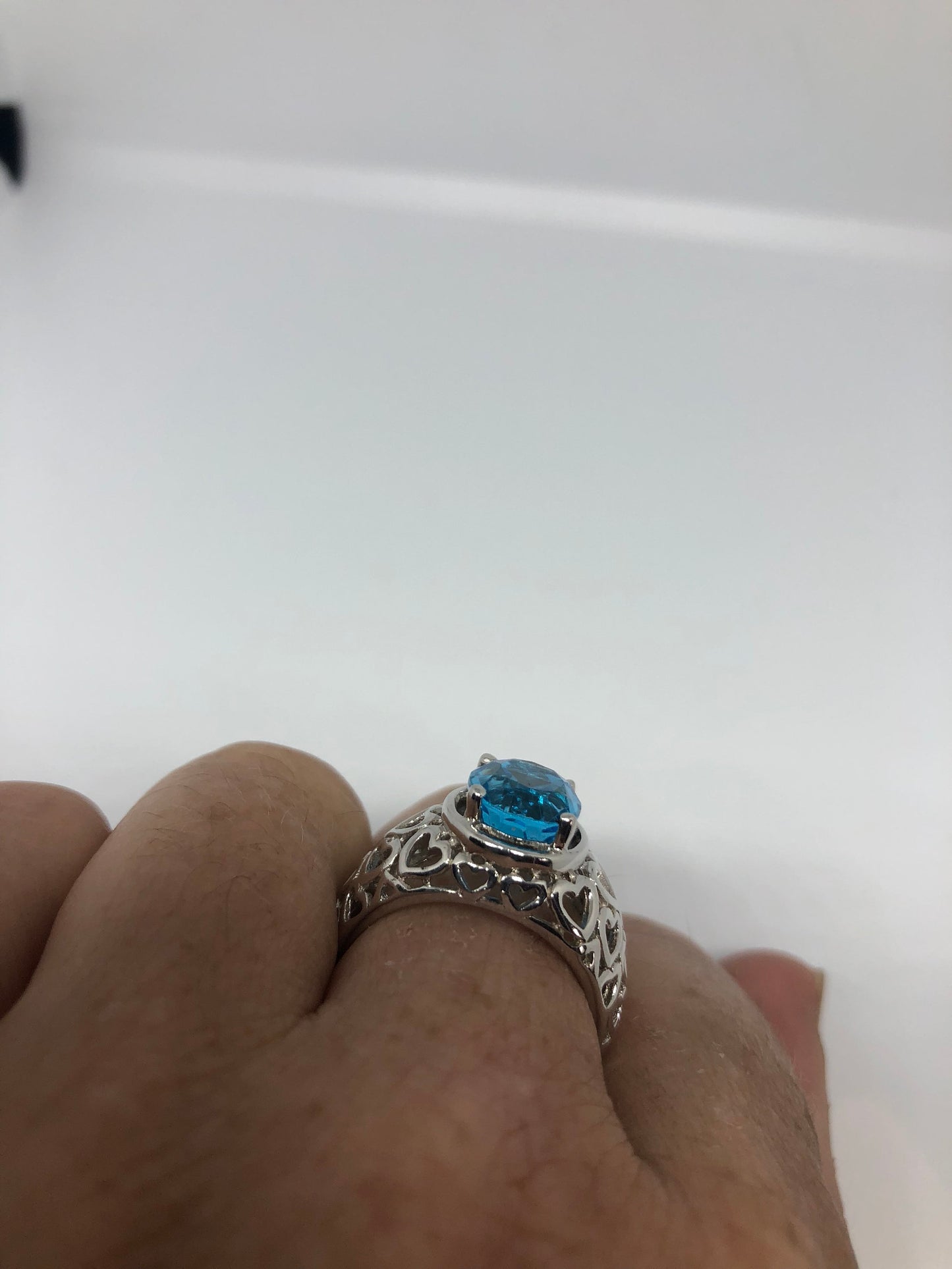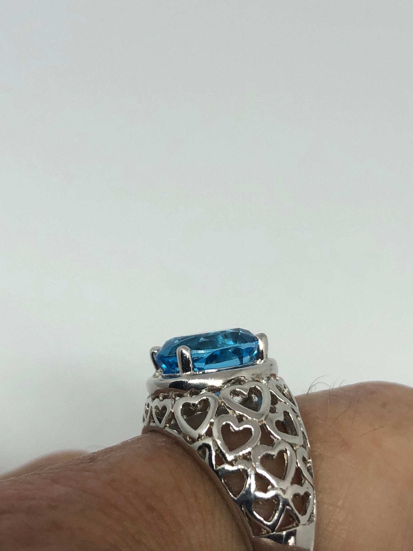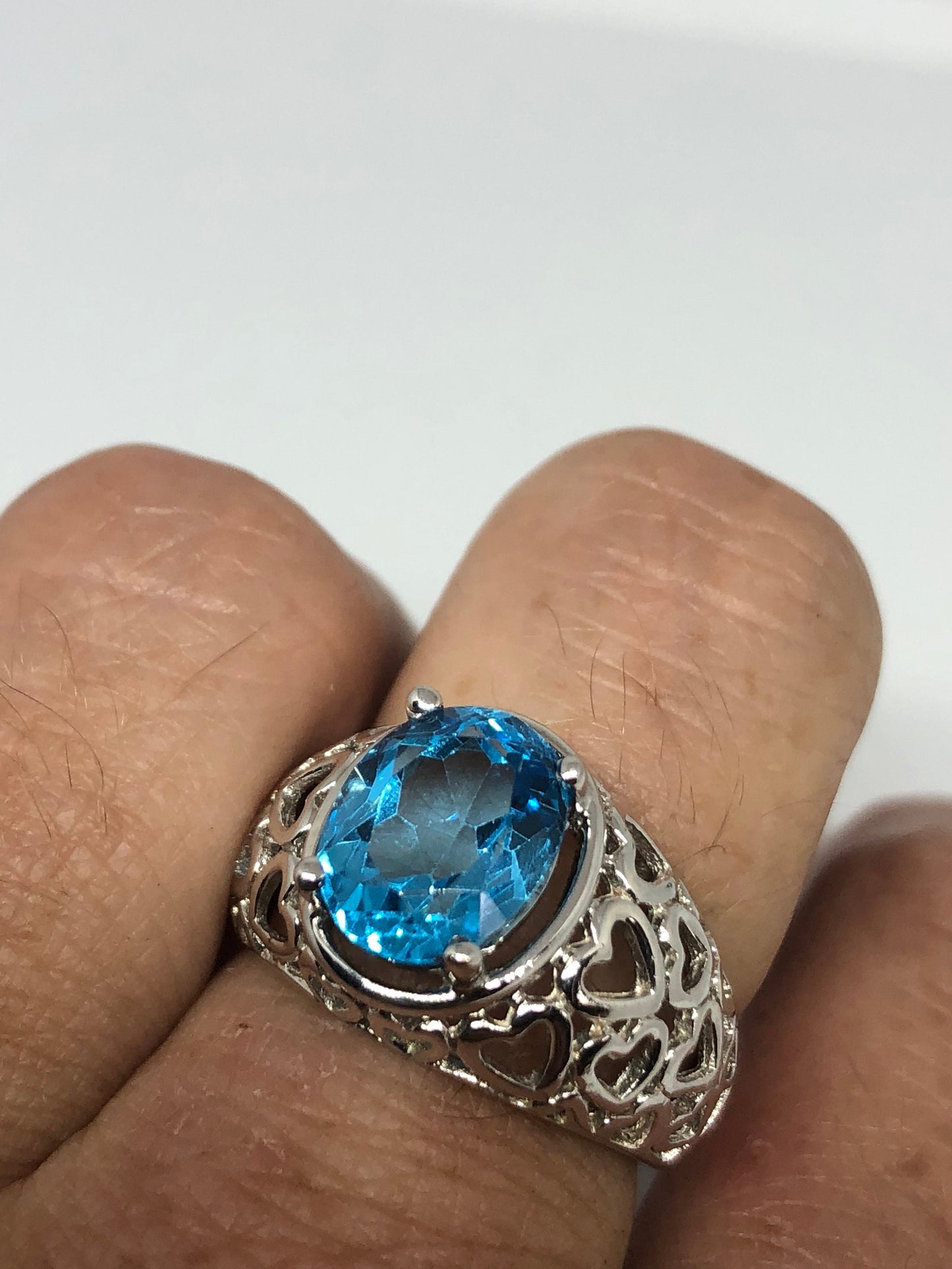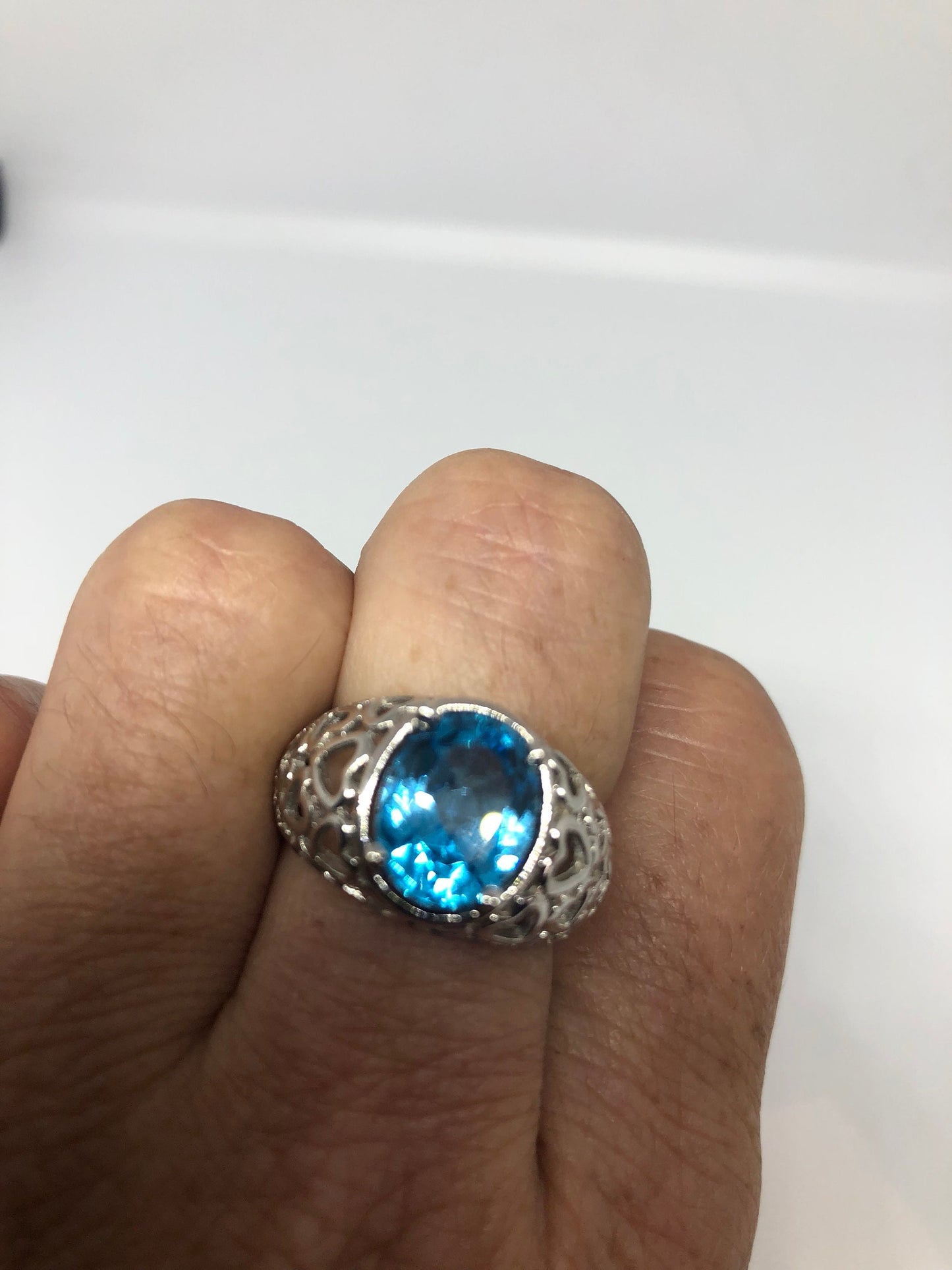 Vintage Genuine Blue Topaz 925 Sterling Silver Rhodium Ring