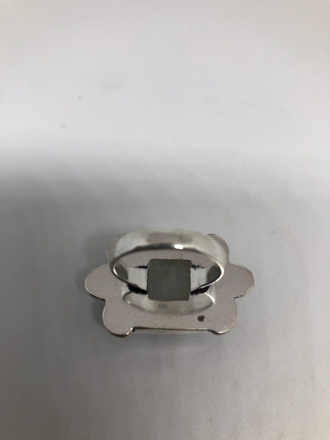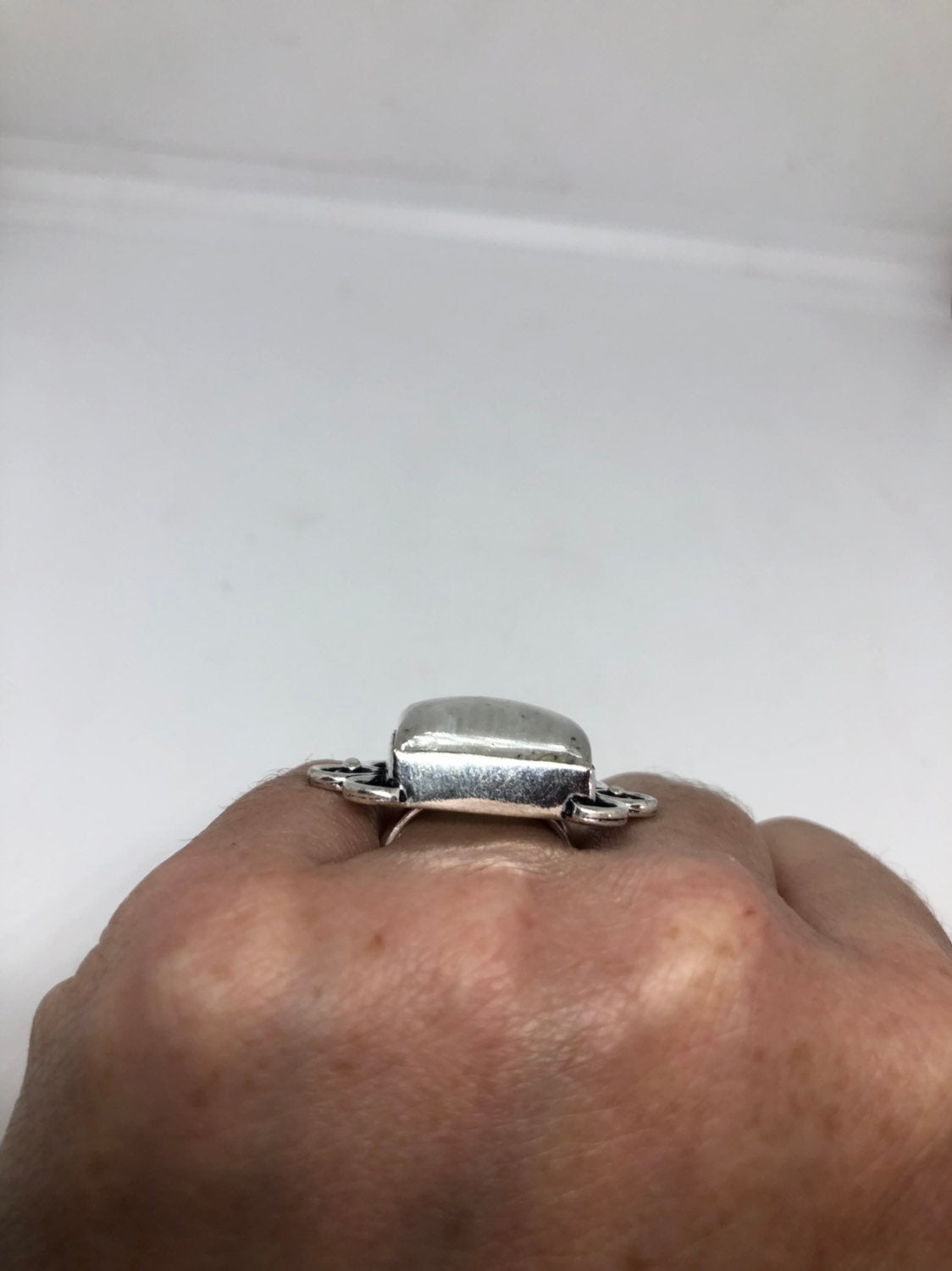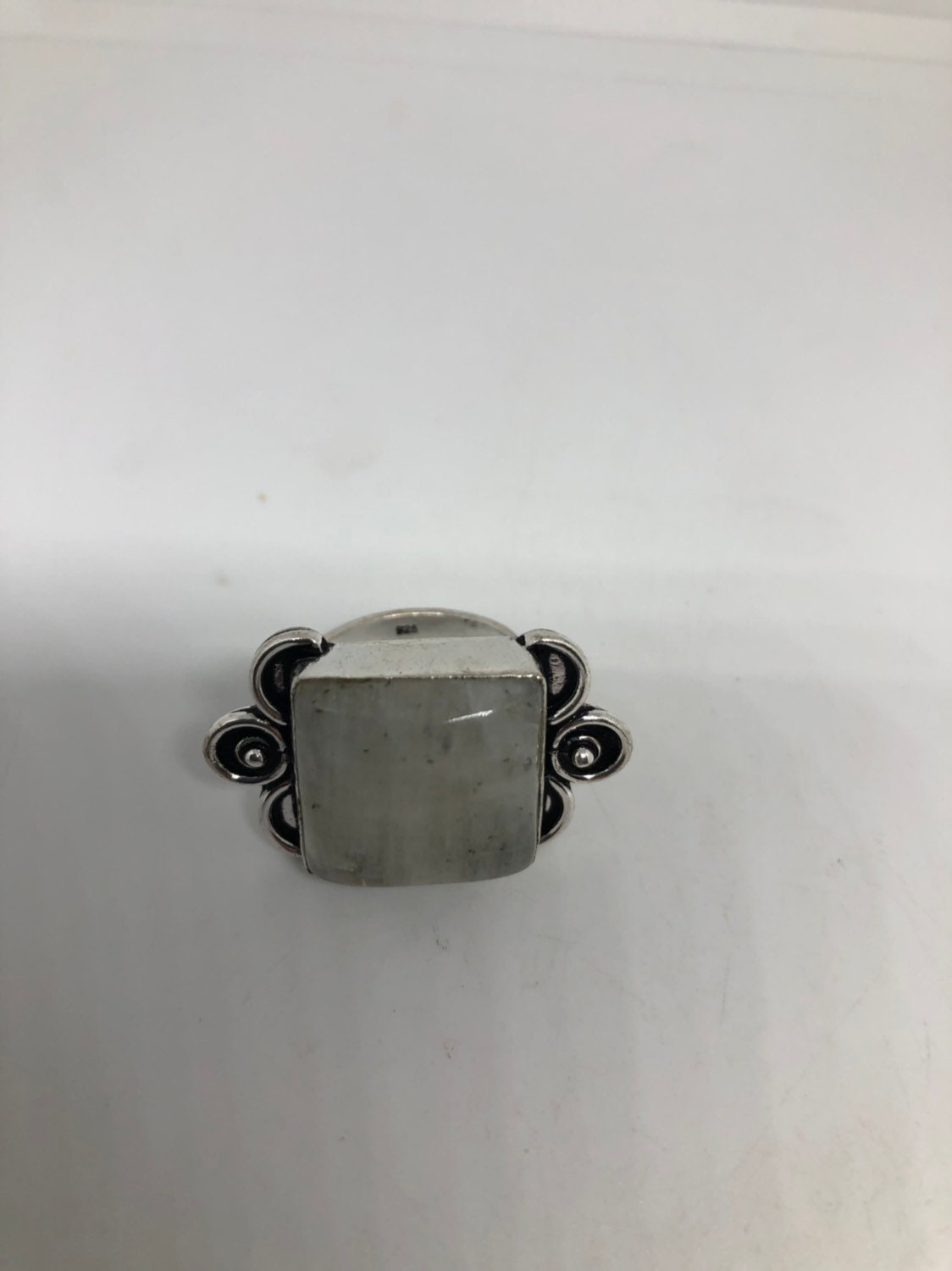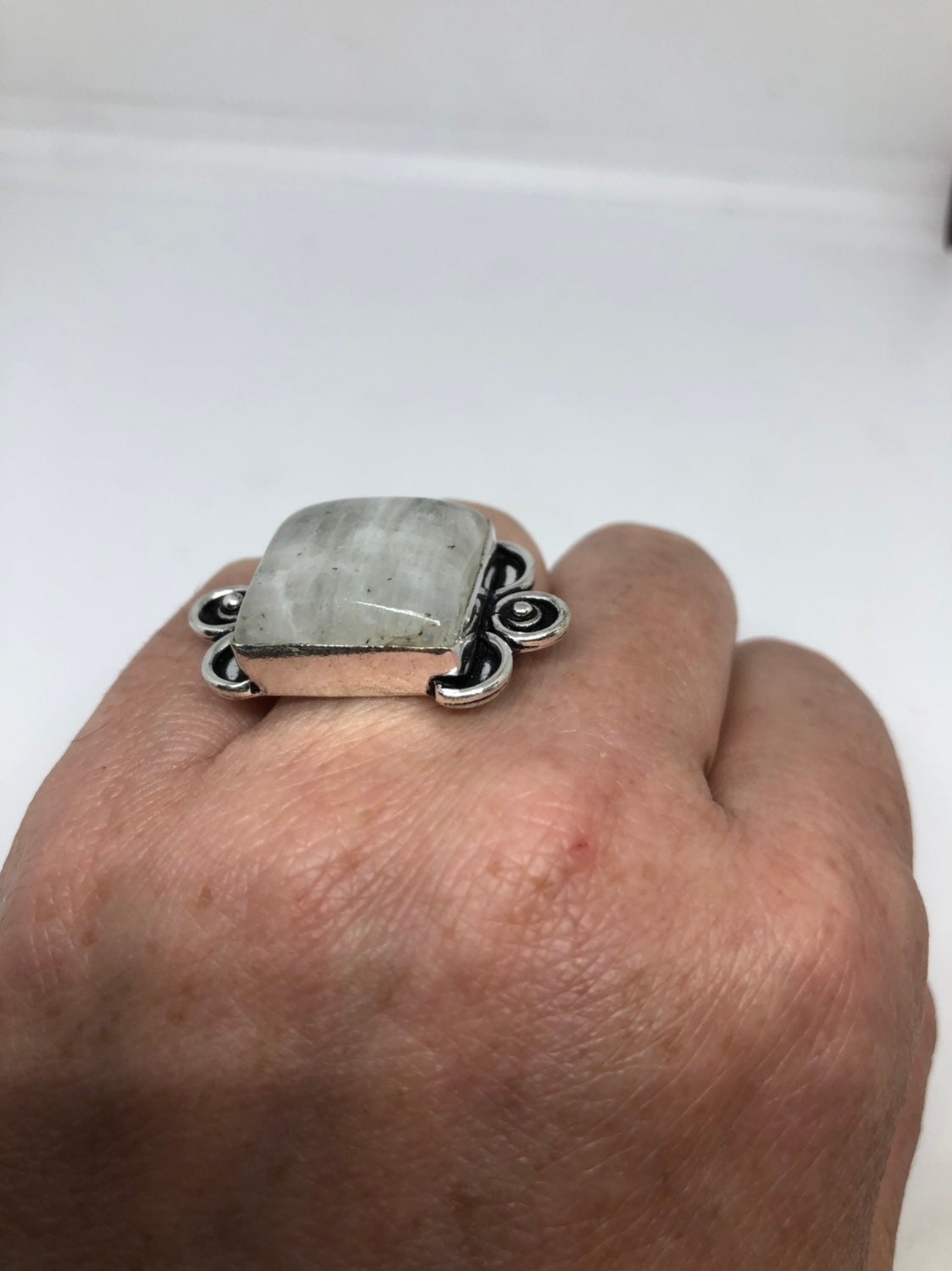 Vintage Genuine Blue White Rainbow Moonstone Ring Statement Cocktail Size 6.75