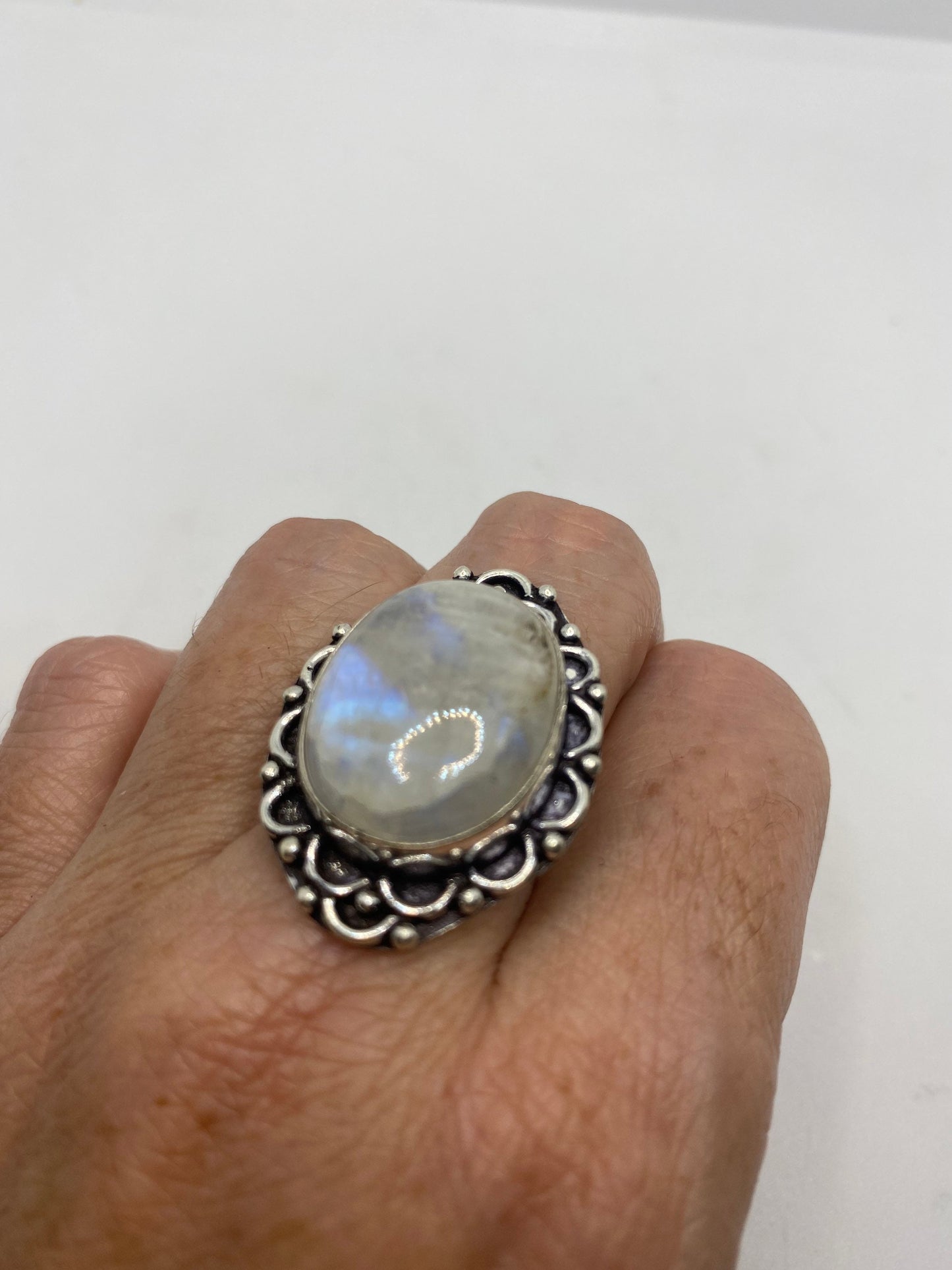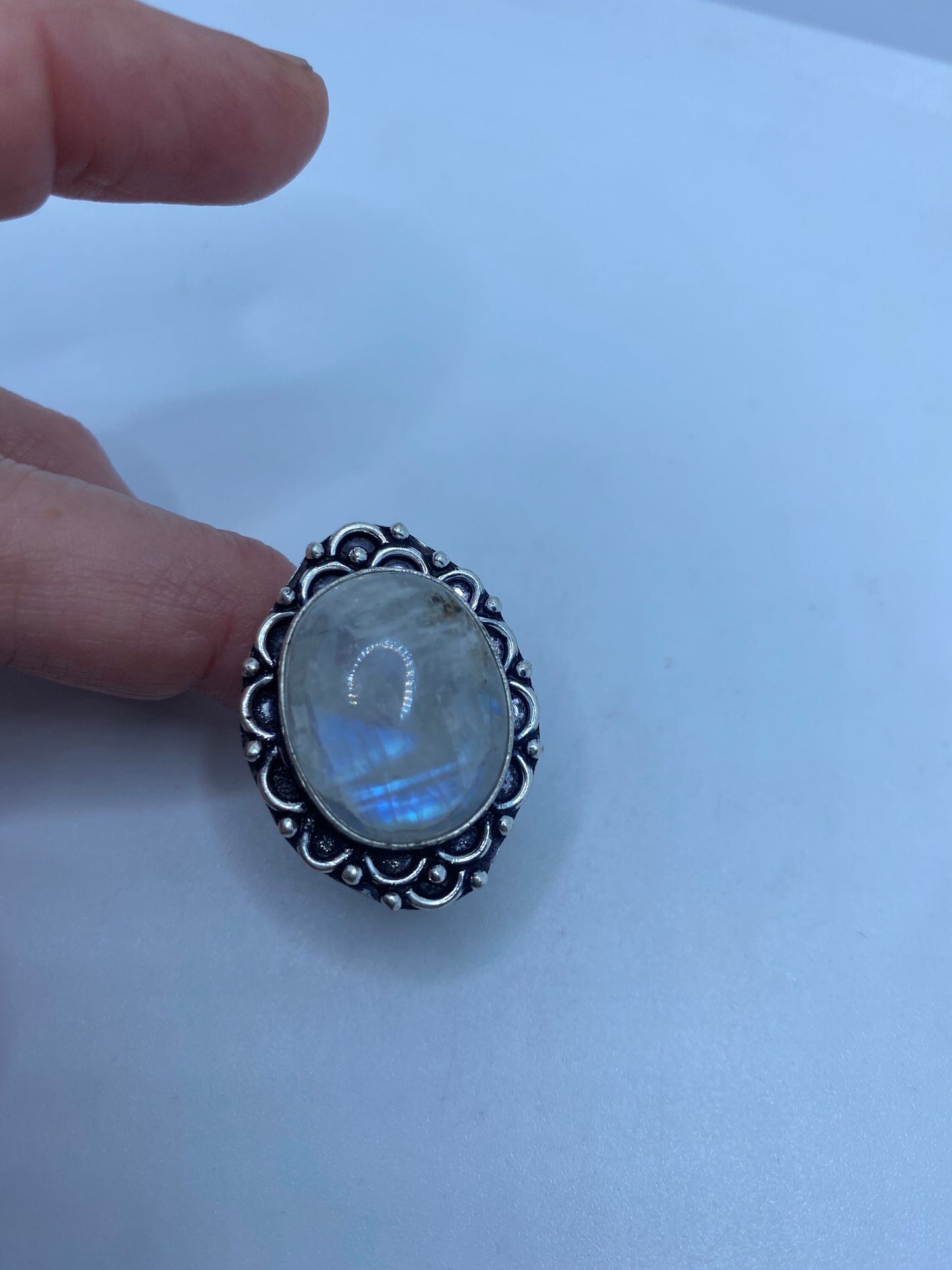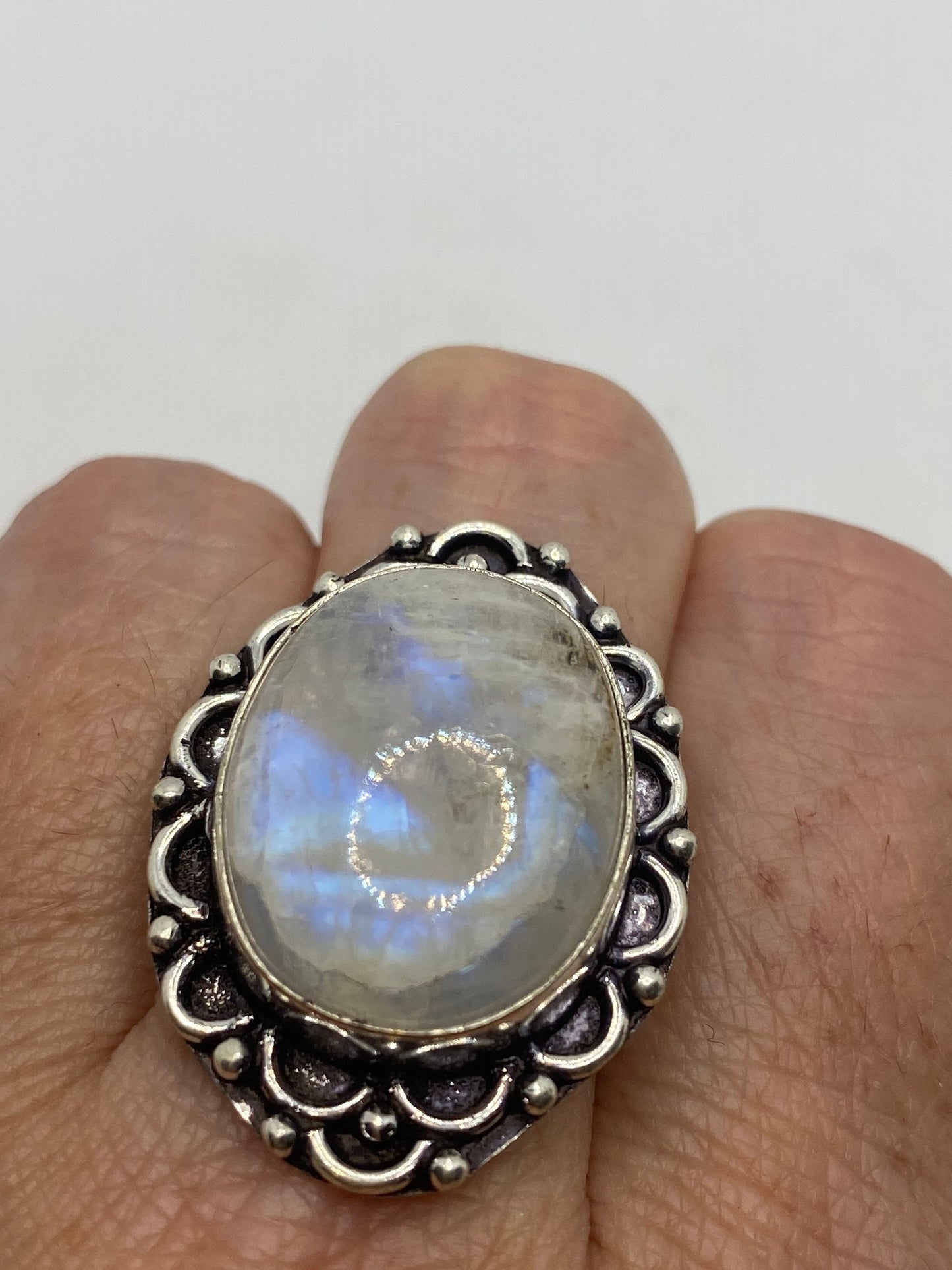 Vintage Genuine Blue White Rainbow Moonstone Ring