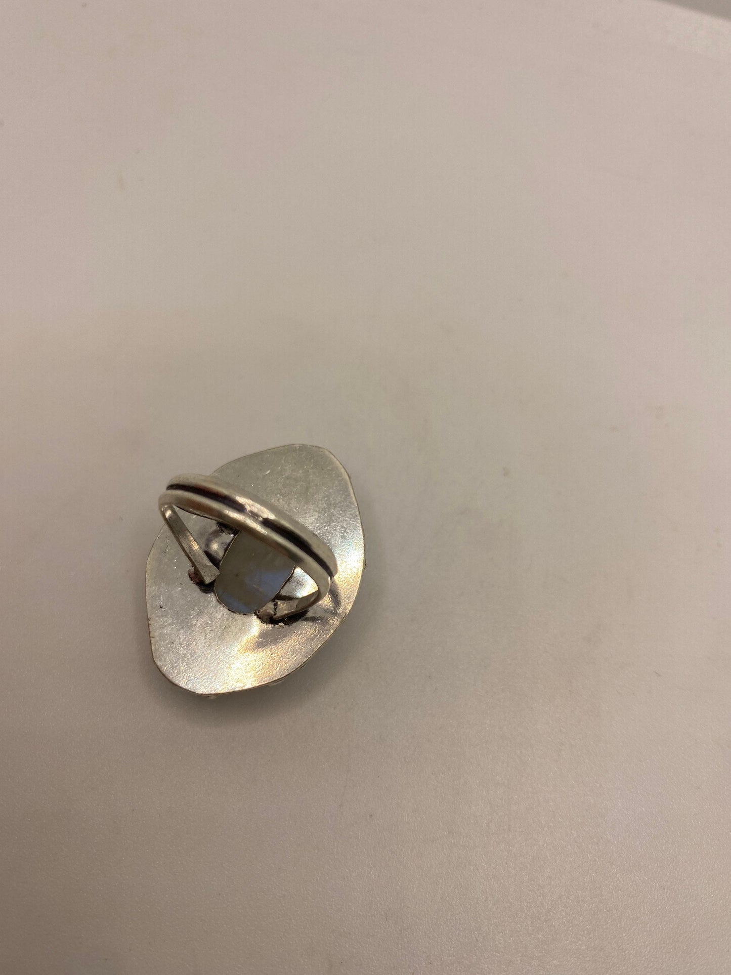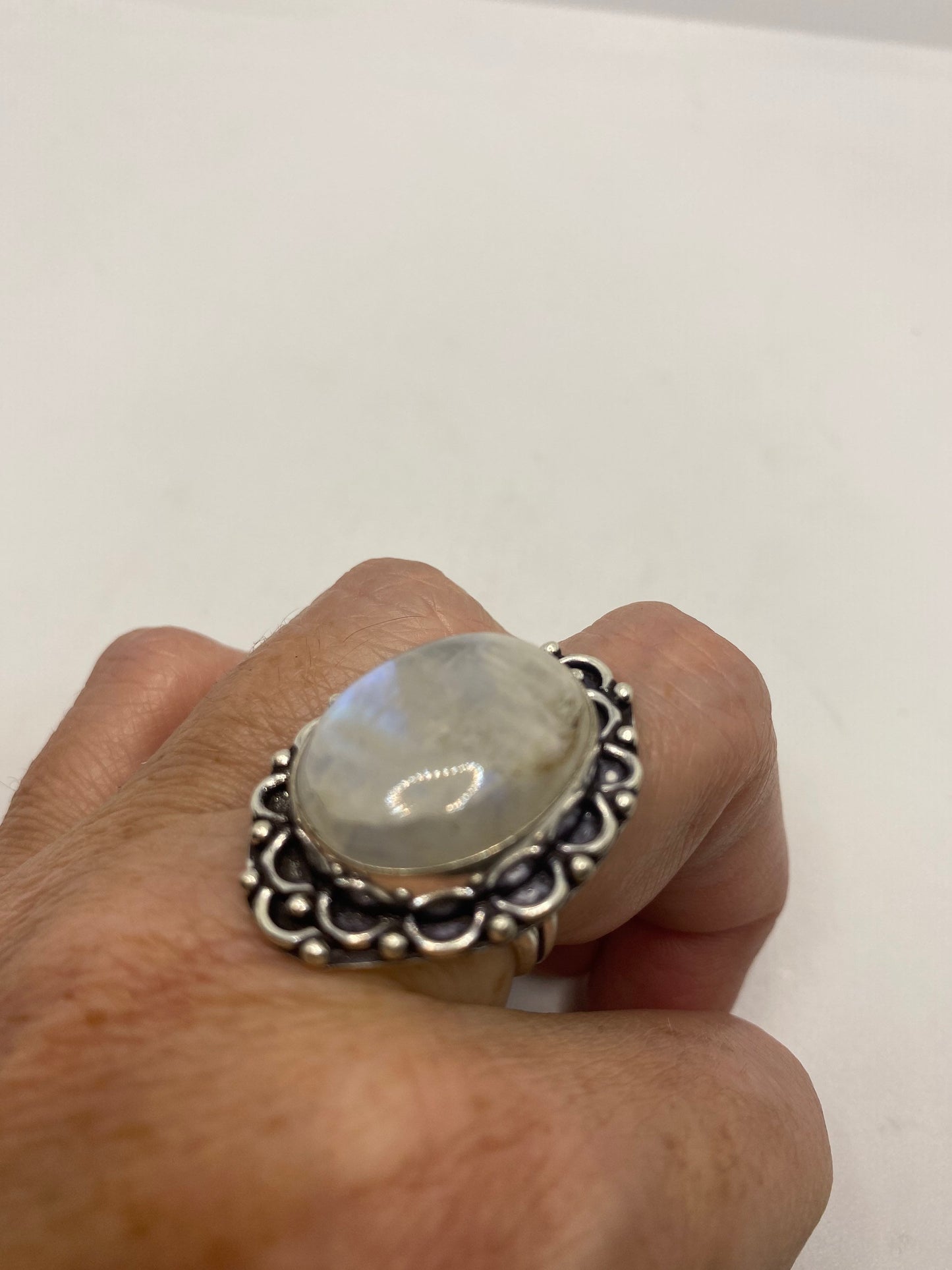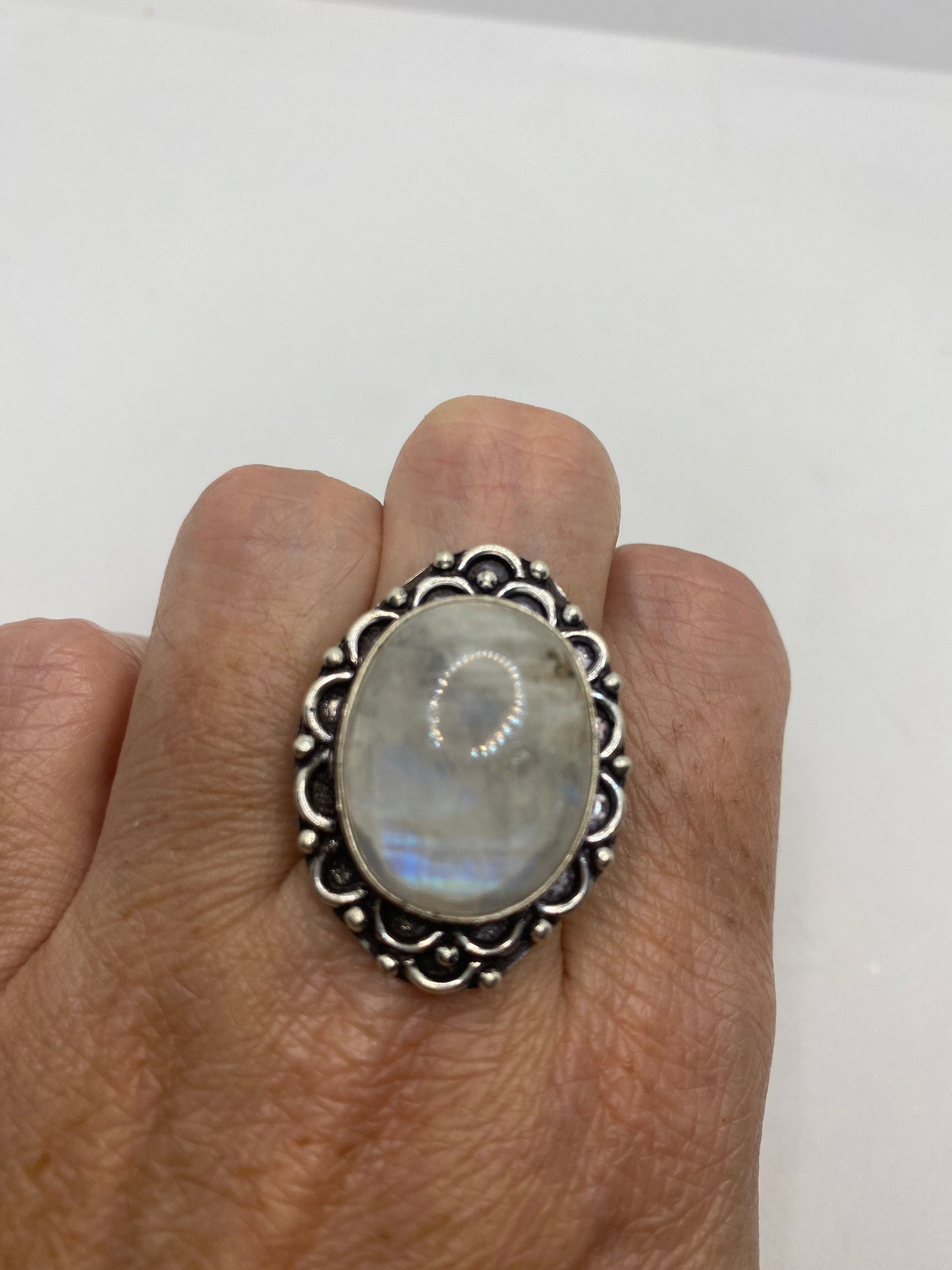 Vintage Genuine Blue White Rainbow Moonstone Ring