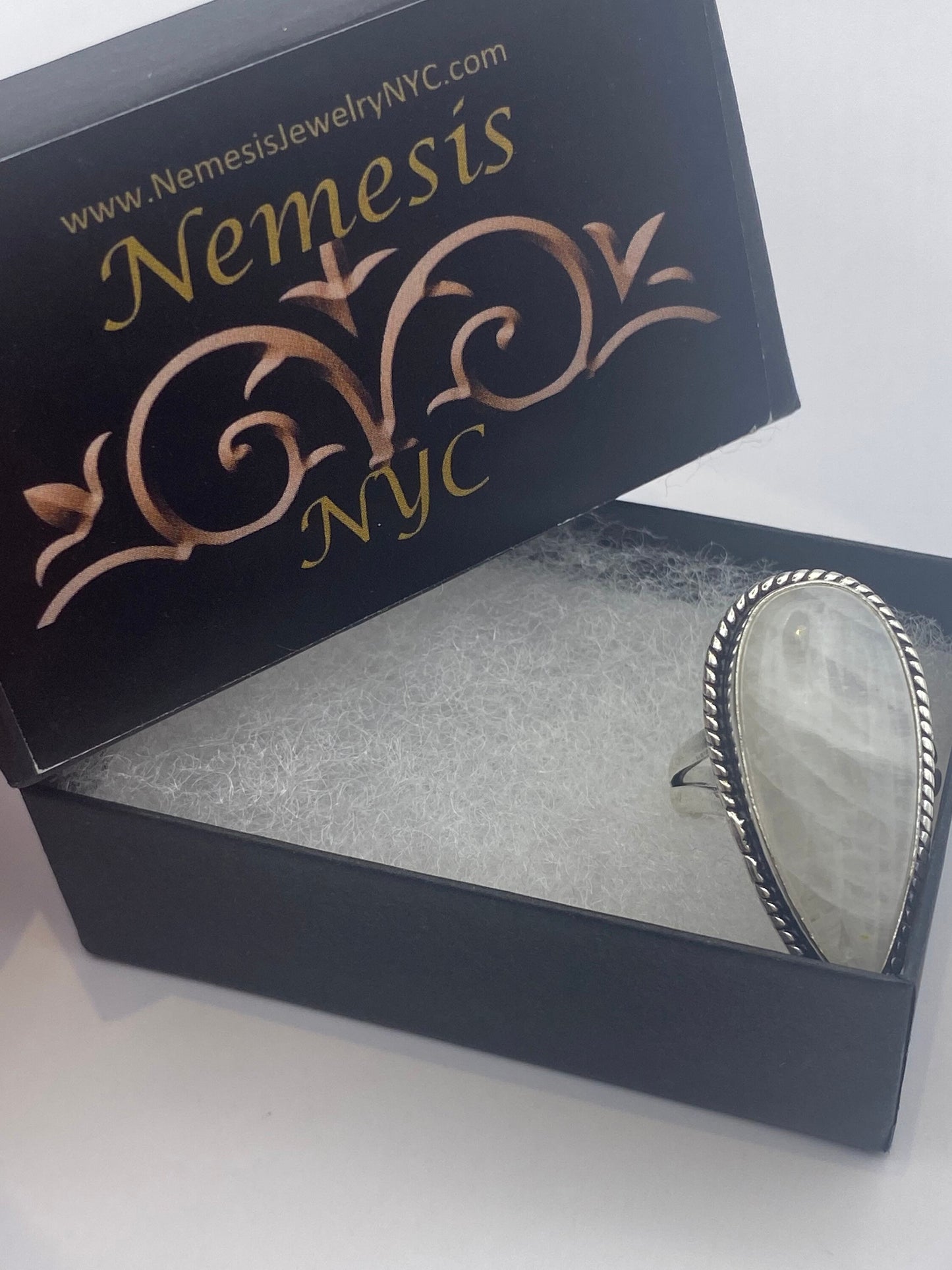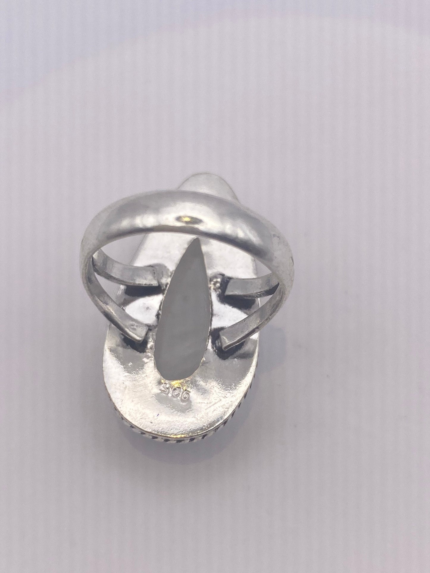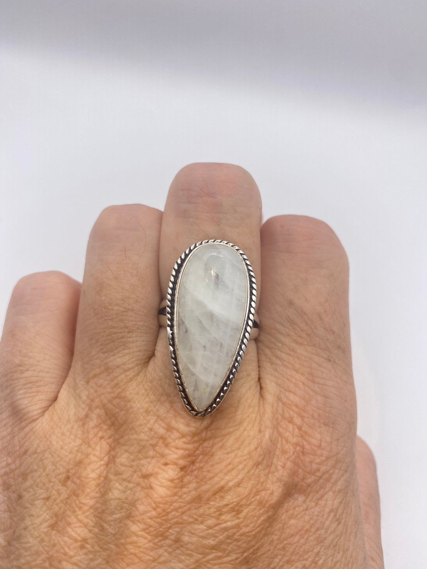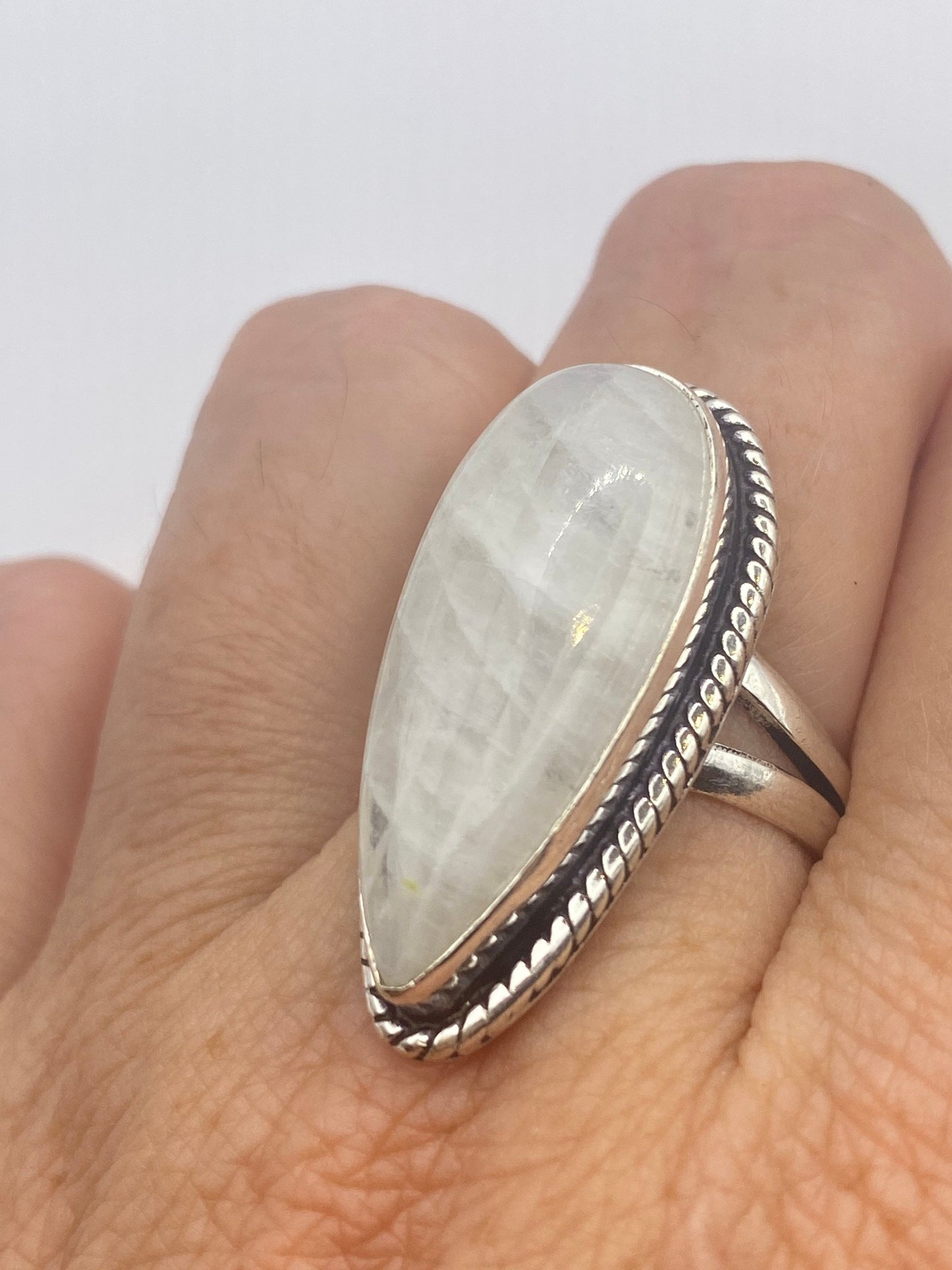 Vintage Genuine Blue White Rainbow Moonstone Ring Statement Cocktail Size 6.75