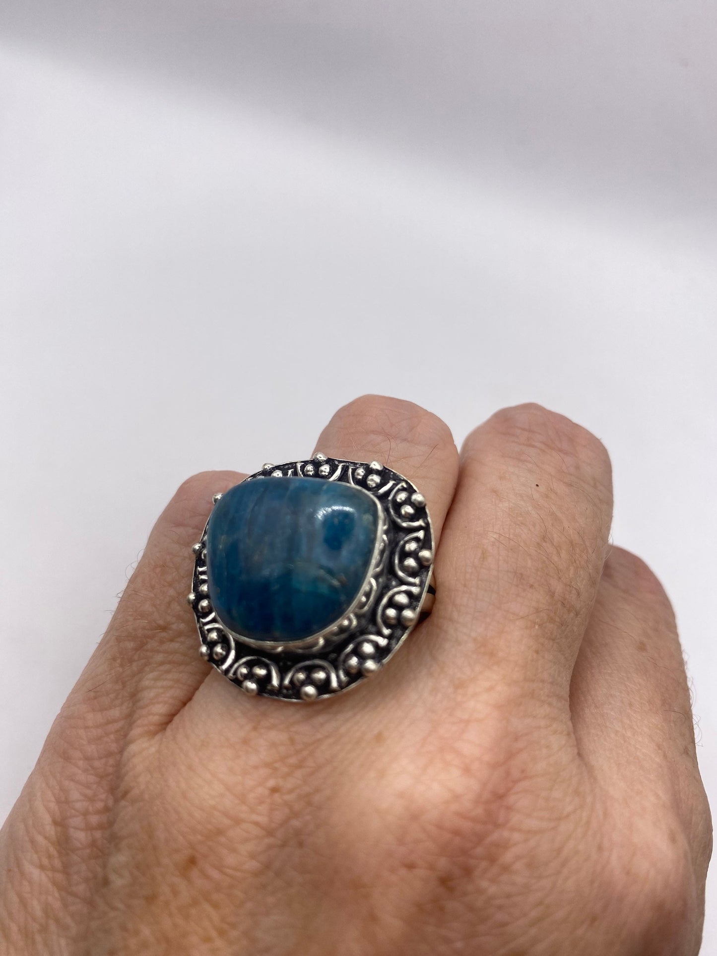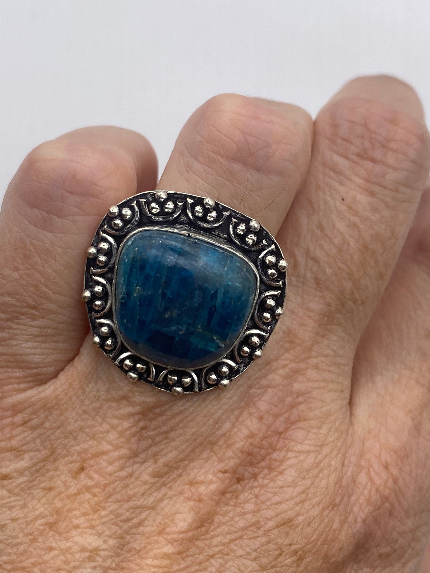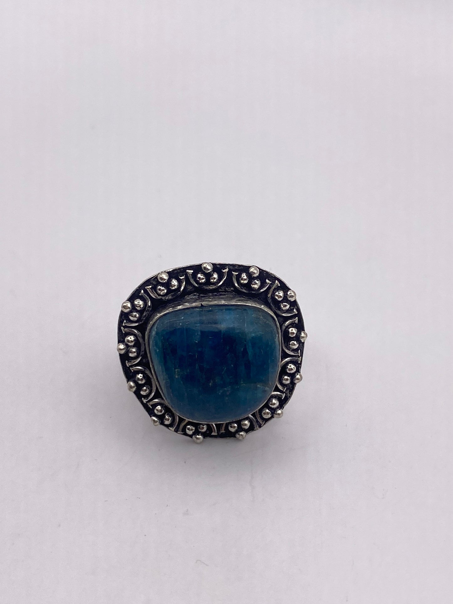 Vintage Genuine Blue White Rainbow Moonstone Ring