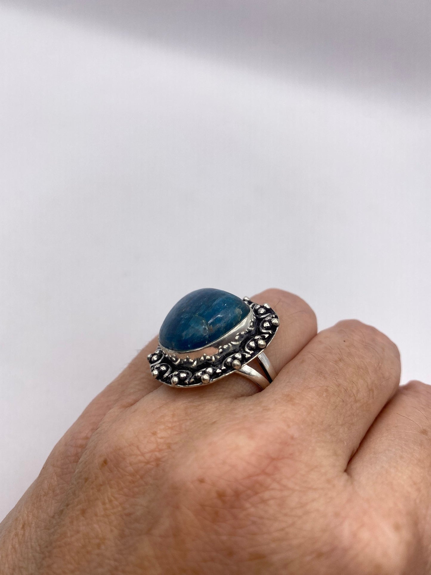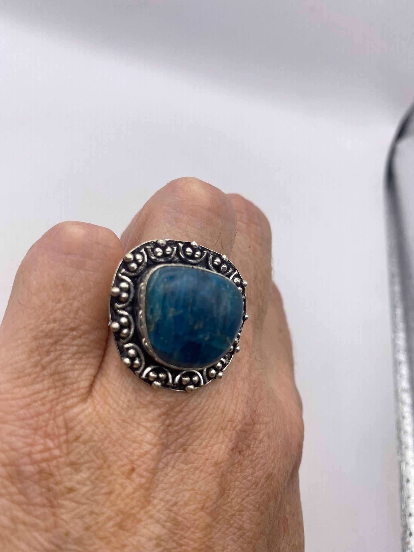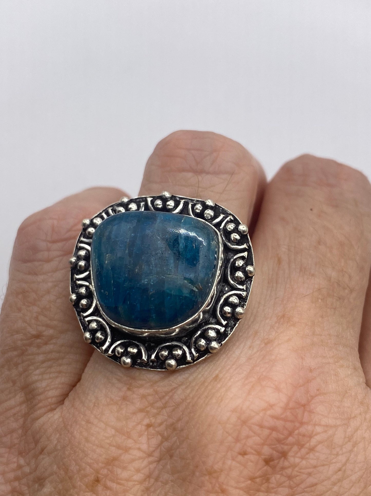 Vintage Genuine Blue White Rainbow Moonstone Ring