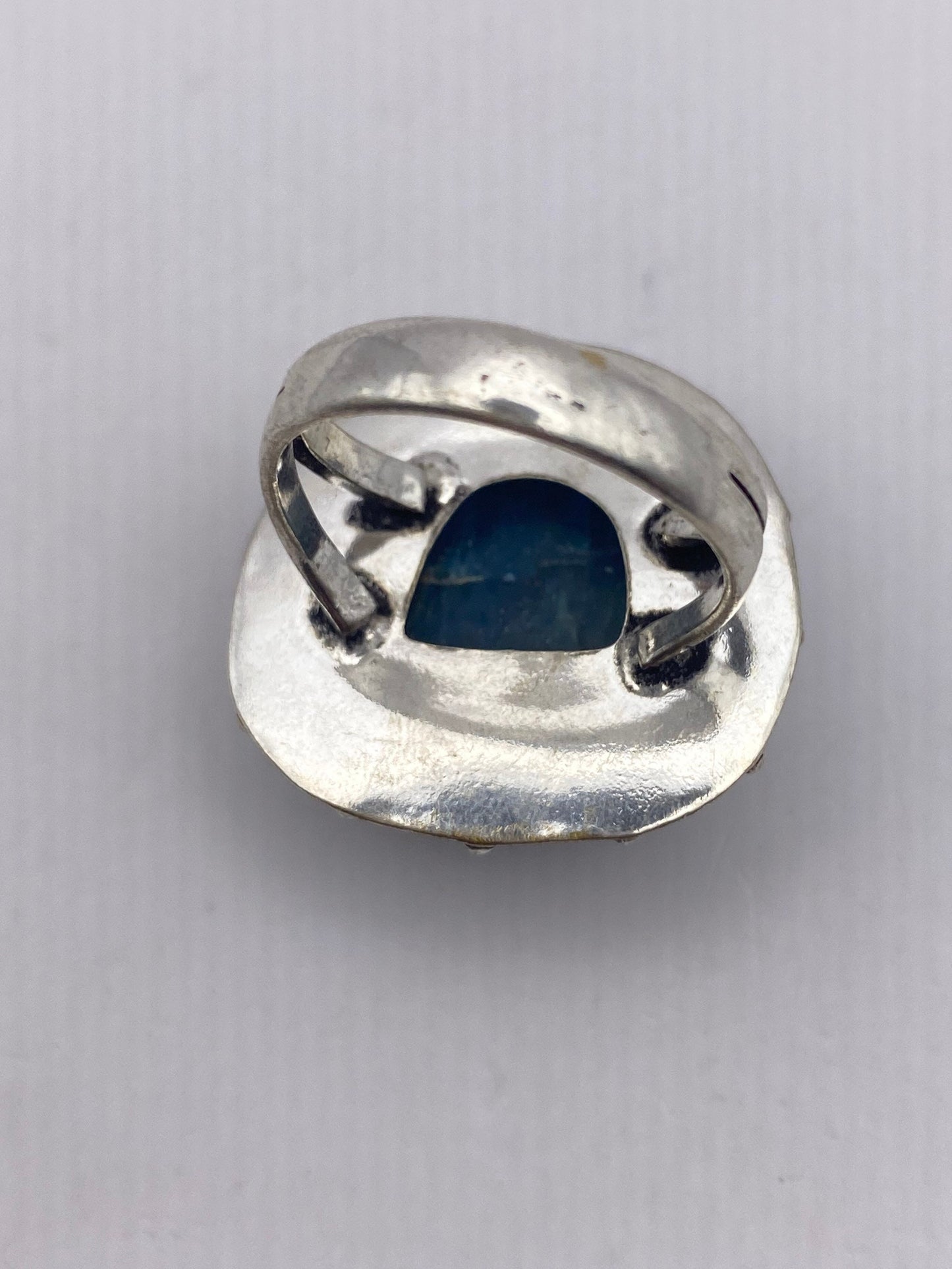 Large Vintage ring set with huge blue color treated rainbow moonstone.