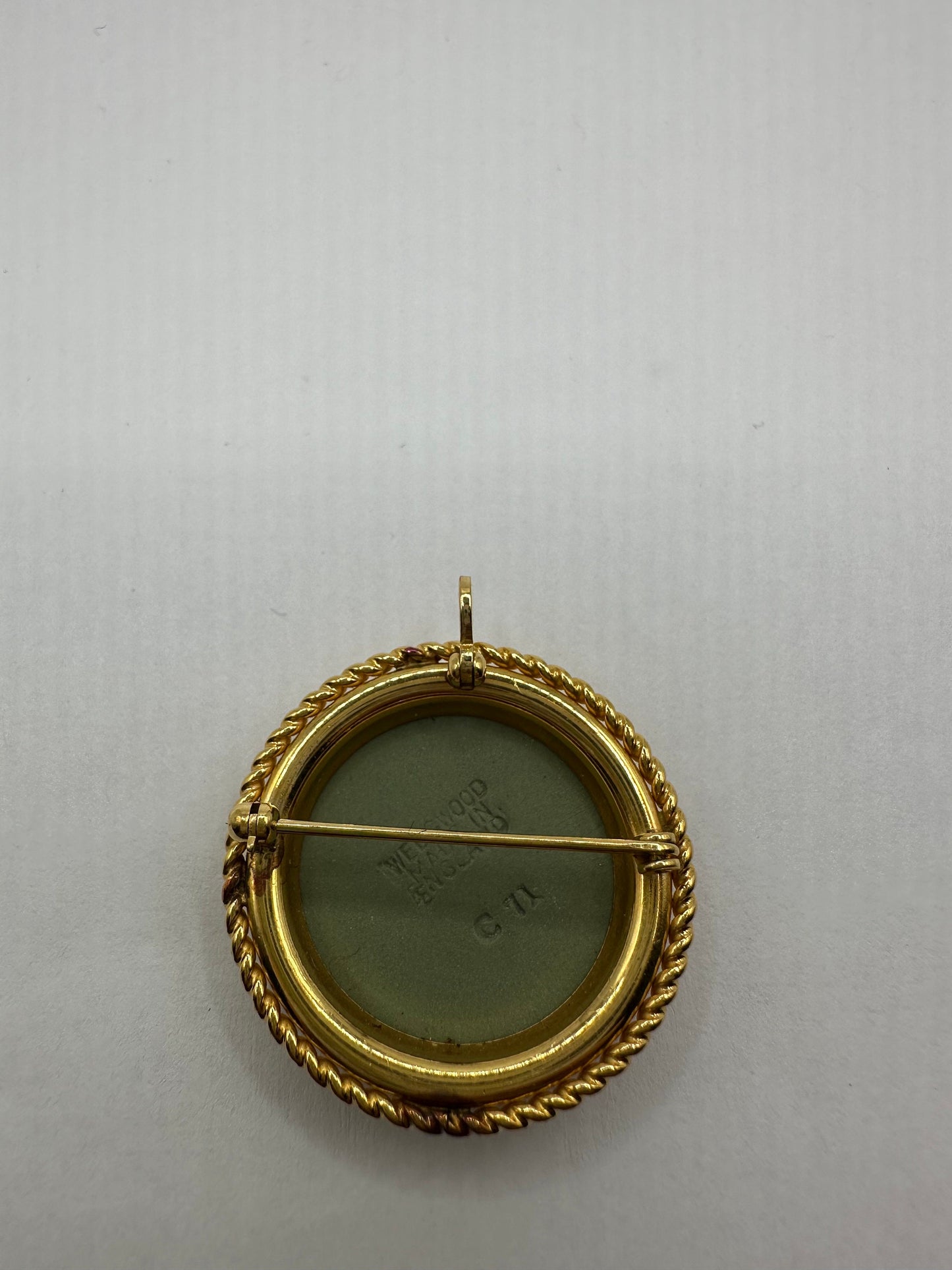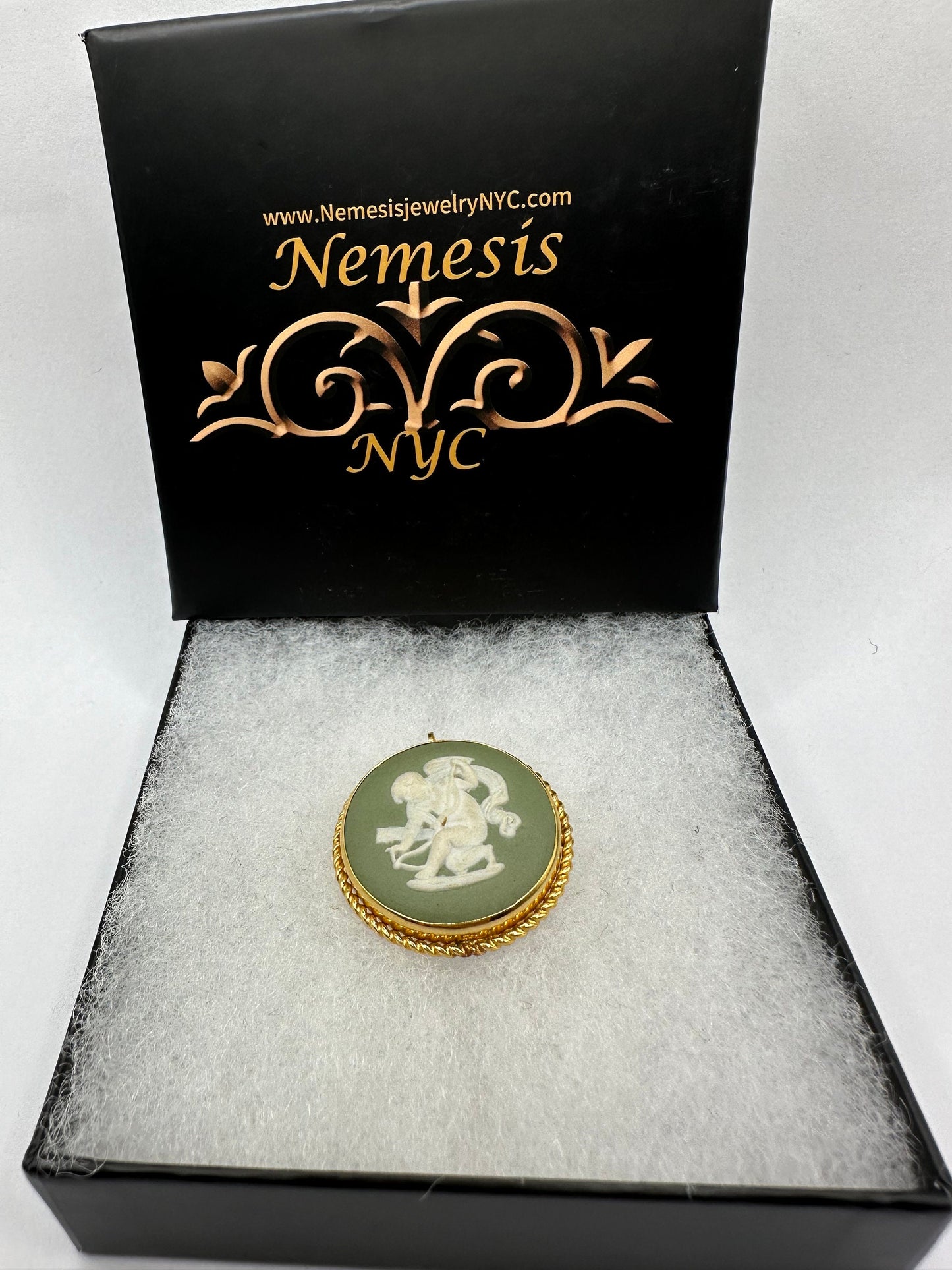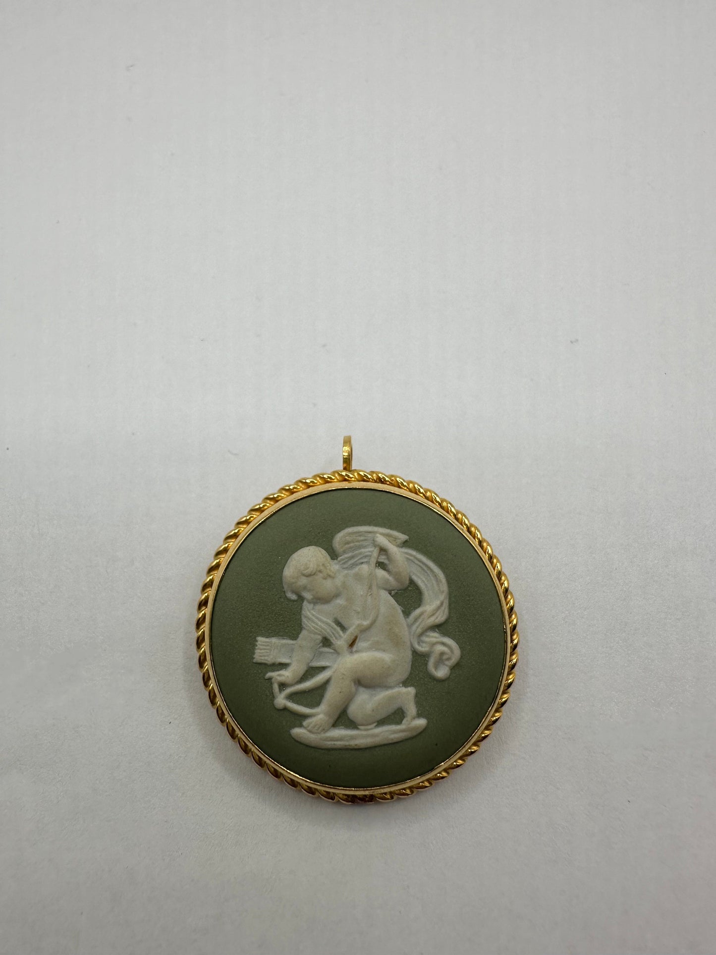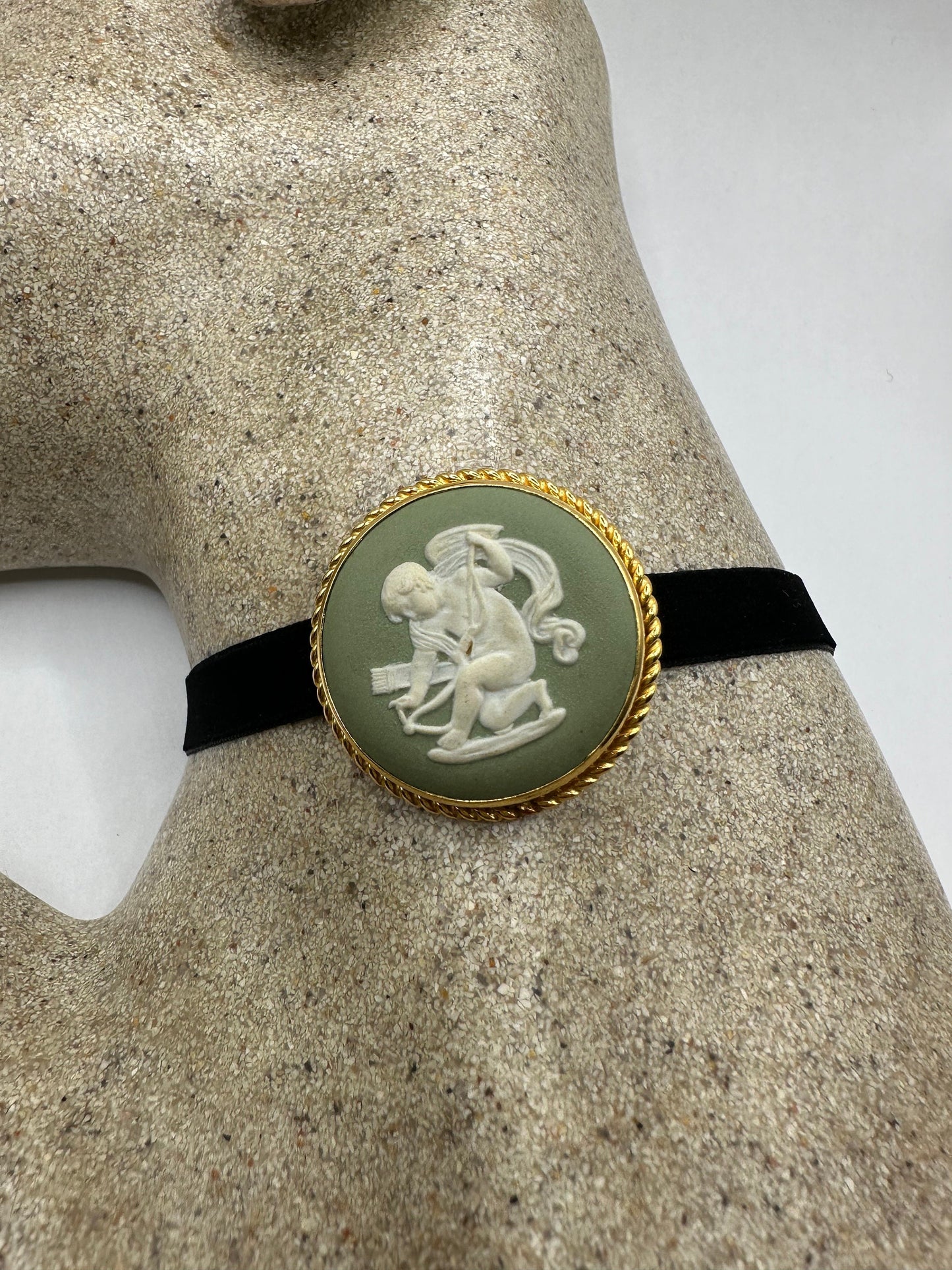 Vintage Genuine Green Wedgewood Porcelian Cameo Gold Filled Necklace Choker pin
