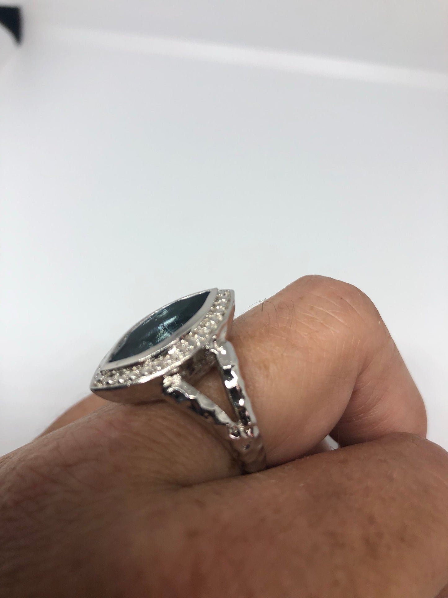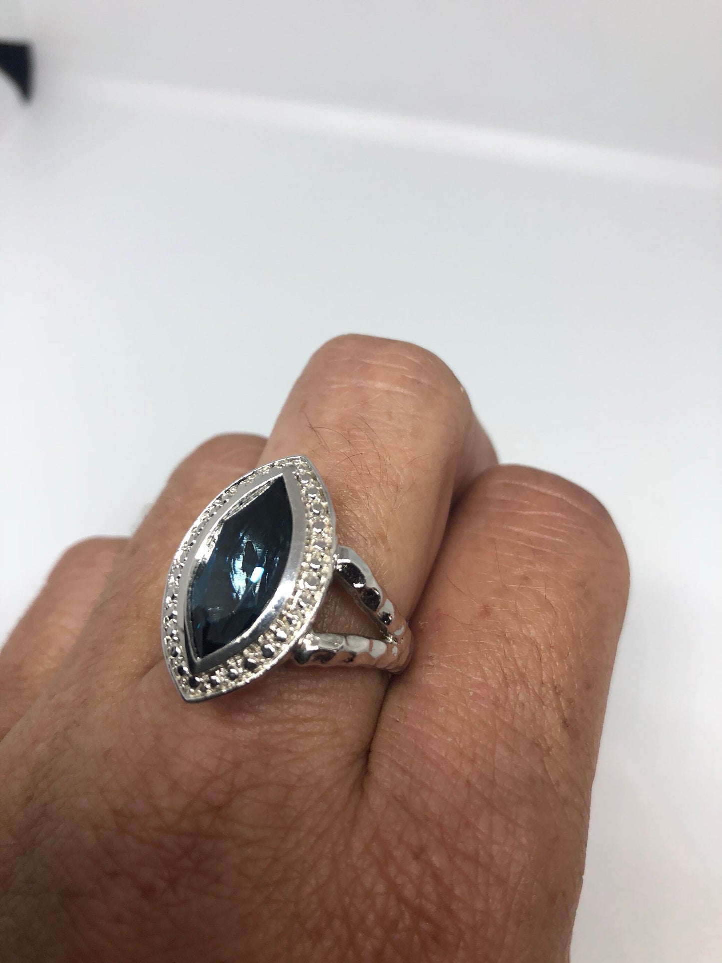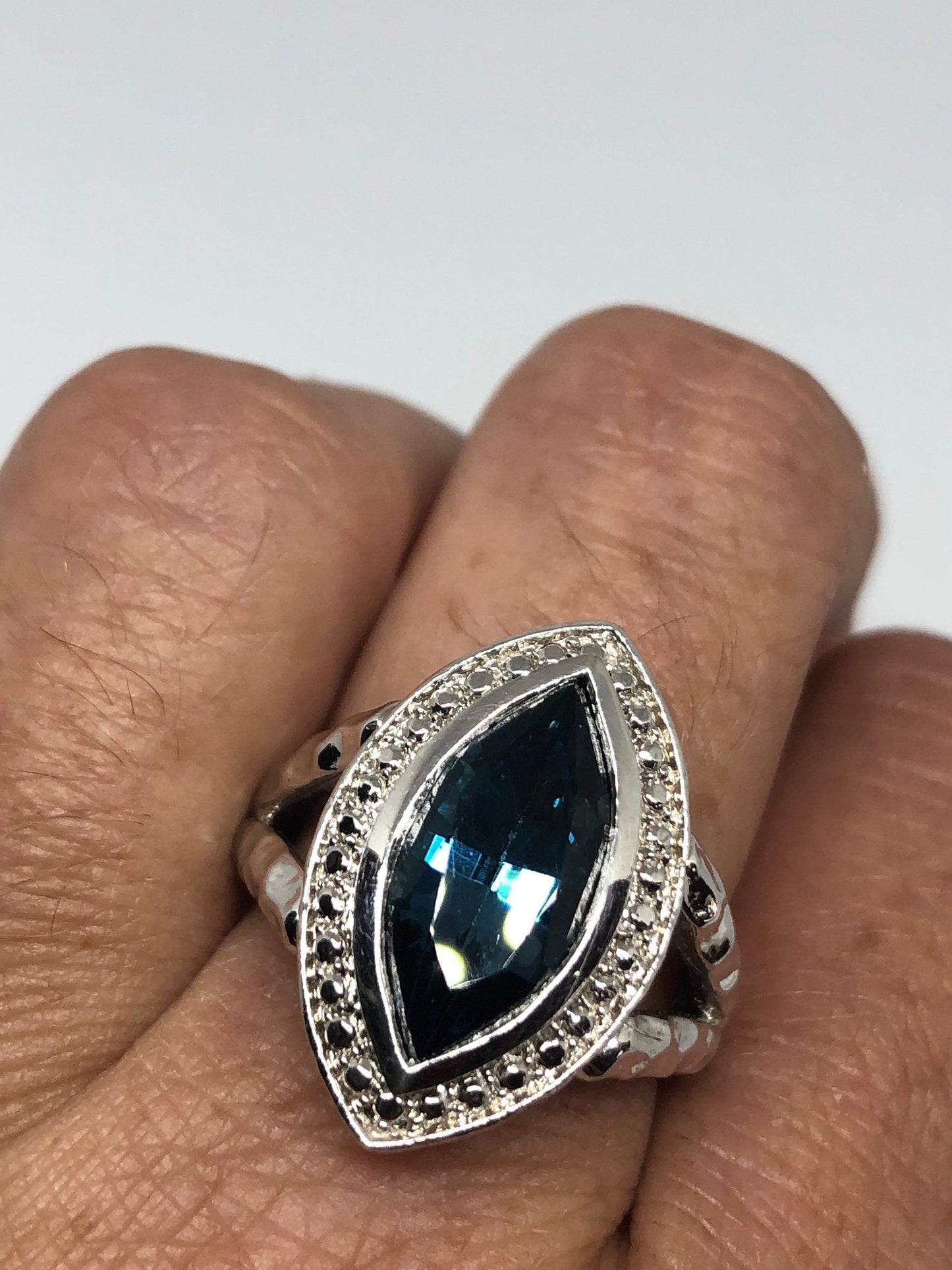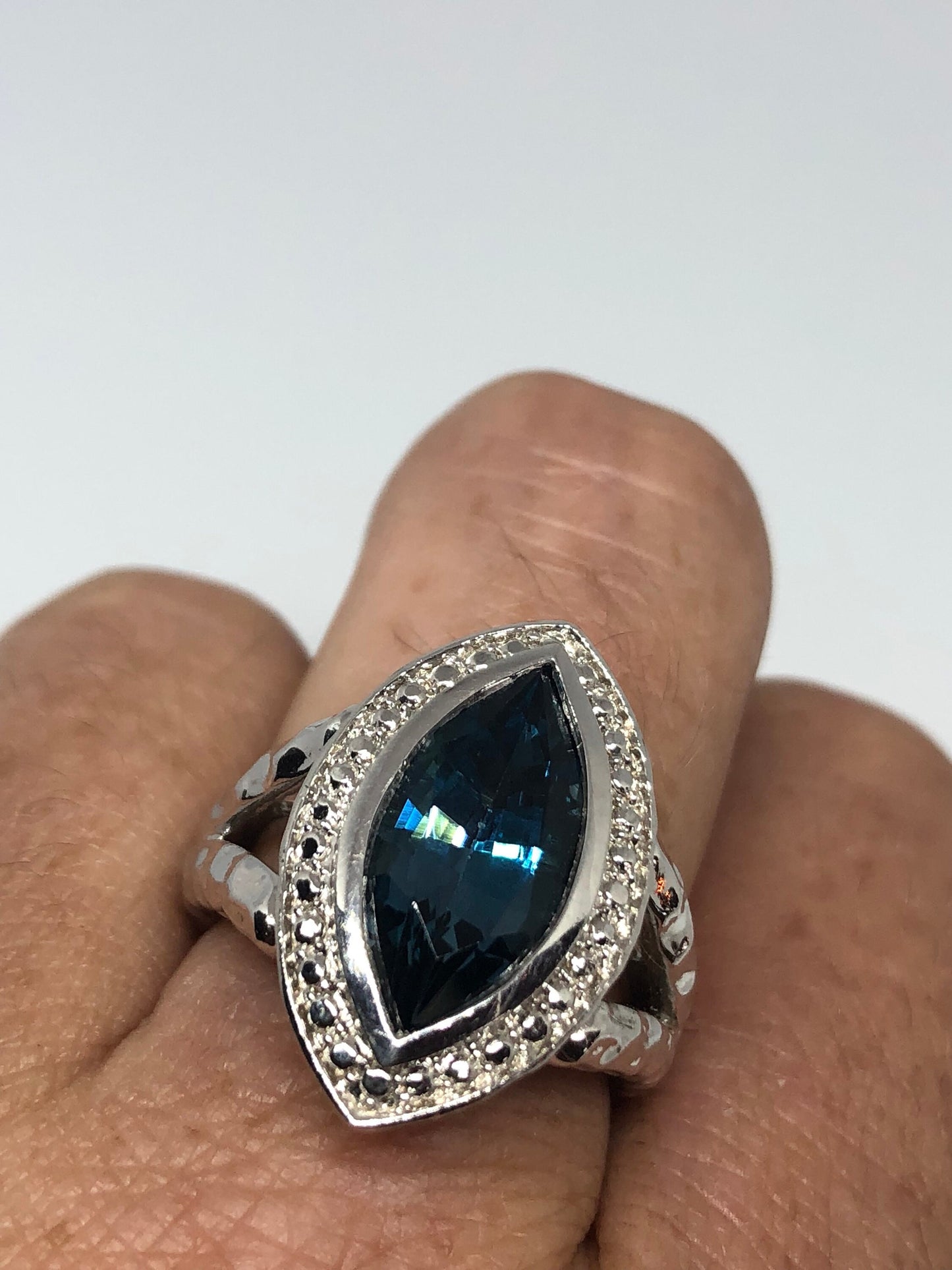 Vintage Genuine London Blue Topaz 925 Sterling Silver Rhodium Ring