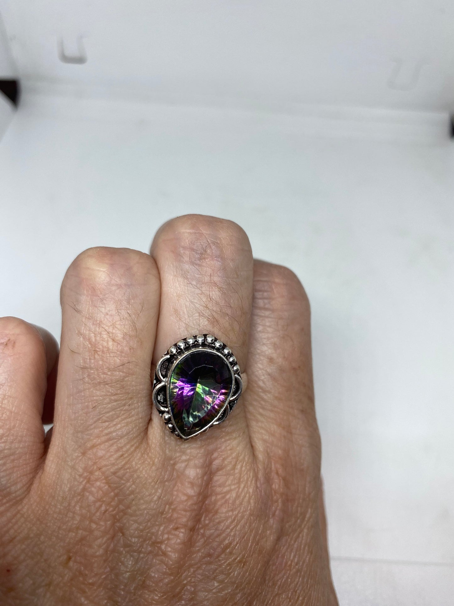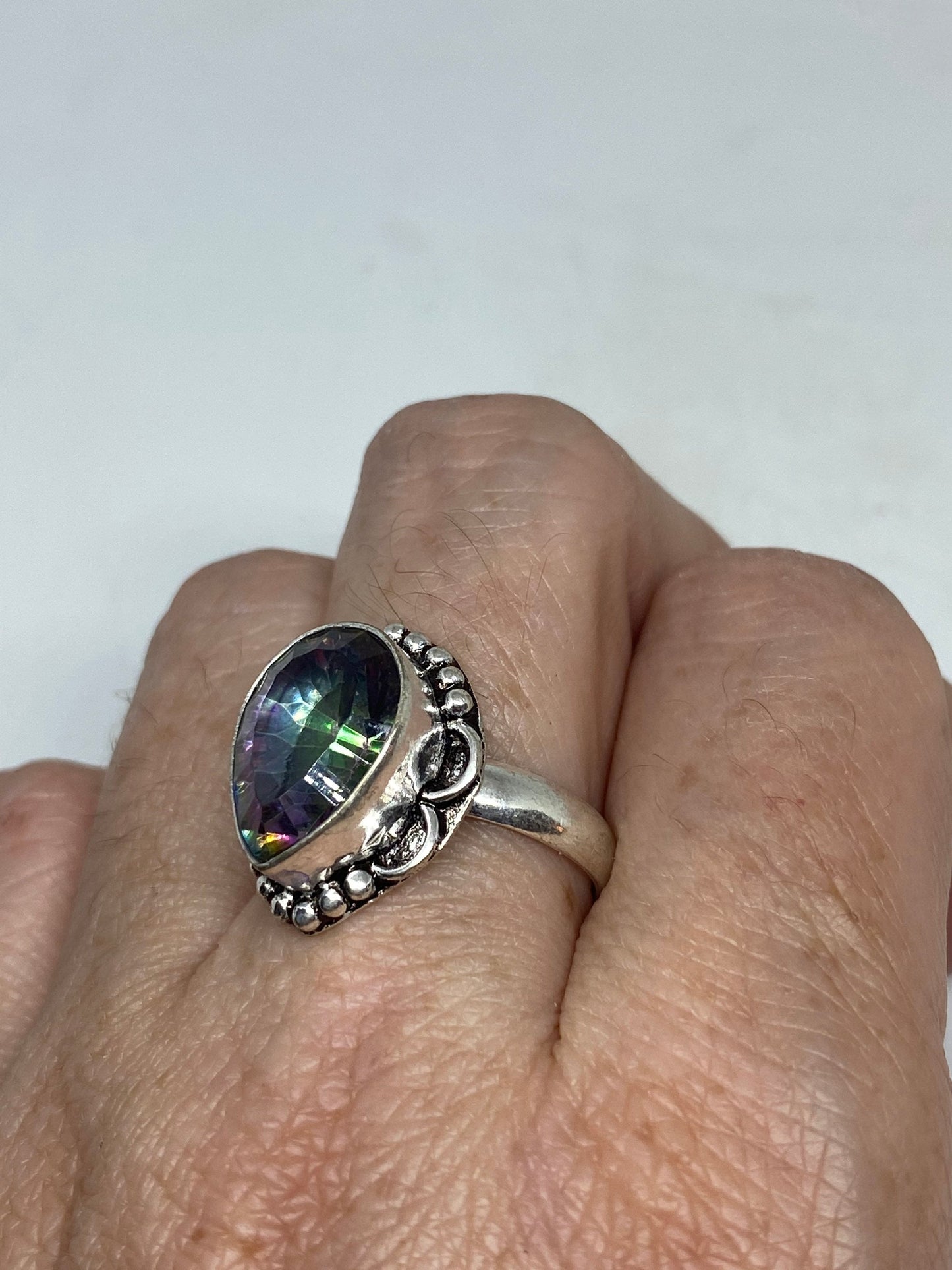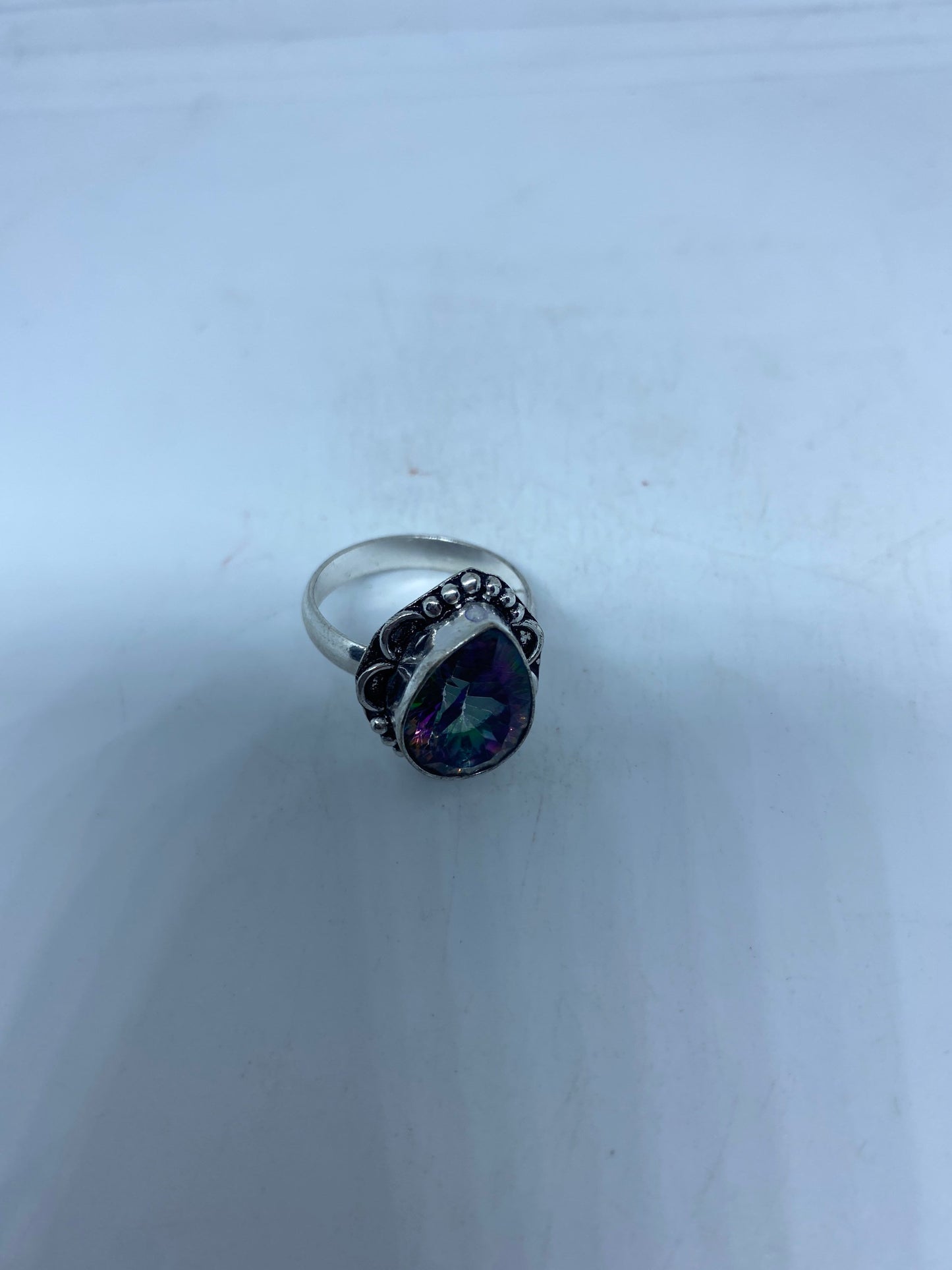 Vintage Genuine Mystic Blue Topaz Blue Stone Silver Ring