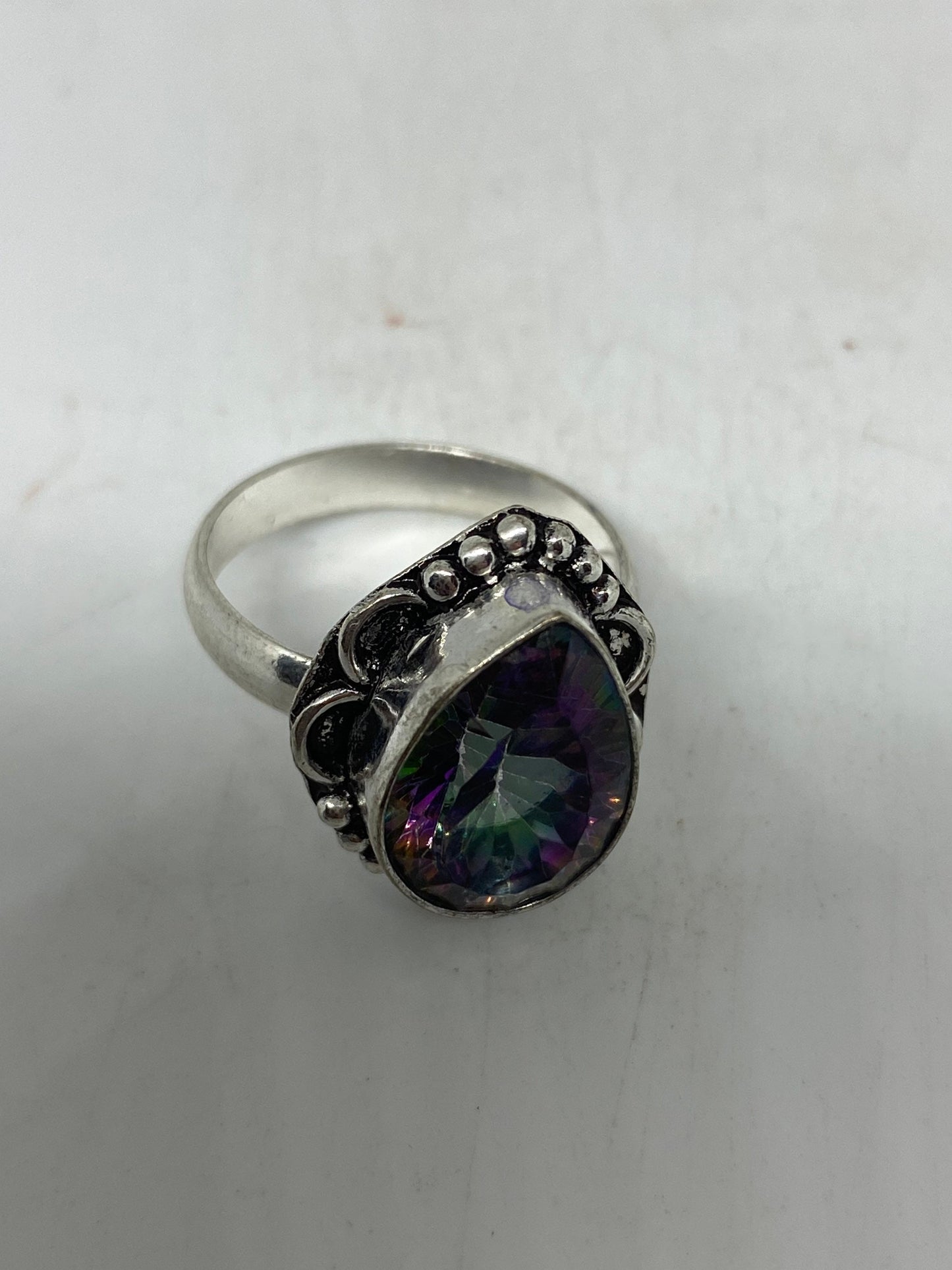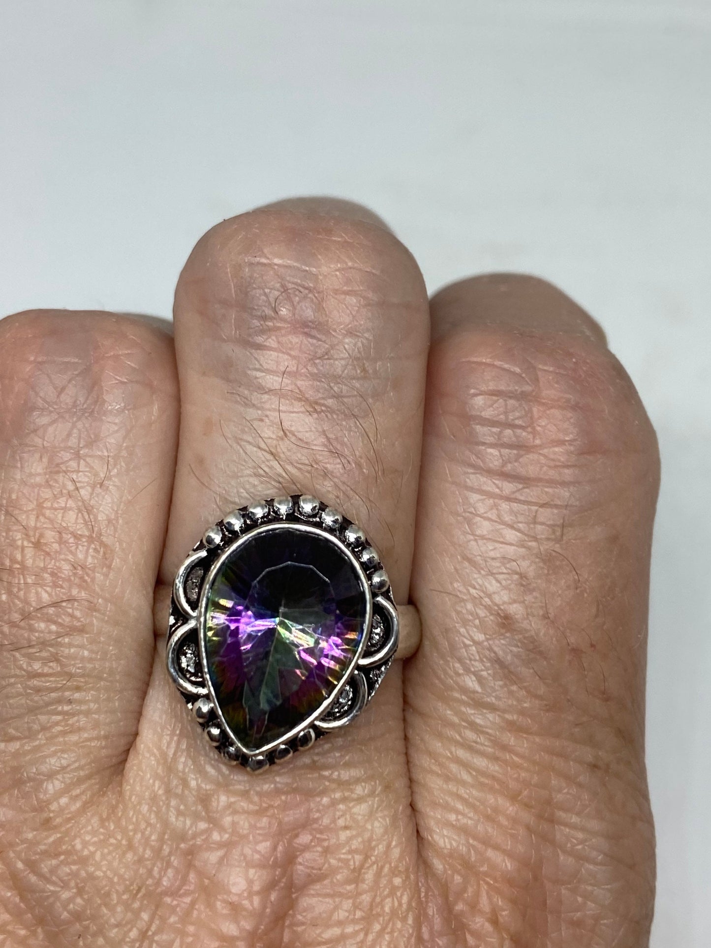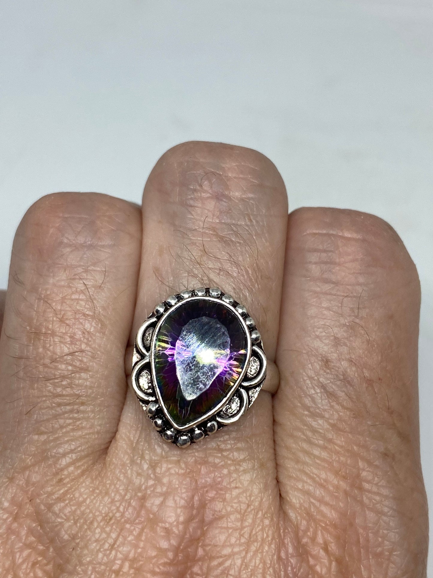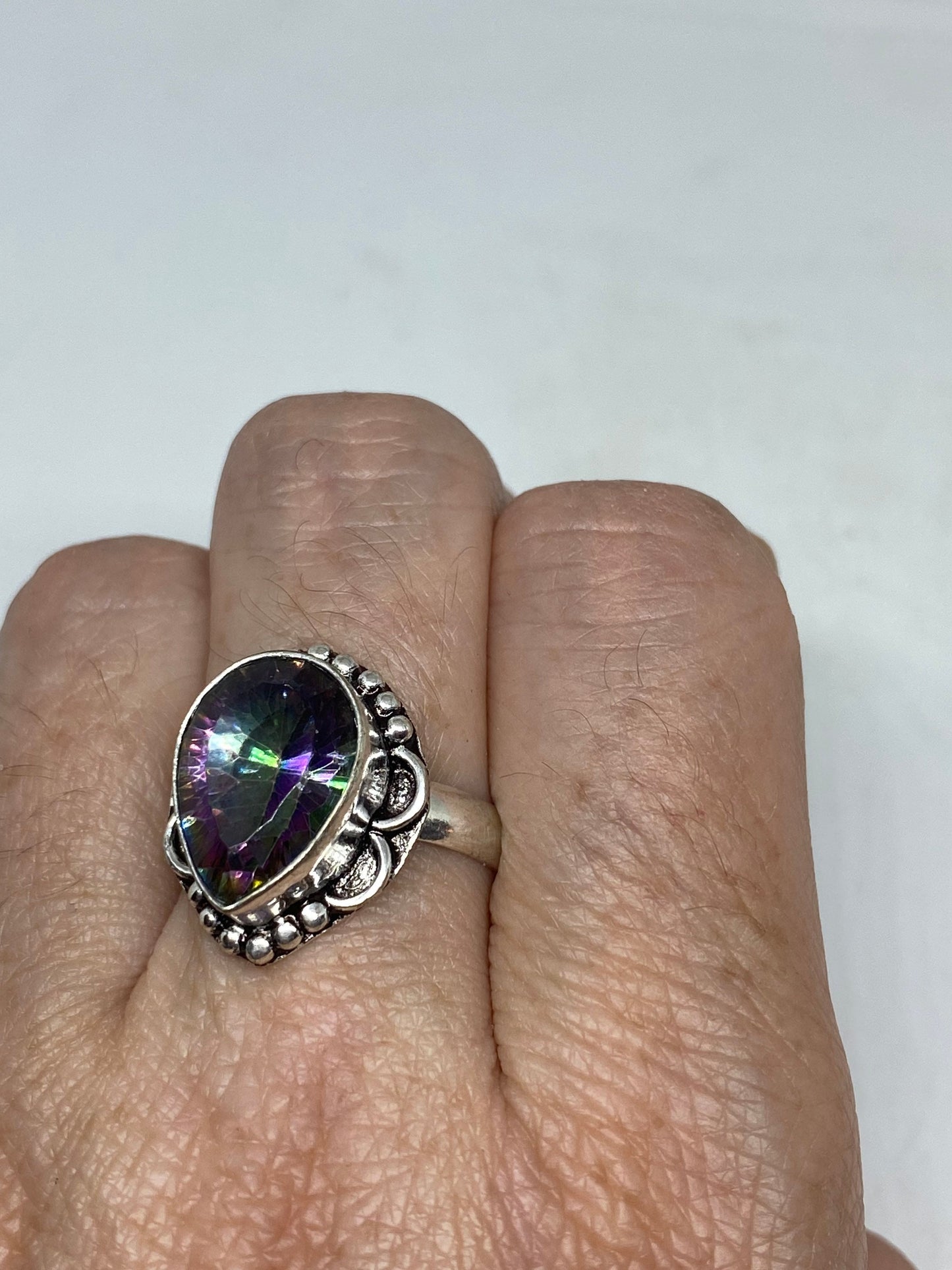 Vintage Genuine Mystic Blue Topaz Blue Stone Silver Ring
