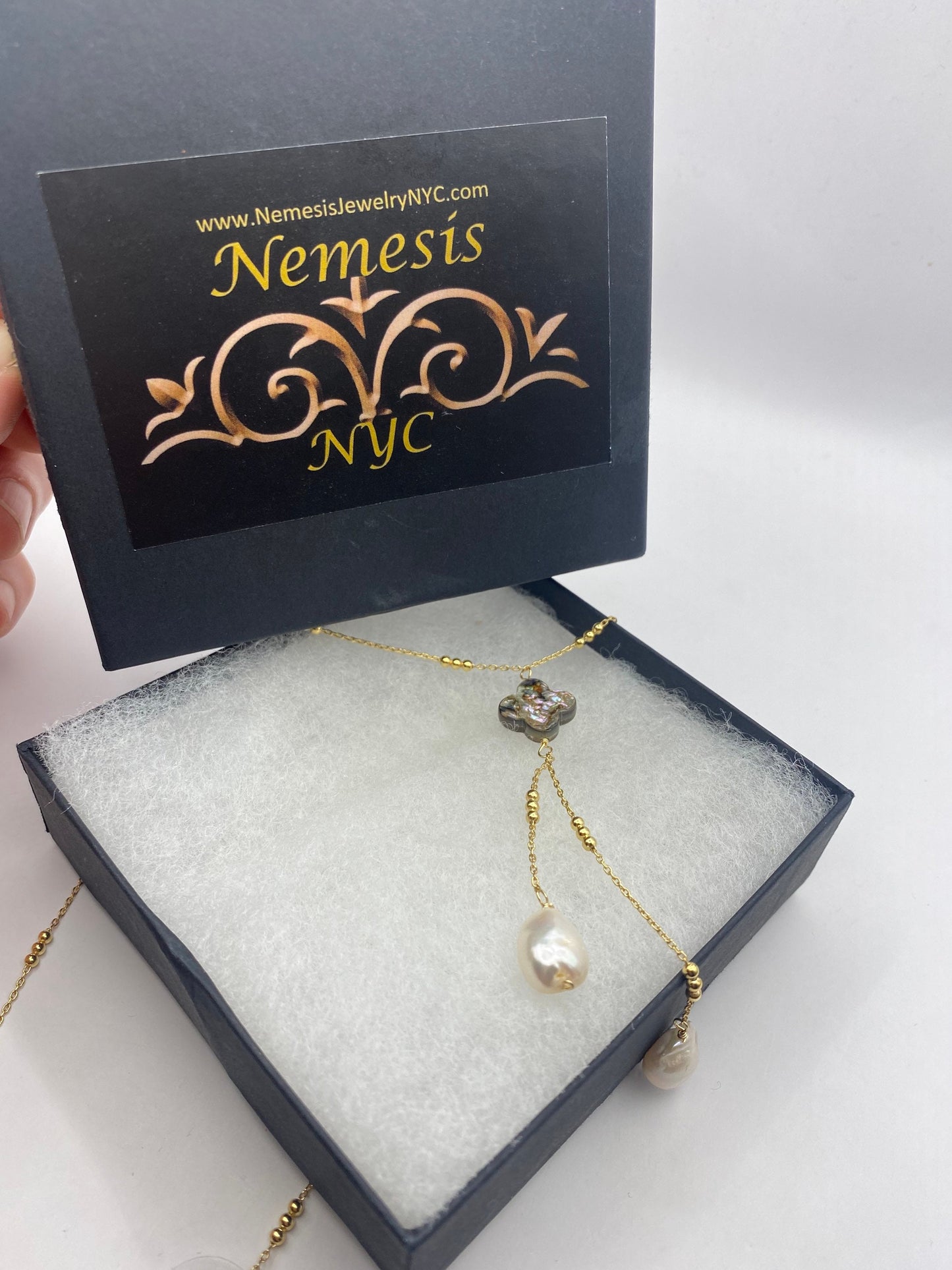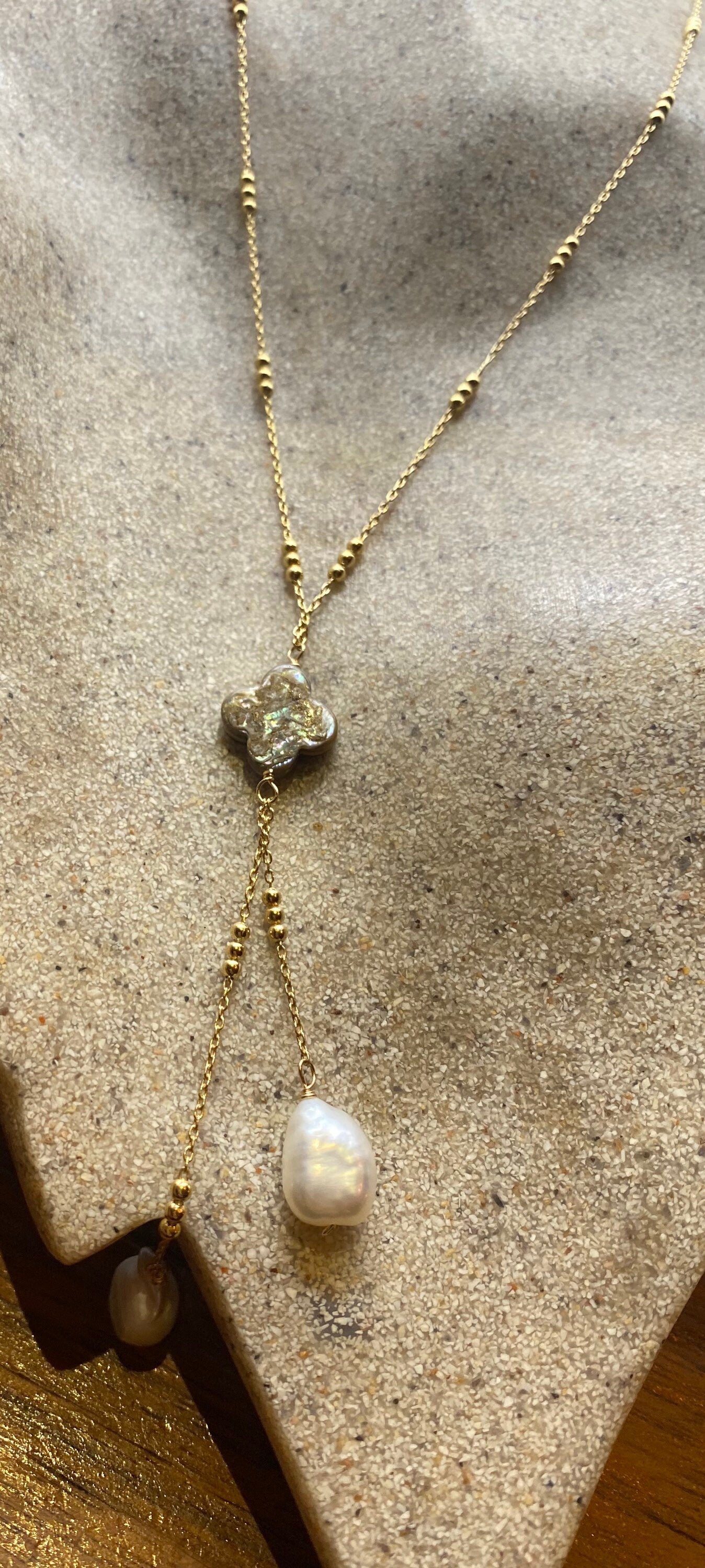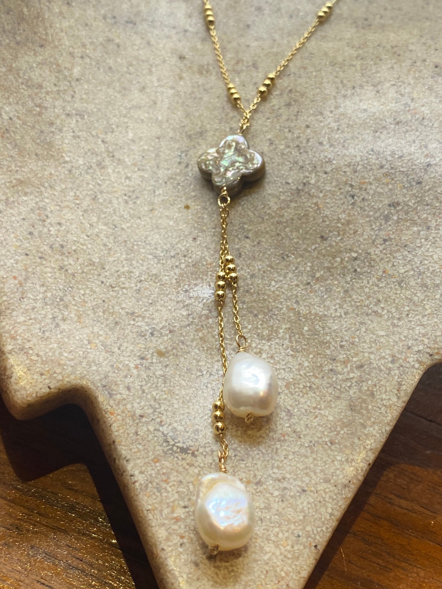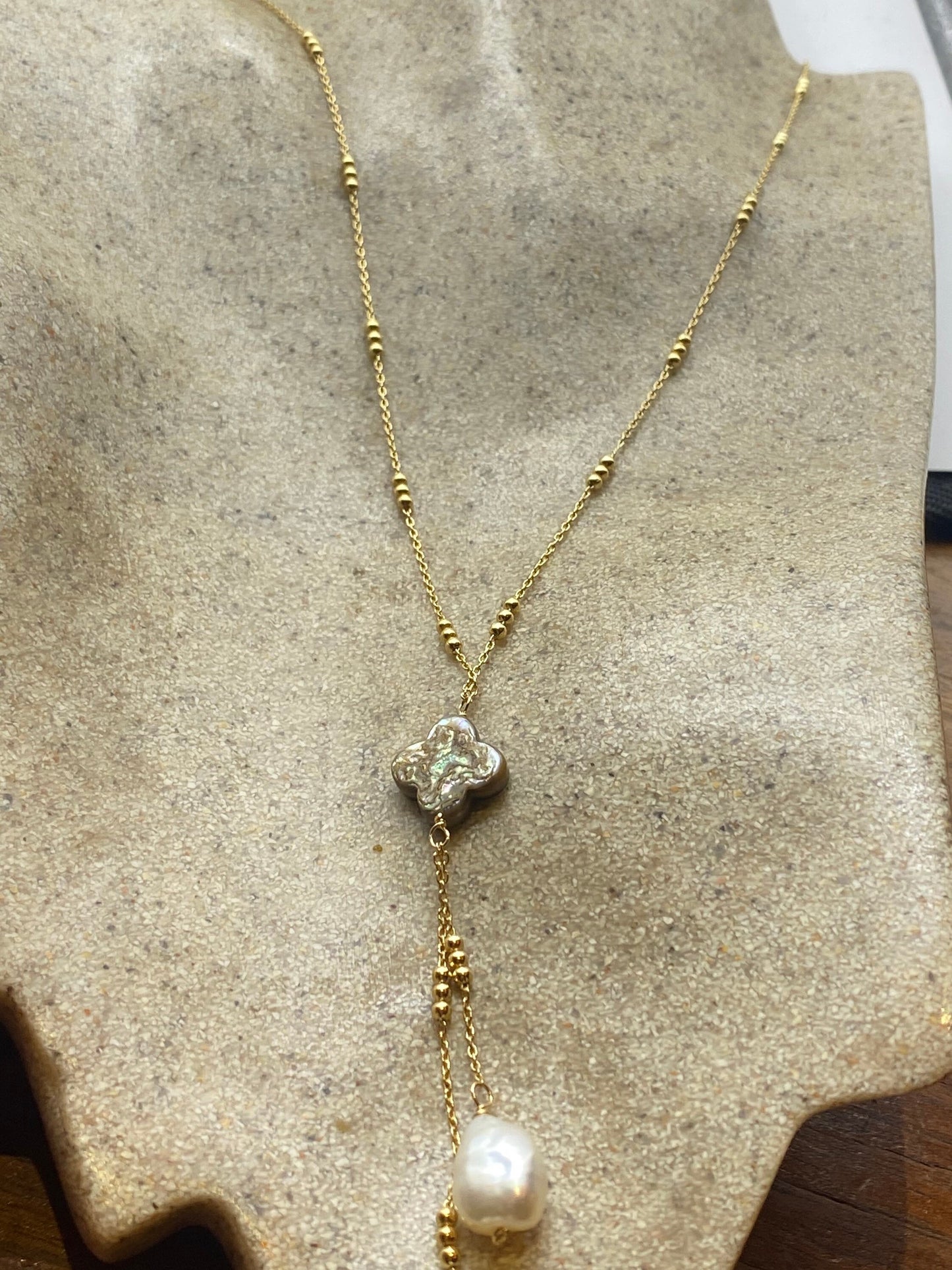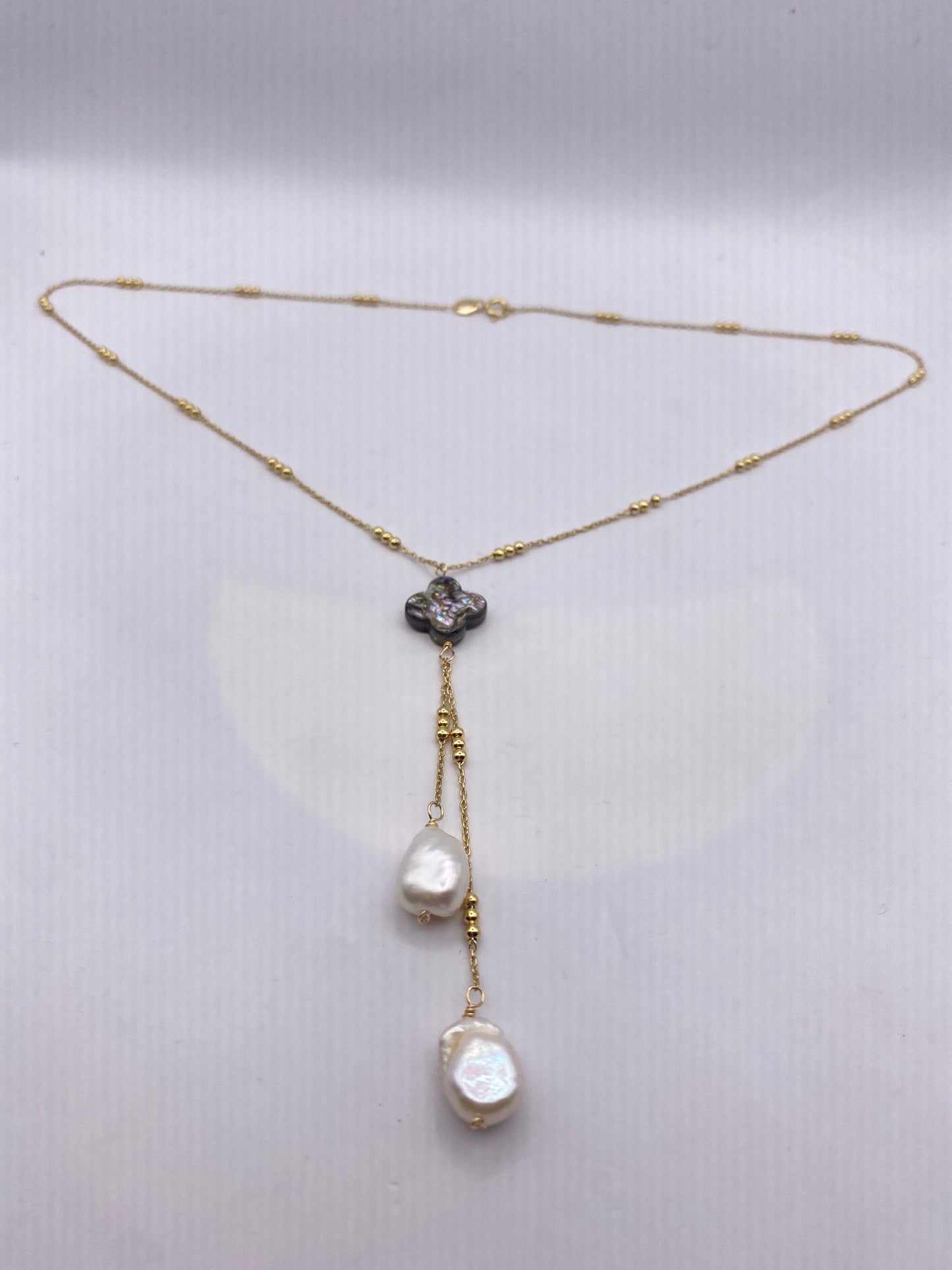 Vintage Golden 925 Sterling Silver White Pearl Pendant 16 inch Y necklace
