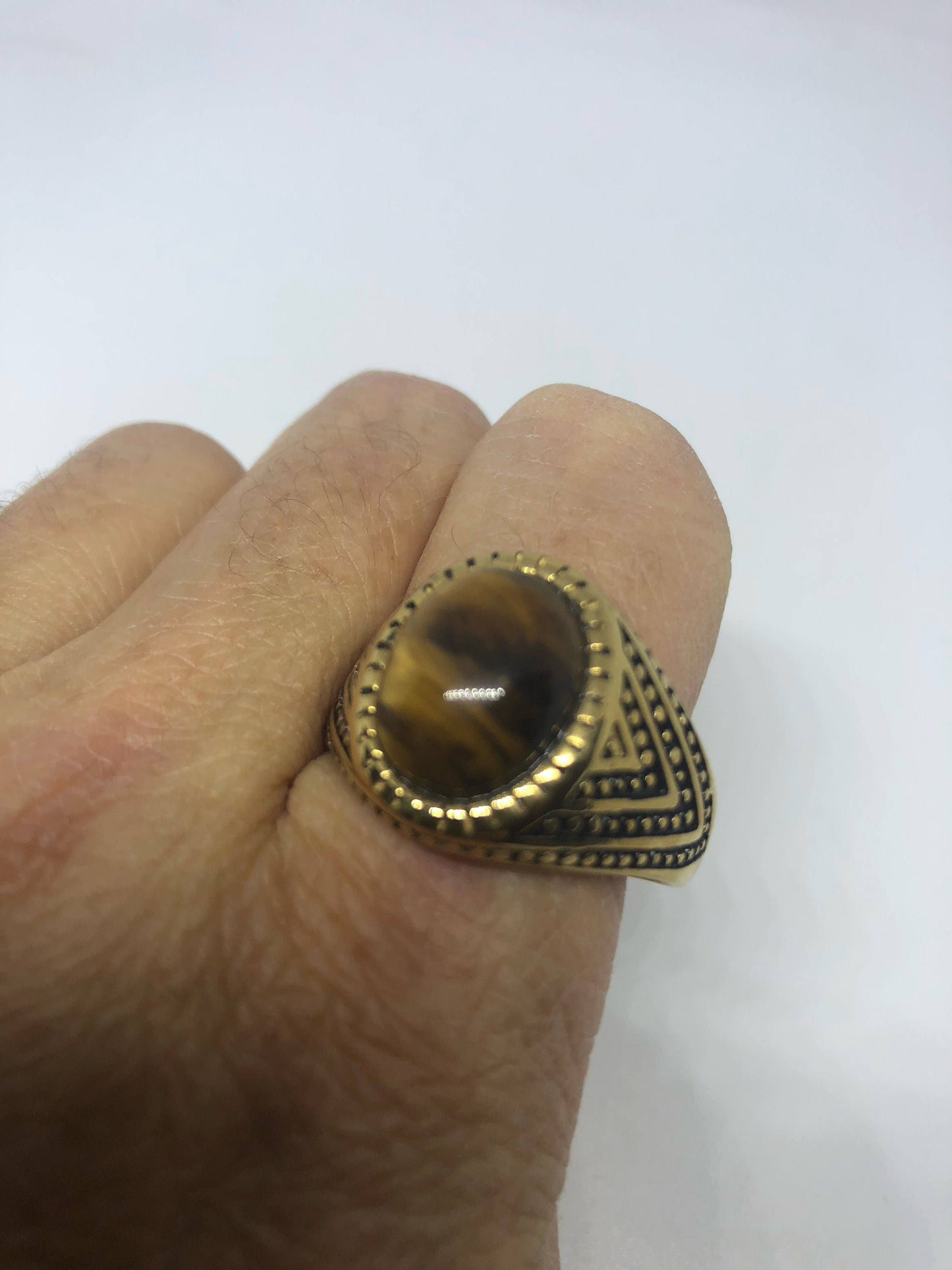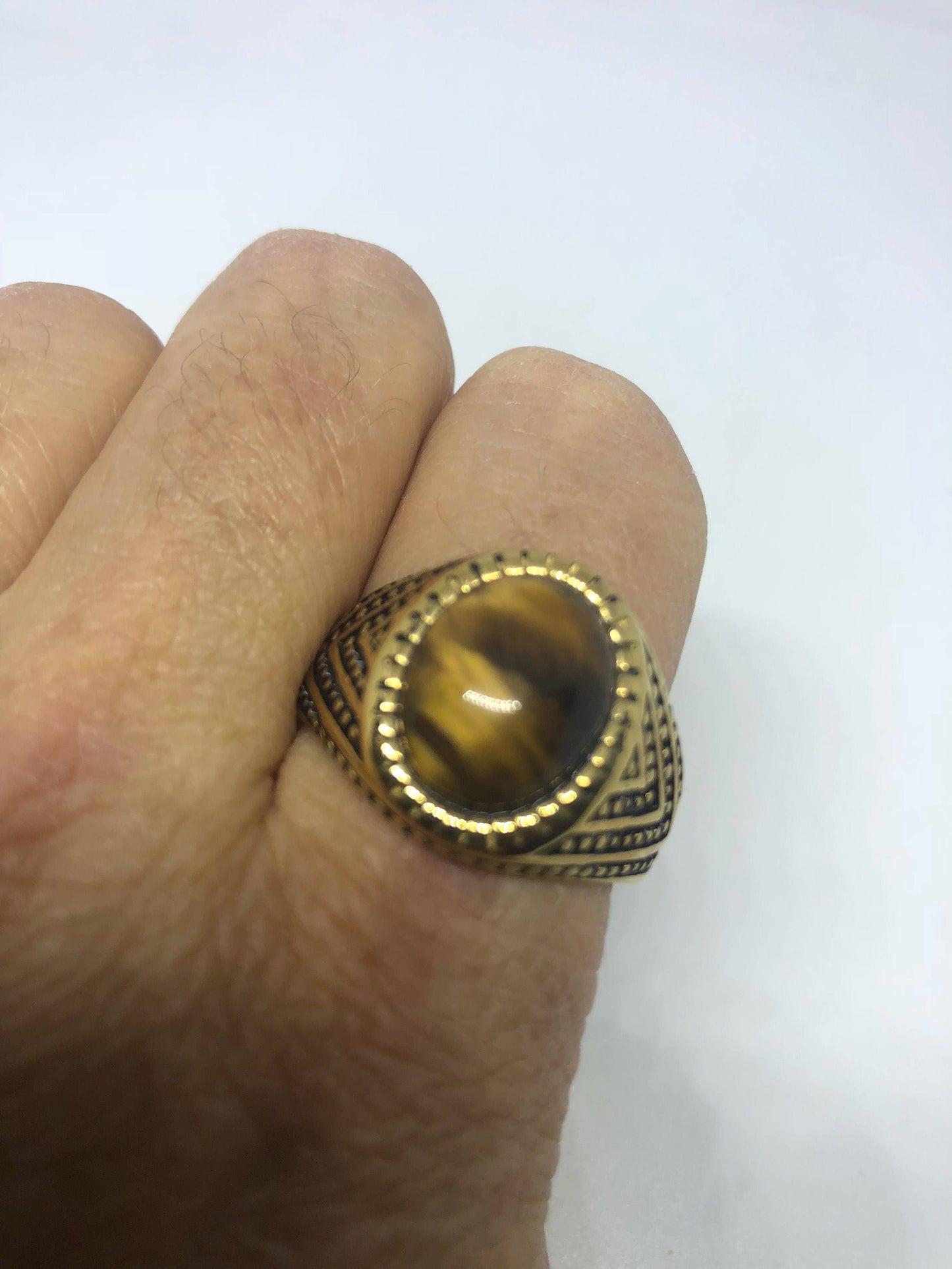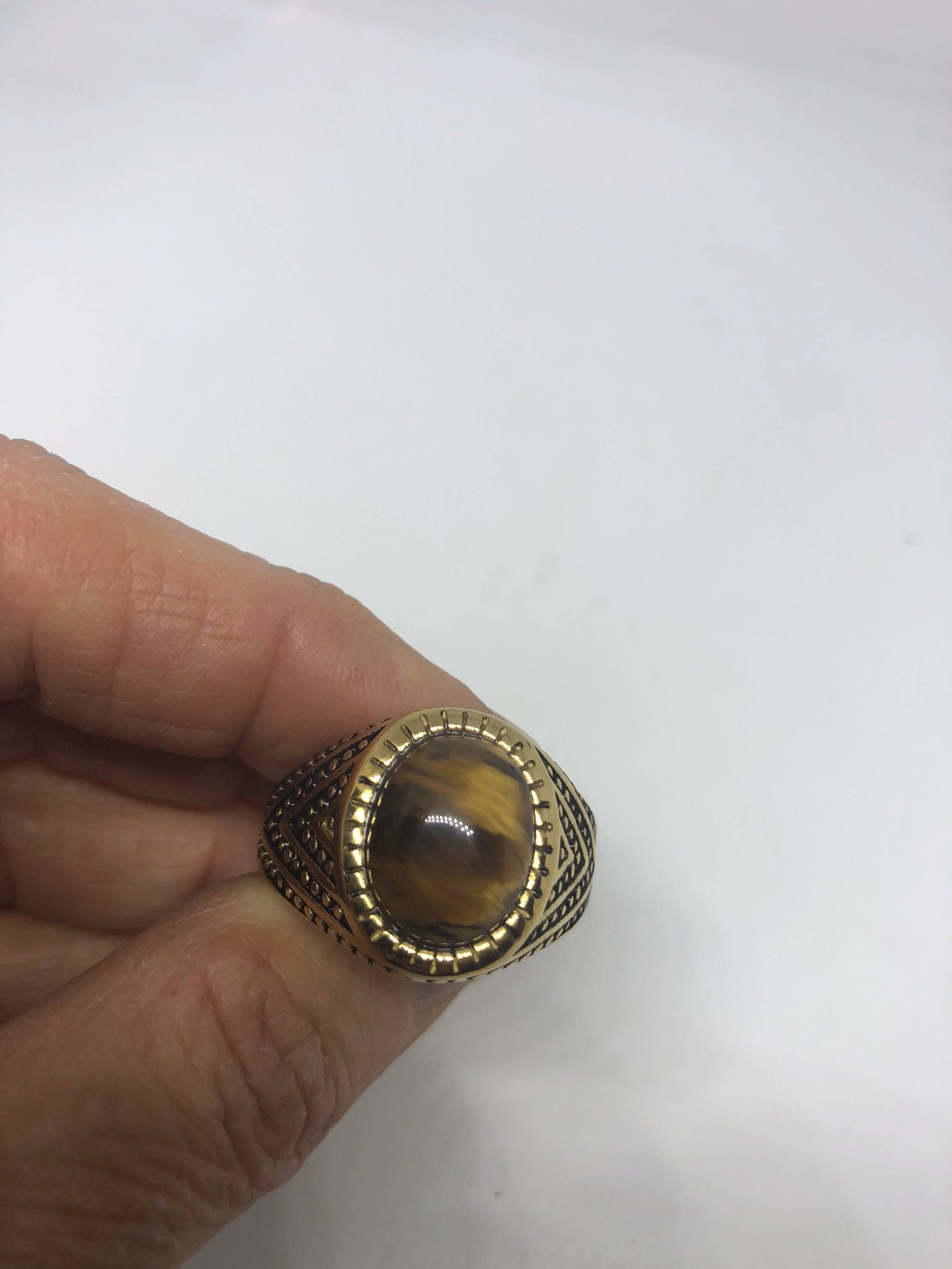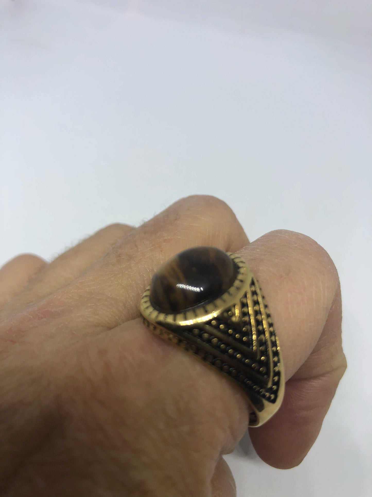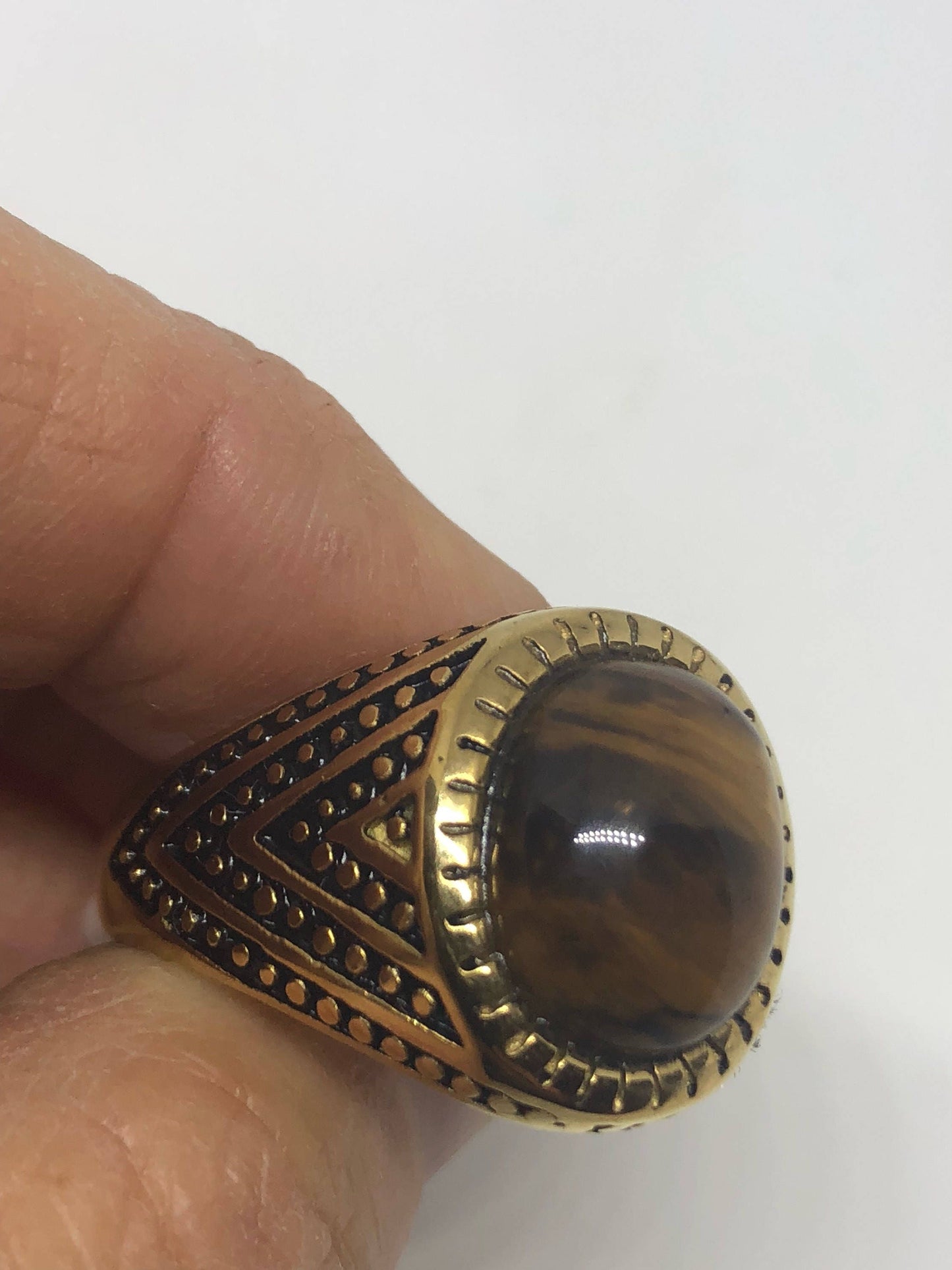 Vintage Gothic Gold Finished Stainless Steel Genuine Tigers Eye Ring
