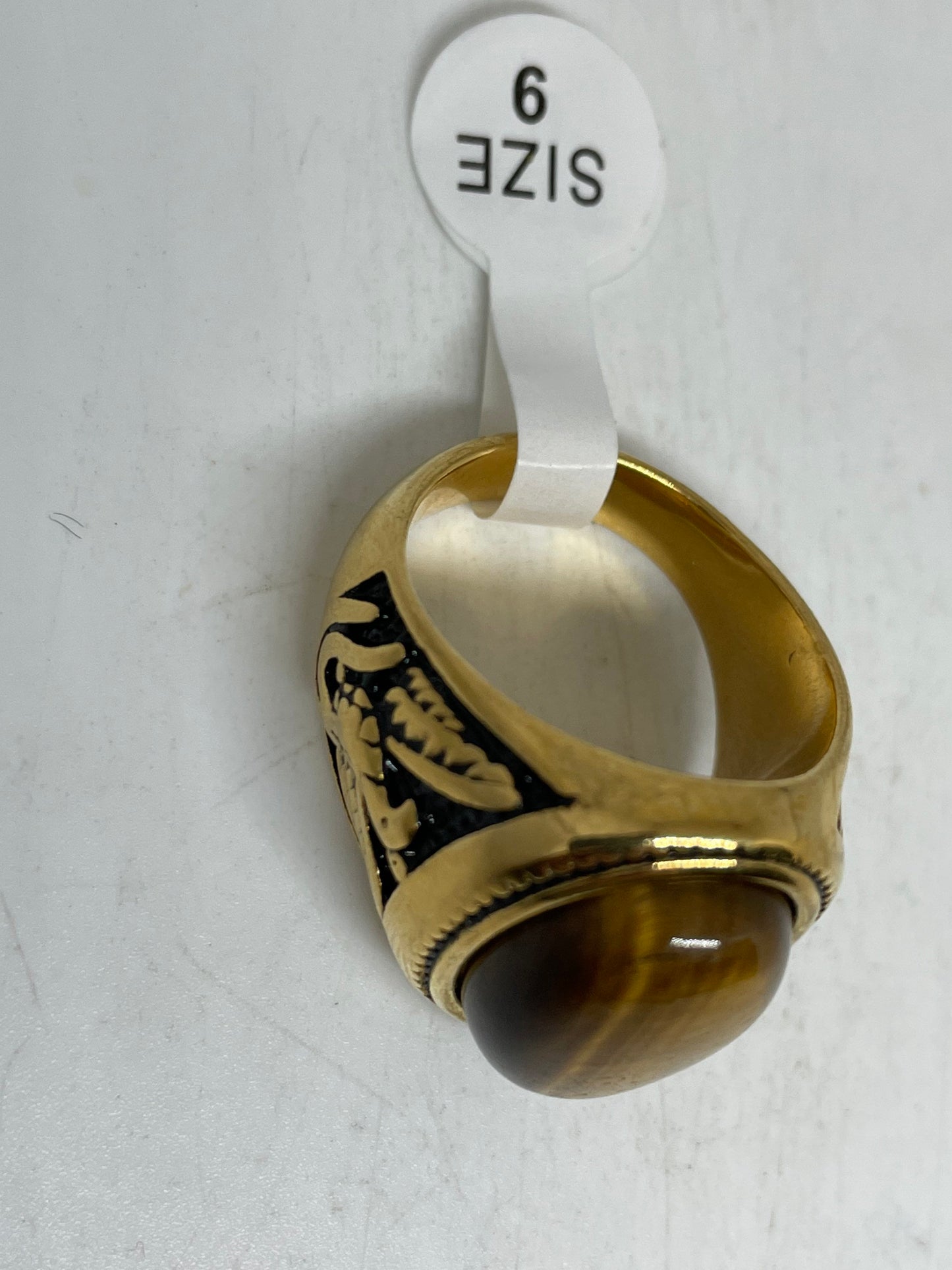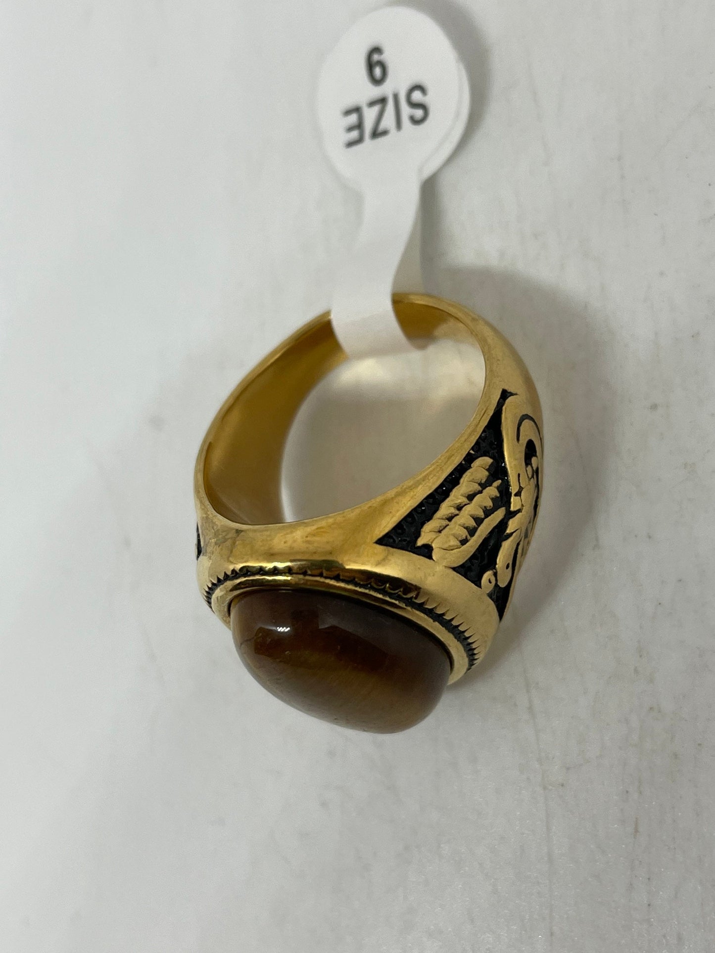 Nice heavy ring, golden Stainless Steel with genuine Tiger’s Eye