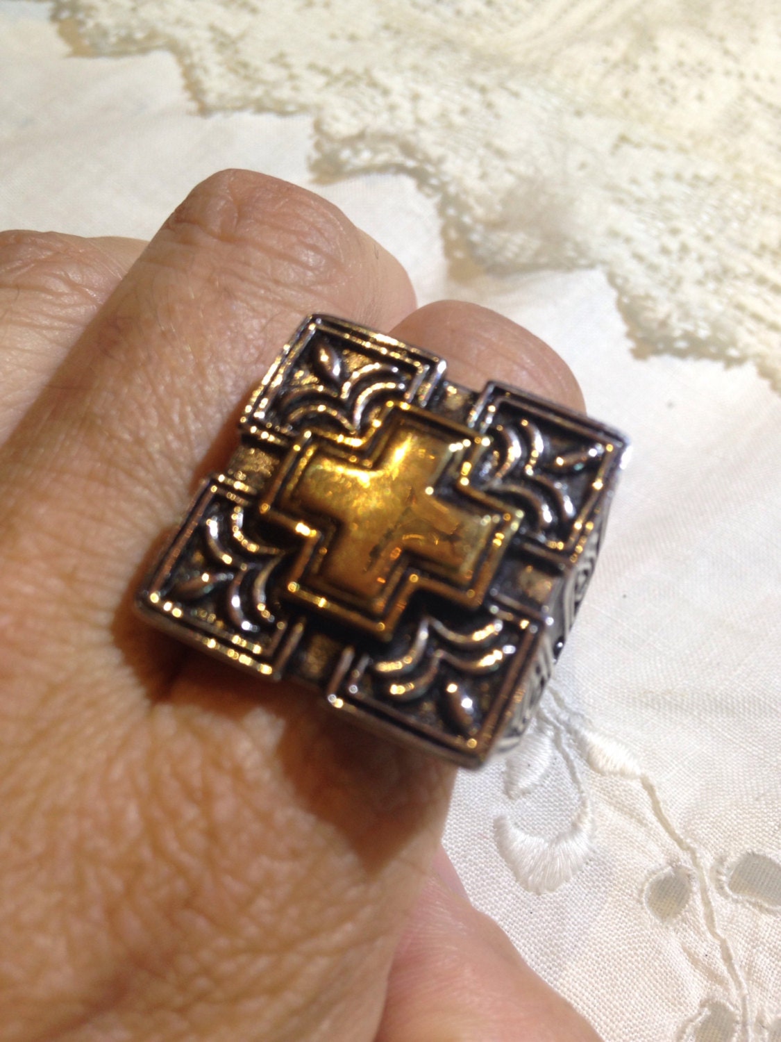 Vintage Gothic Golden Stainless Steel Cross Mens Ring