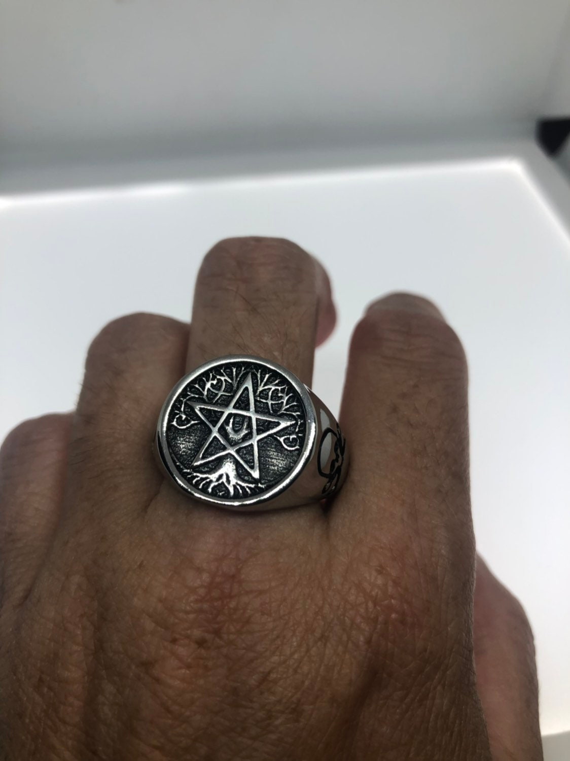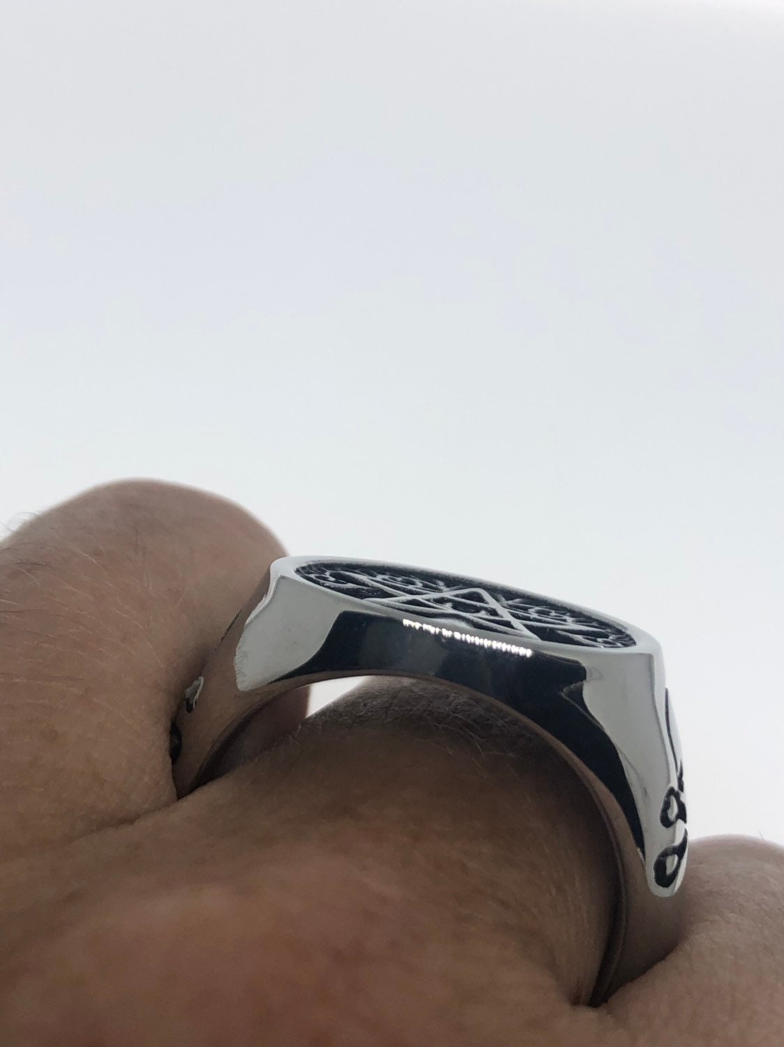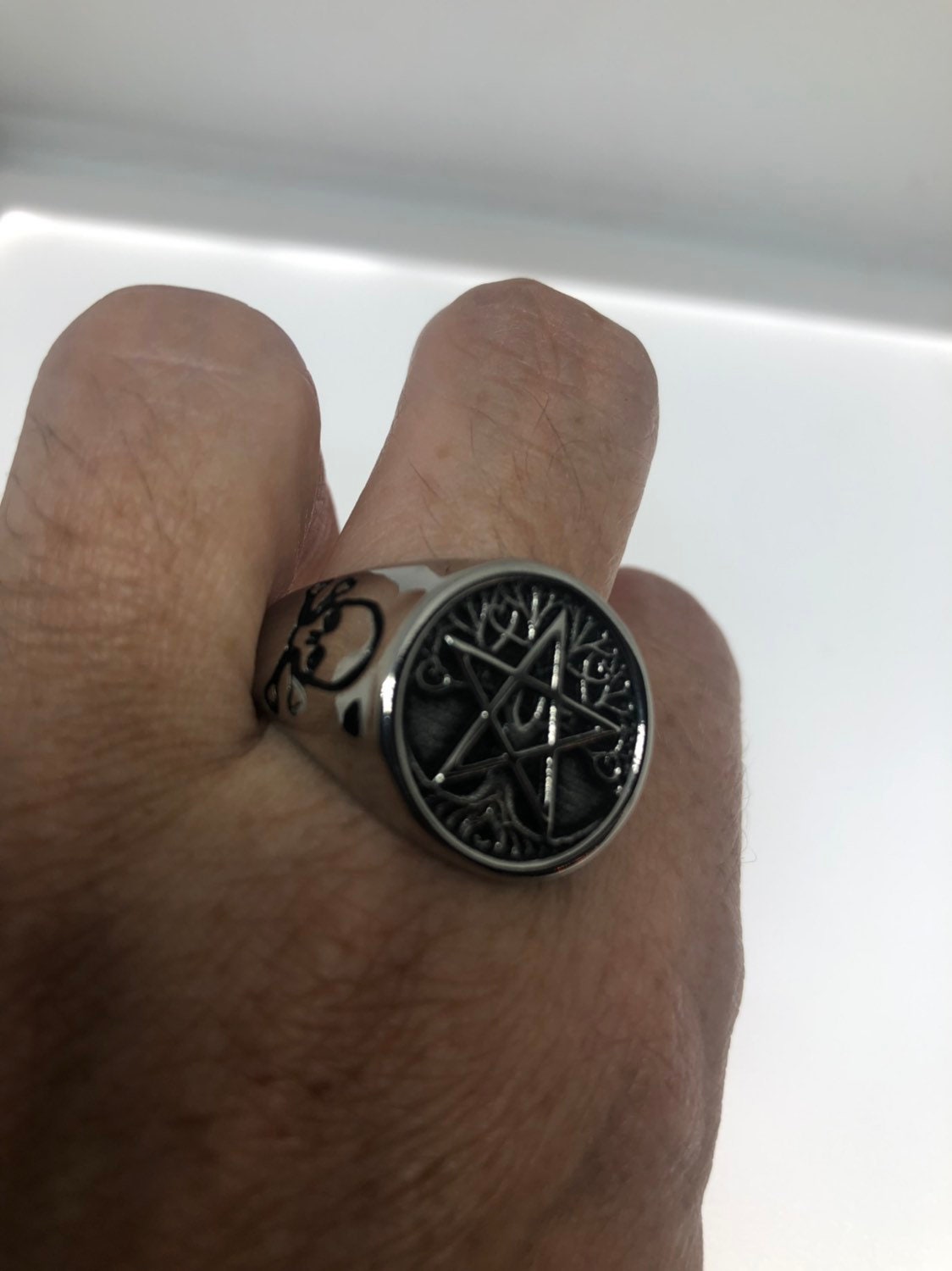 Vintage Gothic Silver Stainless Steel Pentacle Star Mens Ring