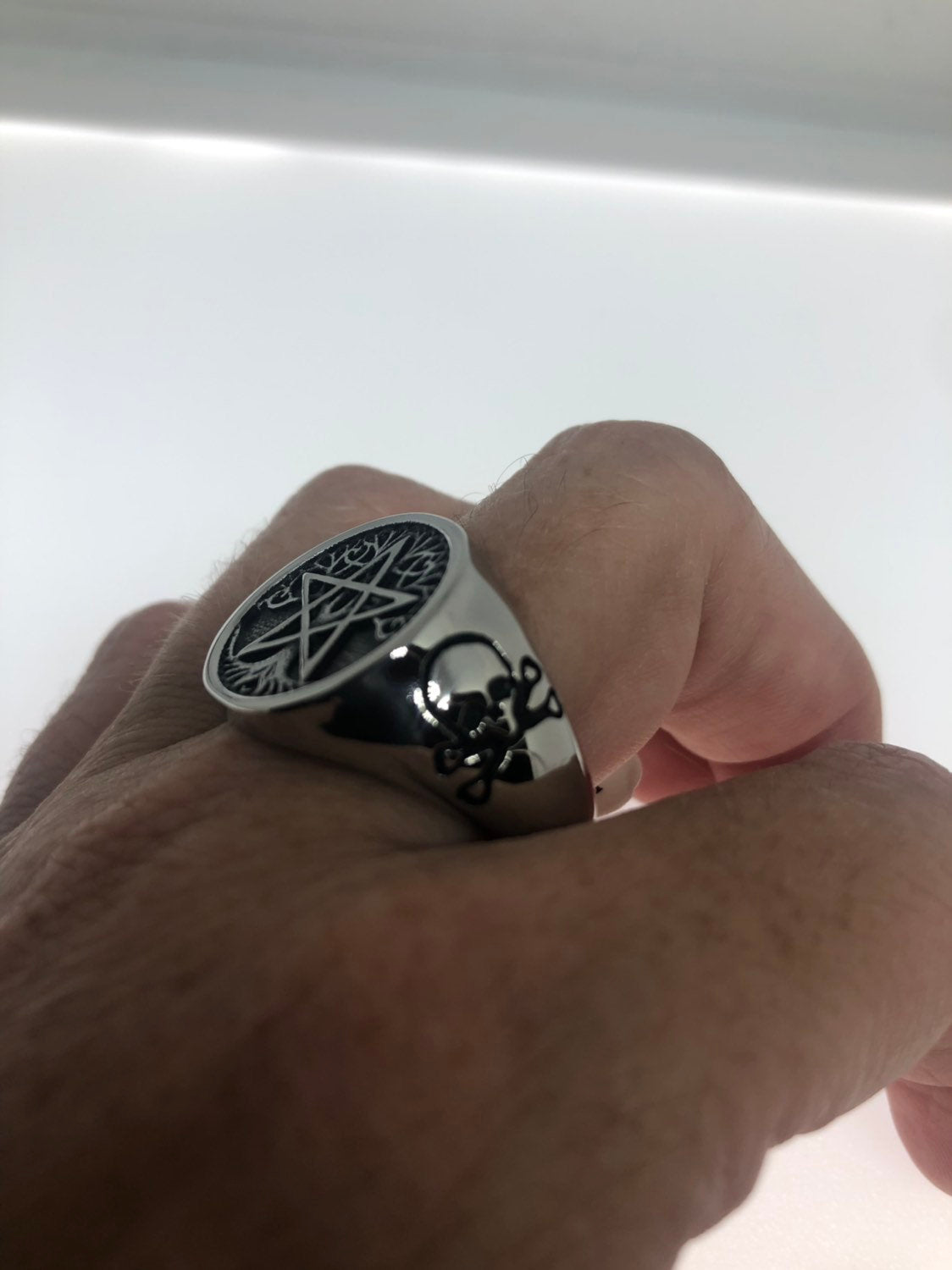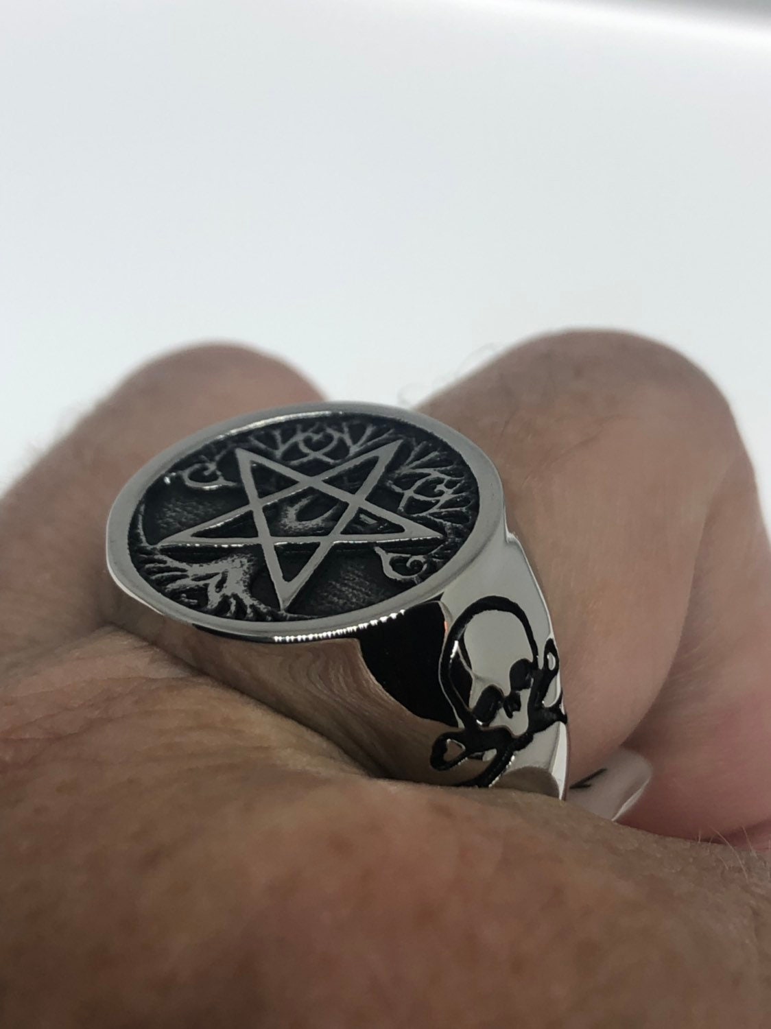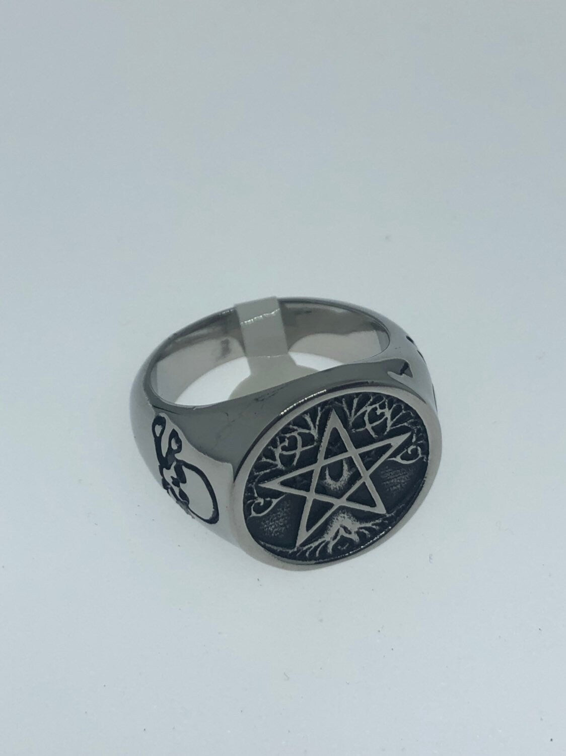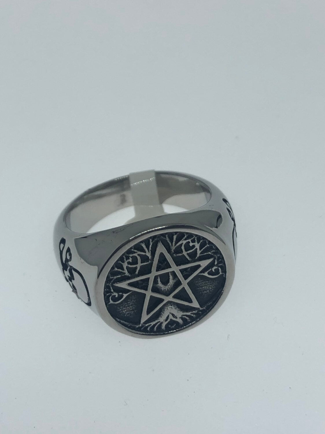 Vintage Gothic Silver Stainless Steel Pentacle Star Mens Ring