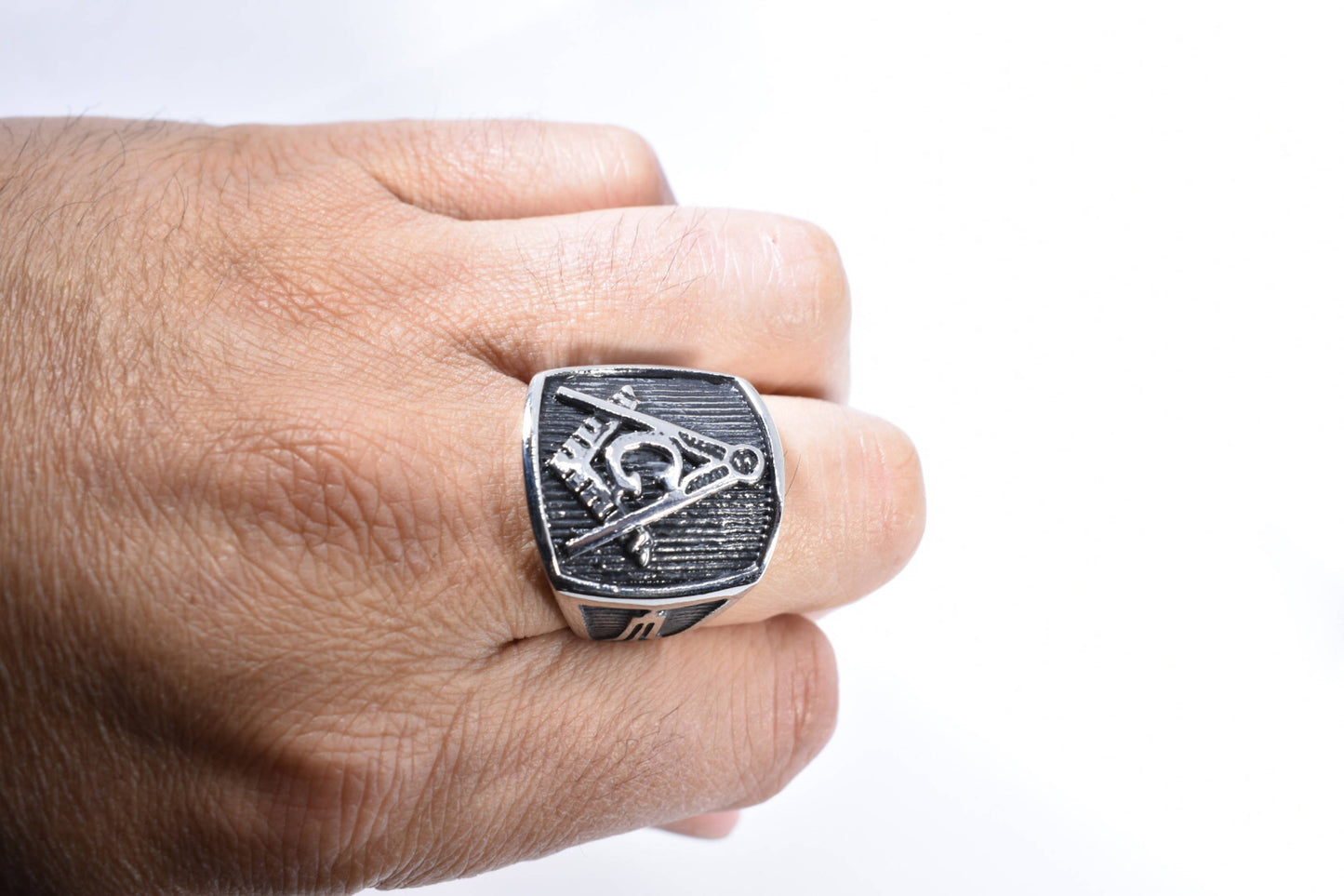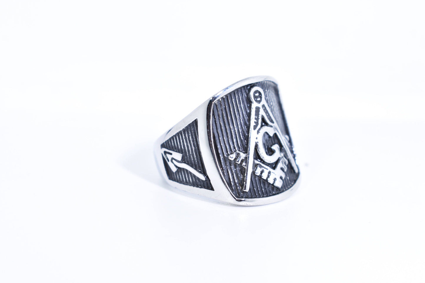 Vintage Gothic Stainless Steel Free Mason G Mens Ring