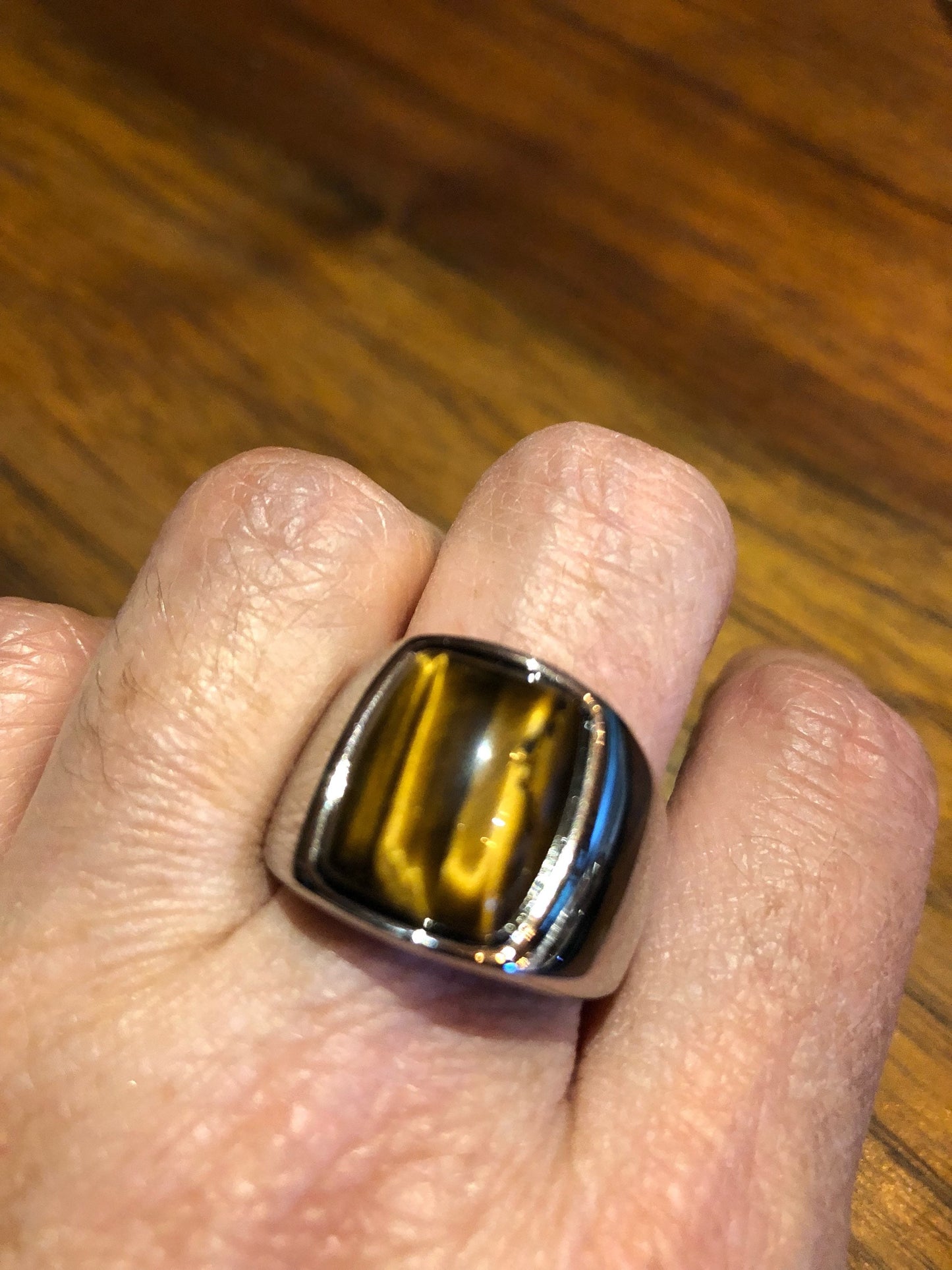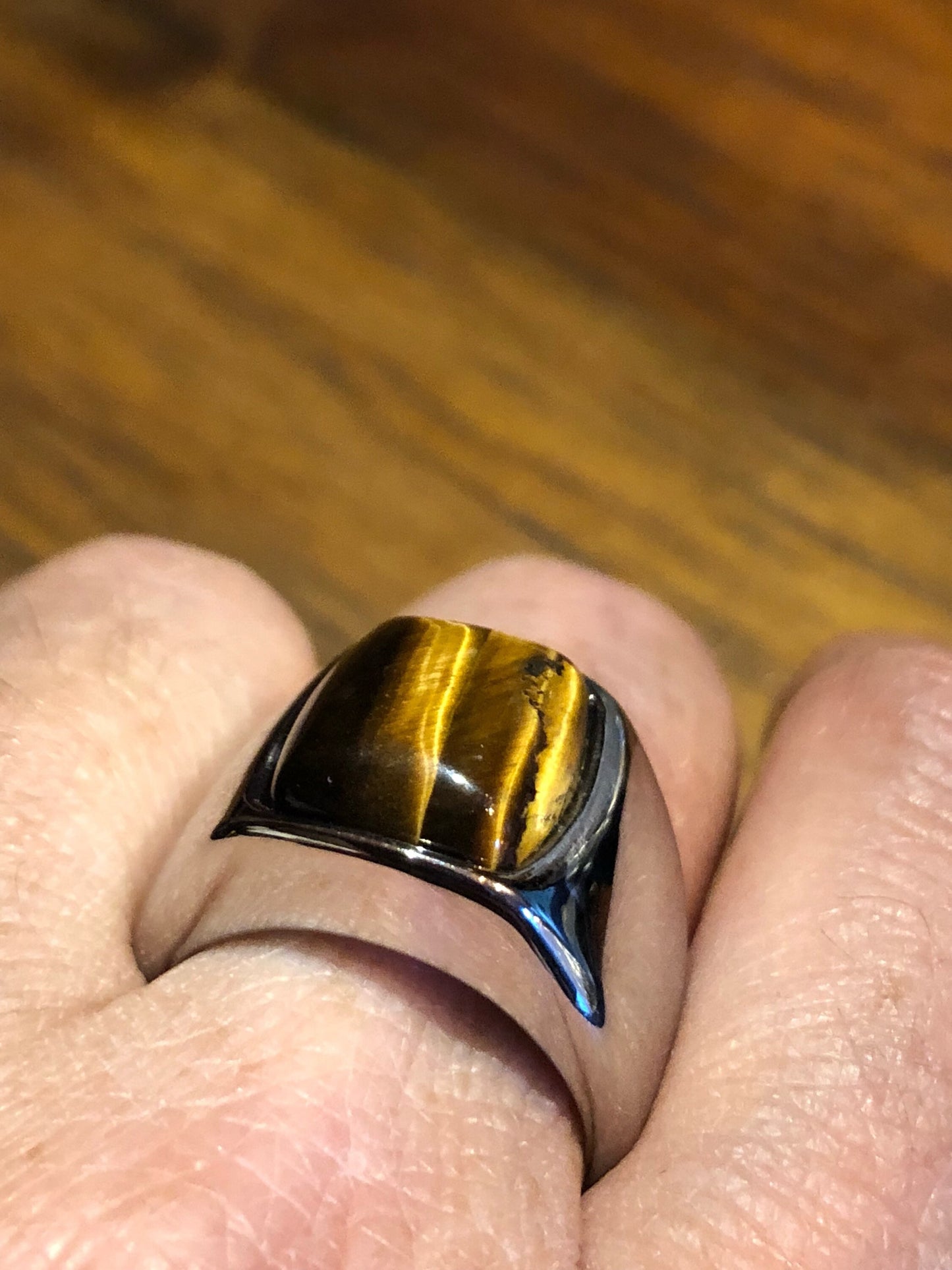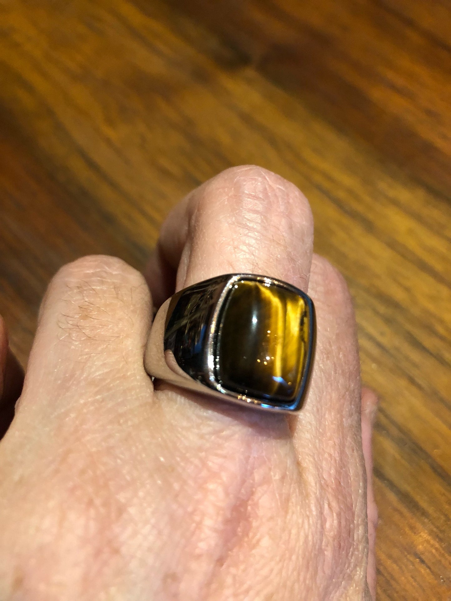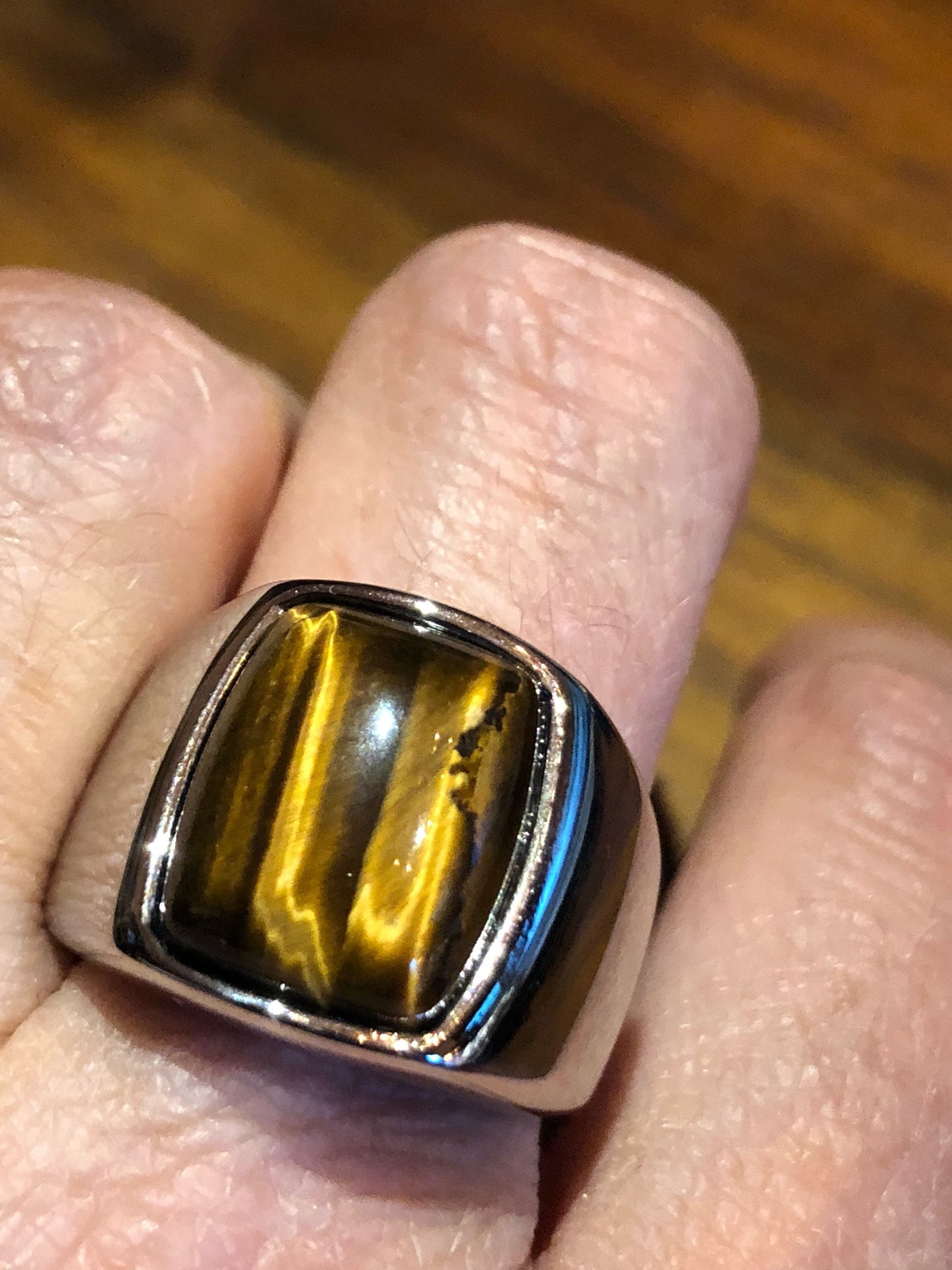 Vintage Gothic Stainless Steel Genuine Tigers Eye Mens Ring