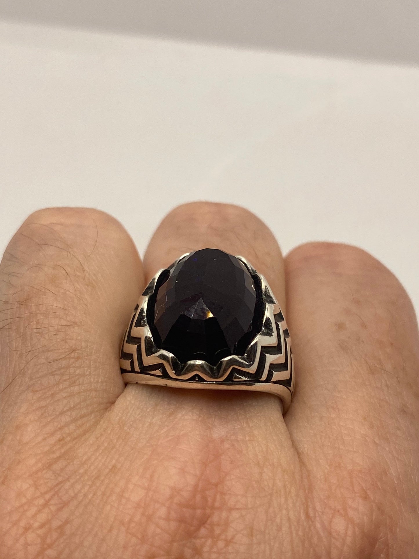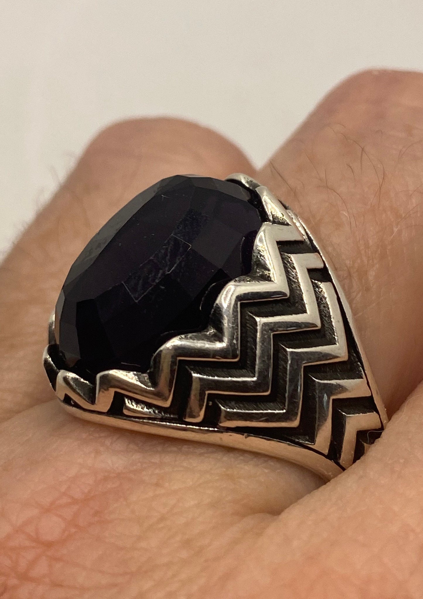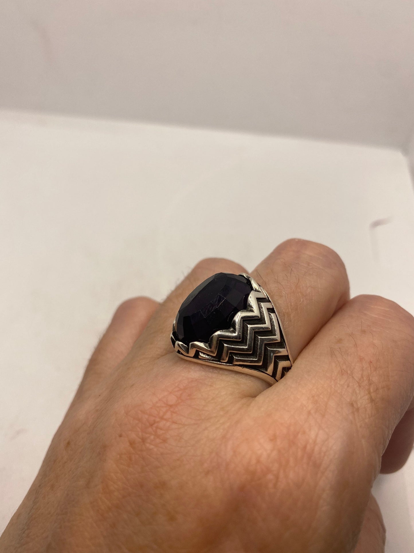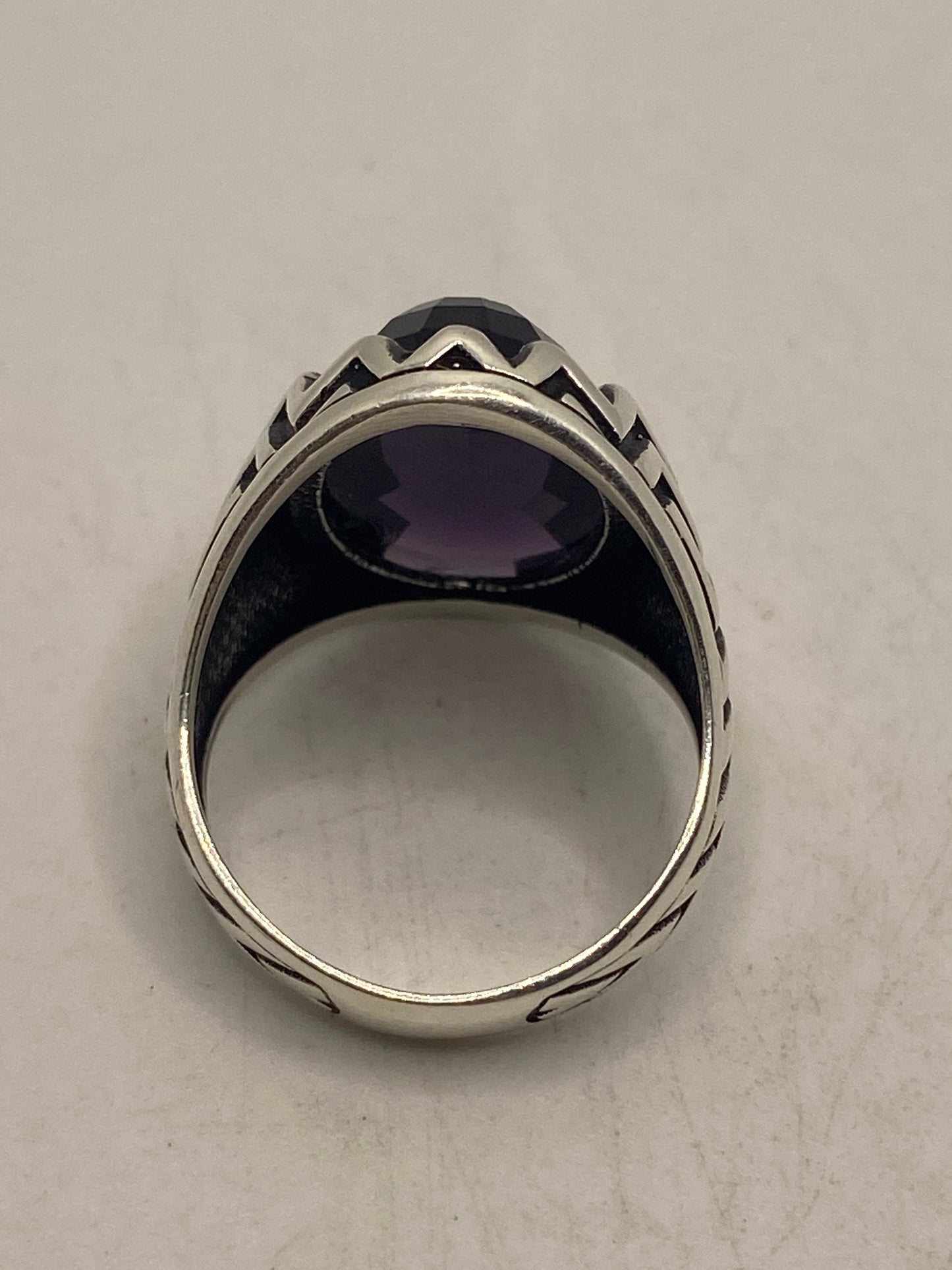 Vintage Gothic Sterling Silver Amethyst Glass Mens Ring