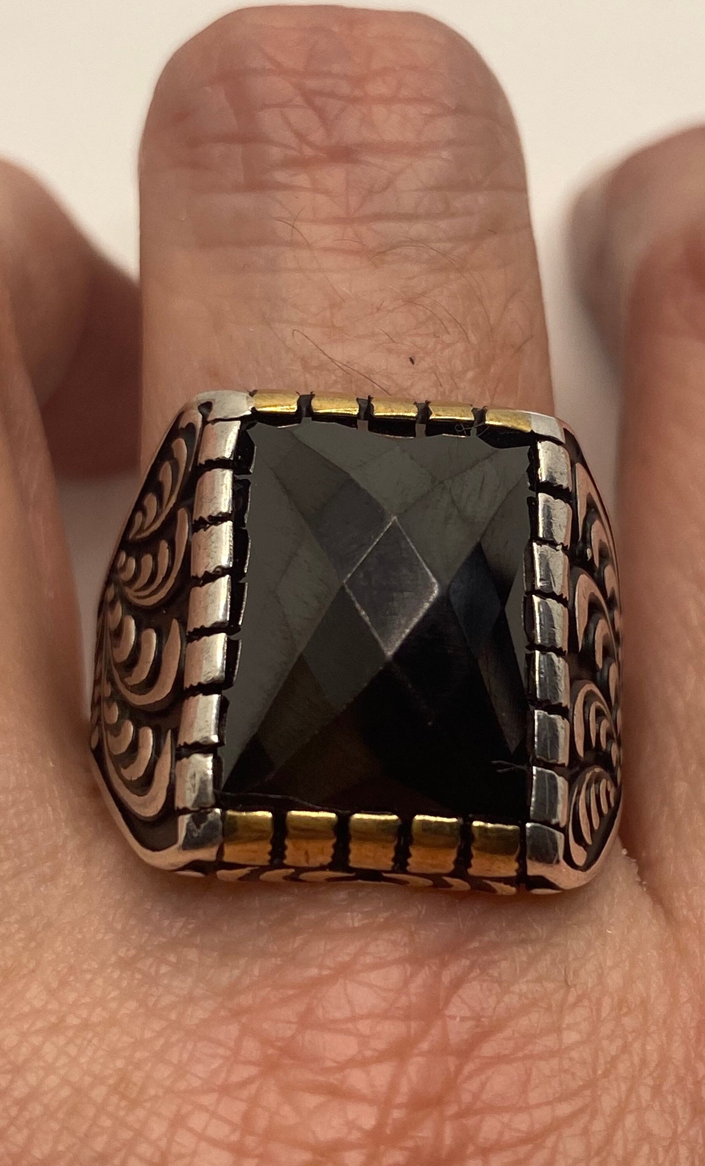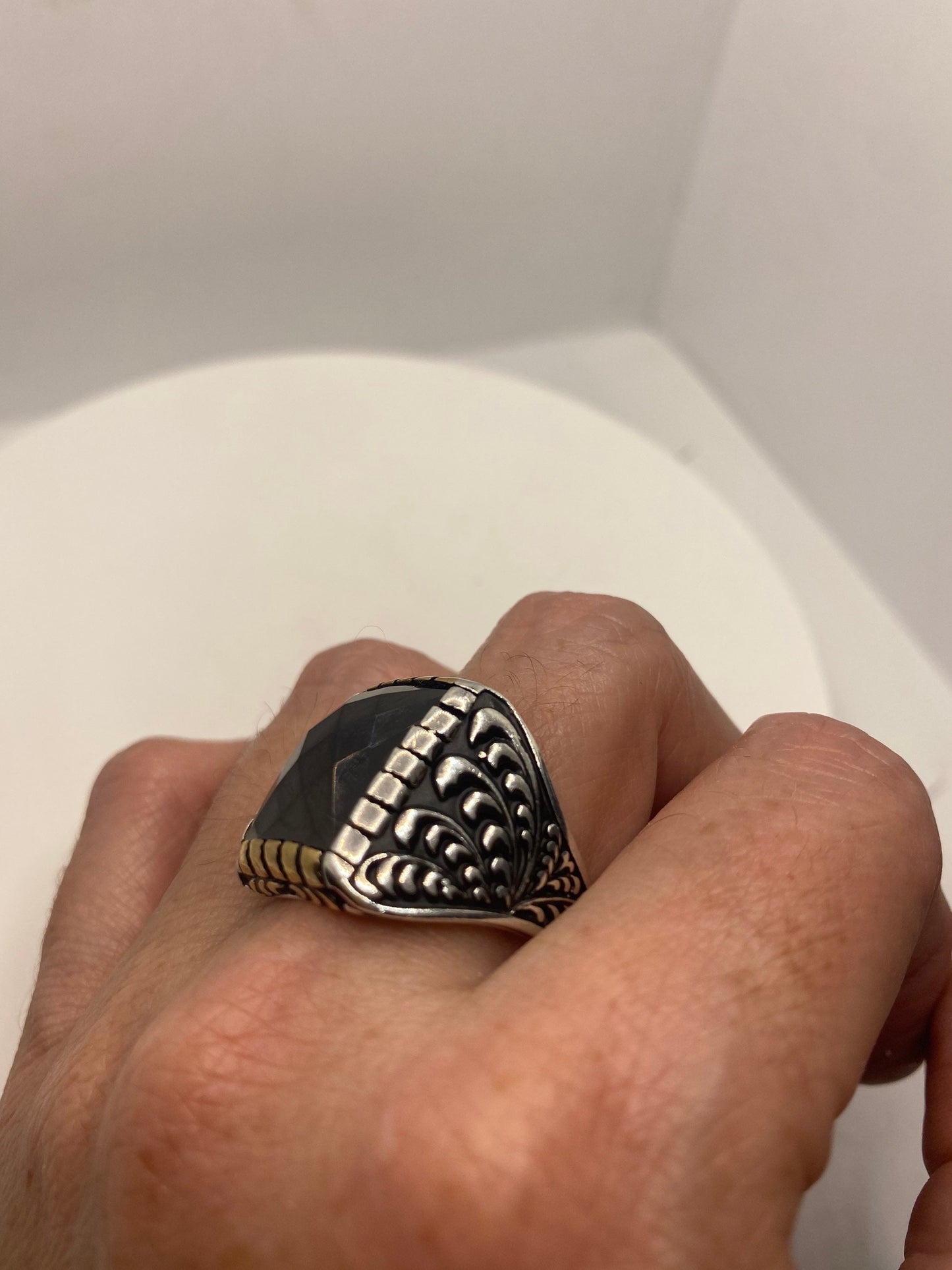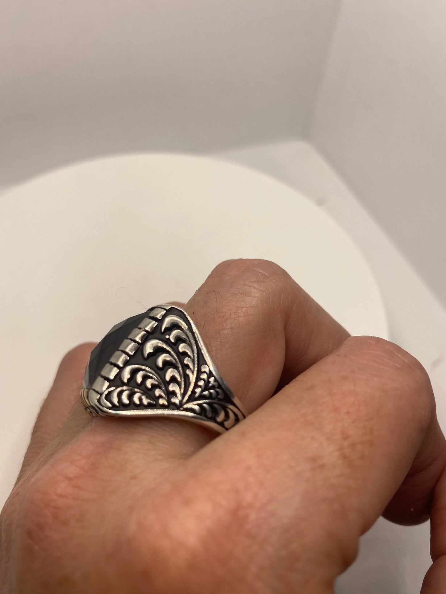 Vintage Gothic Sterling Silver Genuine Hemitite Mens Ring