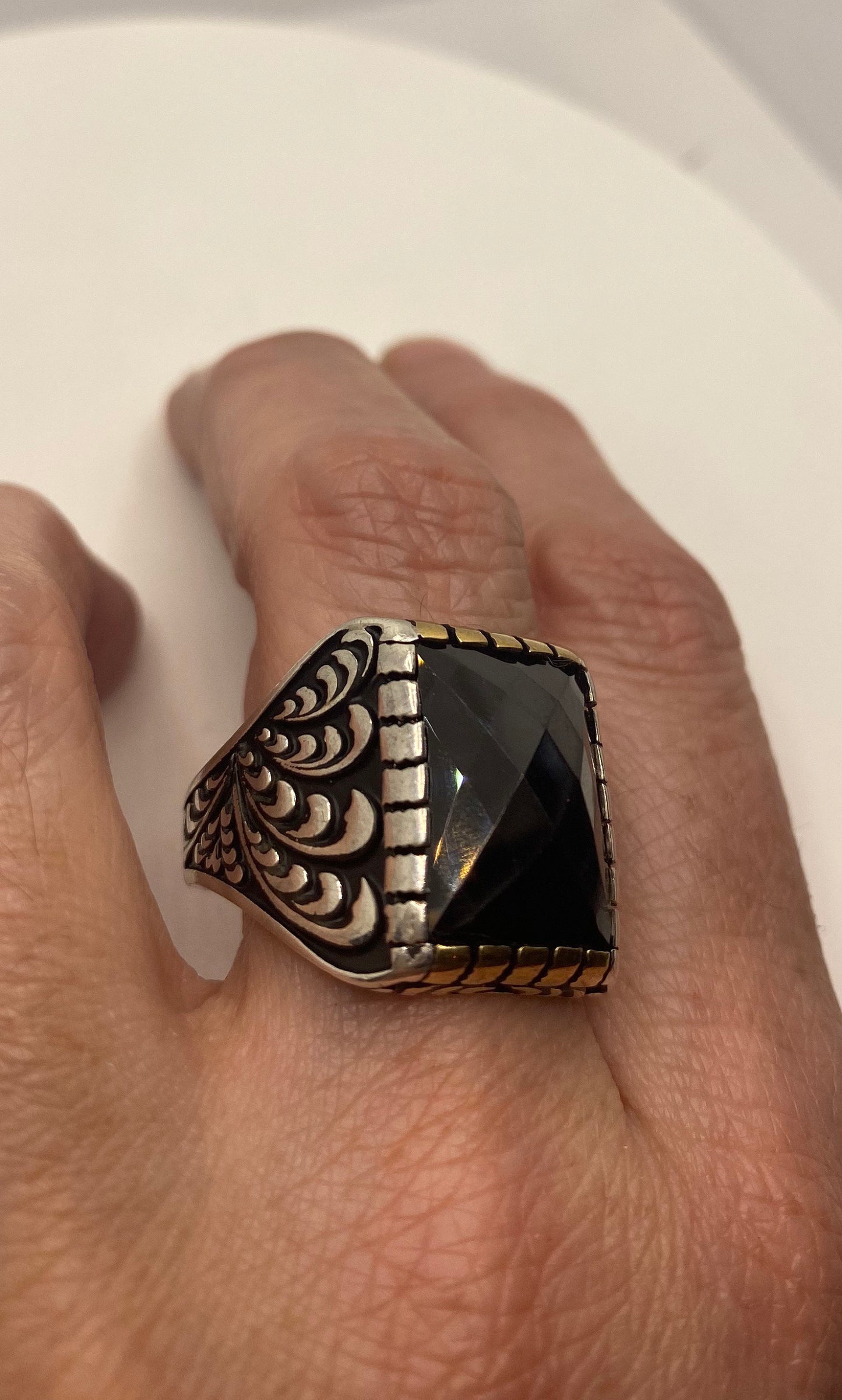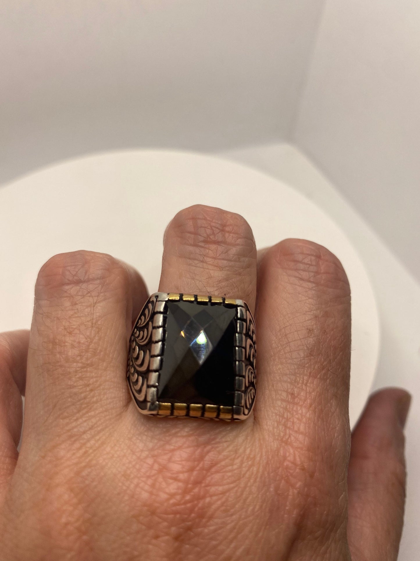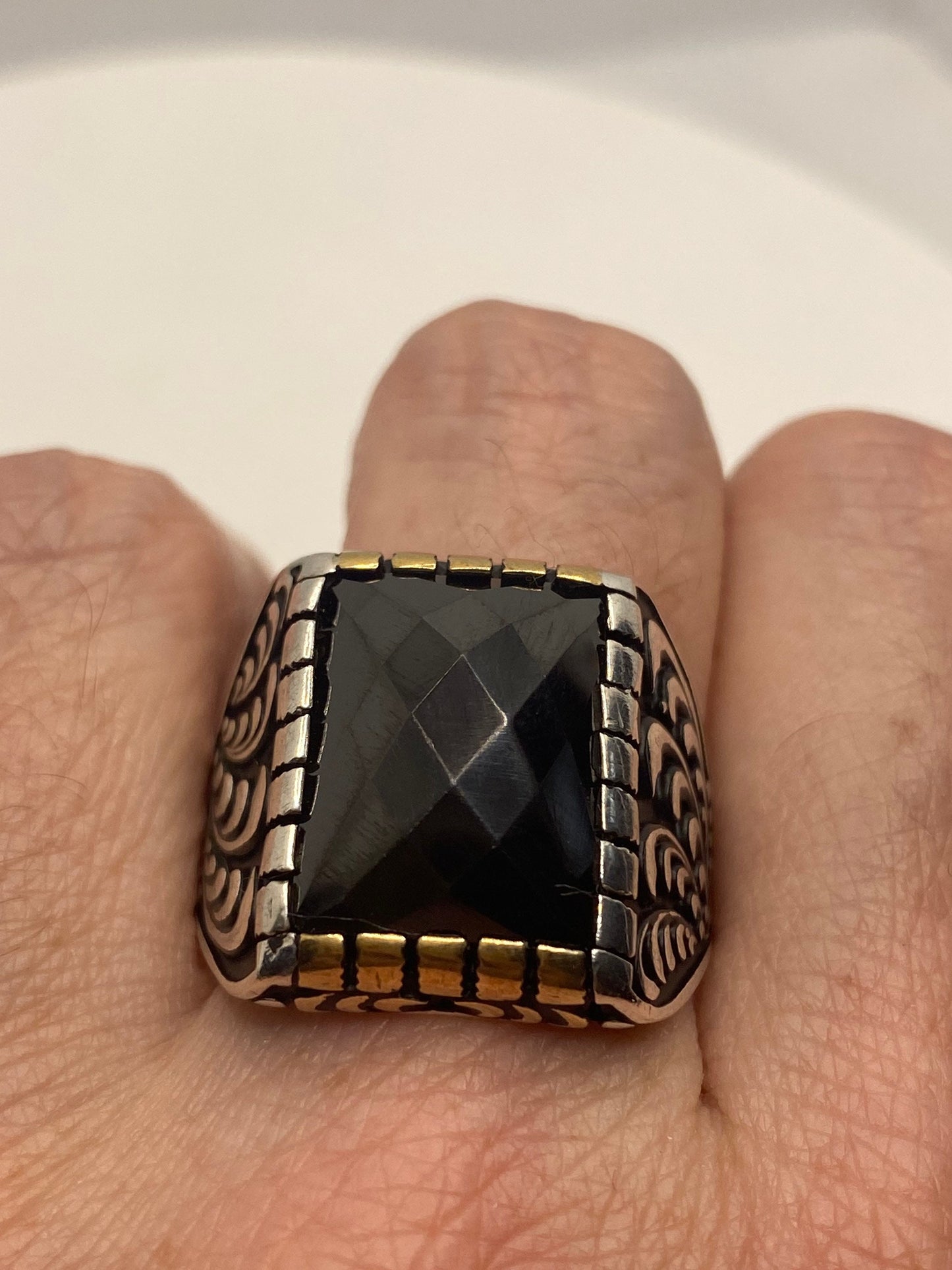 Vintage Gothic Sterling Silver Genuine Hemitite Mens Ring