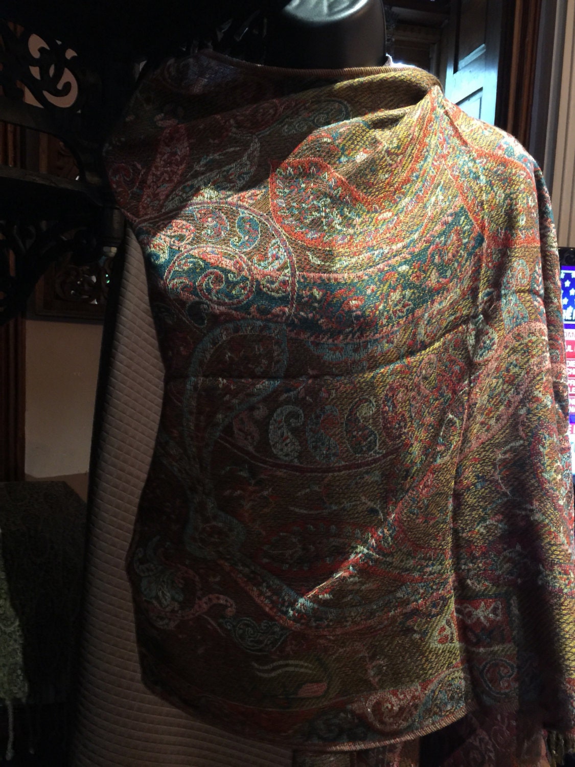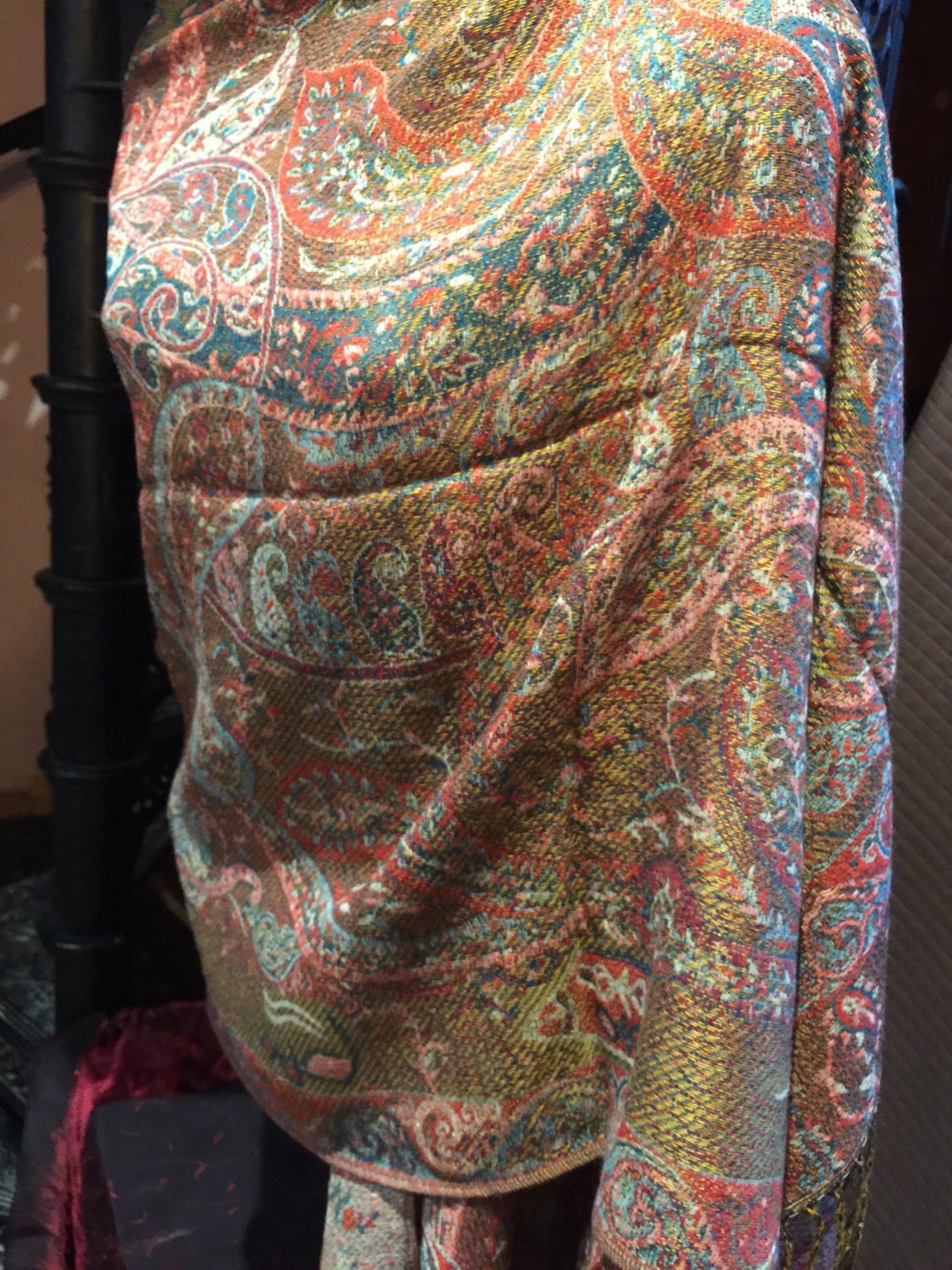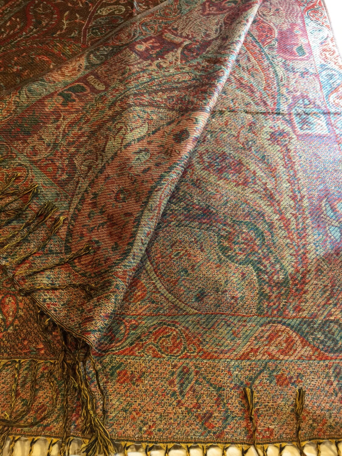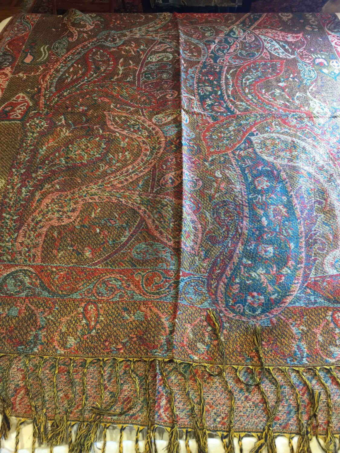 Vintage Green and Beige Paisley Brocade Pashmina Scarf Wrap Shawl