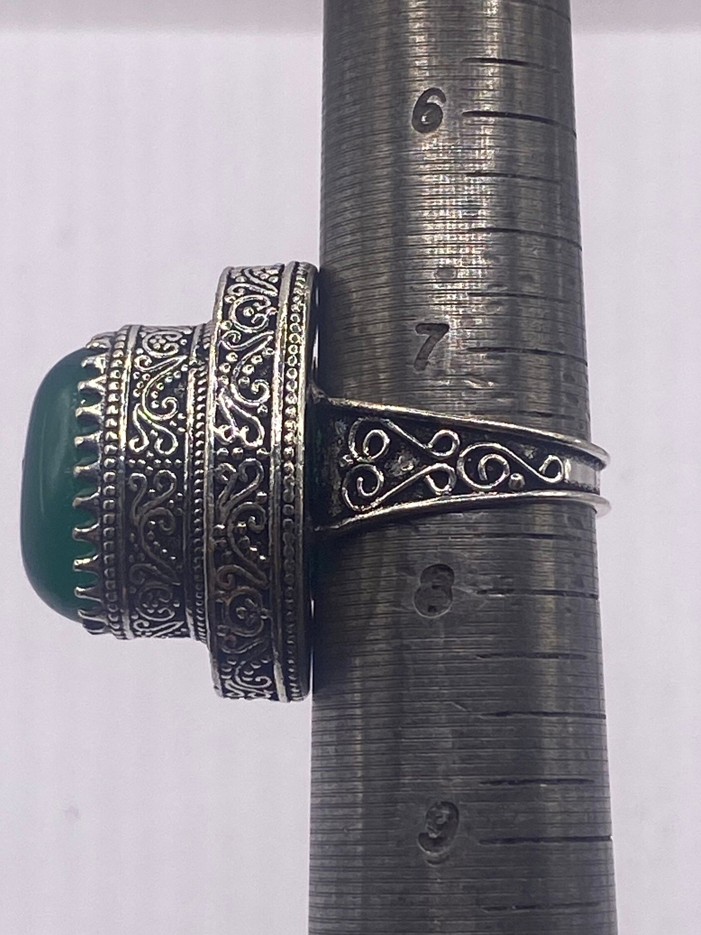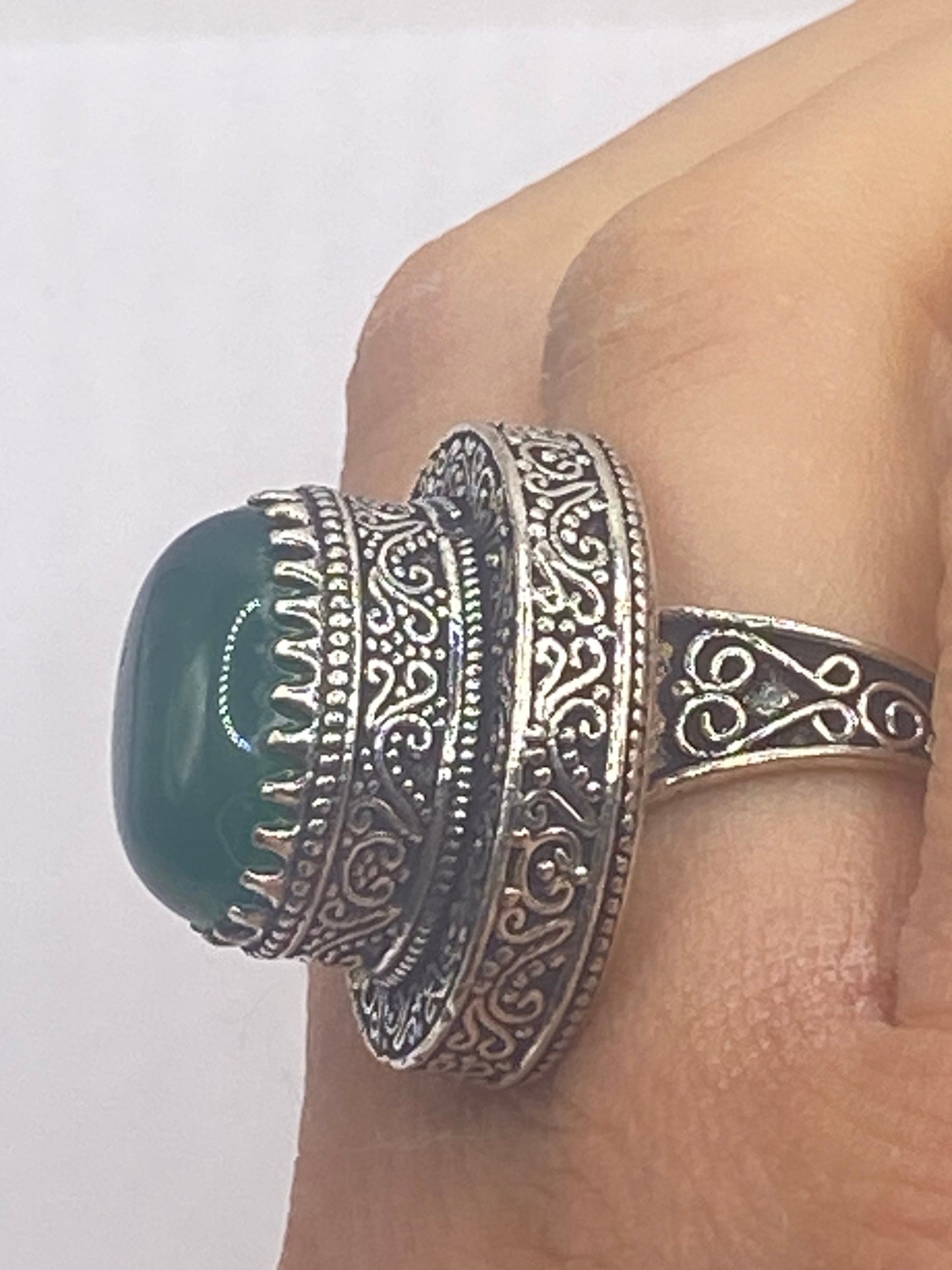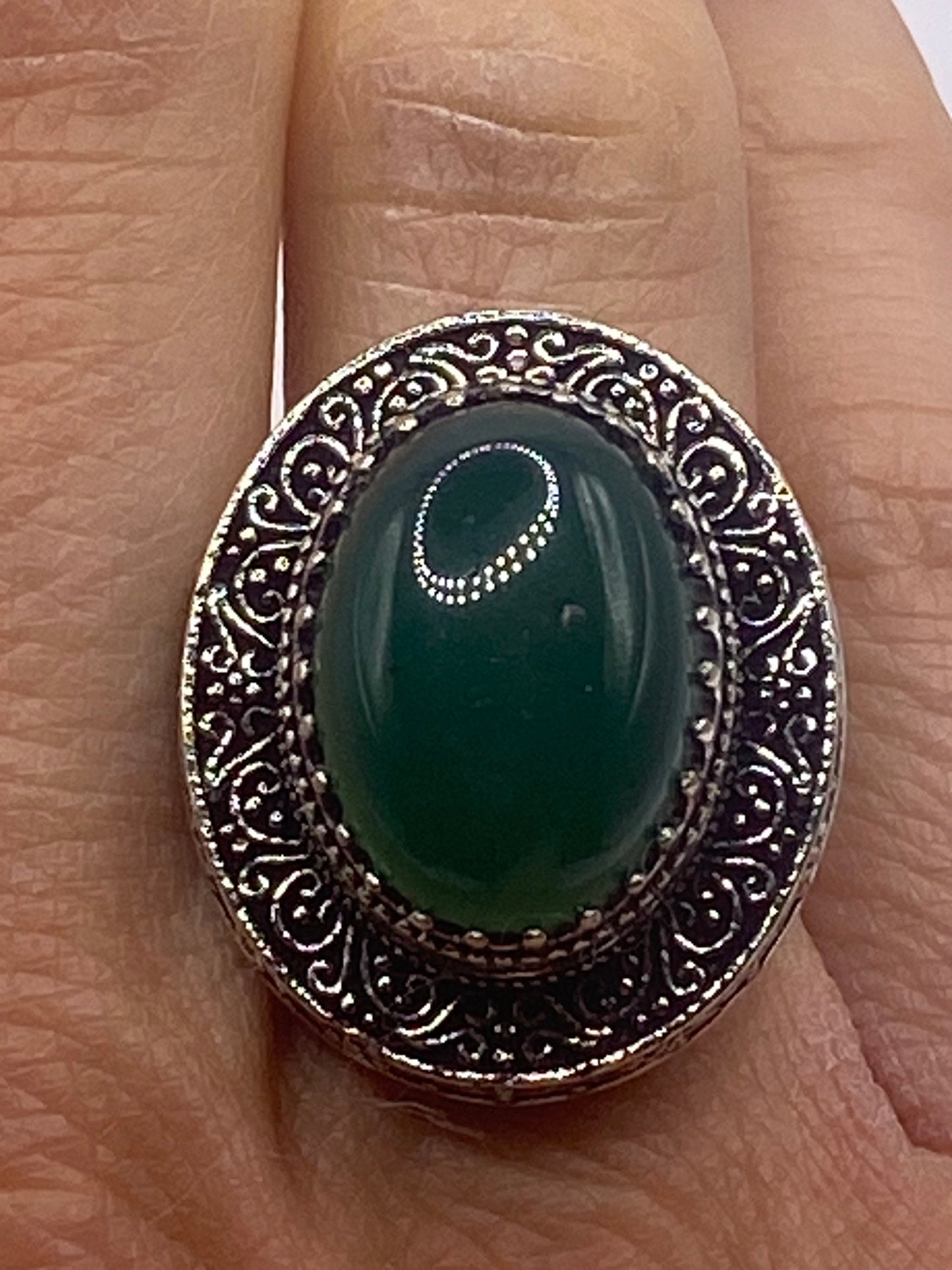 Vintage Green Emerald Chrysoprase White Bronze Silver Ring Adjustable