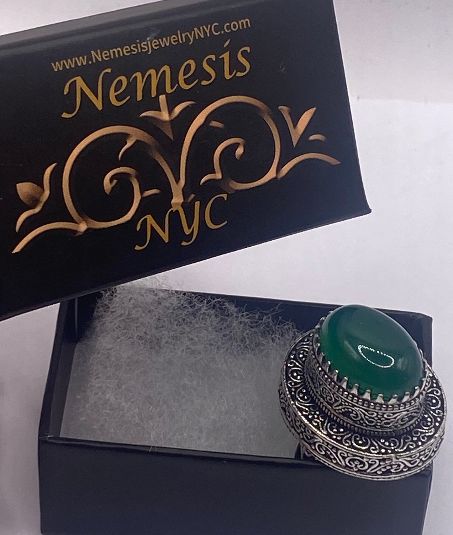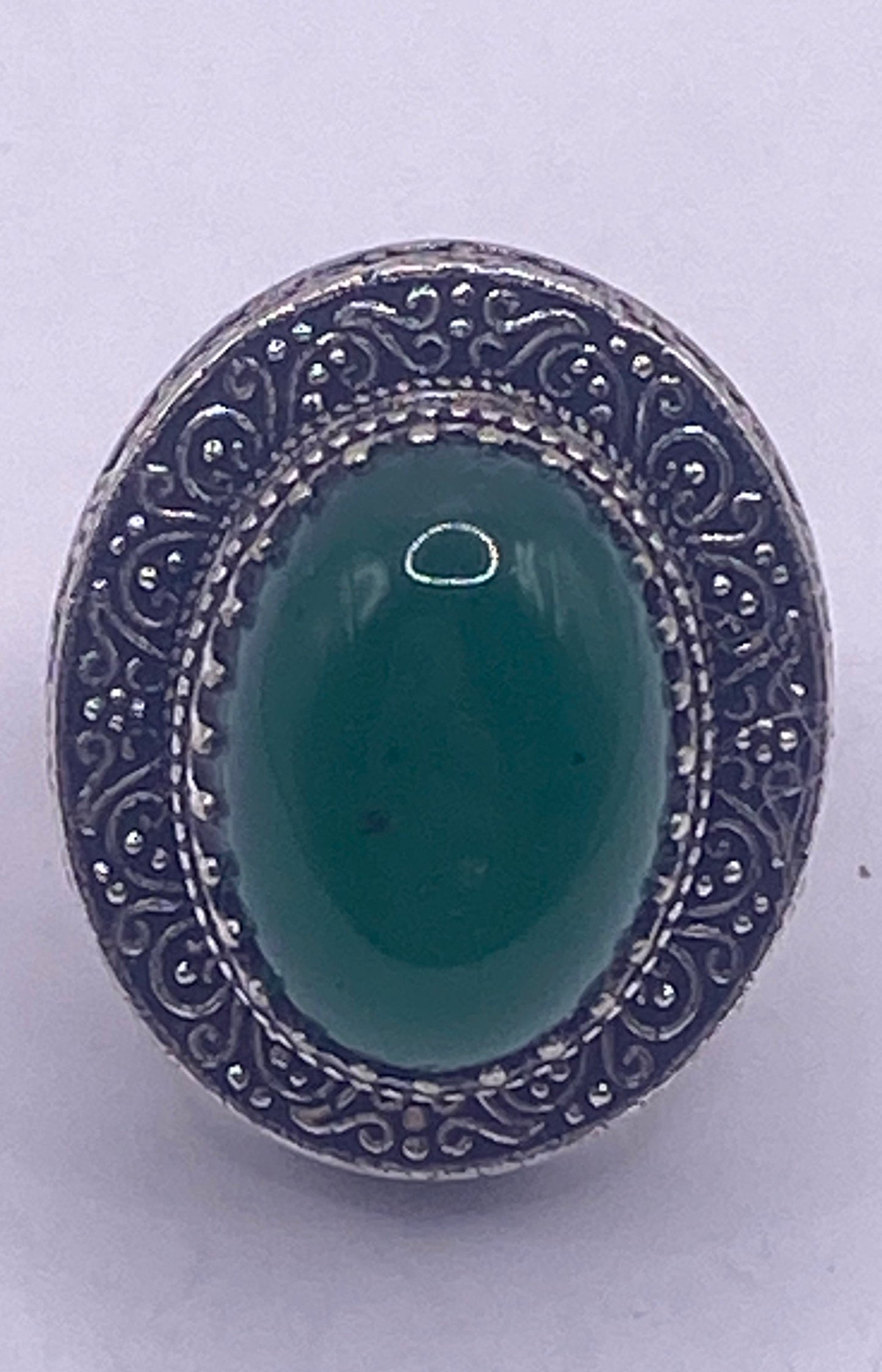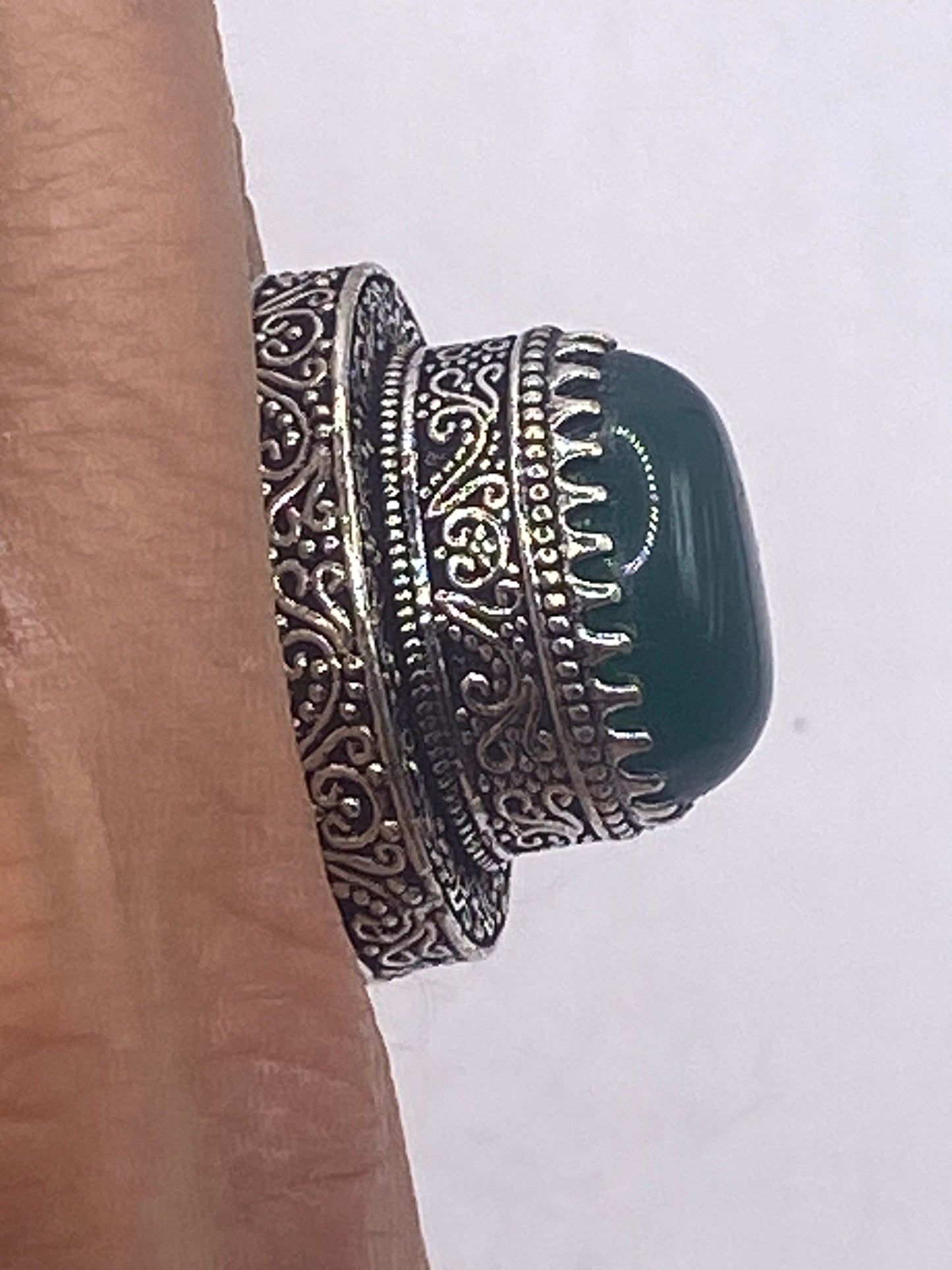 Vintage Green Emerald Chrysoprase White Bronze Silver Ring Adjustable