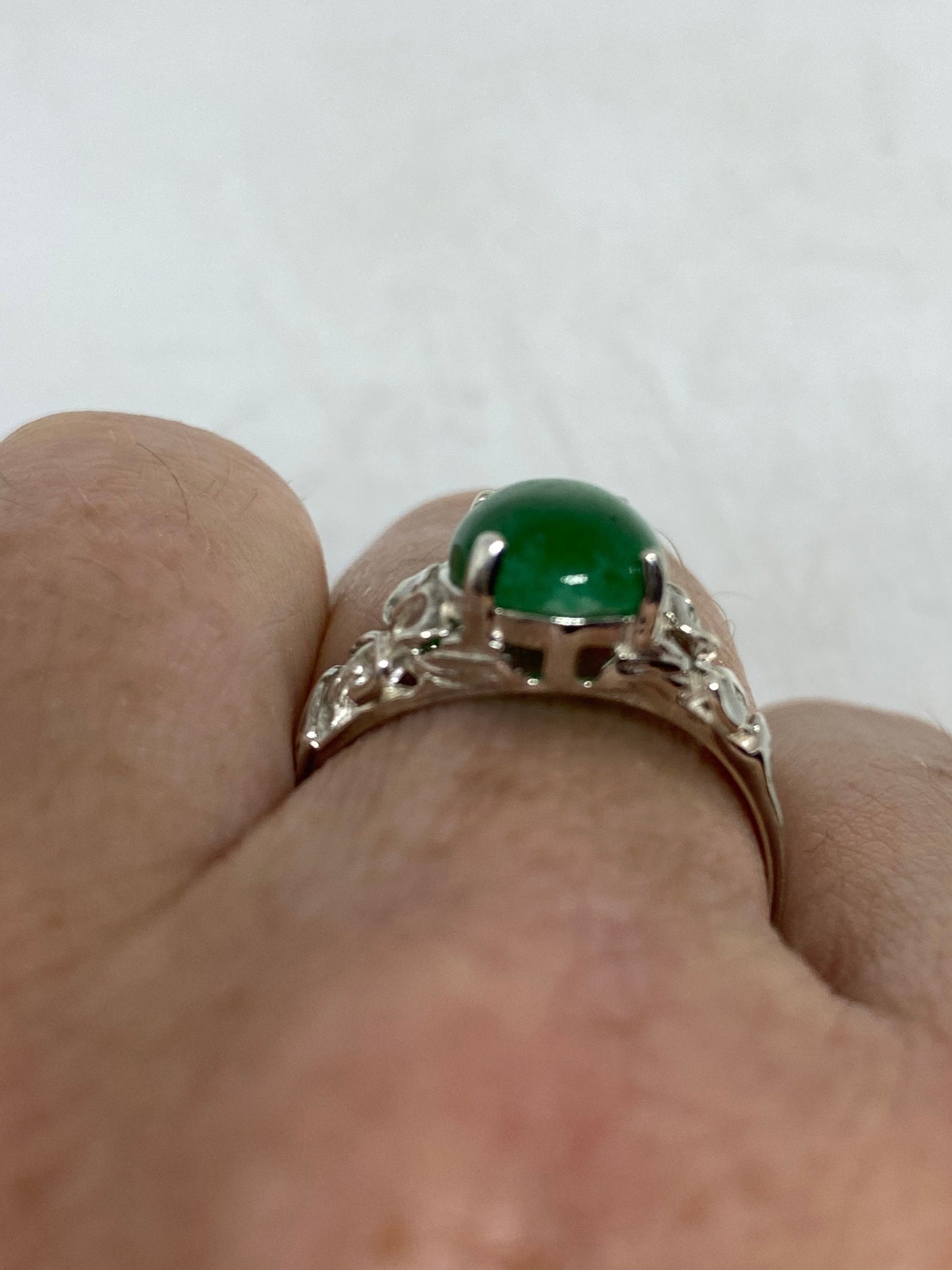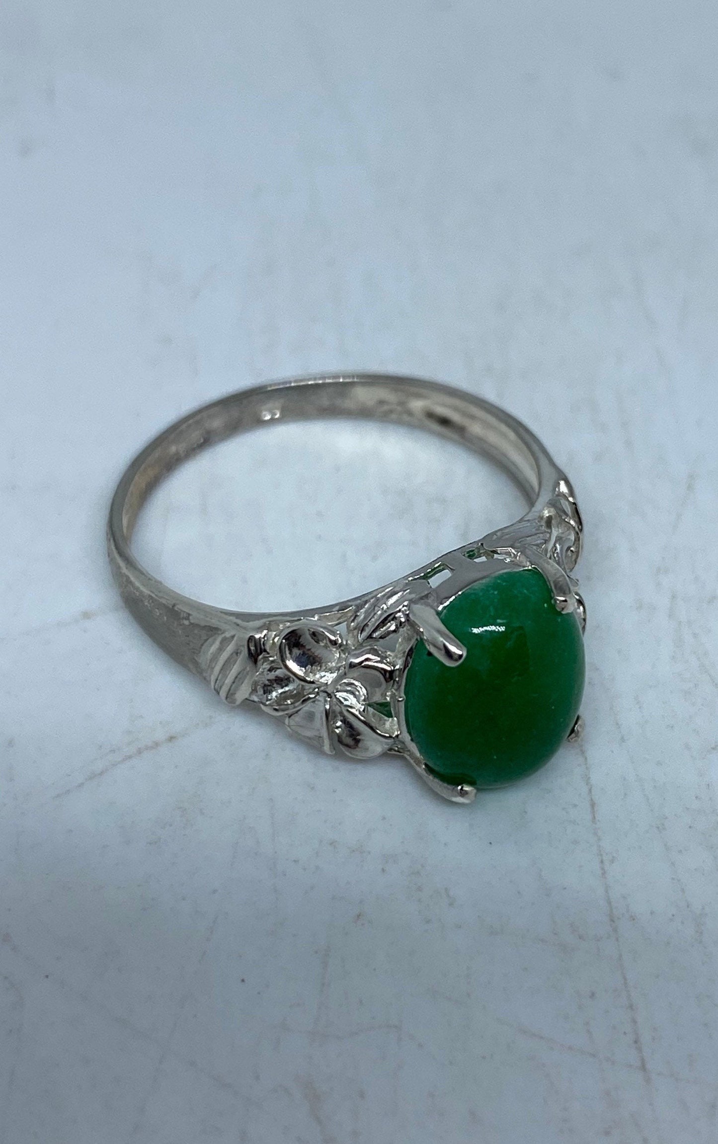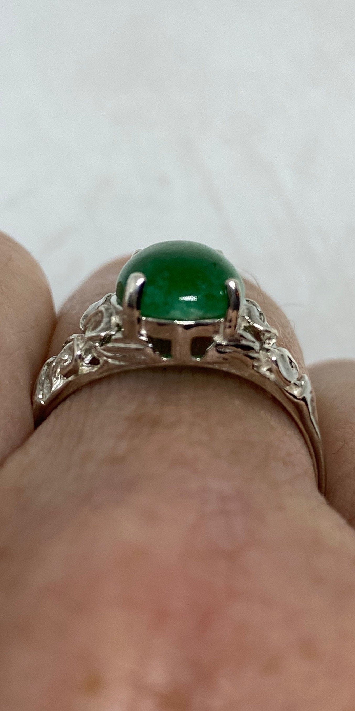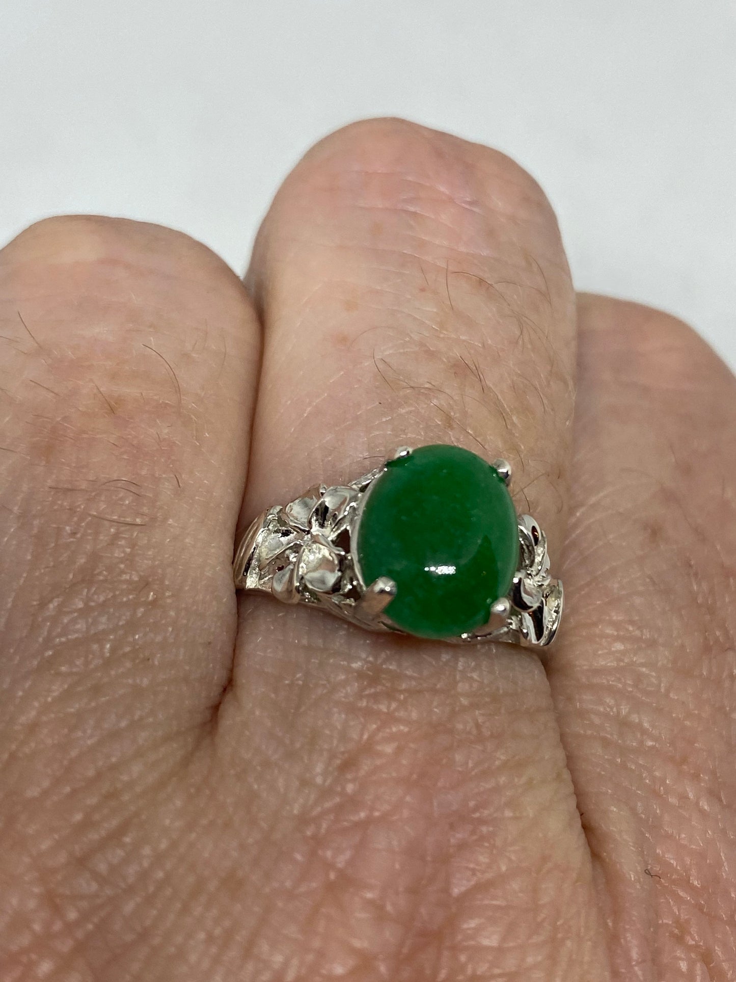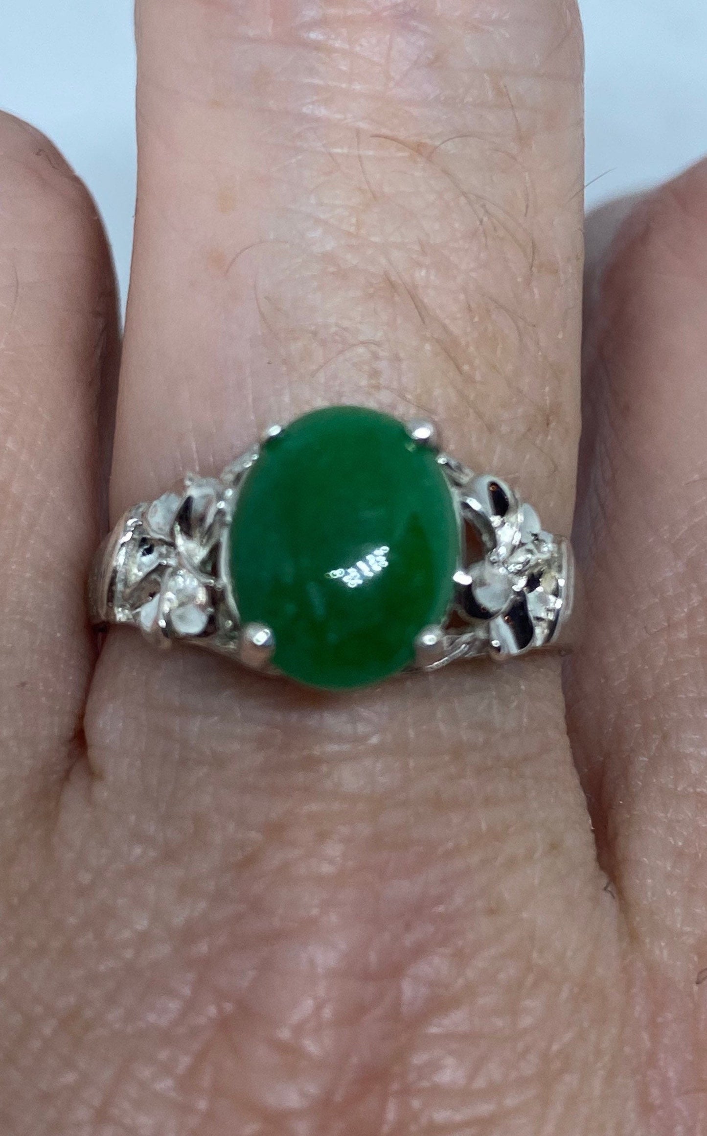 Vintage Green Jade 925 Sterling Silver Ring Size 8