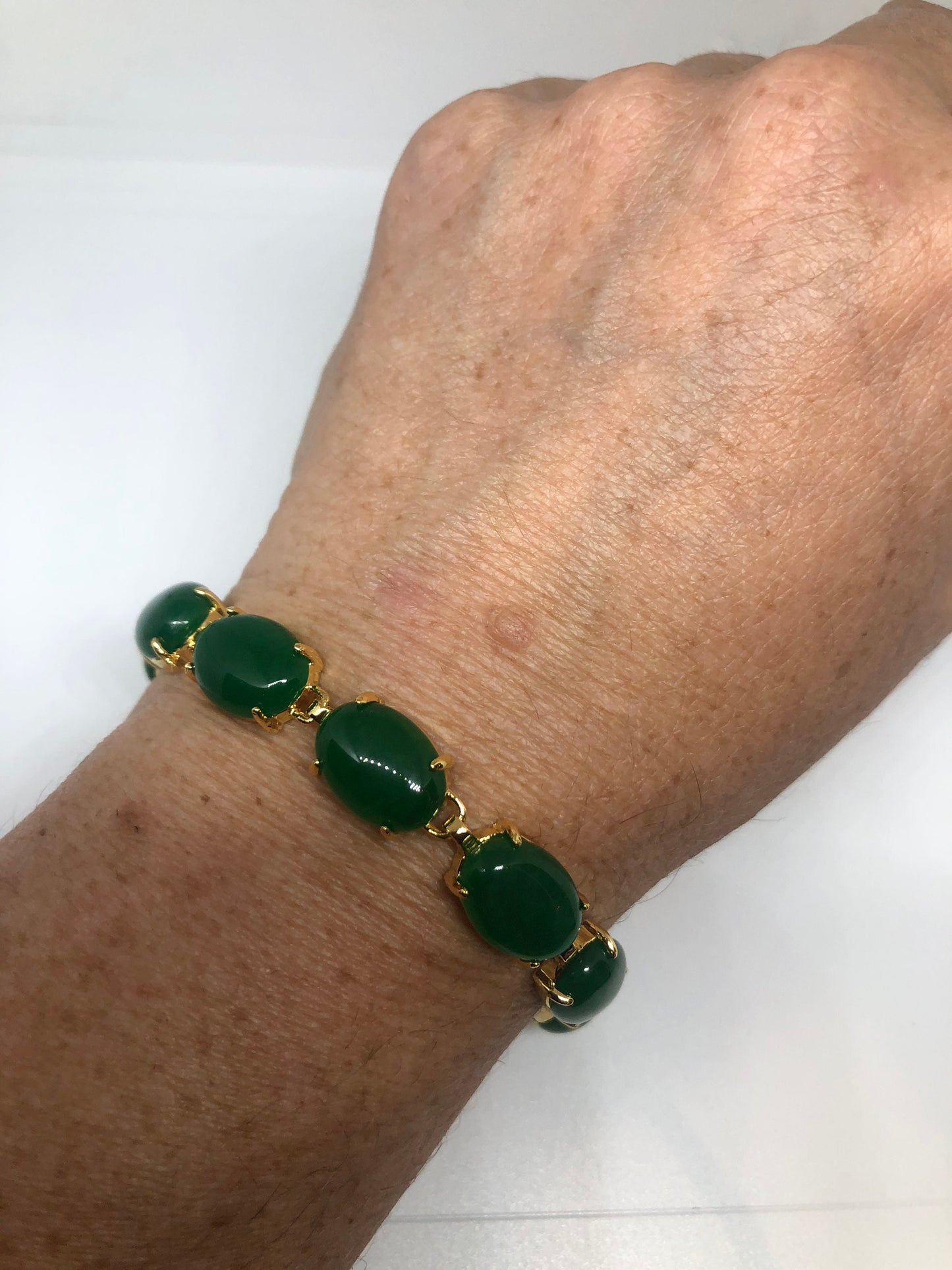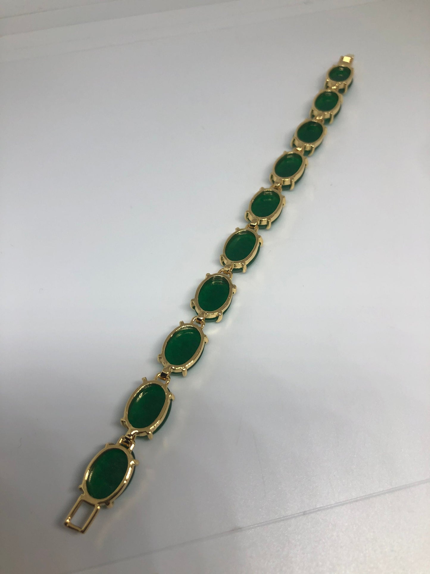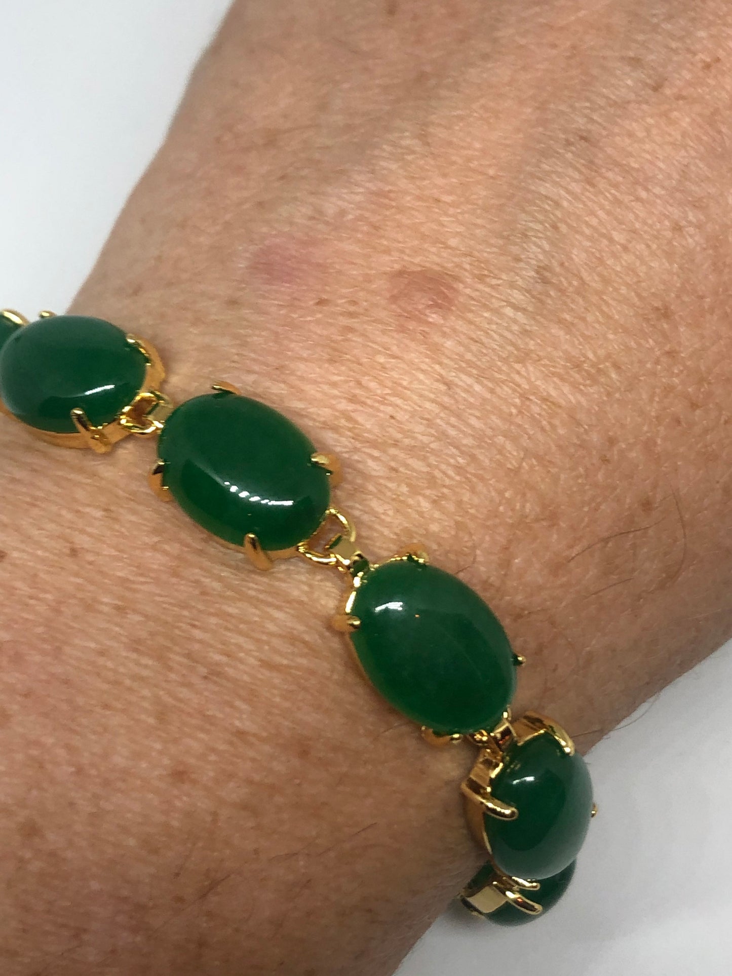 Vintage Green Jade Bracelet Golden White Bronze