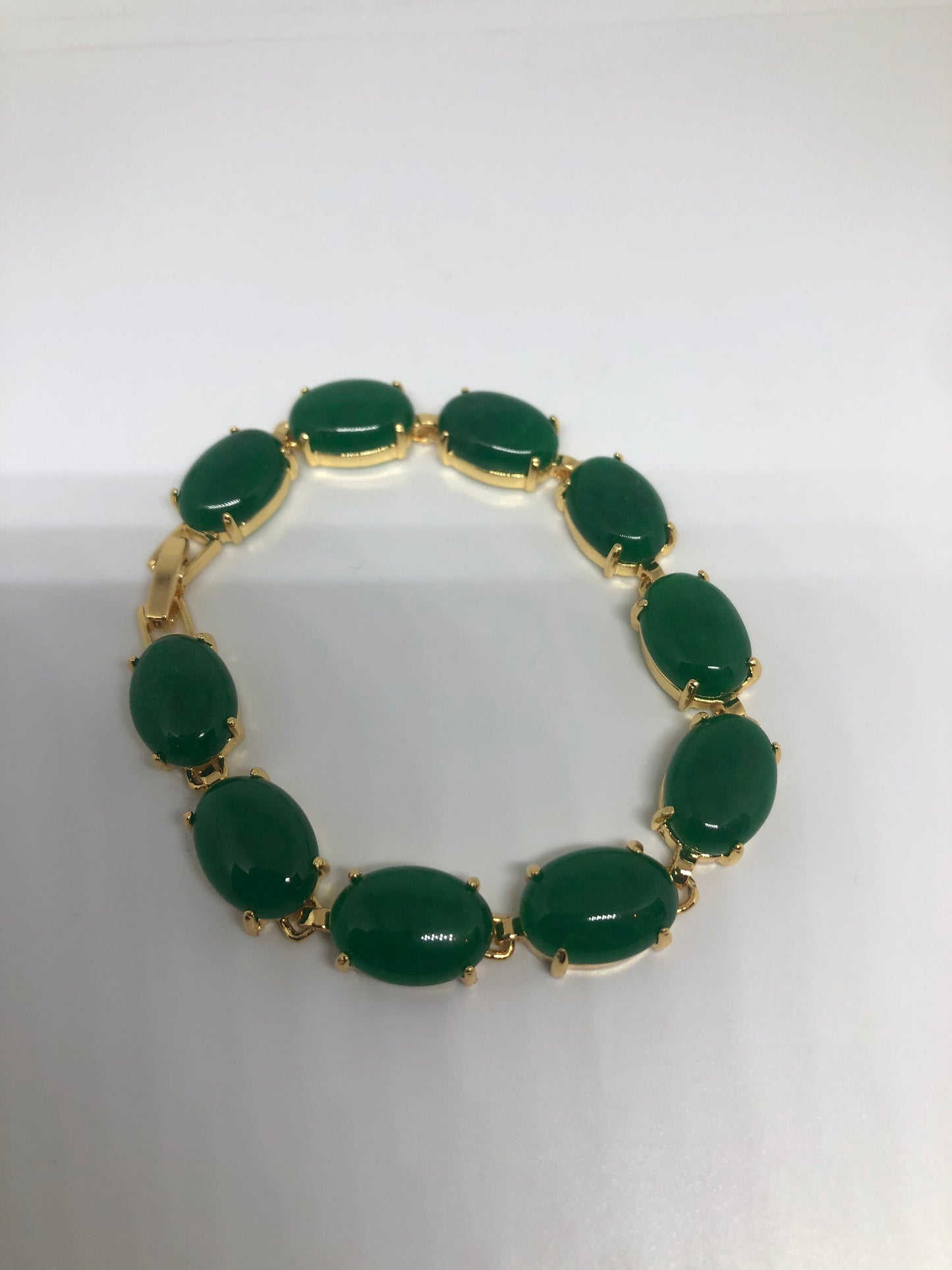 Vintage Green Jade Bracelet Golden white bronze