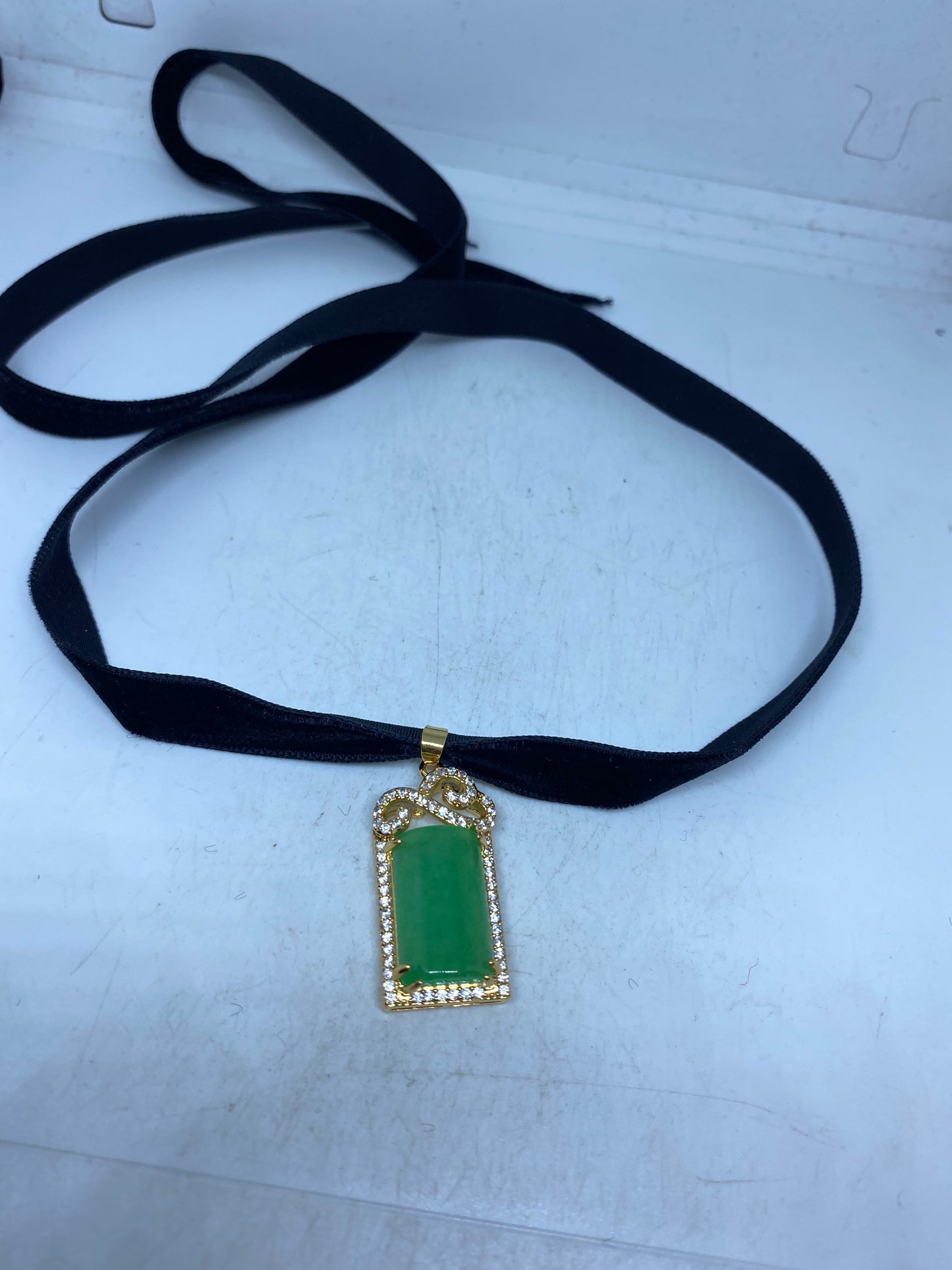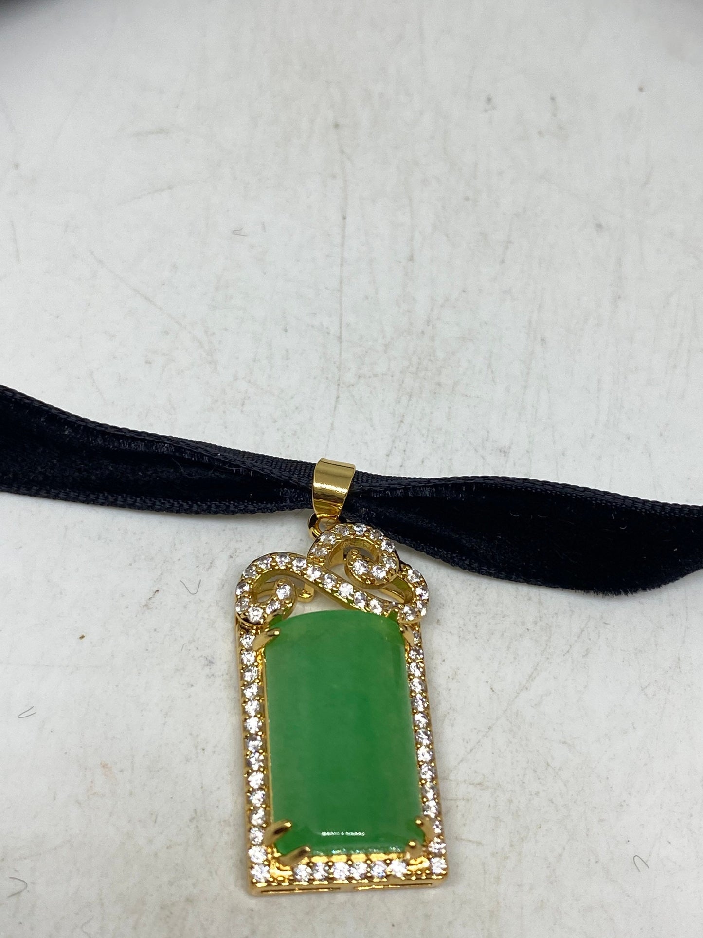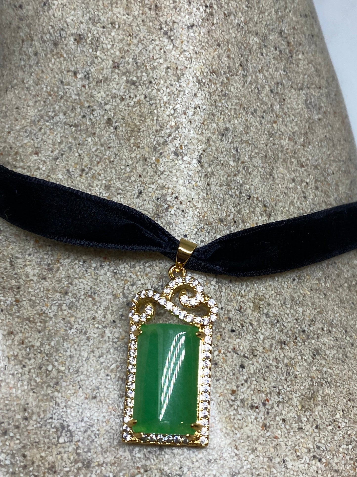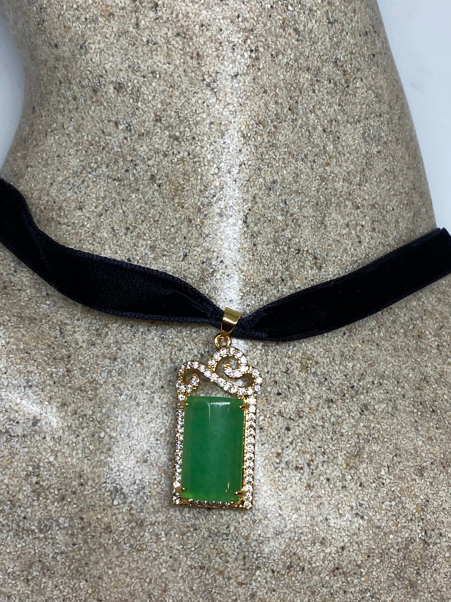 Vintage Green Jade Choker Gold Finish necklace pendant